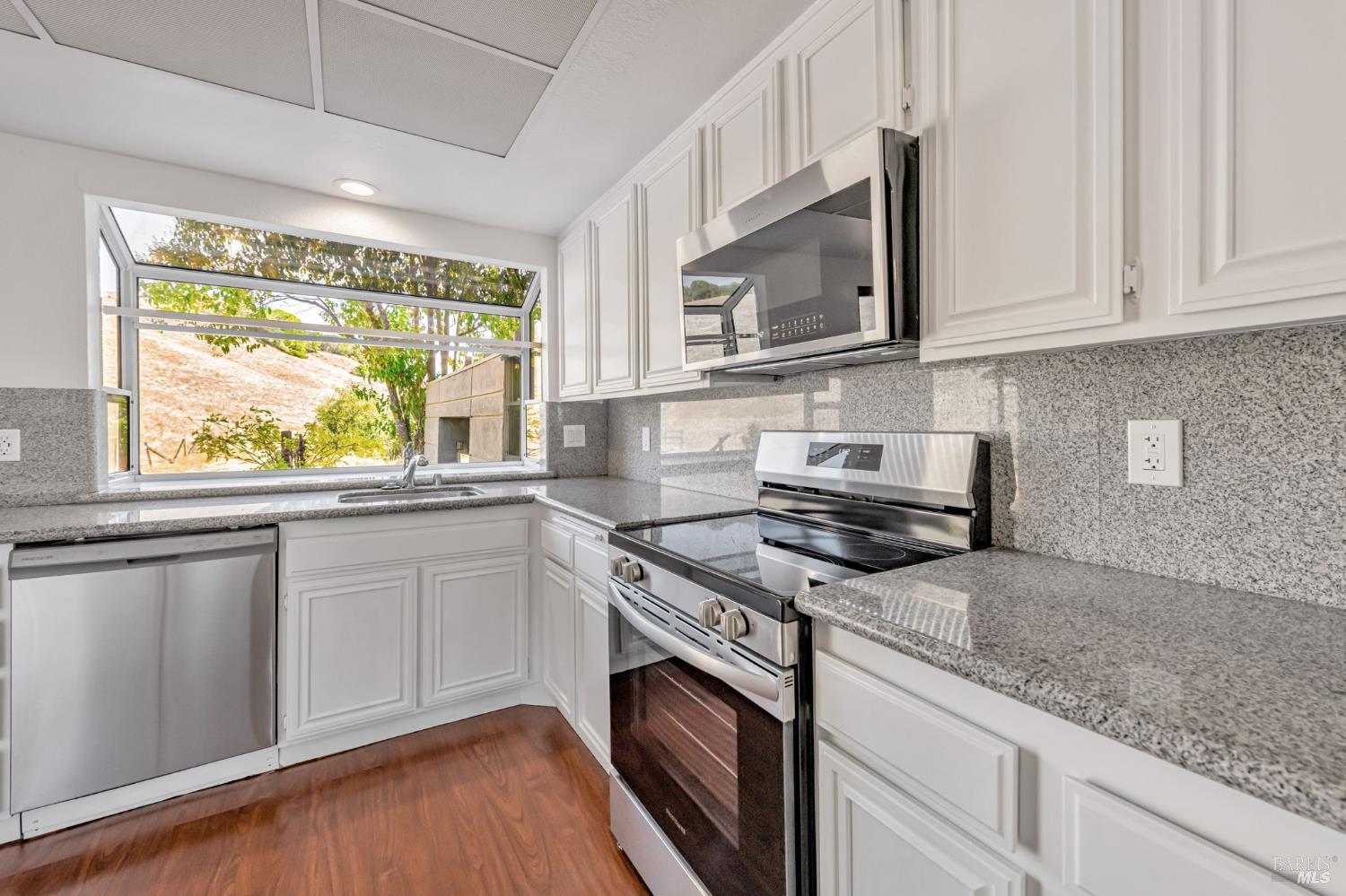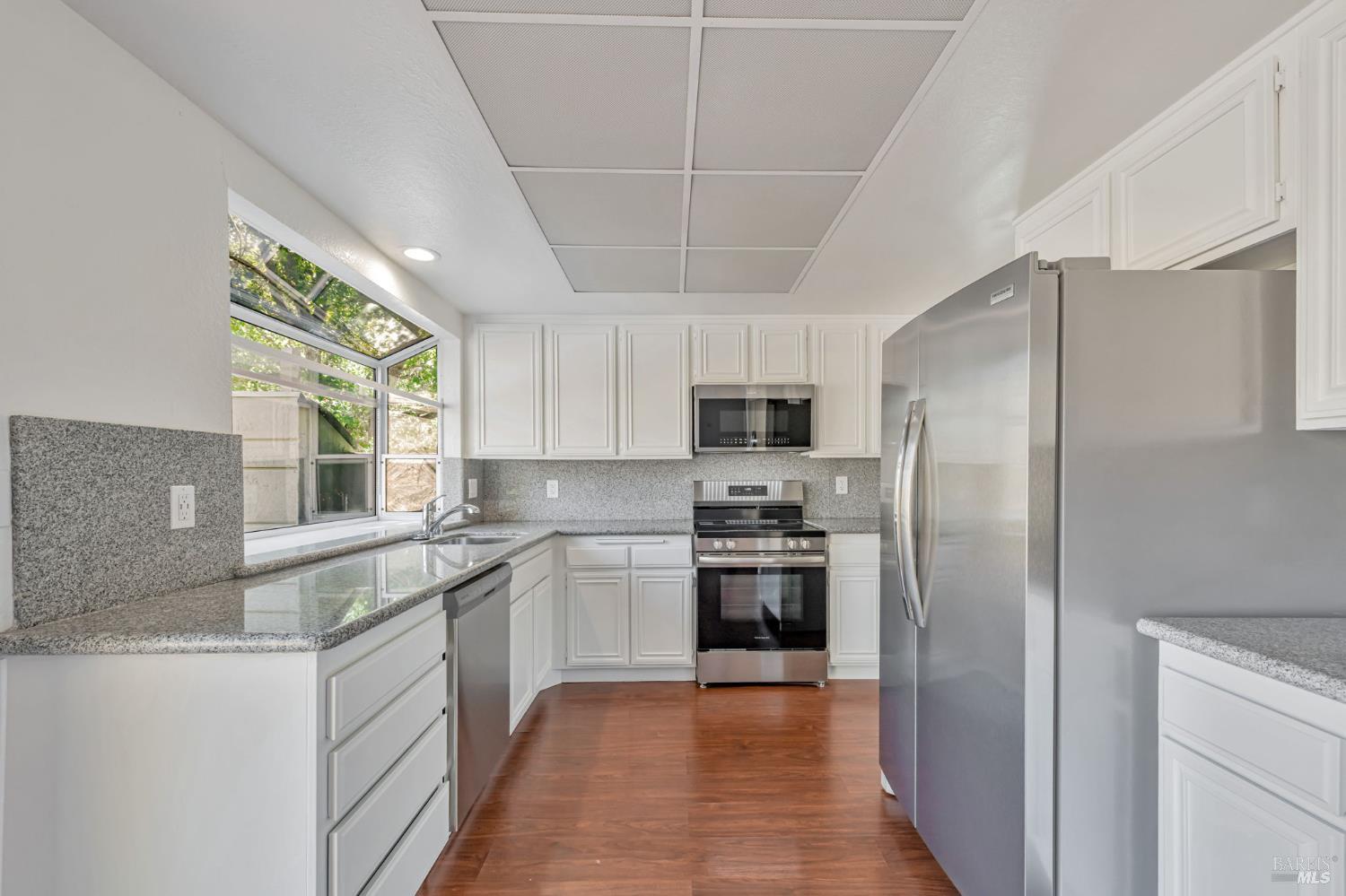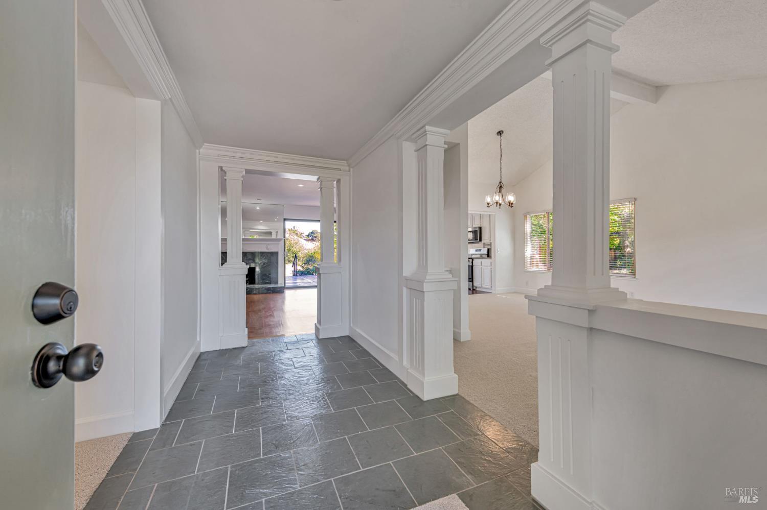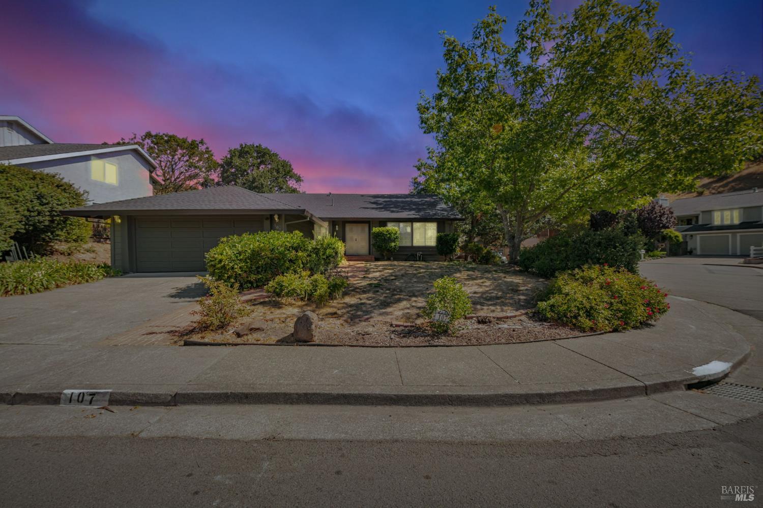 Spacious single-level home backing to Mount Burdell with stunning views of the surrounding hills! This inviting three-bedroom, two-bath residence is ideally located and offers a bright and open floor plan. Features include a kitchen and family room combo, a large living/dining room with vaulted ceilings, updated baths, fresh interior and exterior paint, a newer roof & gutters, and newer carpets. The primary suite boasts vaulted ceilings, a walk-in closet, and direct access to the backyard deck perfect for relaxing or entertaining. With trails right outside your back door and a convenient location close to schools, shopping, restaurants, and Highway 101, this home offers the best of comfort, convenience, and natural beauty.