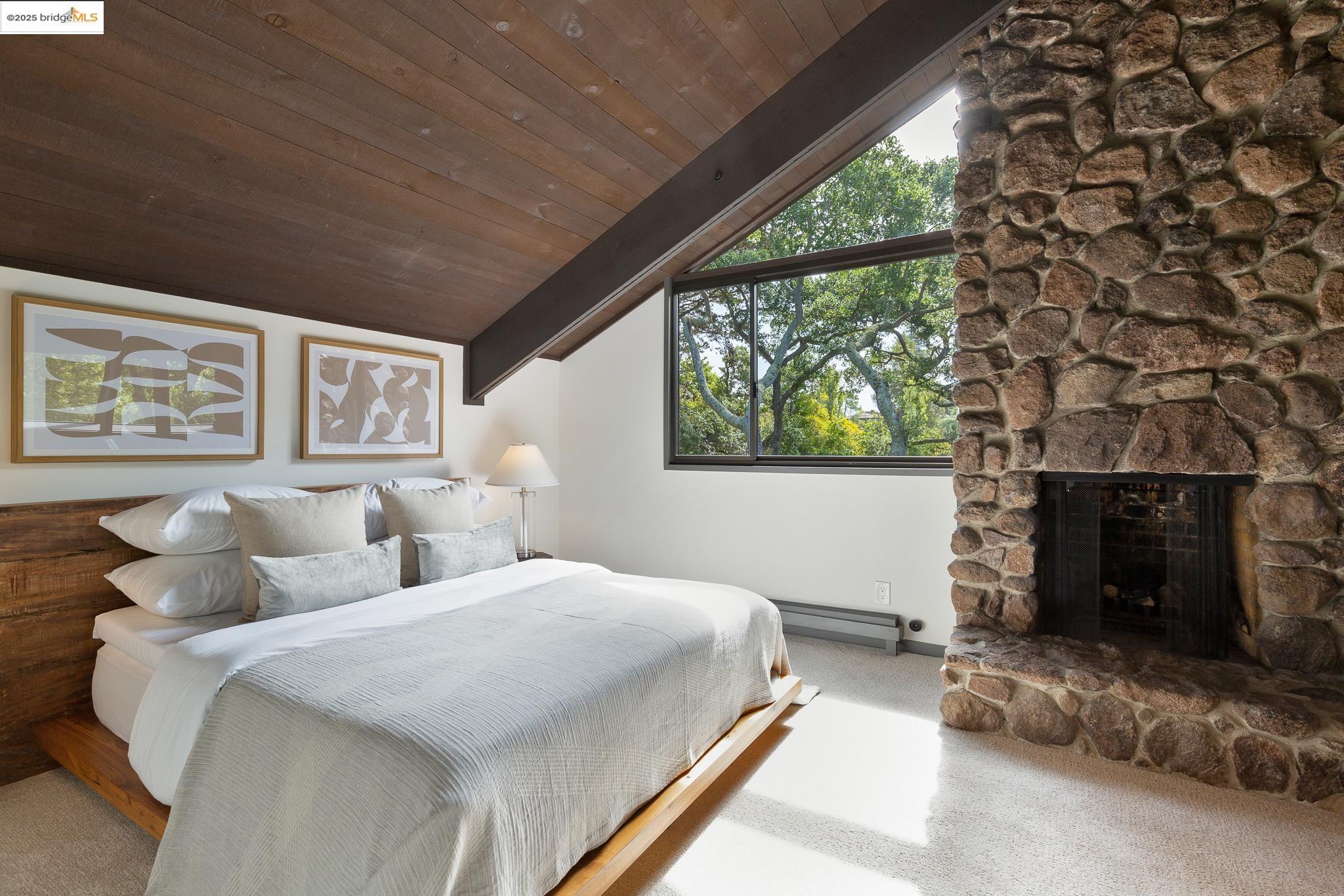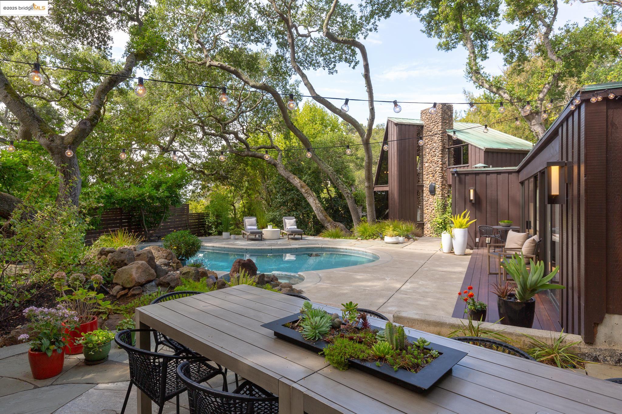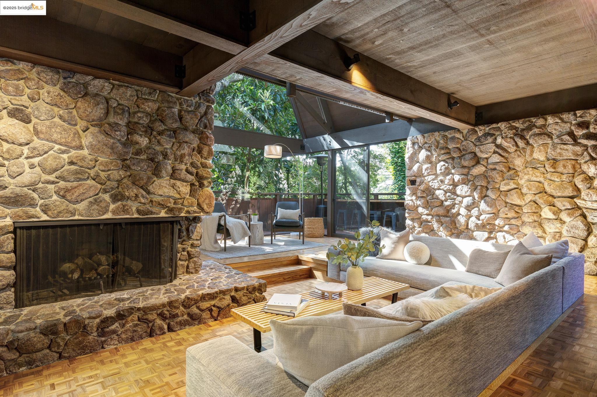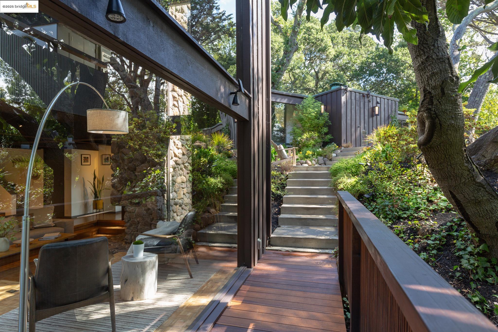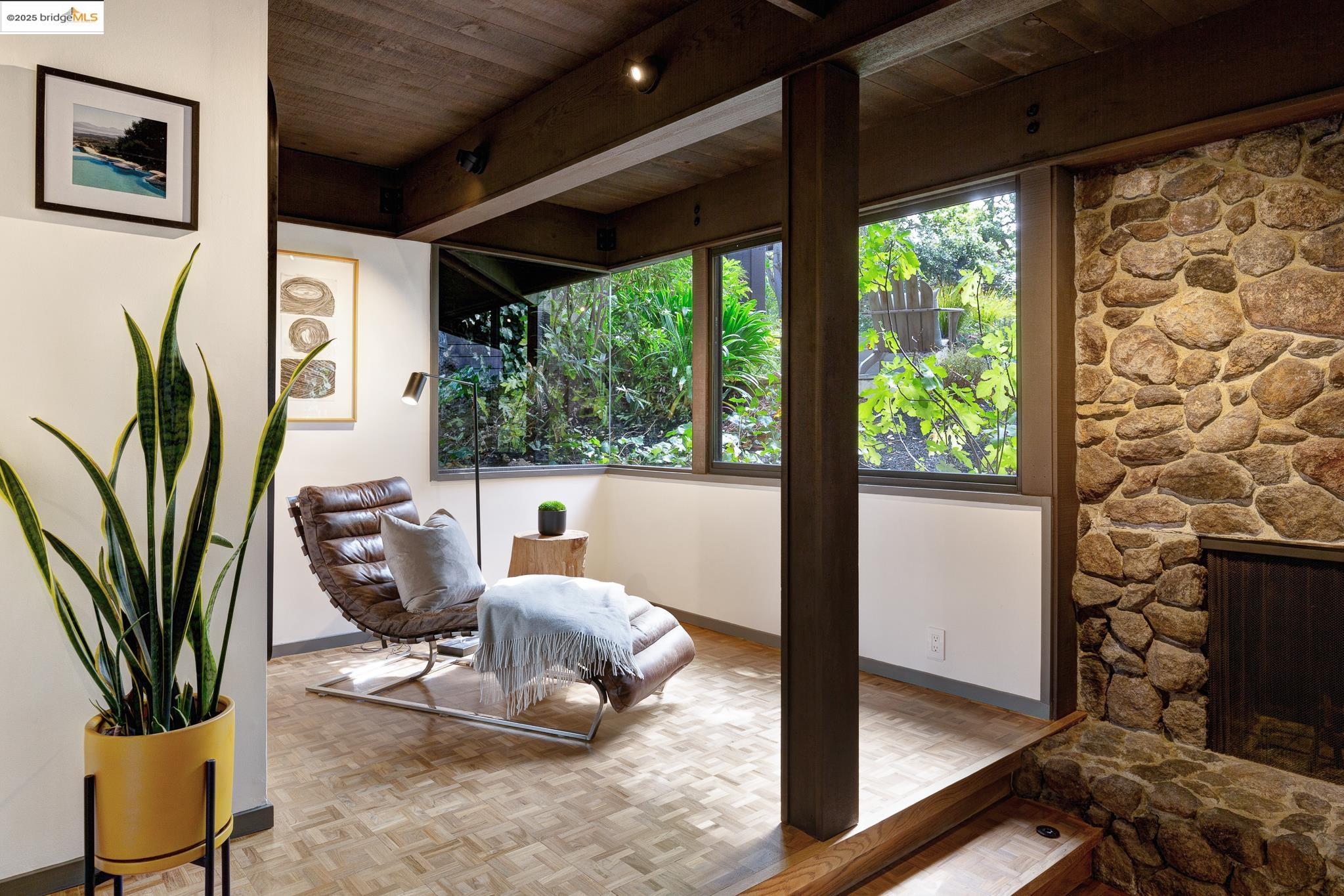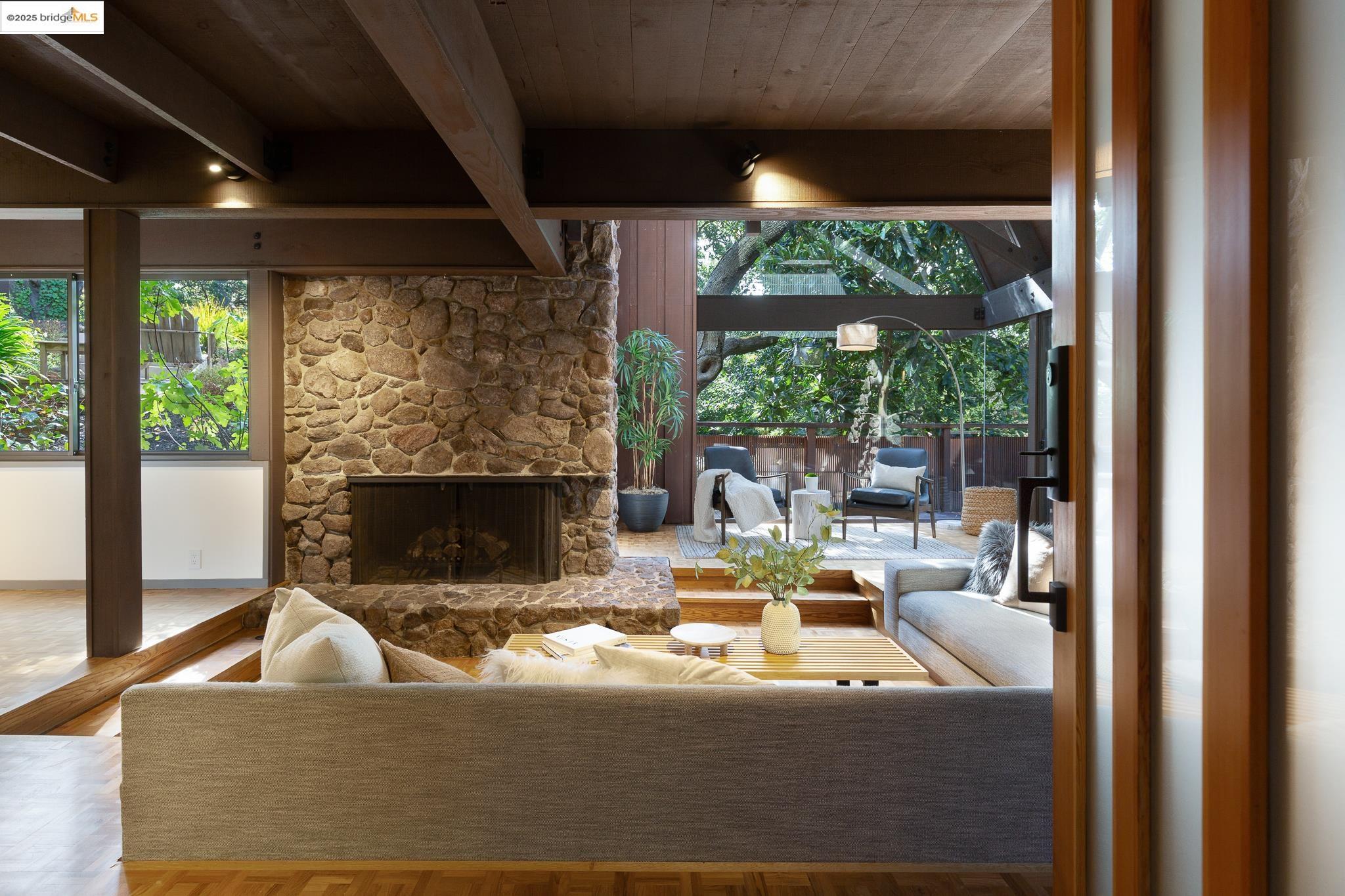 Discover a rare architectural gem in Berkeley’s coveted Uplands neighborhood. Designed by architect Lyman Jee for his family, this sun-filled home is a private retreat that seamlessly blends design, nature, and tranquility. Set on a serene, oak-studded parcel, the home is introduced by a distinctive copper roof and a stained-wood footbridge spanning a rippling creek—a magical entry that sets the stage for what’s inside. Soaring ceilings, walls of glass, and a dramatic floor-to-ceiling stone fireplace create an inviting interior that frames the lush, landscaped surroundings. With three bedrooms, three full baths, & exceptional indoor-outdoor flow, this home was designed for both relaxation & entertaining. Step outside to the pool & hot tub for resort-style living, or enjoy the peaceful connection to nature from every room. The location offers the best of Berkeley living: Close to Claremont Resort, Fournee, Peets, the Elmwood’s charming shops and cafés, transbay transit, and it’s just minutes from UC Berkeley. A stunning piece of architecture, this home is ready for its next discerning owner who values design, tranquility, and a truly unique setting.