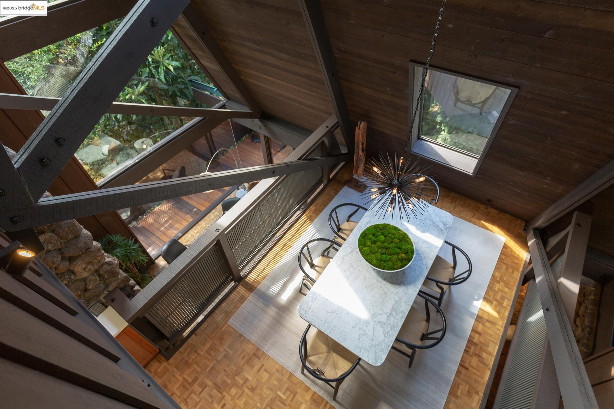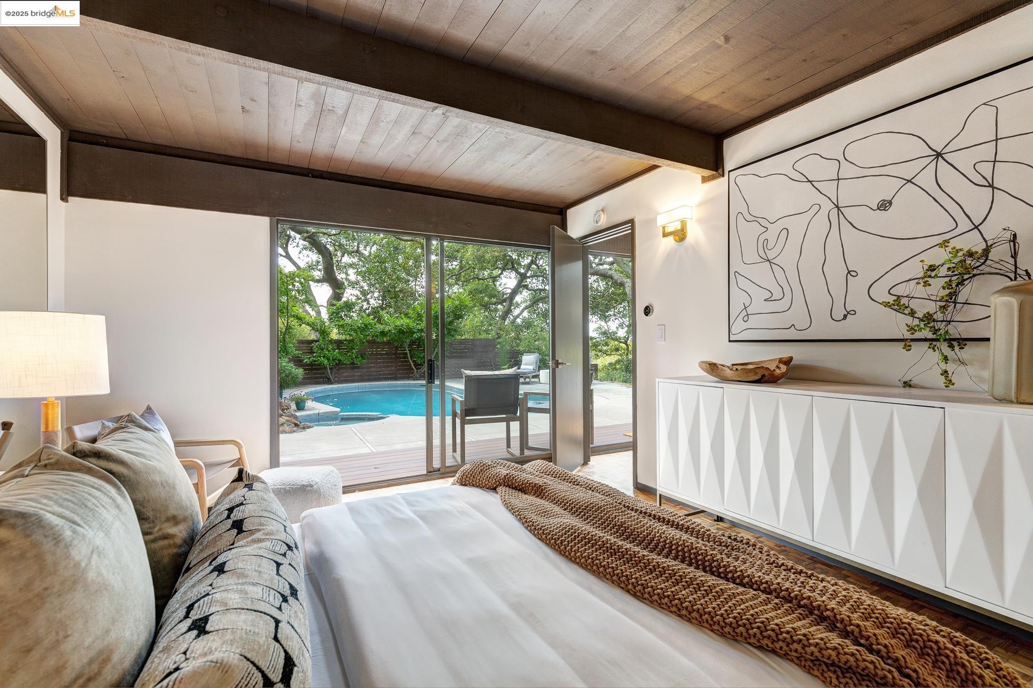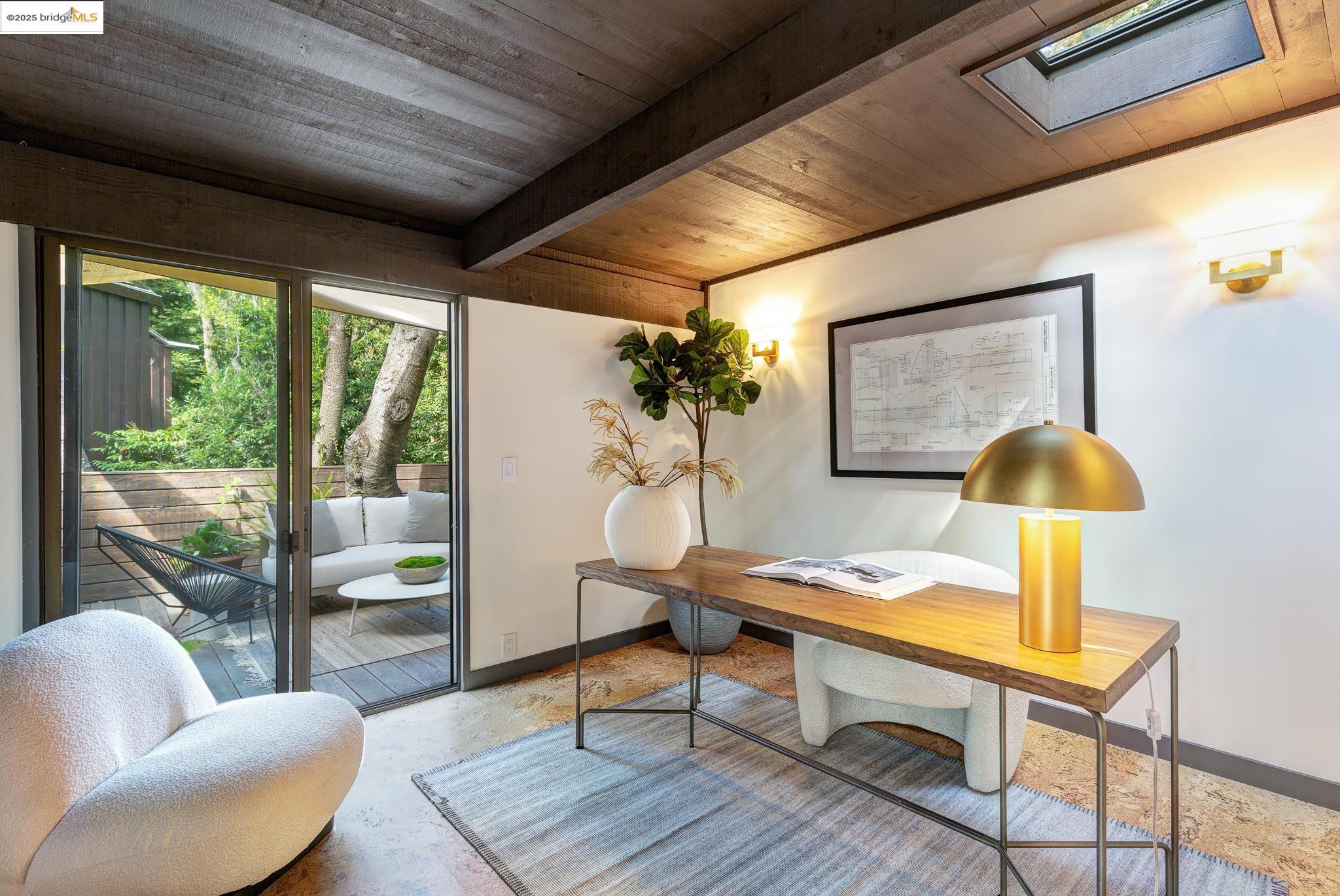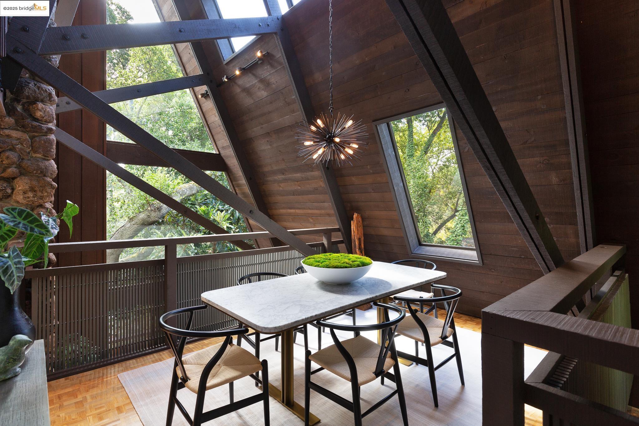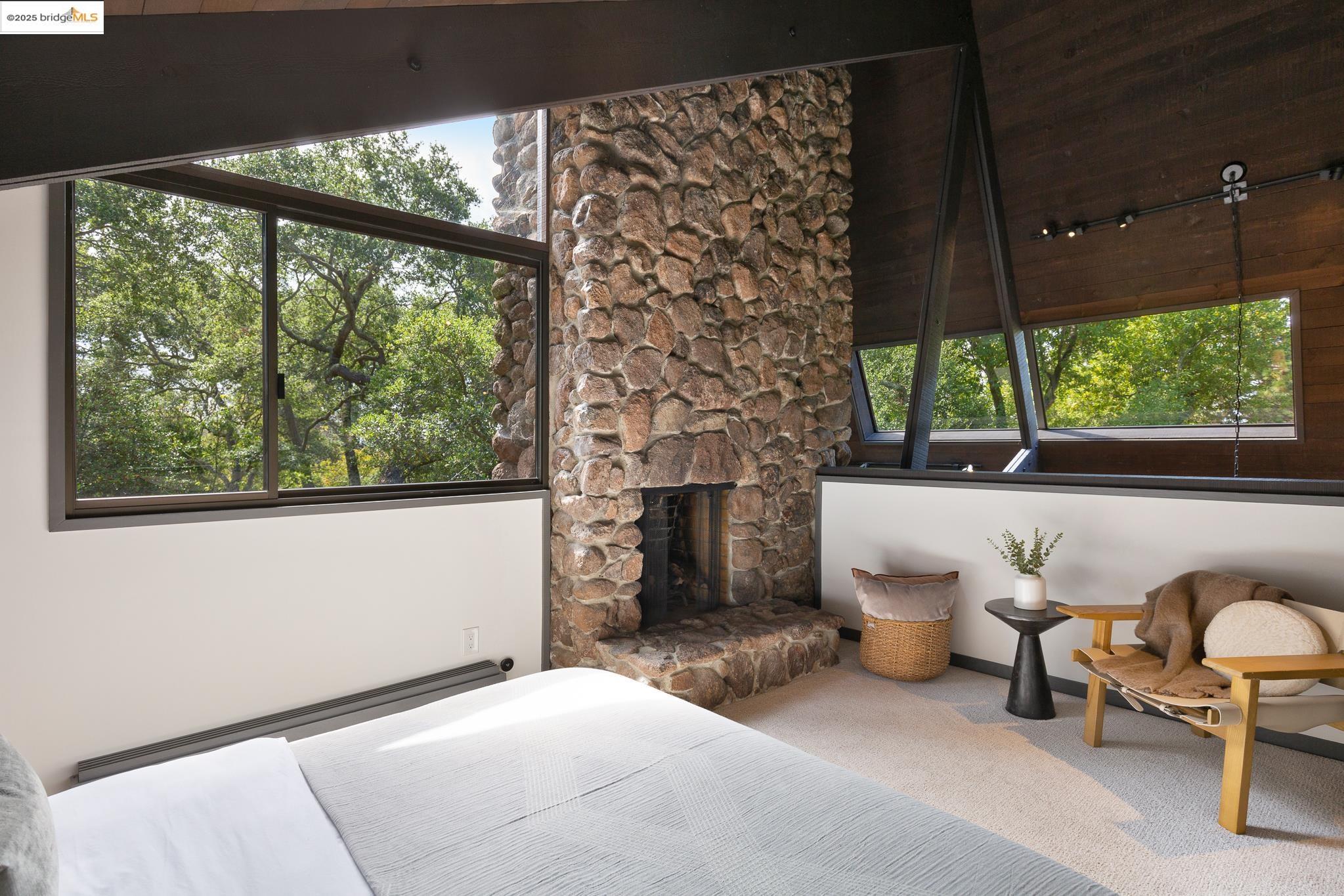 Discover a rare architectural gem in Berkeley’s coveted Uplands neighborhood. Designed by architect Lyman Jee for his family, this sun-filled home is a private retreat that seamlessly blends design, nature, and tranquility. Set on a serene, oak-studded parcel, the home is introduced by a distinctive copper roof and a stained-wood footbridge spanning a rippling creek—a magical entry that sets the stage for what’s inside. Soaring ceilings, walls of glass, and a dramatic floor-to-ceiling stone fireplace create an inviting interior that frames the lush, landscaped surroundings. With three bedrooms, three full baths, & exceptional indoor-outdoor flow, this home was designed for both relaxation & entertaining. Step outside to the pool & hot tub for resort-style living, or enjoy the peaceful connection to nature from every room. The location offers the best of Berkeley living: Close to Claremont Resort, Fournee, Peets, the Elmwood’s charming shops and cafés, transbay transit, and it’s just minutes from UC Berkeley. A stunning piece of architecture, this home is ready for its next discerning owner who values design, tranquility, and a truly unique setting.