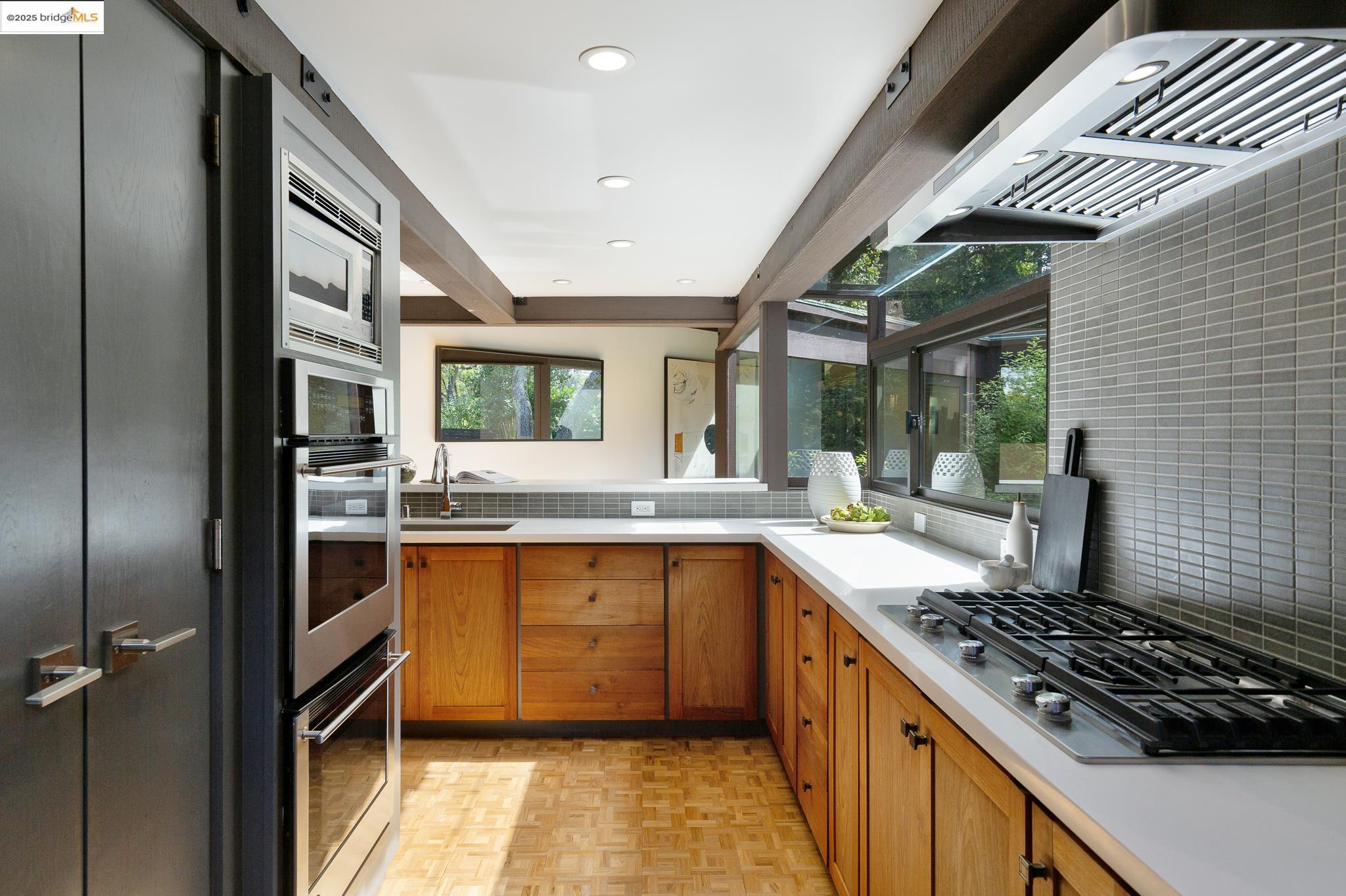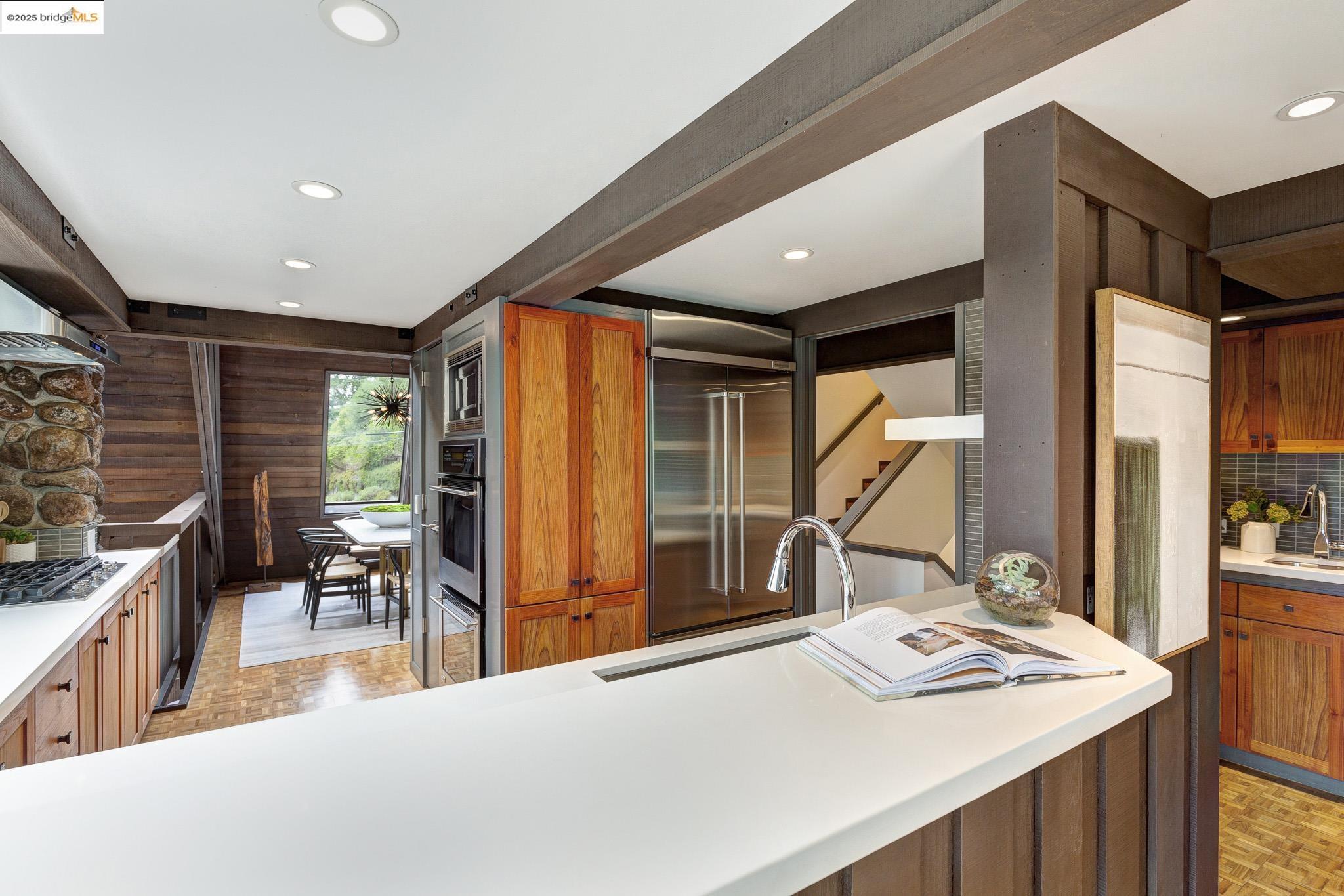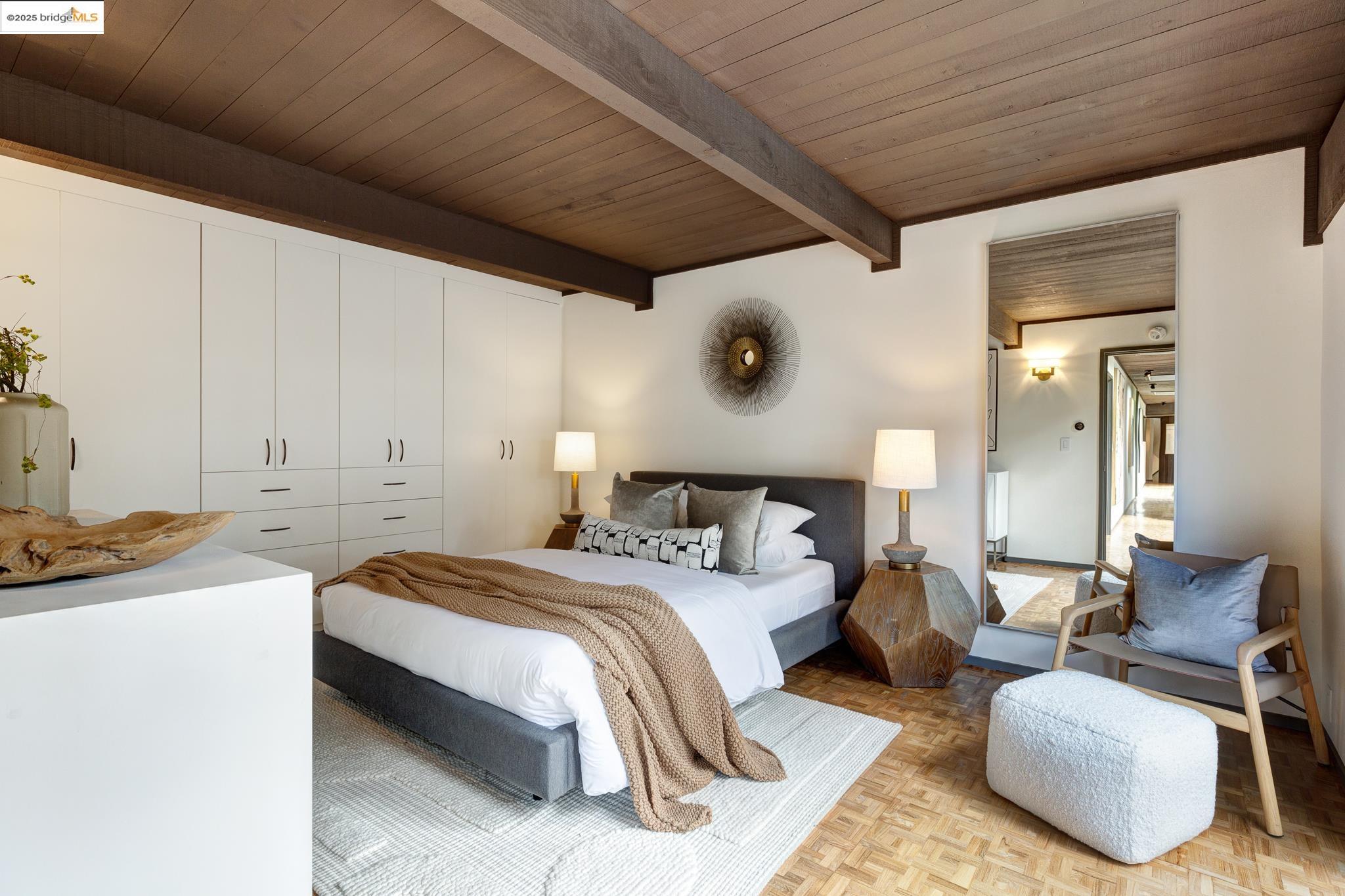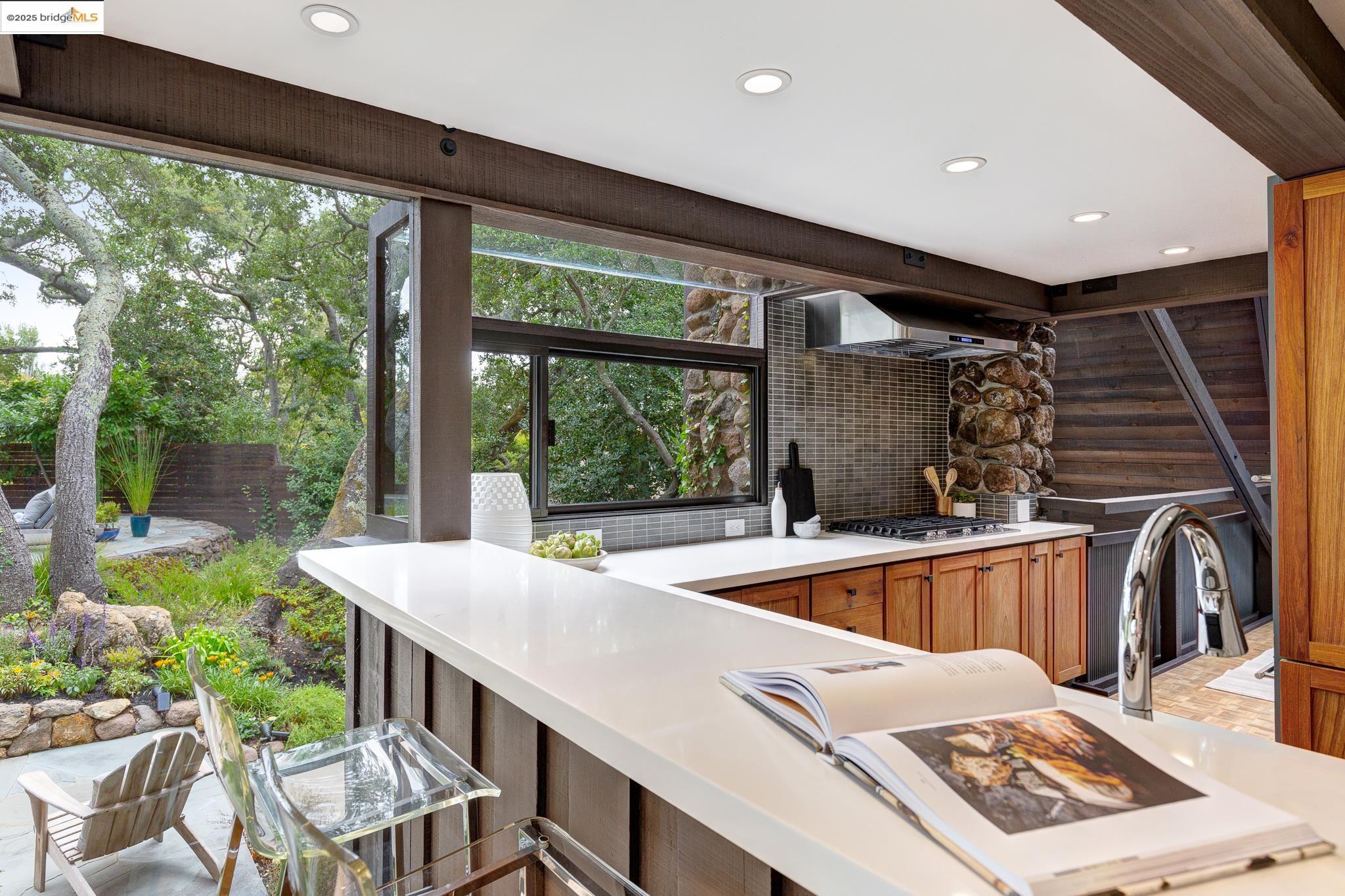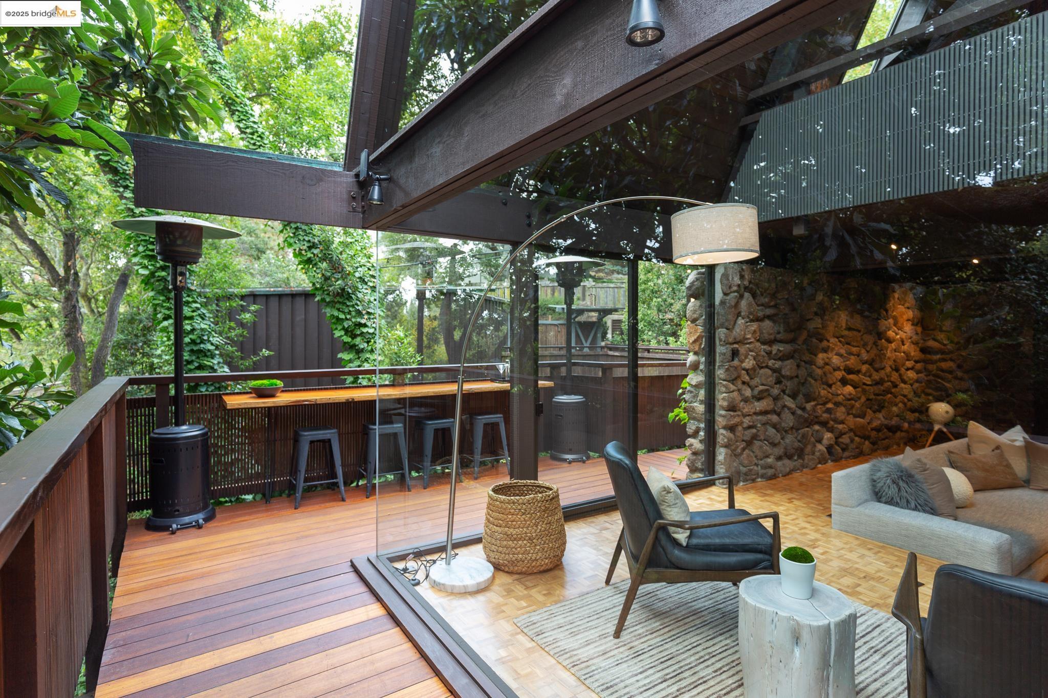 Discover a rare architectural gem in Berkeley’s coveted Uplands neighborhood. Designed by architect Lyman Jee for his family, this sun-filled home is a private retreat that seamlessly blends design, nature, and tranquility. Set on a serene, oak-studded parcel, the home is introduced by a distinctive copper roof and a stained-wood footbridge spanning a rippling creek—a magical entry that sets the stage for what’s inside. Soaring ceilings, walls of glass, and a dramatic floor-to-ceiling stone fireplace create an inviting interior that frames the lush, landscaped surroundings. With three bedrooms, three full baths, & exceptional indoor-outdoor flow, this home was designed for both relaxation & entertaining. Step outside to the pool & hot tub for resort-style living, or enjoy the peaceful connection to nature from every room. The location offers the best of Berkeley living: Close to Claremont Resort, Fournee, Peets, the Elmwood’s charming shops and cafés, transbay transit, and it’s just minutes from UC Berkeley. A stunning piece of architecture, this home is ready for its next discerning owner who values design, tranquility, and a truly unique setting.