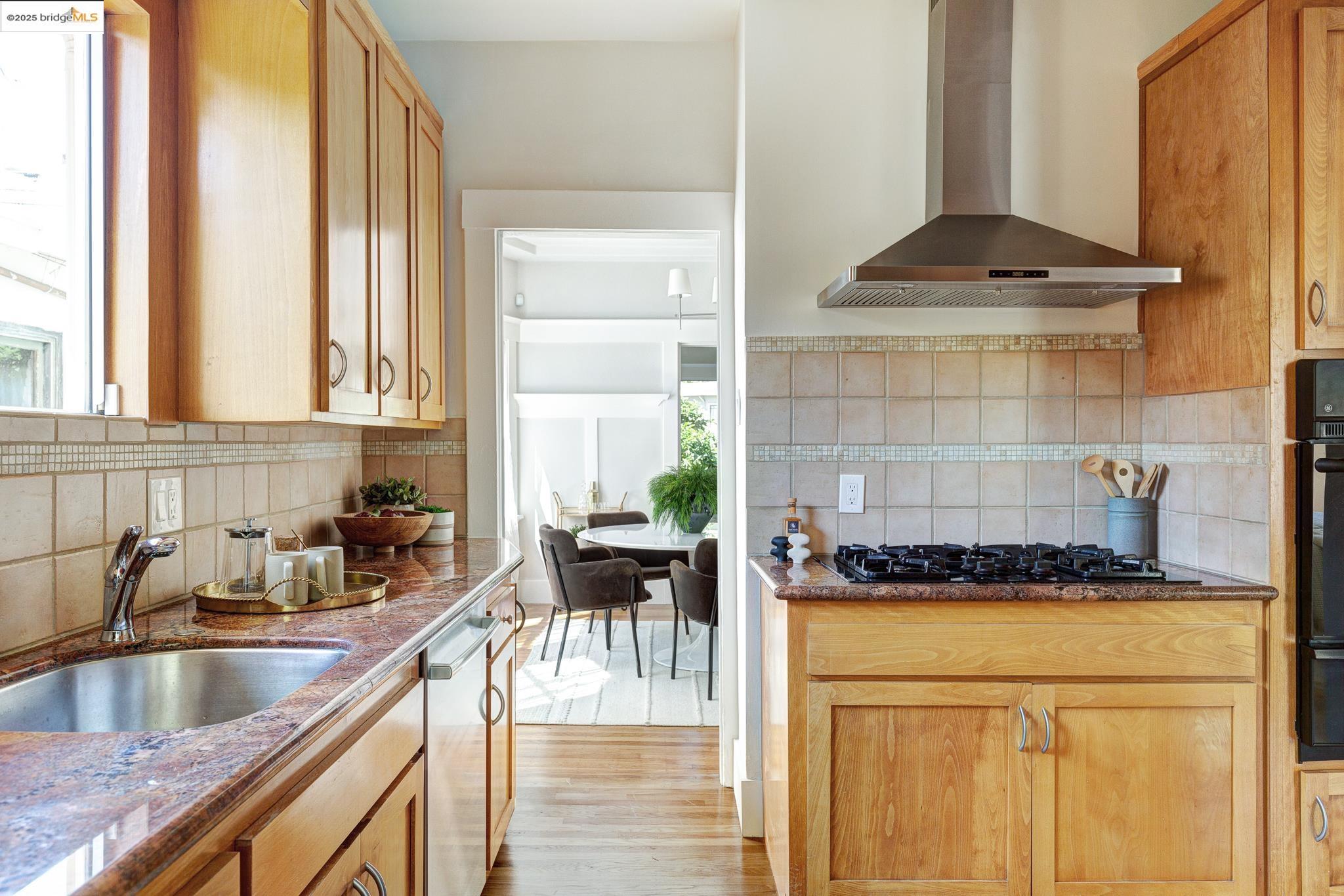 This beautiful Craftsman home sits in a central Rockridge sweet spot, filled with neighborhood charm and all the conveniences one needs. With a fantastic level floor plan, gorgeous hardwood floors flow naturally from room to room. Well-appointed windows fill the space with an abundance of light and the classic built-ins and a fireplace add that authentic Craftsman character you just can't replicate. The backyard is inviting and spacious with its brick patio great for a morning coffee or entertaining in the evening, and level lawn for warm weather play. Your kitchen adventures start right outside your door with a mature lemon tree and starter veggie garden ready to inspire your next culinary creation. Great shopping, restaurants and amenities are just moments away - Award winning Market Hall, Belotti, the weekly farmer's market, Wood Tavern and the Rockridge Library just to list a few of many! Quick access to the freeway and BART add even more urban connection and commute options to the cultural richness of the East Bay and SF. Picture your life unfolding in a warm and welcoming home within a vibrant community, 5626 Broadway is the place!