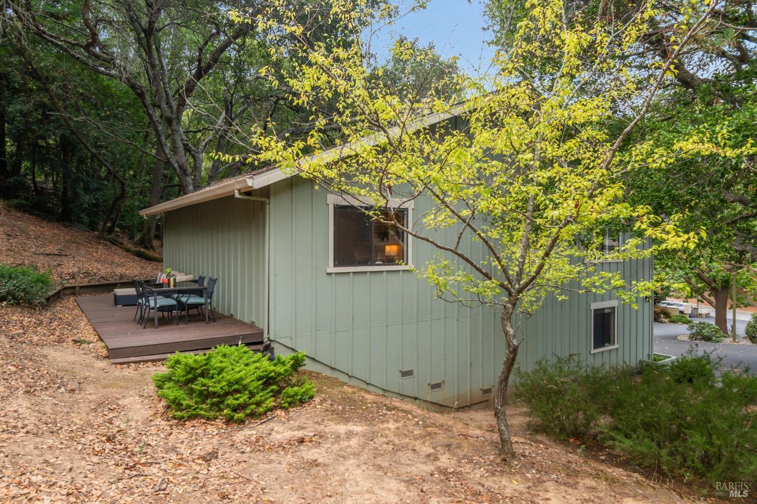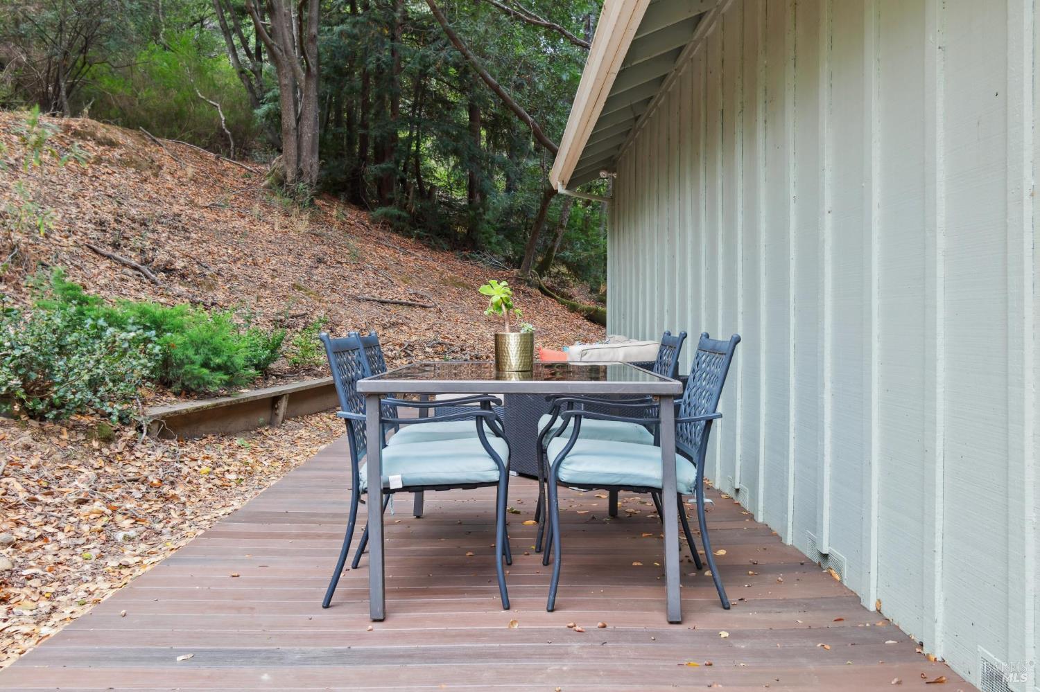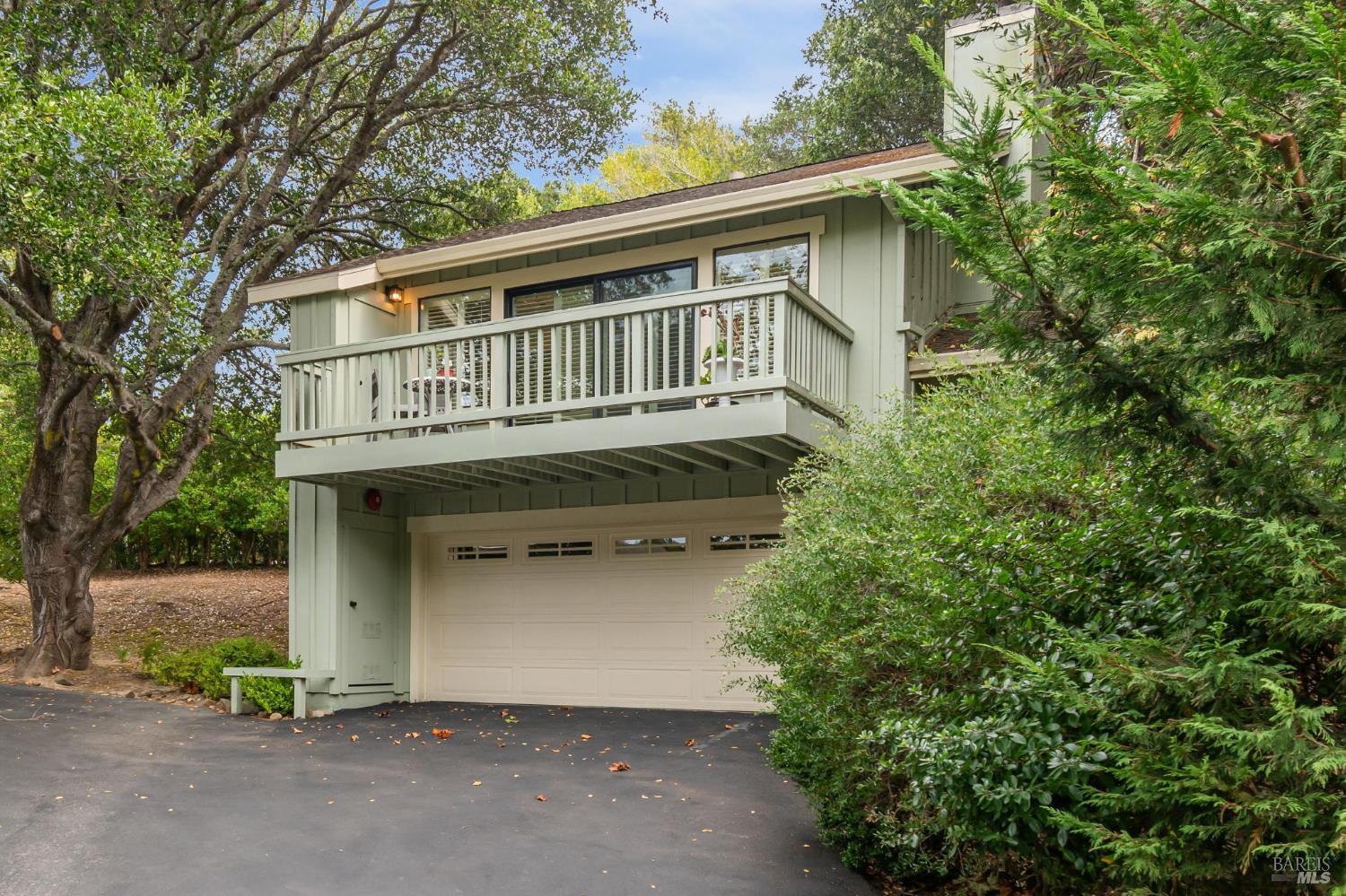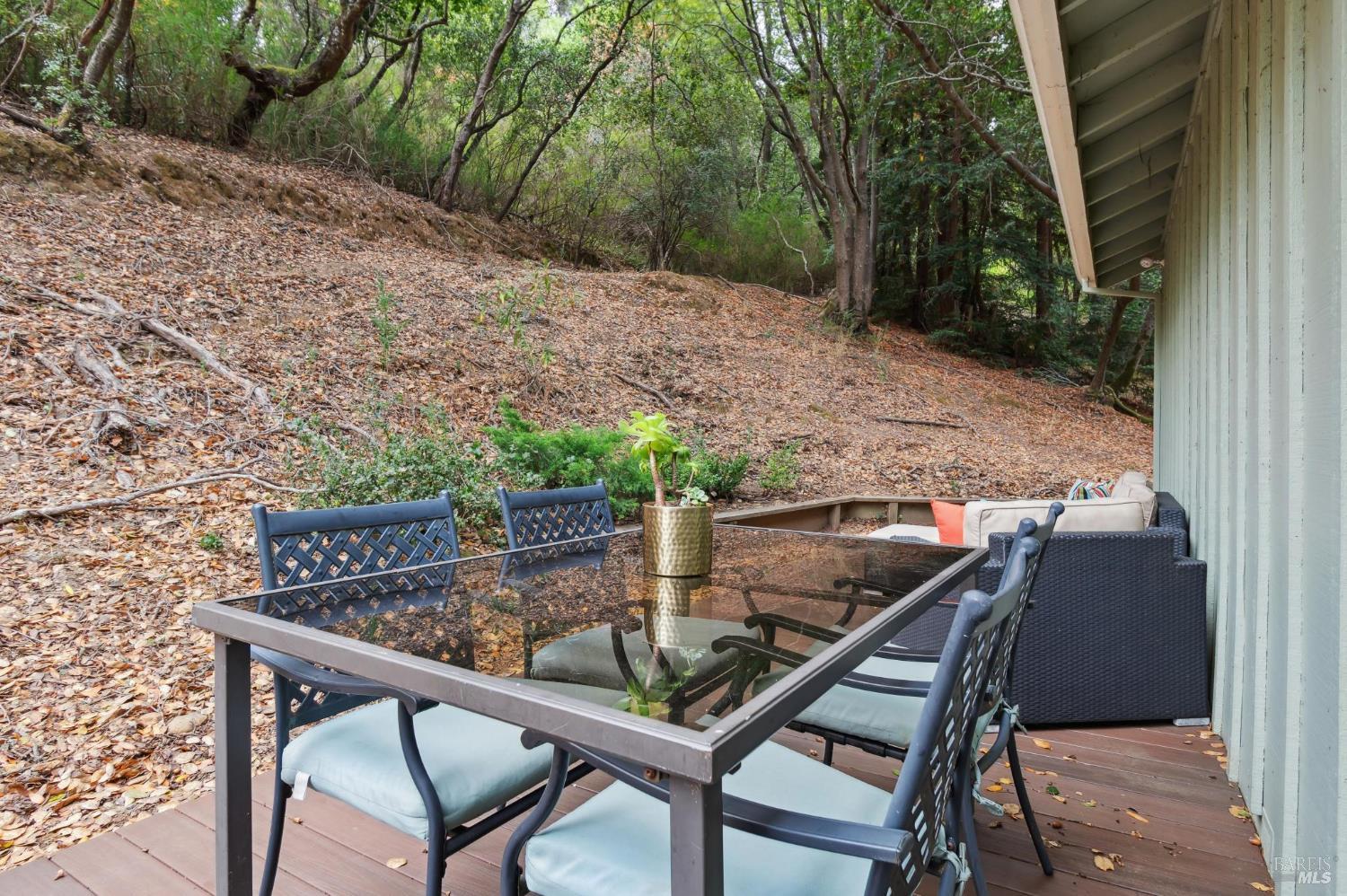 Ultra private, this fully-detached stand alone townhouse is nestled among the trees in the Quarry Meadows PUD community. Located at the end of a cul-de-sac, the nearest neighbor is 35-feet away, with only forest to the back and one side. Inside, the contemporary home is bright and inviting, with lots of windows and greenery outlooks. The spacious living room is warmed by a cozy fireplace, while the living room and dining area open onto a large front deck. The updated kitchen has stainless appliances and great natural light. The spacious primary bedroom with ensuite bath, opens onto a private deck. That deck wraps around to a third patio/deck facing peaceful open space. The second bedroom has built-in office cabinetry where you can work in a tranquil setting listening to the rustling trees. There is a second full bath and ample closet space. The 2-car attached garage with interior access has an abundance of built-in storage. Ideally located near award-winning schools, the Corte Madera Library, Peet's, and the restaurants and shops of Corte Madera Town Center and the Village.
