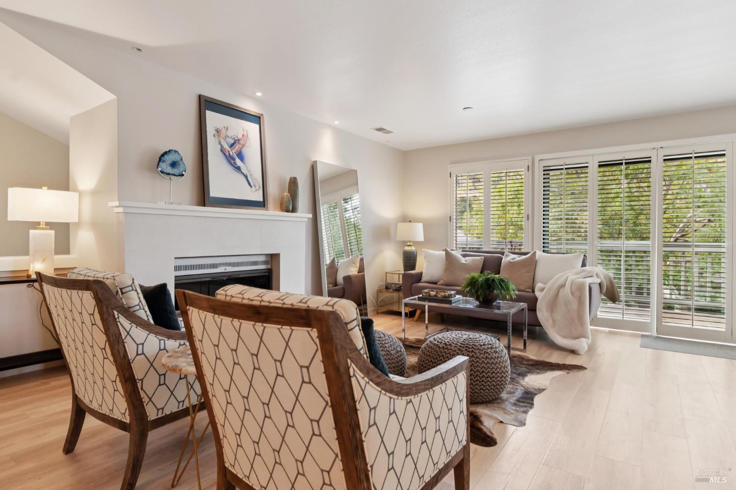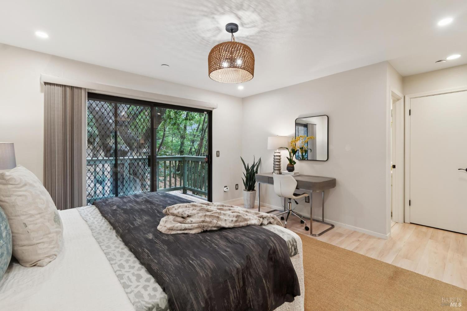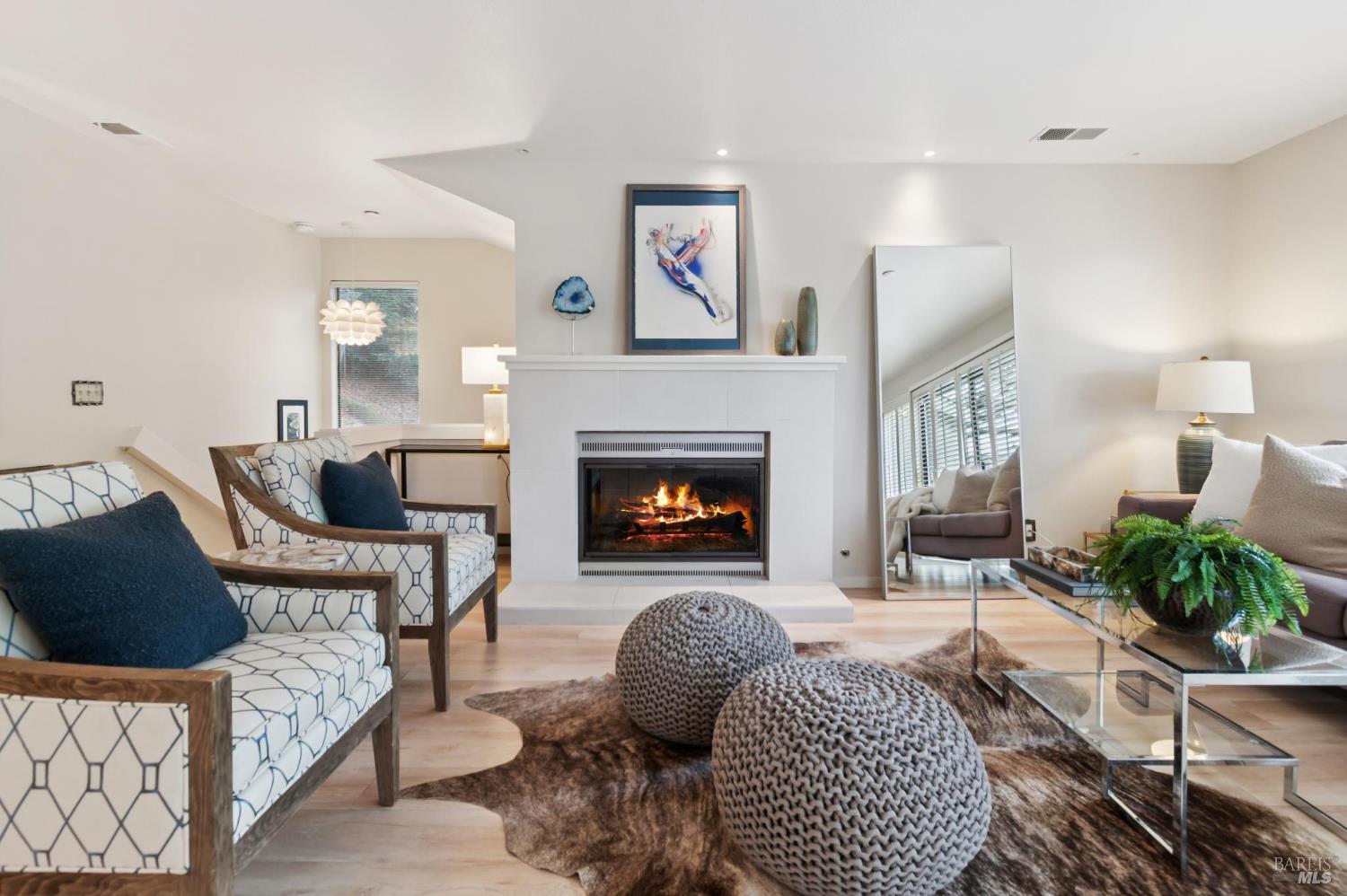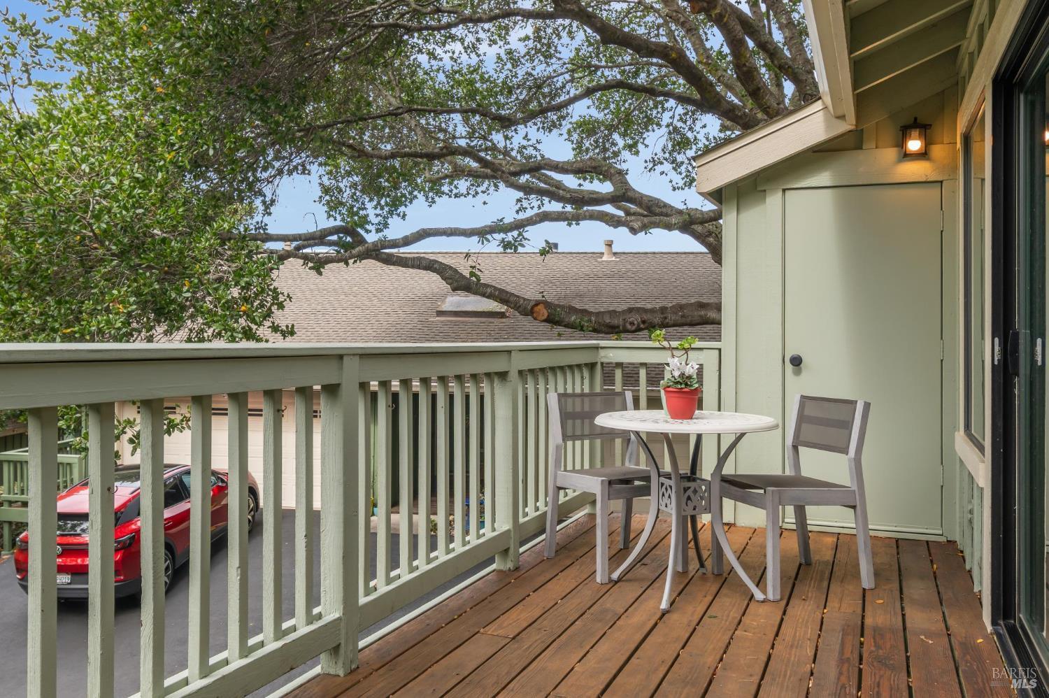 Ultra private, this fully-detached stand alone townhouse is nestled among the trees in the Quarry Meadows PUD community. Located at the end of a cul-de-sac, the nearest neighbor is 35-feet away, with only forest to the back and one side. Inside, the contemporary home is bright and inviting, with lots of windows and greenery outlooks. The spacious living room is warmed by a cozy fireplace, while the living room and dining area open onto a large front deck. The updated kitchen has stainless appliances and great natural light. The spacious primary bedroom with ensuite bath, opens onto a private deck. That deck wraps around to a third patio/deck facing peaceful open space. The second bedroom has built-in office cabinetry where you can work in a tranquil setting listening to the rustling trees. There is a second full bath and ample closet space. The 2-car attached garage with interior access has an abundance of built-in storage. Ideally located near award-winning schools, the Corte Madera Library, Peet's, and the restaurants and shops of Corte Madera Town Center and the Village.