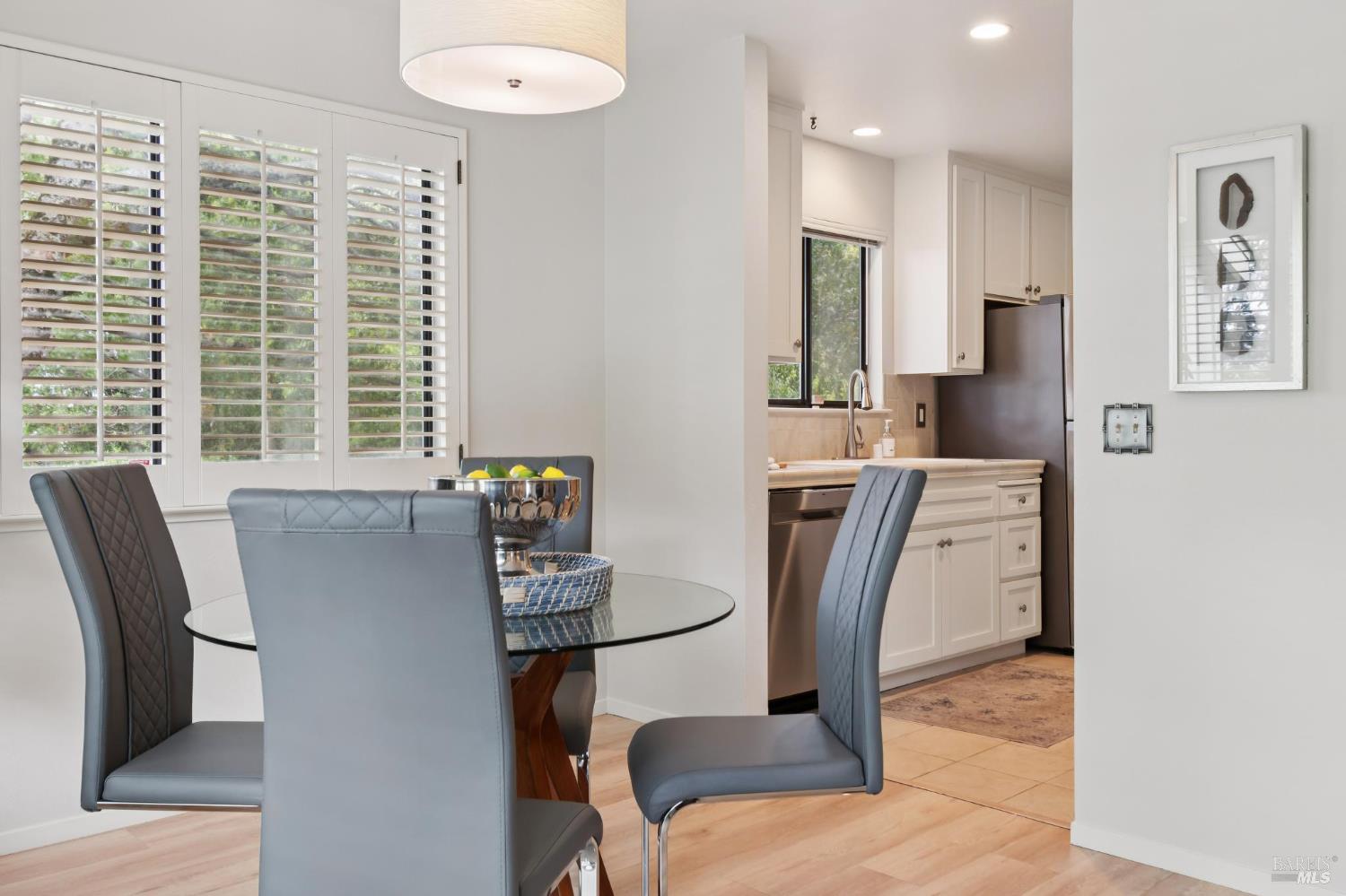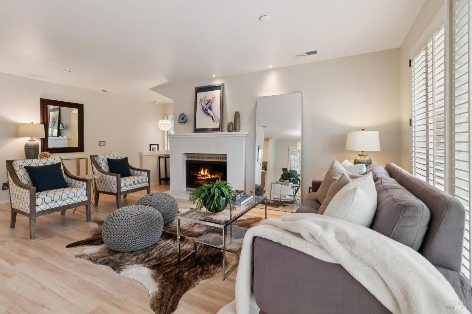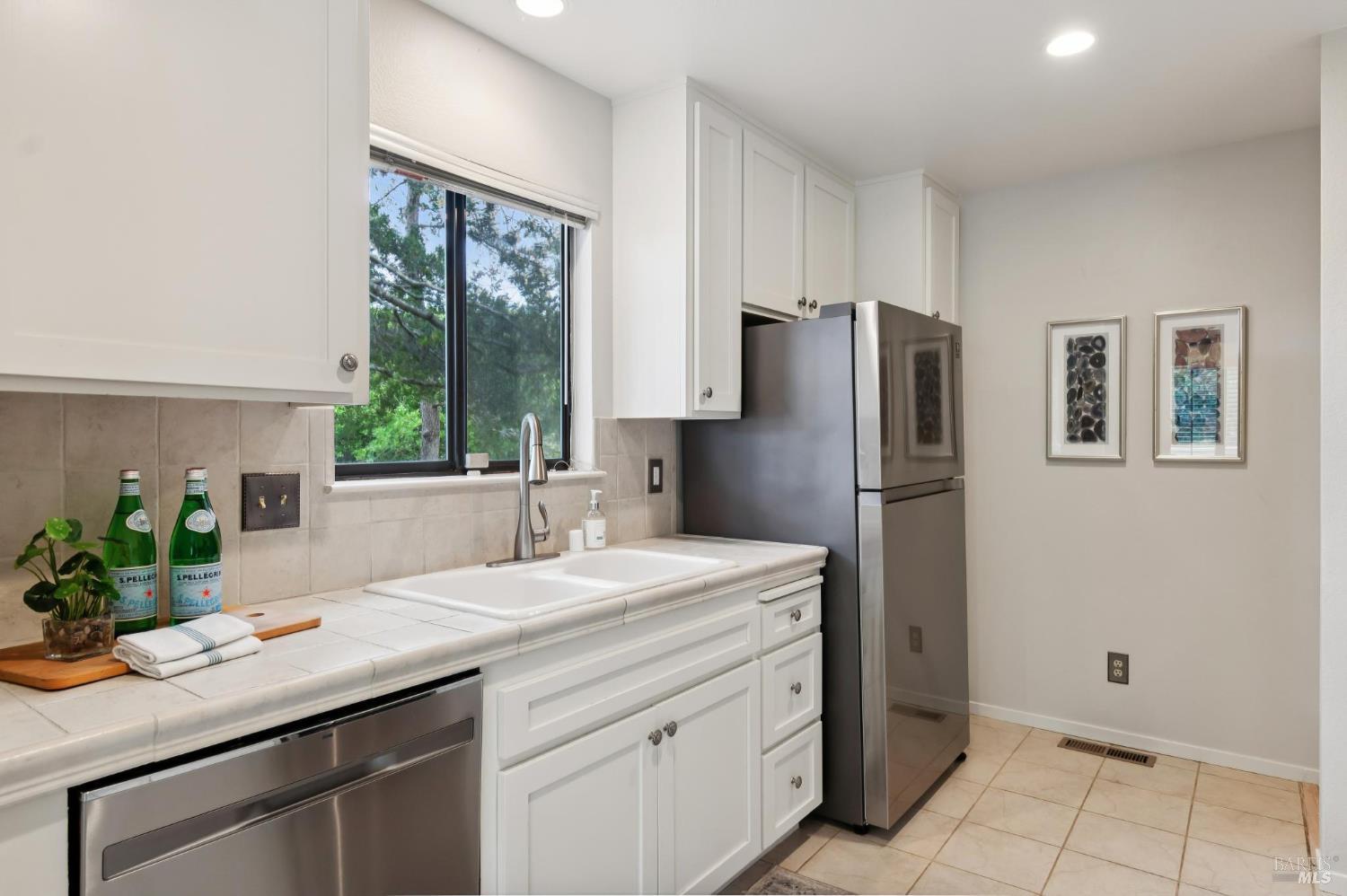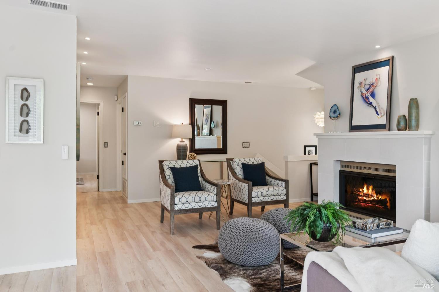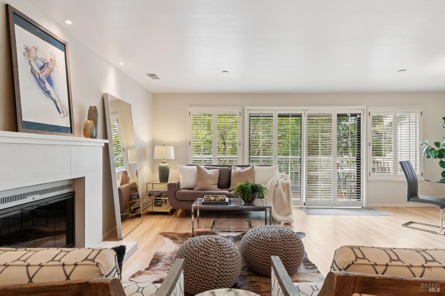 Ultra private, this fully-detached stand alone townhouse is nestled among the trees in the Quarry Meadows PUD community. Located at the end of a cul-de-sac, the nearest neighbor is 35-feet away, with only forest to the back and one side. Inside, the contemporary home is bright and inviting, with lots of windows and greenery outlooks. The spacious living room is warmed by a cozy fireplace, while the living room and dining area open onto a large front deck. The updated kitchen has stainless appliances and great natural light. The spacious primary bedroom with ensuite bath, opens onto a private deck. That deck wraps around to a third patio/deck facing peaceful open space. The second bedroom has built-in office cabinetry where you can work in a tranquil setting listening to the rustling trees. There is a second full bath and ample closet space. The 2-car attached garage with interior access has an abundance of built-in storage. Ideally located near award-winning schools, the Corte Madera Library, Peet's, and the restaurants and shops of Corte Madera Town Center and the Village.