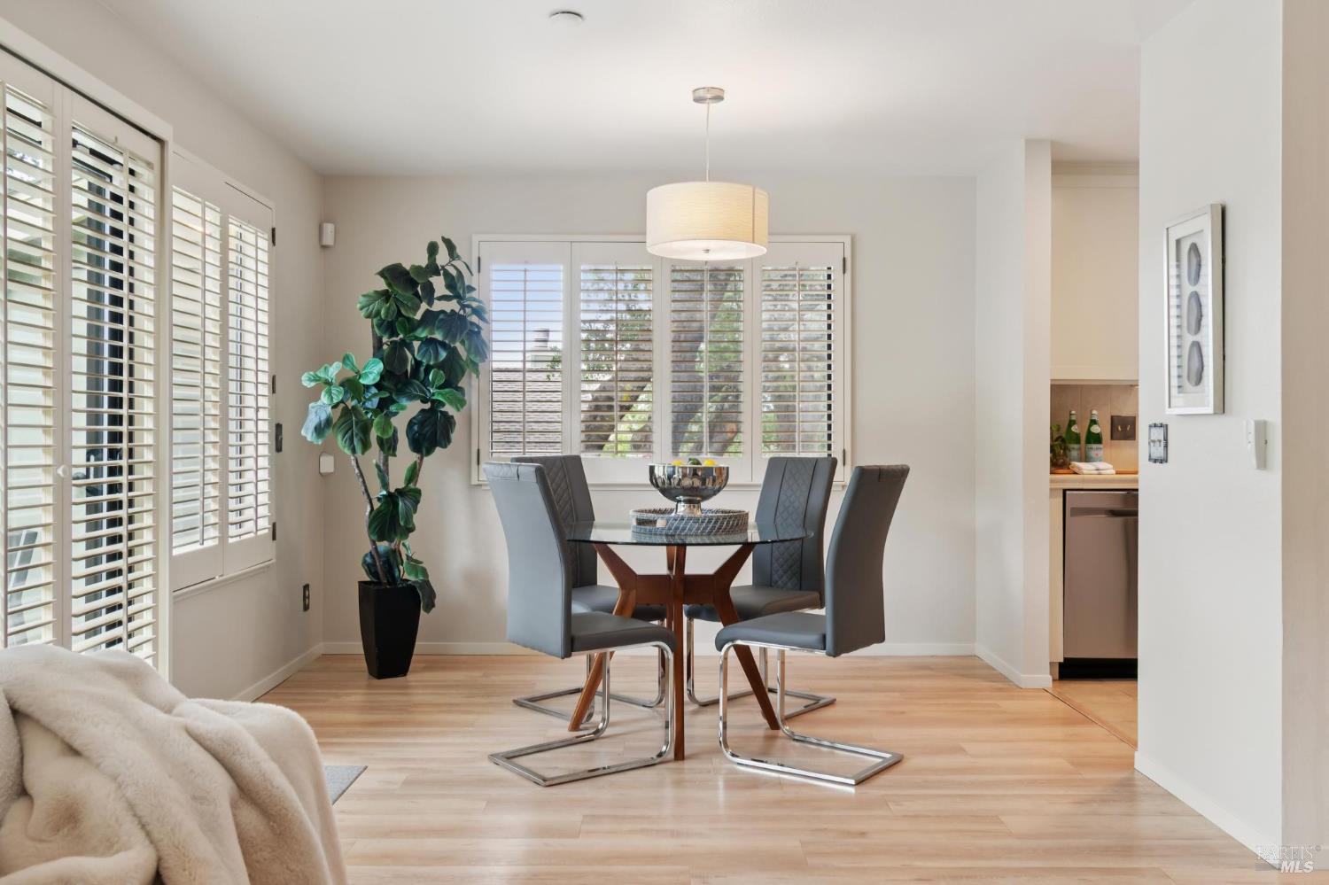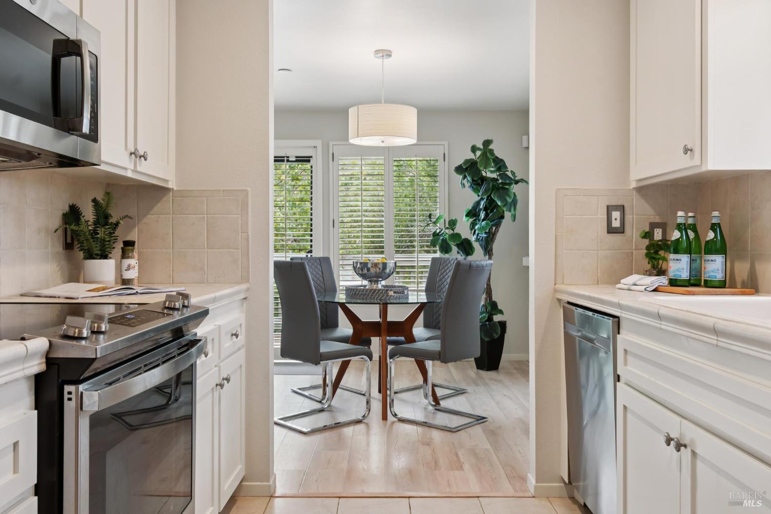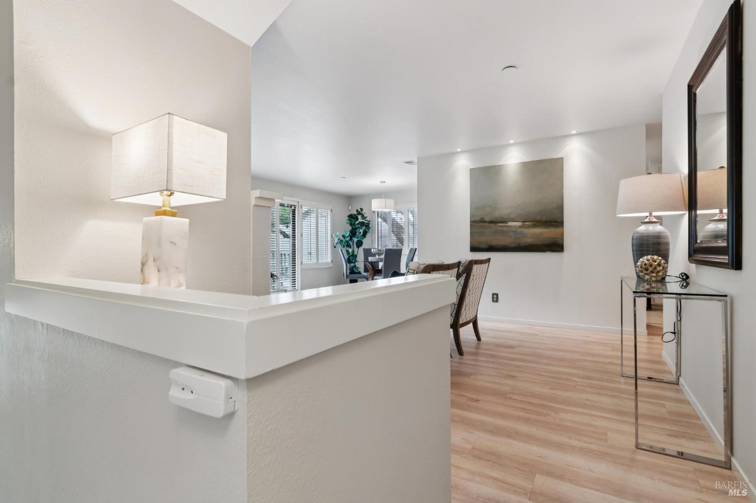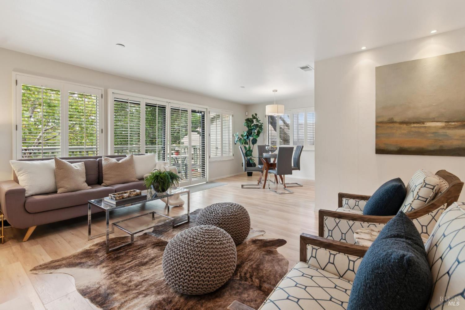 Ultra private, this fully-detached stand alone townhouse is nestled among the trees in the Quarry Meadows PUD community. Located at the end of a cul-de-sac, the nearest neighbor is 35-feet away, with only forest to the back and one side. Inside, the contemporary home is bright and inviting, with lots of windows and greenery outlooks. The spacious living room is warmed by a cozy fireplace, while the living room and dining area open onto a large front deck. The updated kitchen has stainless appliances and great natural light. The spacious primary bedroom with ensuite bath, opens onto a private deck. That deck wraps around to a third patio/deck facing peaceful open space. The second bedroom has built-in office cabinetry where you can work in a tranquil setting listening to the rustling trees. There is a second full bath and ample closet space. The 2-car attached garage with interior access has an abundance of built-in storage. Ideally located near award-winning schools, the Corte Madera Library, Peet's, and the restaurants and shops of Corte Madera Town Center and the Village.