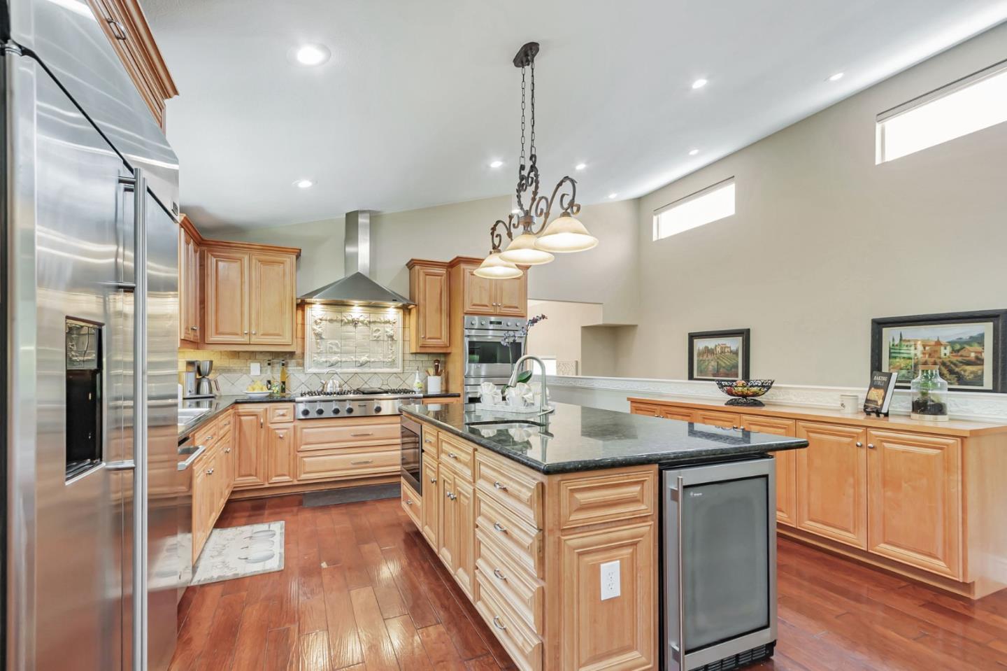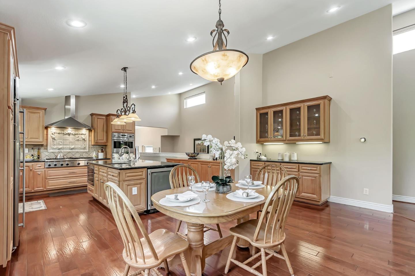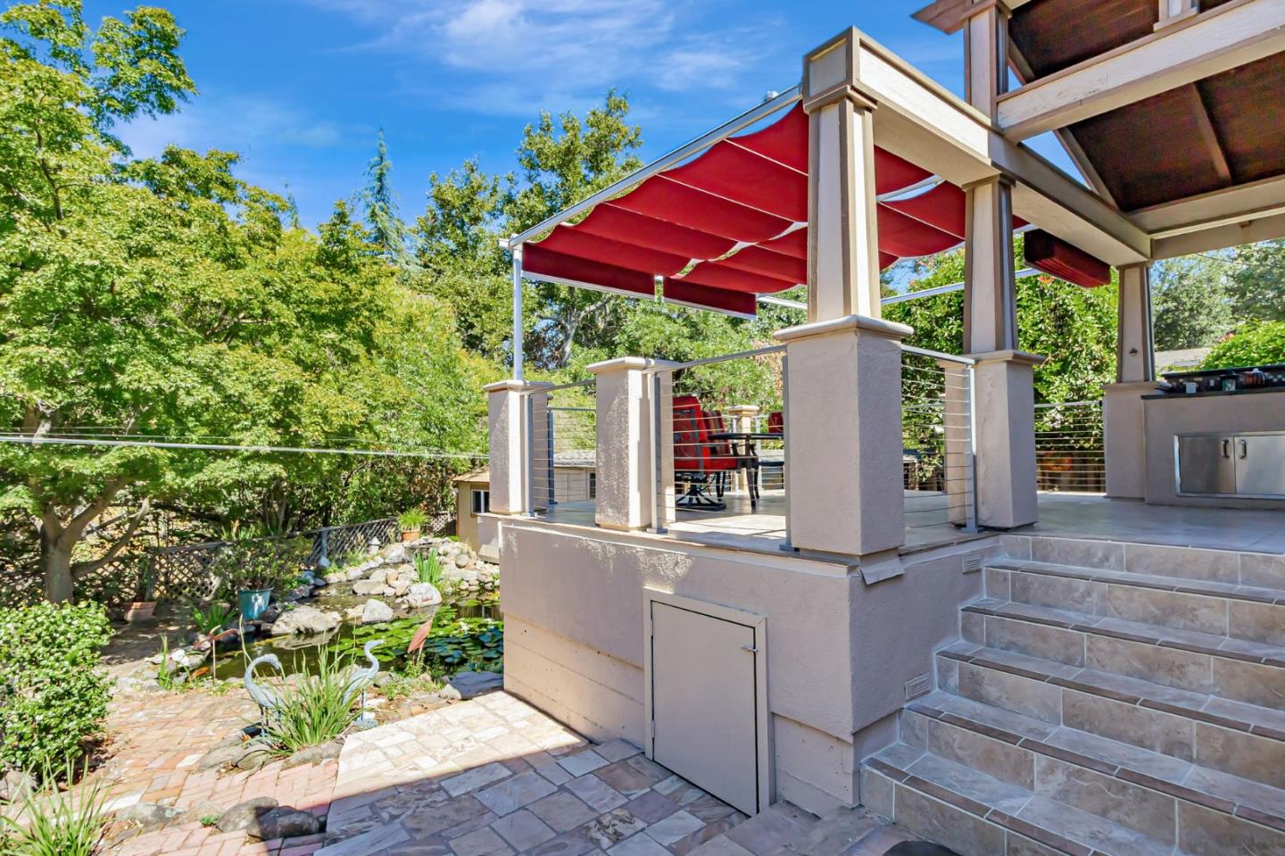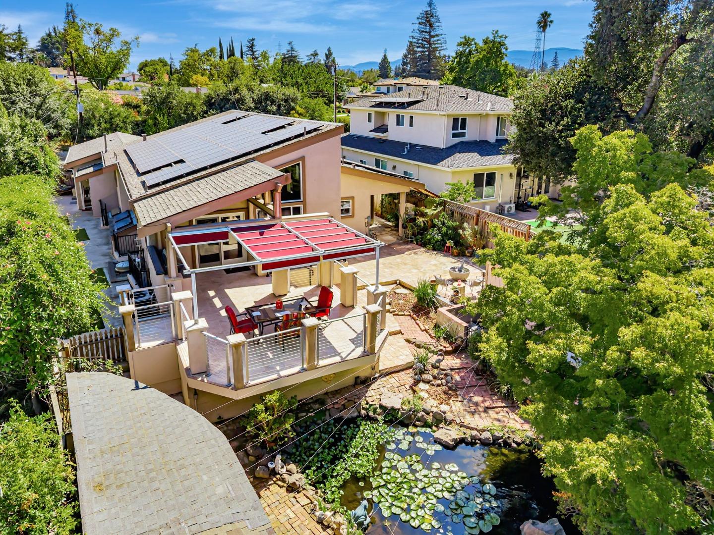 Built with multi-generational living in mind, the home offers an intelligent flow, abundant natural light, & carefully curated spaces for privacy & togetherness. In 2005, this beloved family home underwent a massive renovation designed by a Japanese architect. Spacious, open-concept layout features a large island with a beverage station, dual sinks, dual ovens, a warming drawer, a microwave, & a Thermador professional 48" gas range. GE Monogram appliances, 48" refrigerator, multiple built-in buffets, walk-in pantry offers ample storage, perfect for hosting family gatherings or entertaining guests. Two levels, 9-10' ceilings, high vaulted ceiling in main living area. Private in-law suite with two rooms, ensuite, separate entrance and laundry on main level. Primary bedroom with en suite seating area, dedicated office. Front yard features a beautiful rose garden and a cozy sitting nook, perfect for quiet moments outdoors. Step outside to discover a serene koi pond, surrounded by landscaped backyard creating an inviting & peaceful retreat. Garage converted to recreation room not included in living space. Garage door is functional and seller will consider converting back to garage. Solar with 3 Tesla batteries, EV outlet. Home is a MUST SEE to truly experience the space and size.