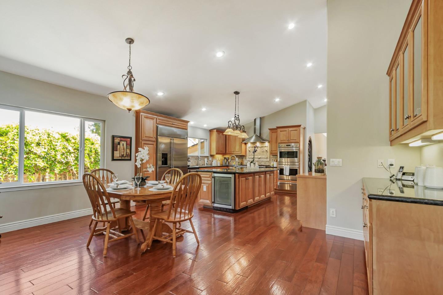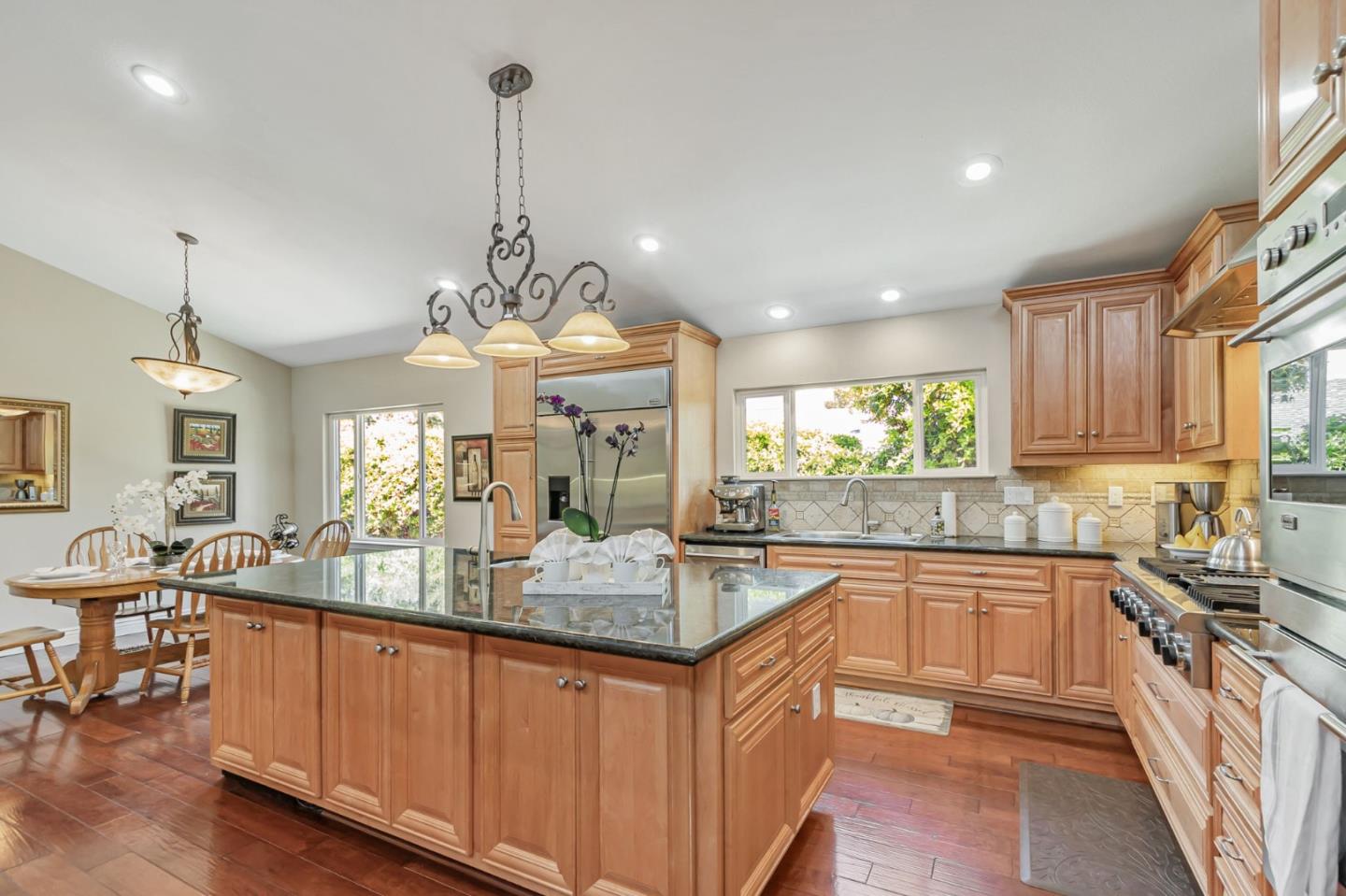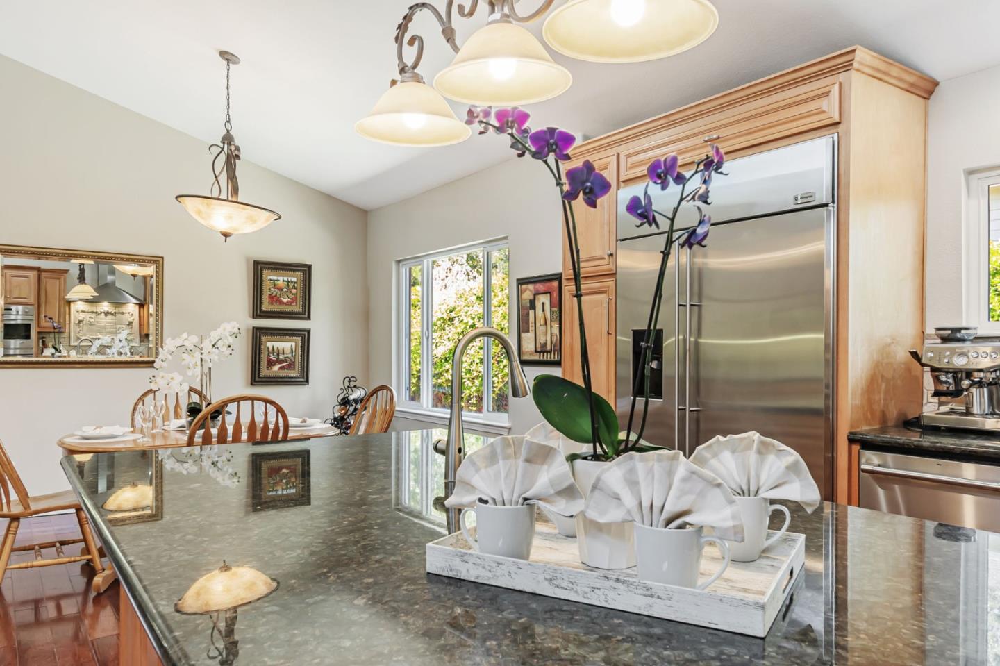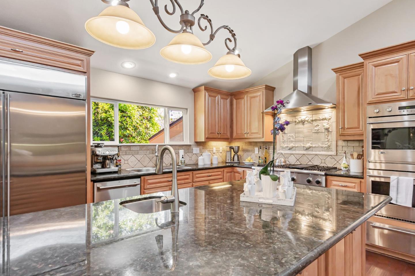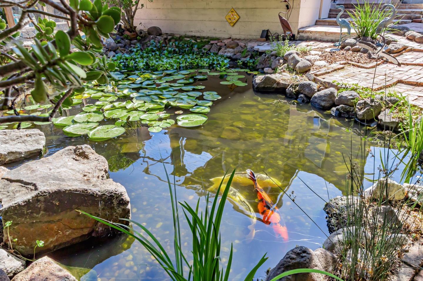 Built with multi-generational living in mind, the home offers an intelligent flow, abundant natural light, & carefully curated spaces for privacy & togetherness. In 2005, this beloved family home underwent a massive renovation designed by a Japanese architect. Spacious, open-concept layout features a large island with a beverage station, dual sinks, dual ovens, a warming drawer, a microwave, & a Thermador professional 48" gas range. GE Monogram appliances, 48" refrigerator, multiple built-in buffets, walk-in pantry offers ample storage, perfect for hosting family gatherings or entertaining guests. Two levels, 9-10' ceilings, high vaulted ceiling in main living area. Private in-law suite with two rooms, ensuite, separate entrance and laundry on main level. Primary bedroom with en suite seating area, dedicated office. Front yard features a beautiful rose garden and a cozy sitting nook, perfect for quiet moments outdoors. Step outside to discover a serene koi pond, surrounded by landscaped backyard creating an inviting & peaceful retreat. Garage converted to recreation room not included in living space. Garage door is functional and seller will consider converting back to garage. Solar with 3 Tesla batteries, EV outlet. Home is a MUST SEE to truly experience the space and size.