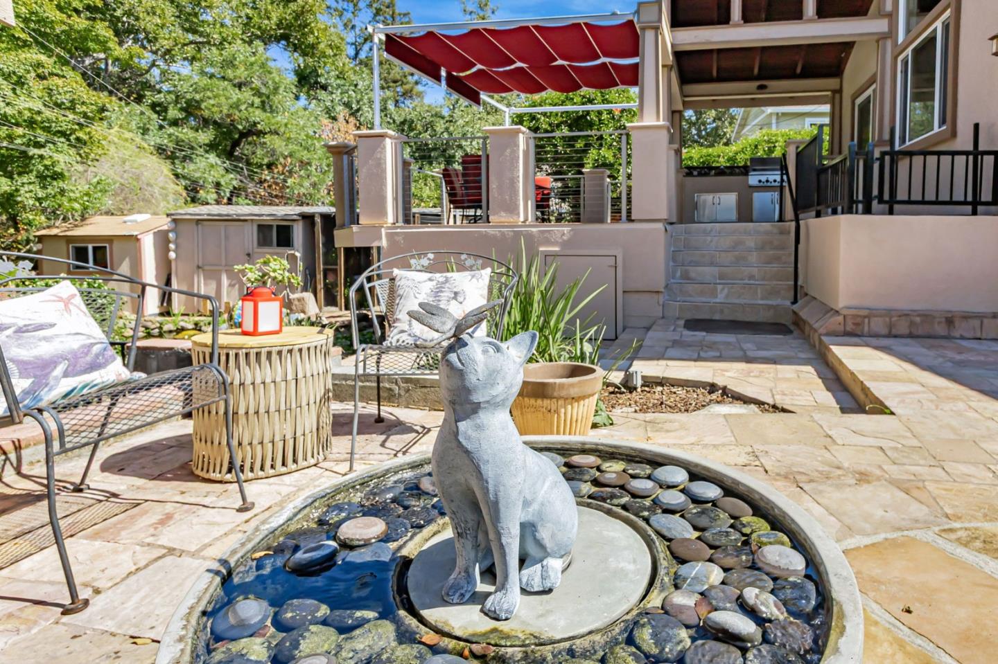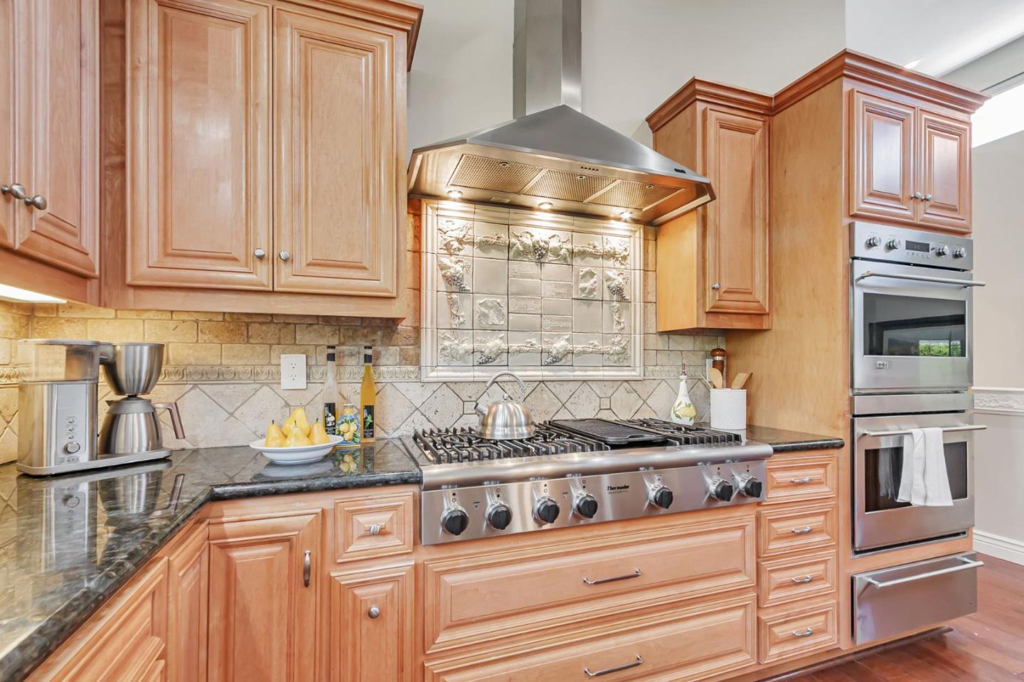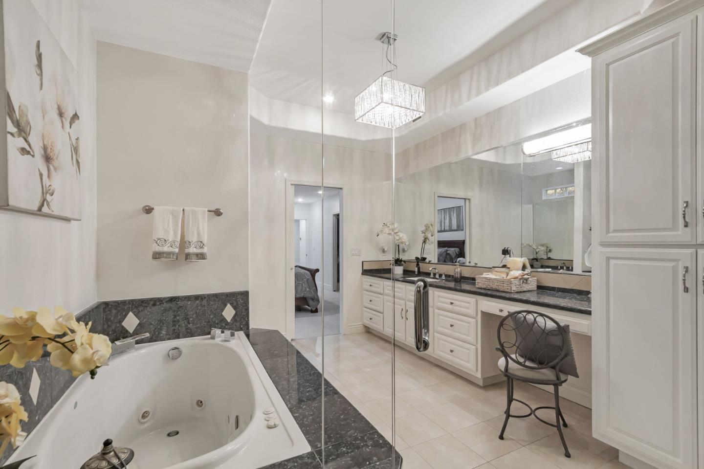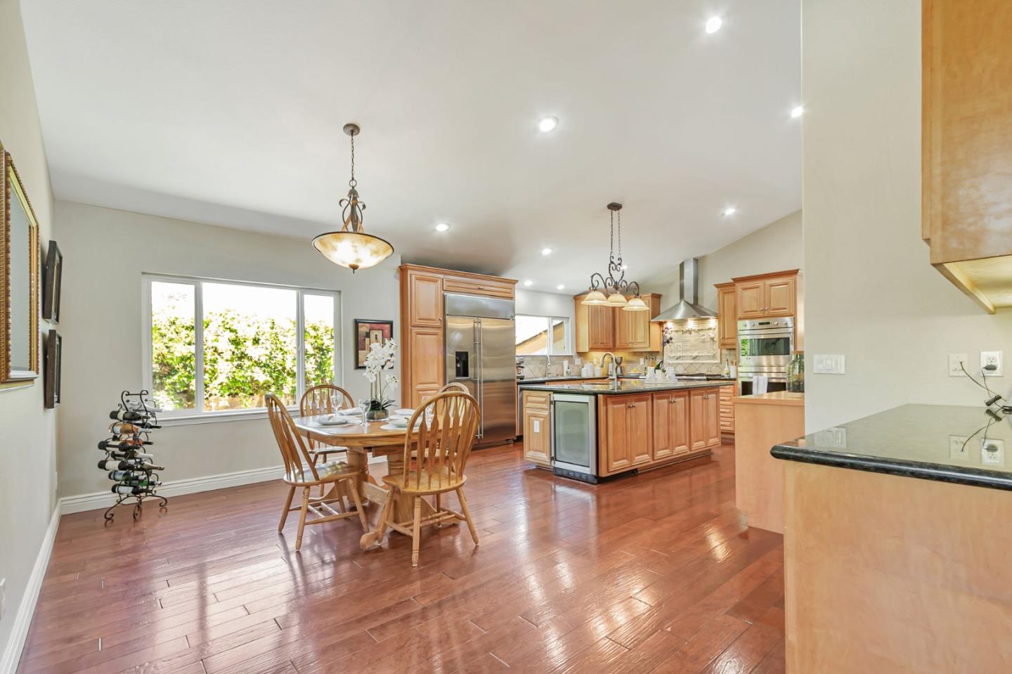 Built with multi-generational living in mind, the home offers an intelligent flow, abundant natural light, & carefully curated spaces for privacy & togetherness. In 2005, this beloved family home underwent a massive renovation designed by a Japanese architect. Spacious, open-concept layout features a large island with a beverage station, dual sinks, dual ovens, a warming drawer, a microwave, & a Thermador professional 48" gas range. GE Monogram appliances, 48" refrigerator, multiple built-in buffets, walk-in pantry offers ample storage, perfect for hosting family gatherings or entertaining guests. Two levels, 9-10' ceilings, high vaulted ceiling in main living area. Private in-law suite with two rooms, ensuite, separate entrance and laundry on main level. Primary bedroom with en suite seating area, dedicated office. Front yard features a beautiful rose garden and a cozy sitting nook, perfect for quiet moments outdoors. Step outside to discover a serene koi pond, surrounded by landscaped backyard creating an inviting & peaceful retreat. Garage converted to recreation room not included in living space. Garage door is functional and seller will consider converting back to garage. Solar with 3 Tesla batteries, EV outlet. Home is a MUST SEE to truly experience the space and size.