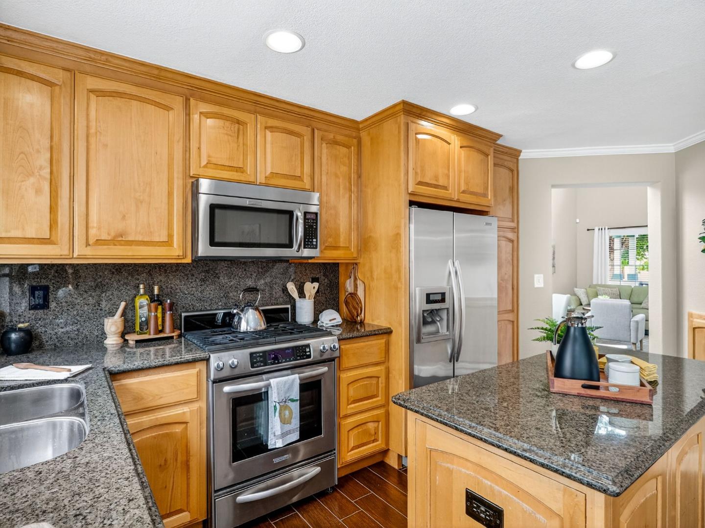 Welcome to this quiet, established neighborhood in the northwest quadrant of Gilroy. This stylish 4-bedroom, 3-bath home combines comfort and practicality with an inviting kitchen equipped with granite counters, a gas oven, warming drawer, stainless steel appliances including a refrigerator. The kitchen/family room combo is perfect for gatherings with easy access to the newly landscaped backyard for outdoor entertainment under the gazebo. Enjoy a cozy evening by the gas fireplace or lounge in the living/dining room with a favorite book. Freshly painted interior, new carpet and luxury vinyl planks, new light bars in the bathrooms, new blinds on most windows, and new canned lighting make this the perfect, move-in ready home. Enjoy ease of access to schools, shopping, restaurants, parks and wineries.
