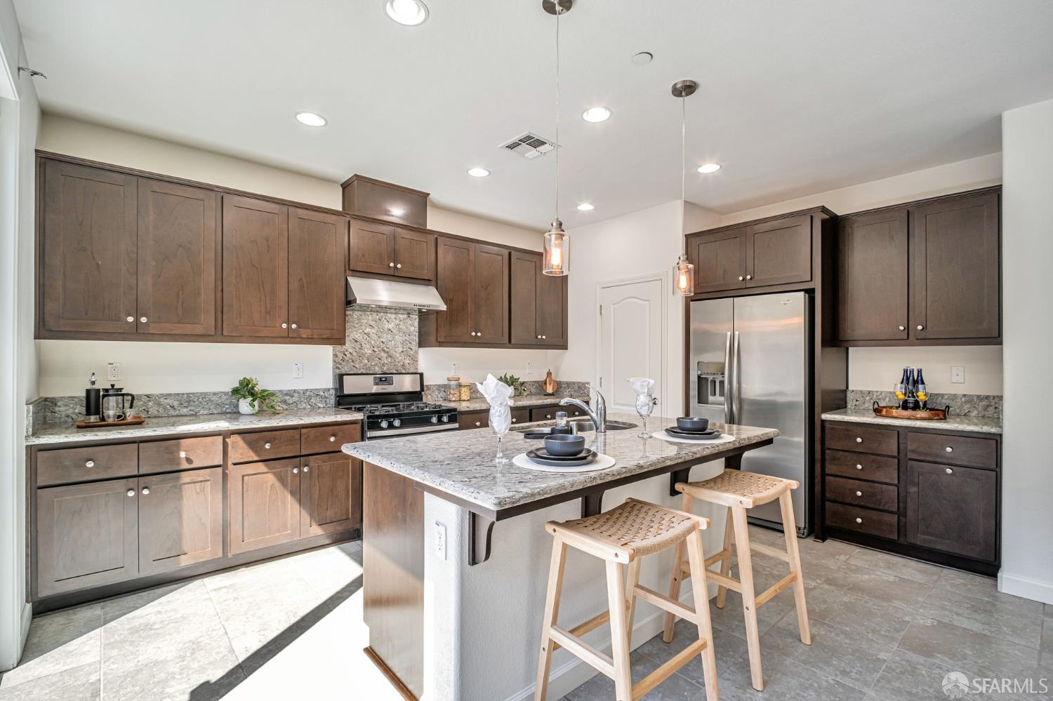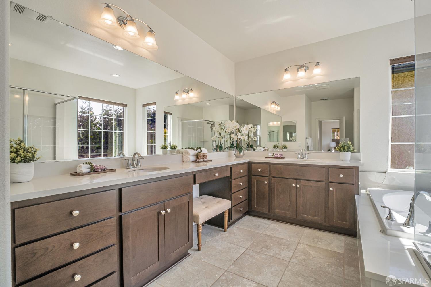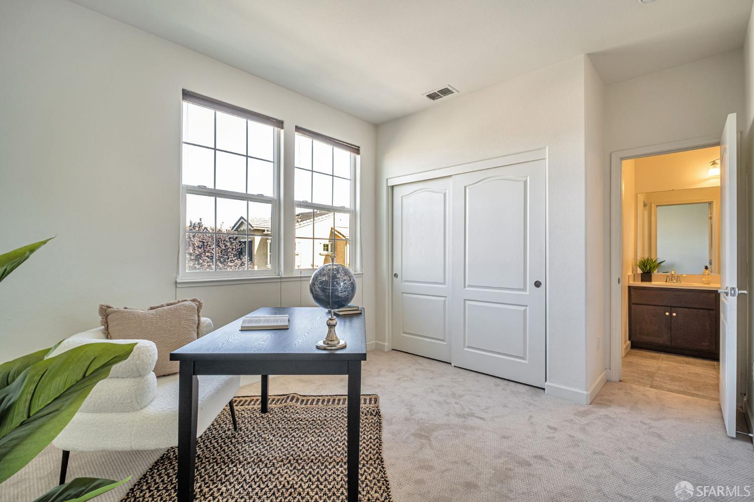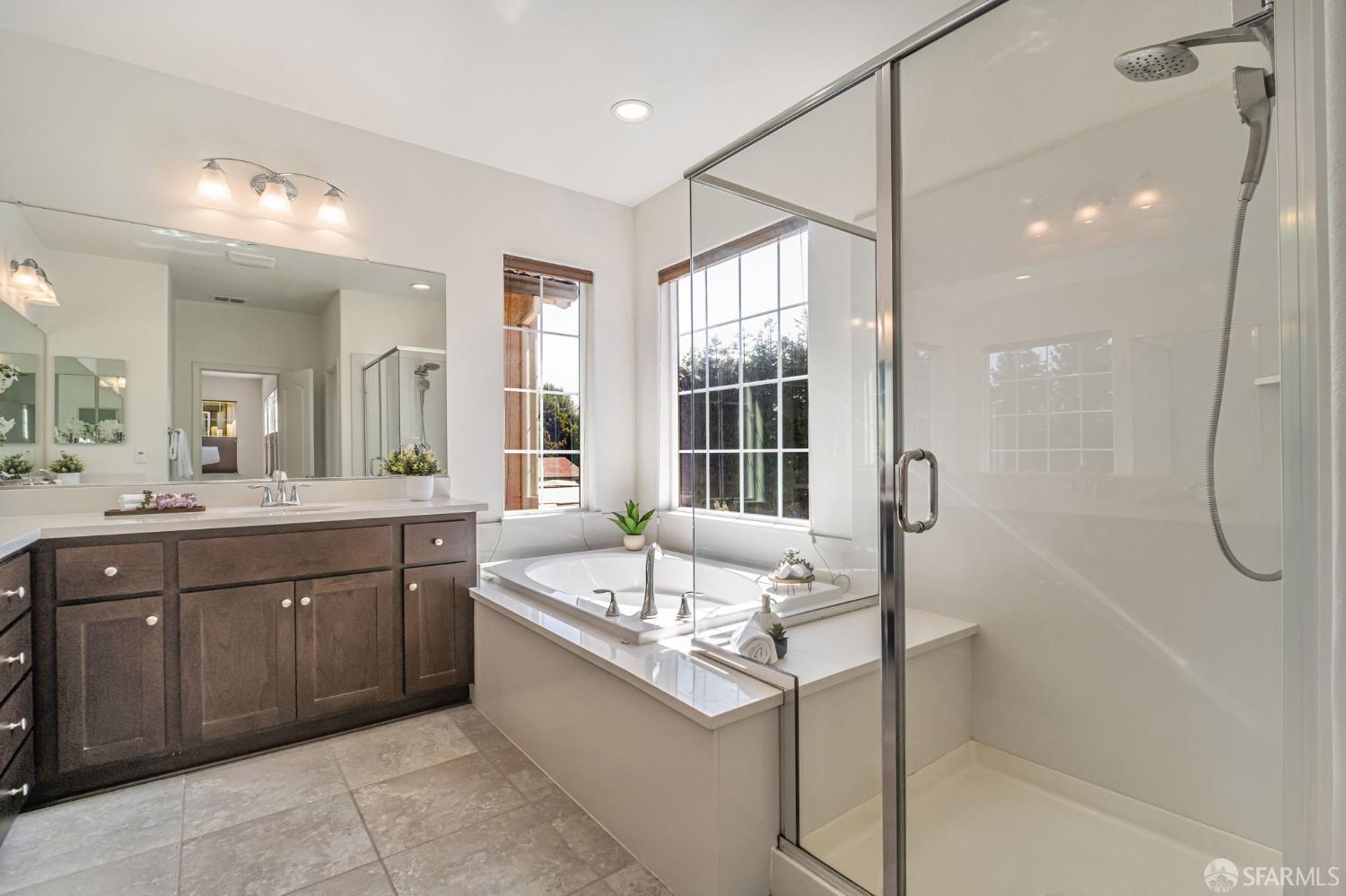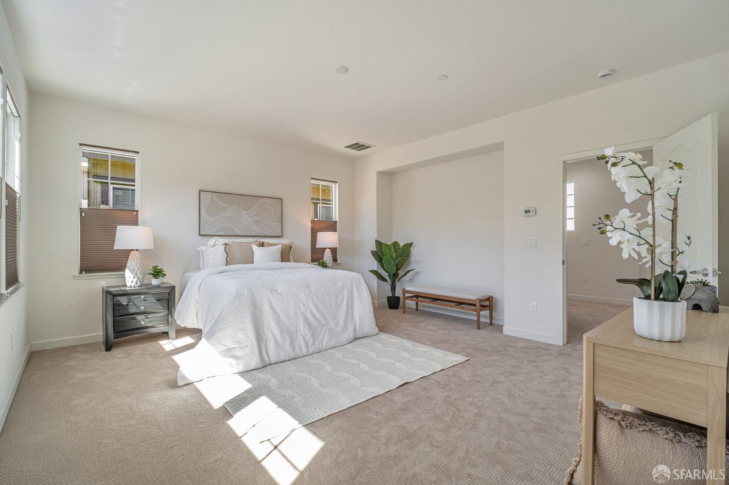 Do not miss this gorgeous four bedroom, three bath home in a beautifully and quiet community. The bright and elegant main level features large living room, large open kitchen with sleek stone countertops and big island. Full of natural light. Conveniently located on the main floor with a spacious bedroom and a full bathroom, offering flexibility for multi-generational living or office or guests. Upstairs features generous large primary suite, walk-in closet, luxurious ensuite bath featuring a large soaking tub, separate standing shower, sitting area for your make-up inside the primary bathroom. Two additional bedrooms and another full bath, large laundry room complete the upper level. Must see house!