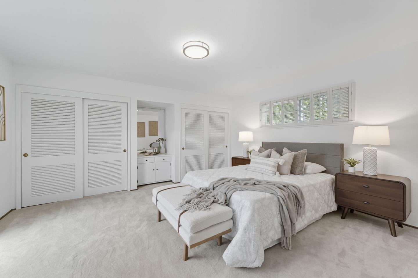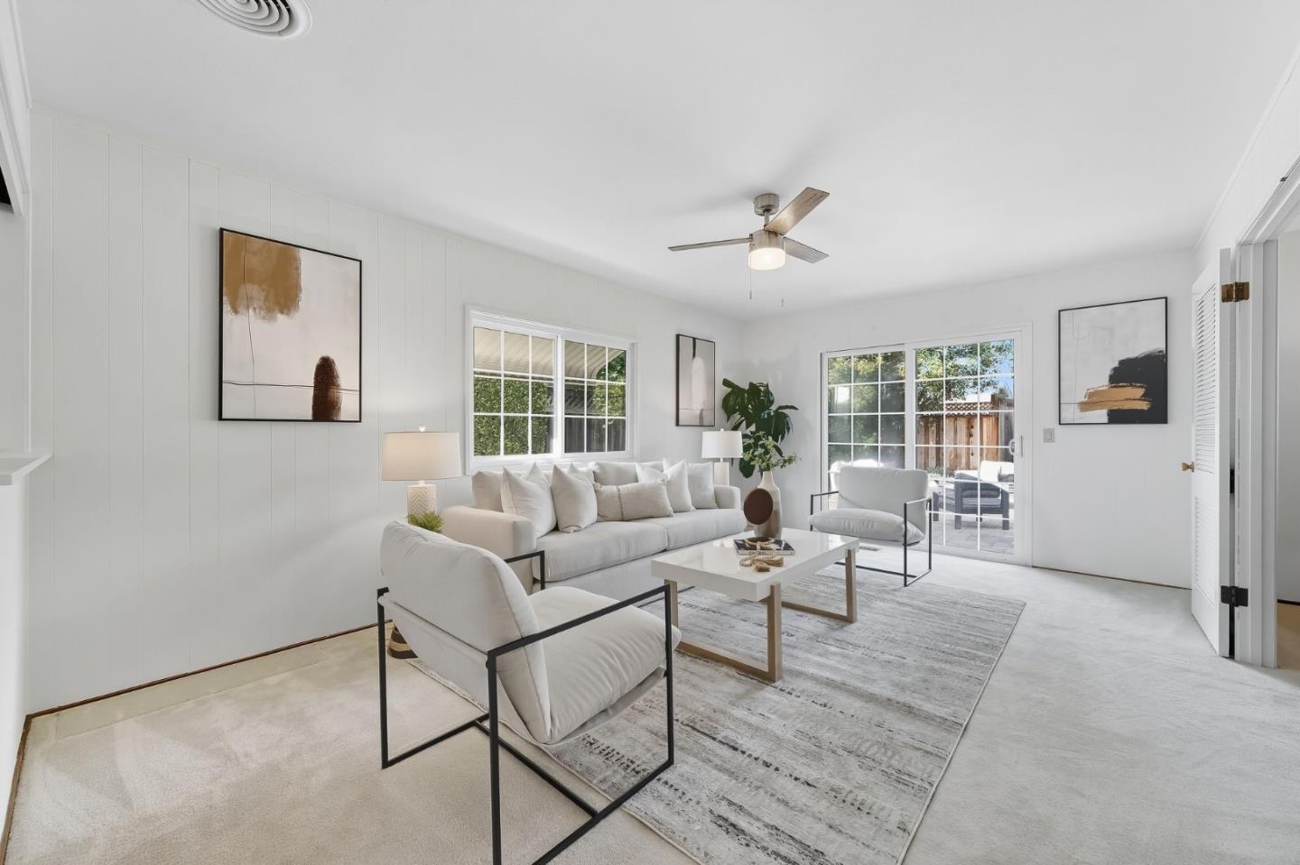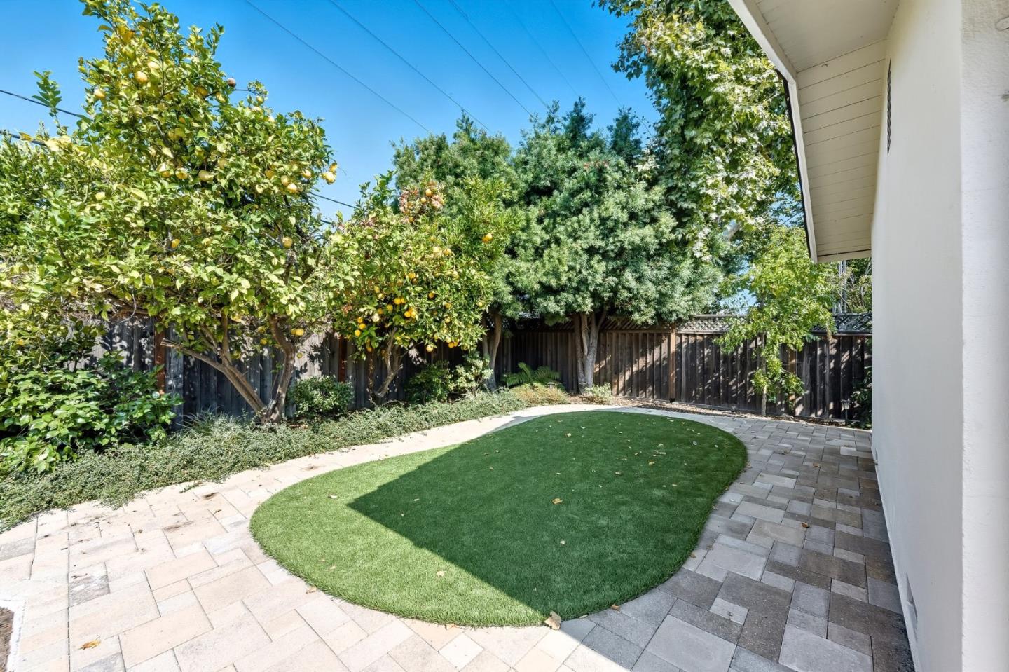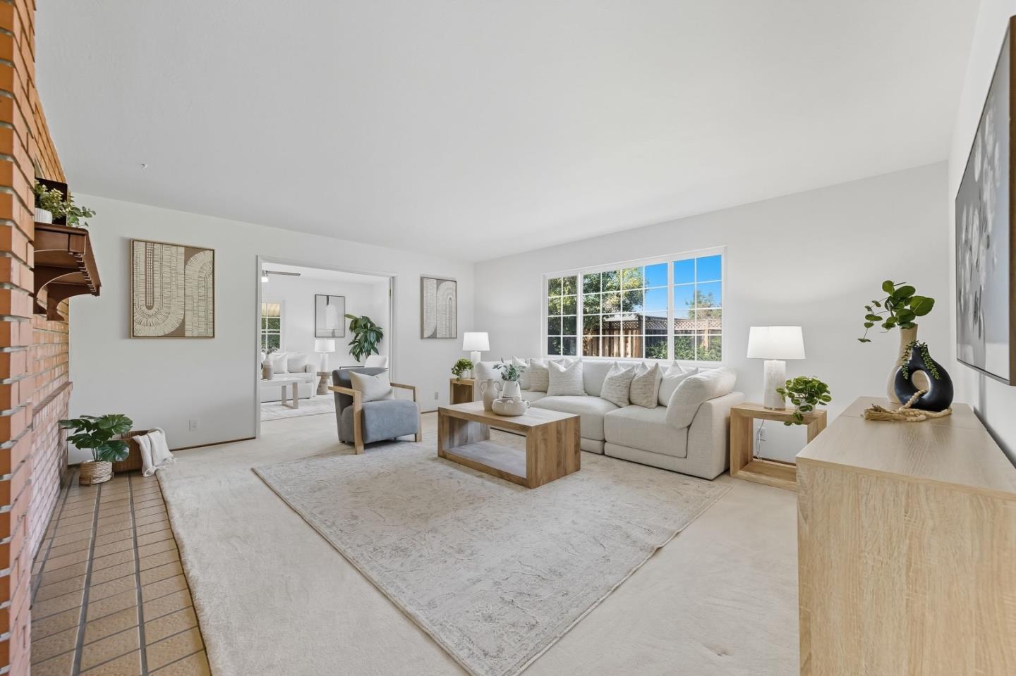 Tucked away on a peaceful street, this classic, beautifully maintained home combines timeless charm with a thoughtful layout. With a generous-sized family room and open living room, the home is perfect for entertaining. The spacious kitchen, complete with a dining area, stainless steel appliances and indoor brick barbecue offers ample cabinet space and is perfect for the home chef. The adjacent family room provides views of the landscaped yard with a large sliding glass door, while the expansive living room offers a cozy fireplace and picturesque windows. Four spacious bedrooms lead to an updated hall bath with dual sinks, granite counters and modern finishes. The primary suite features dual closets, a vanity area, and a sliding glass door to the backyard. Its renovated bathroom boasts dual sinks, frameless shower doors, and stylish fixtures. Additional features of the home include dual-paned windows, AC and new interior paint. Outdoors, the private backyard is perfect for relaxing, featuring paved patio areas, a green lawn and an abundance of mature fruit trees. Located on a peaceful street within the sought-after Cupertino school district, this home has it all and is close to shopping, dining, parks and provides easy commute access to leading technology companies.