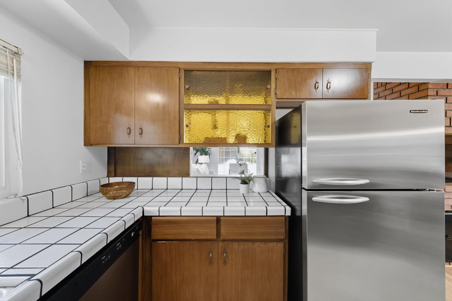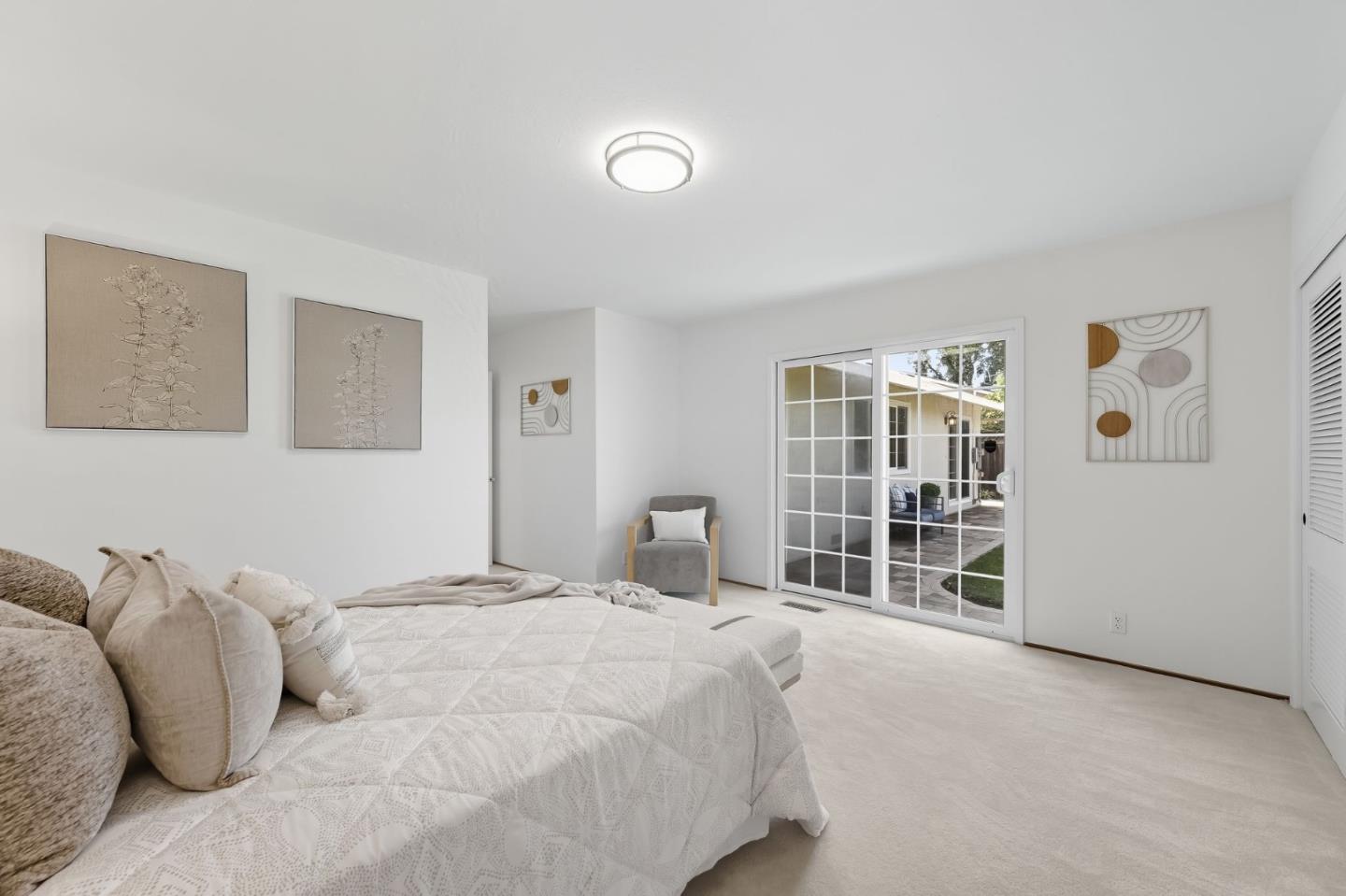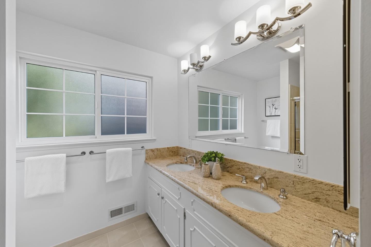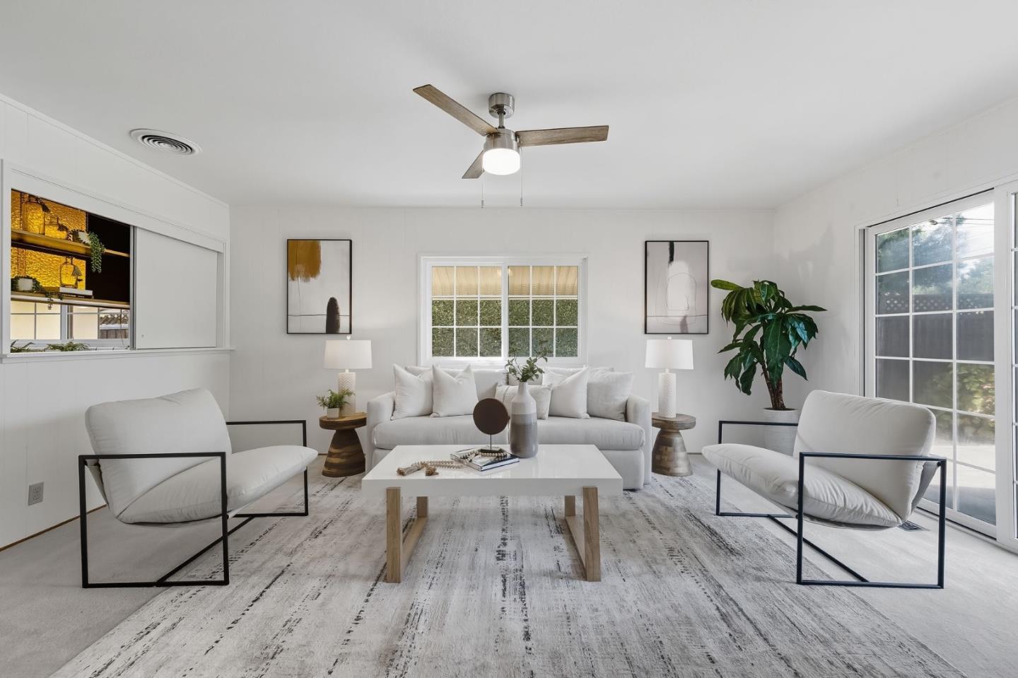 Tucked away on a peaceful street, this classic, beautifully maintained home combines timeless charm with a thoughtful layout. With a generous-sized family room and open living room, the home is perfect for entertaining. The spacious kitchen, complete with a dining area, stainless steel appliances and indoor brick barbecue offers ample cabinet space and is perfect for the home chef. The adjacent family room provides views of the landscaped yard with a large sliding glass door, while the expansive living room offers a cozy fireplace and picturesque windows. Four spacious bedrooms lead to an updated hall bath with dual sinks, granite counters and modern finishes. The primary suite features dual closets, a vanity area, and a sliding glass door to the backyard. Its renovated bathroom boasts dual sinks, frameless shower doors, and stylish fixtures. Additional features of the home include dual-paned windows, AC and new interior paint. Outdoors, the private backyard is perfect for relaxing, featuring paved patio areas, a green lawn and an abundance of mature fruit trees. Located on a peaceful street within the sought-after Cupertino school district, this home has it all and is close to shopping, dining, parks and provides easy commute access to leading technology companies.