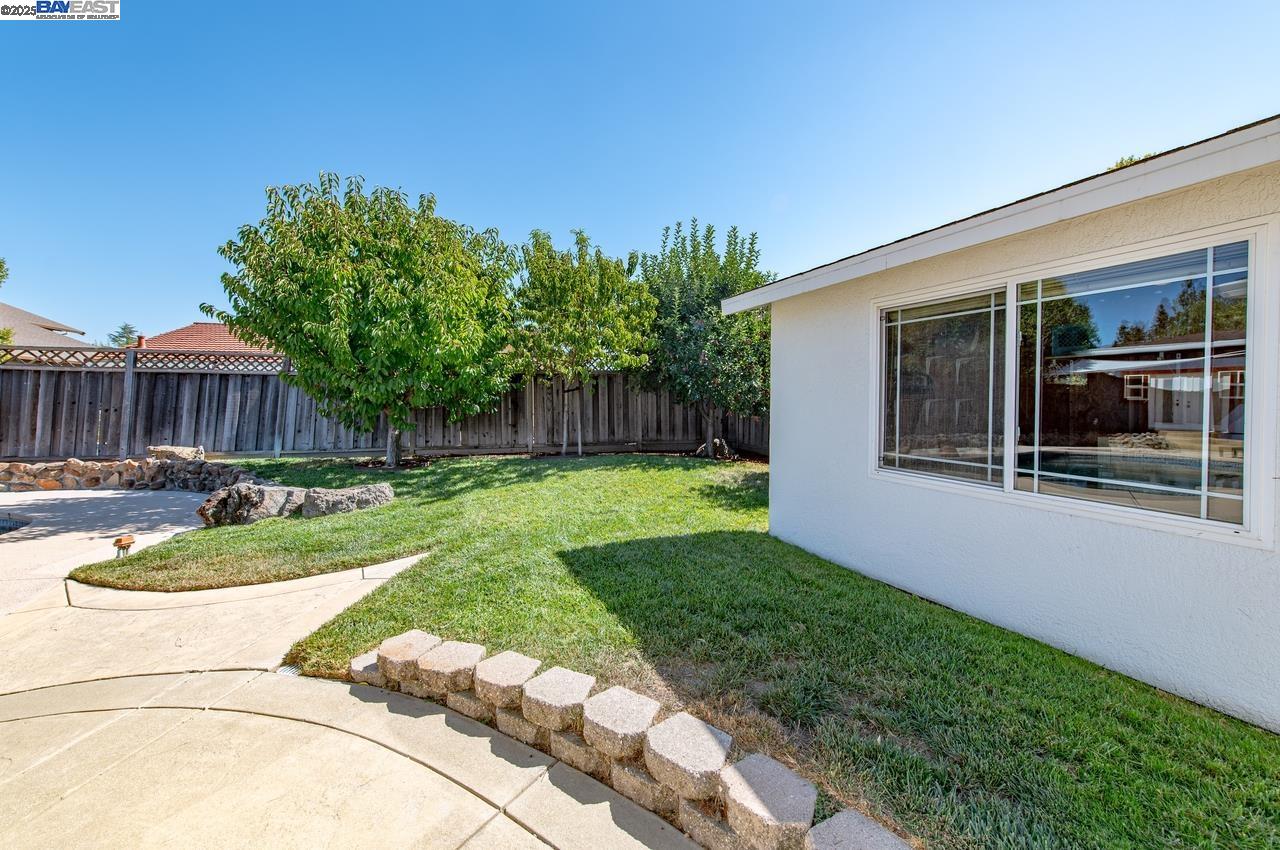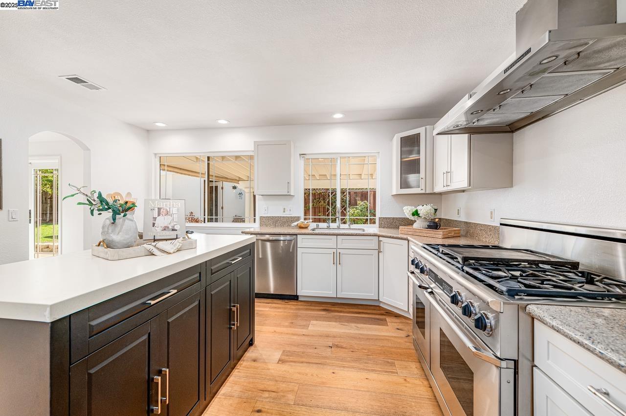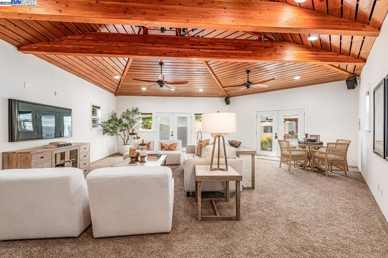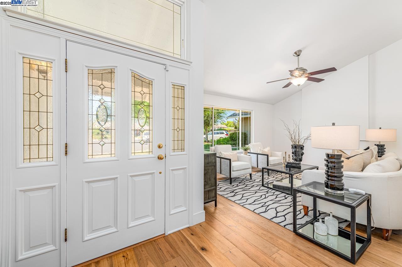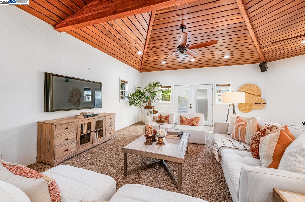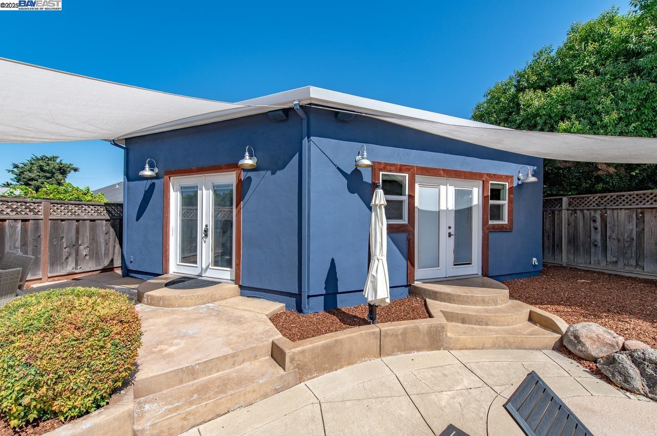Beautiful wide plank engineered wood floors welcome you into this single-level home, where soaring vaulted ceilings in the living and family rooms create a bright, inviting atmosphere. The family room frames sparkling pool views, seamlessly connecting indoor and outdoor living. At the heart of the home, the expansive kitchen impresses with a large center island, dining area, built-in stainless refrigerator, and commercial-grade Dacor 6-burner gas stove and ovens. The primary suite is a private retreat, with a sliding door to the backyard and a thoughtfully designed walk-in closet. In the backyard, a 675 sq. ft. fully finished detached space with open-beamed ceilings and a full bathroom adds to the homes versatility—perfect as a guest house, private retreat, office, or add a kitchenette for a complete ADU. Together with the 1,815 sq. ft. main home, the total is 2,490 sq. ft. The layout provides flexible living to suit any lifestyle. Designed for entertaining, the backyard also includes a stacked stone-covered arbor with built-in fridge and burners, sparkling pool, and inviting spaces for gatherings large and small. Nestled on a quiet court, this home combines relaxed California living with a Pleasanton location—just steps from top-rated schools, parks, shopping, & Iron Horse Trail