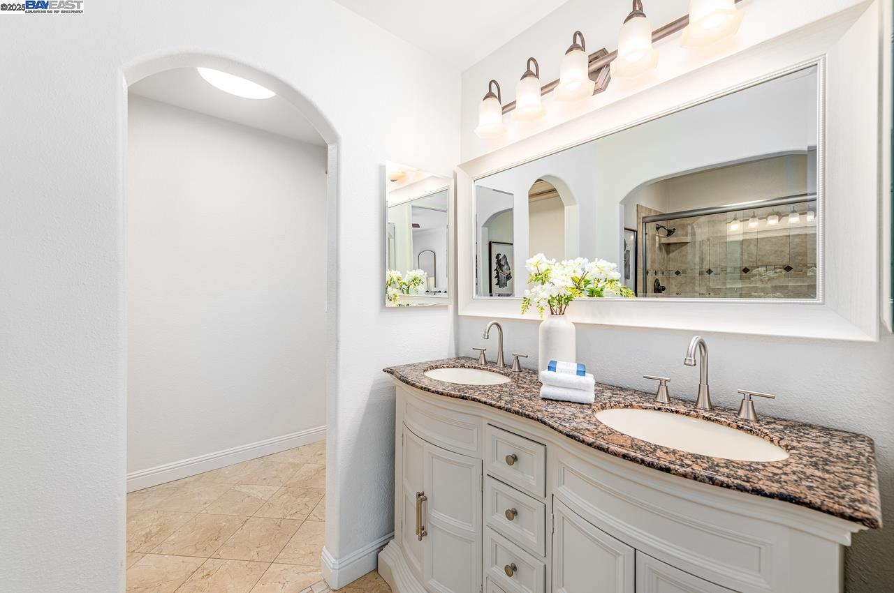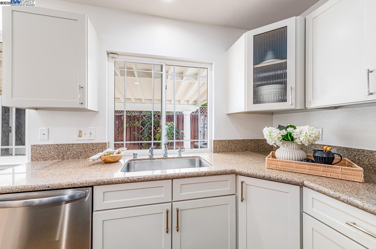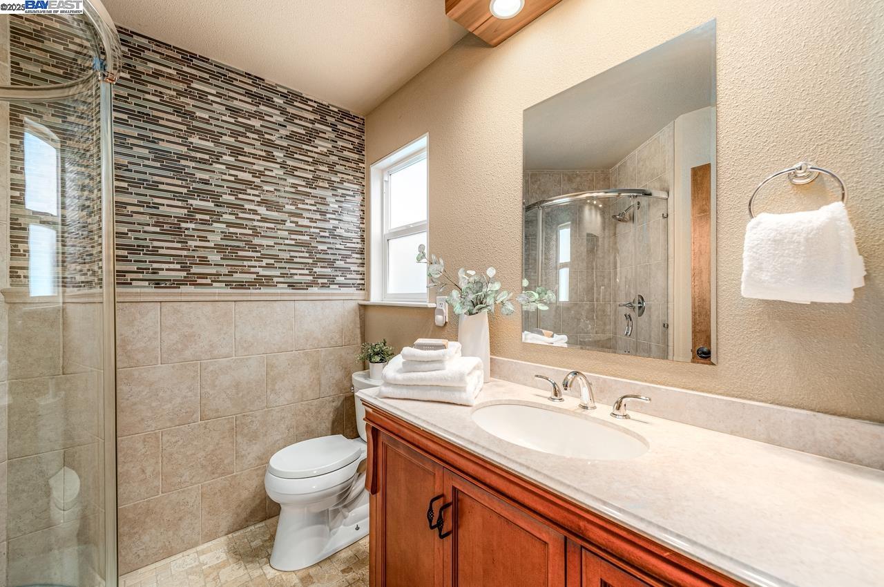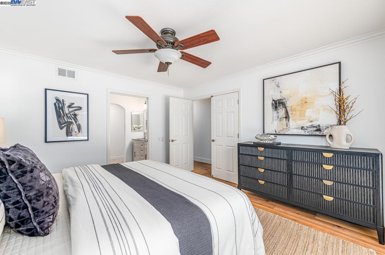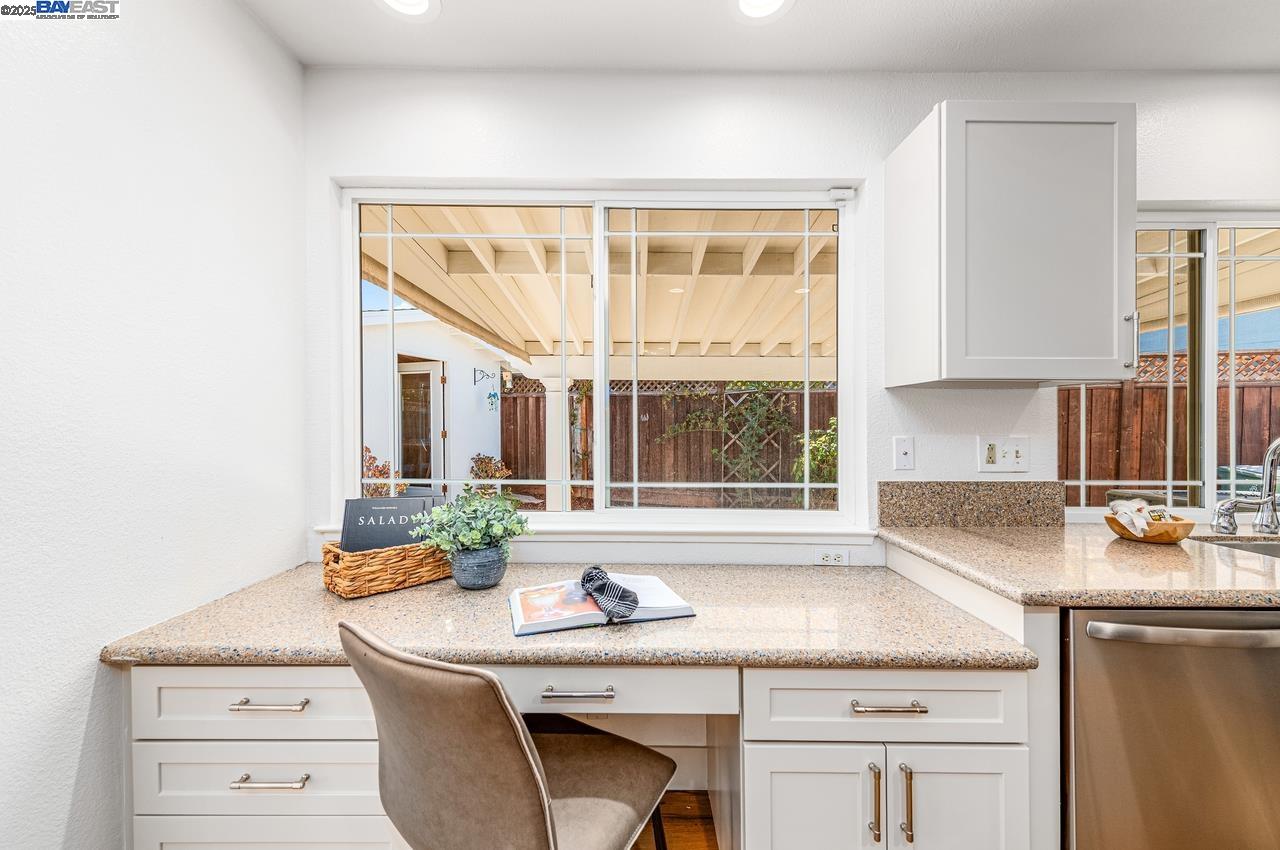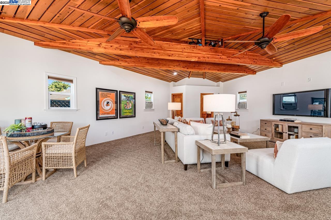 Beautiful wide plank engineered wood floors welcome you into this single-level home, where soaring vaulted ceilings in the living and family rooms create a bright, inviting atmosphere. The family room frames sparkling pool views, seamlessly connecting indoor and outdoor living. At the heart of the home, the expansive kitchen impresses with a large center island, dining area, built-in stainless refrigerator, and commercial-grade Dacor 6-burner gas stove and ovens. The primary suite is a private retreat, with a sliding door to the backyard and a thoughtfully designed walk-in closet. In the backyard, a 675 sq. ft. fully finished detached space with open-beamed ceilings and a full bathroom adds to the homes versatility—perfect as a guest house, private retreat, office, or add a kitchenette for a complete ADU. Together with the 1,815 sq. ft. main home, the total is 2,490 sq. ft. The layout provides flexible living to suit any lifestyle. Designed for entertaining, the backyard also includes a stacked stone-covered arbor with built-in fridge and burners, sparkling pool, and inviting spaces for gatherings large and small. Nestled on a quiet court, this home combines relaxed California living with a Pleasanton location—just steps from top-rated schools, parks, shopping, & Iron Horse Trail