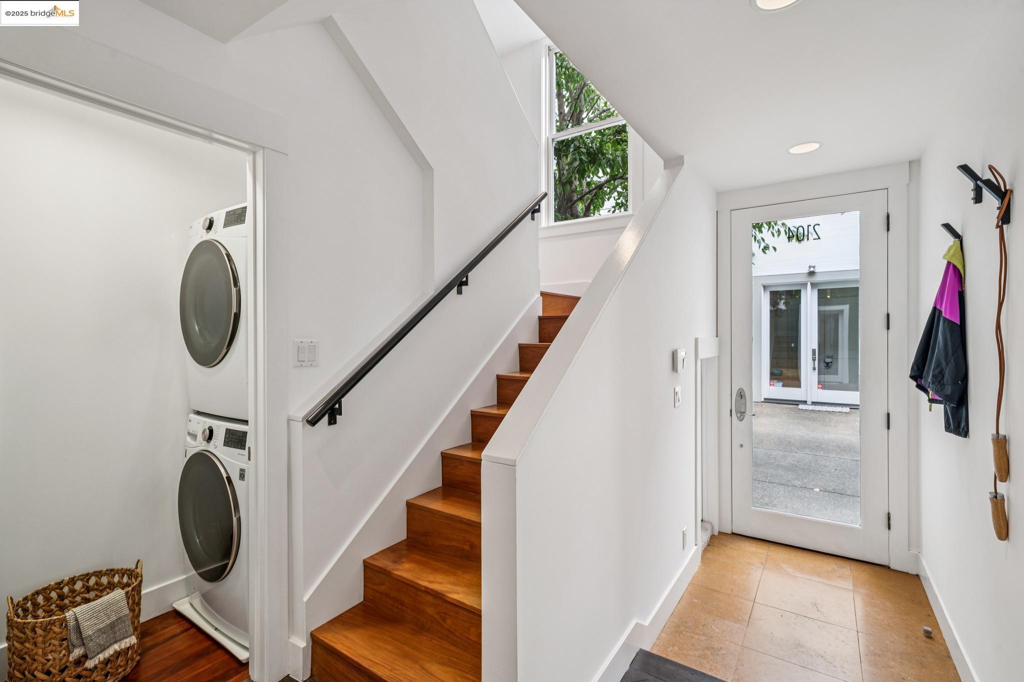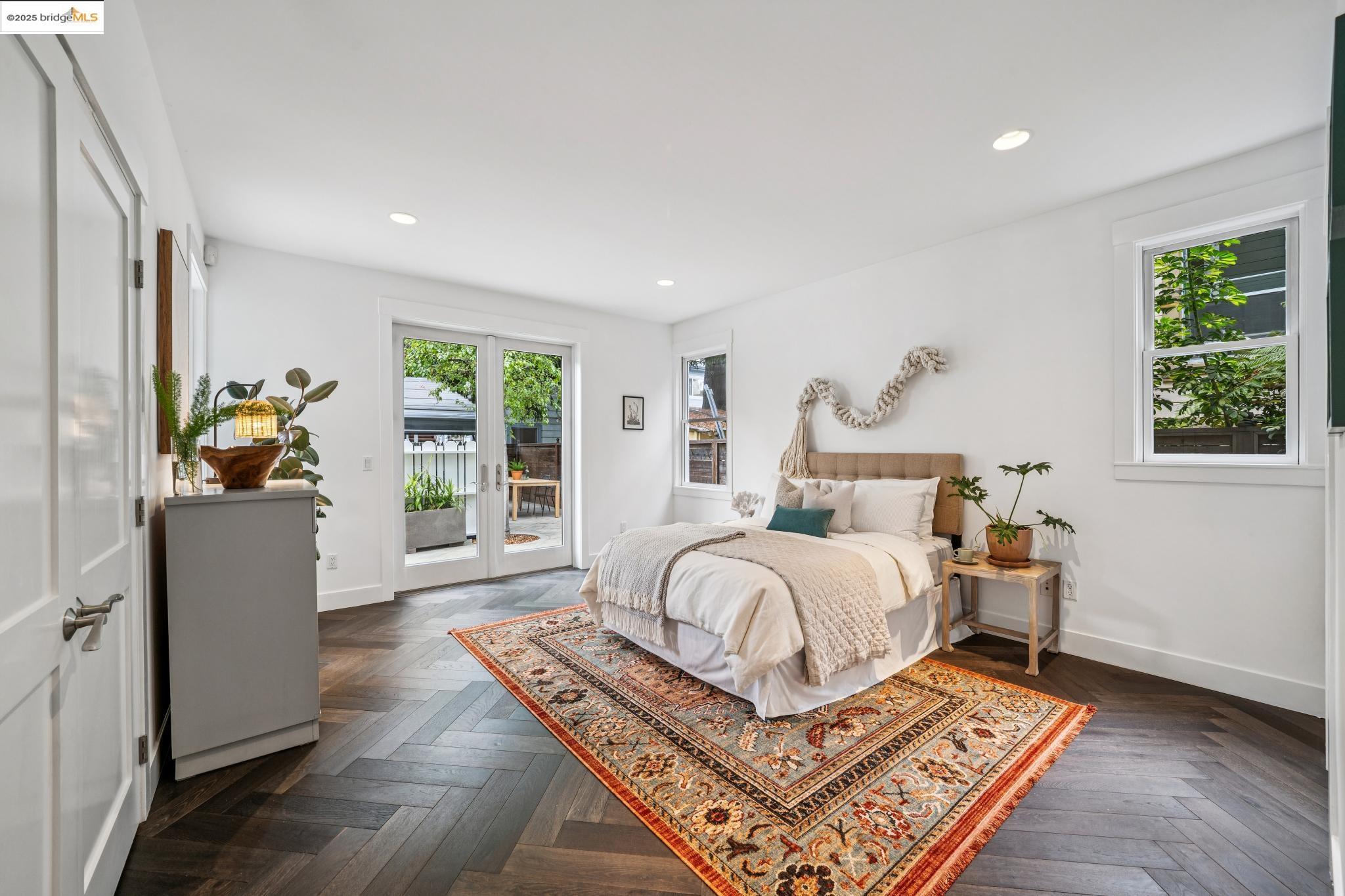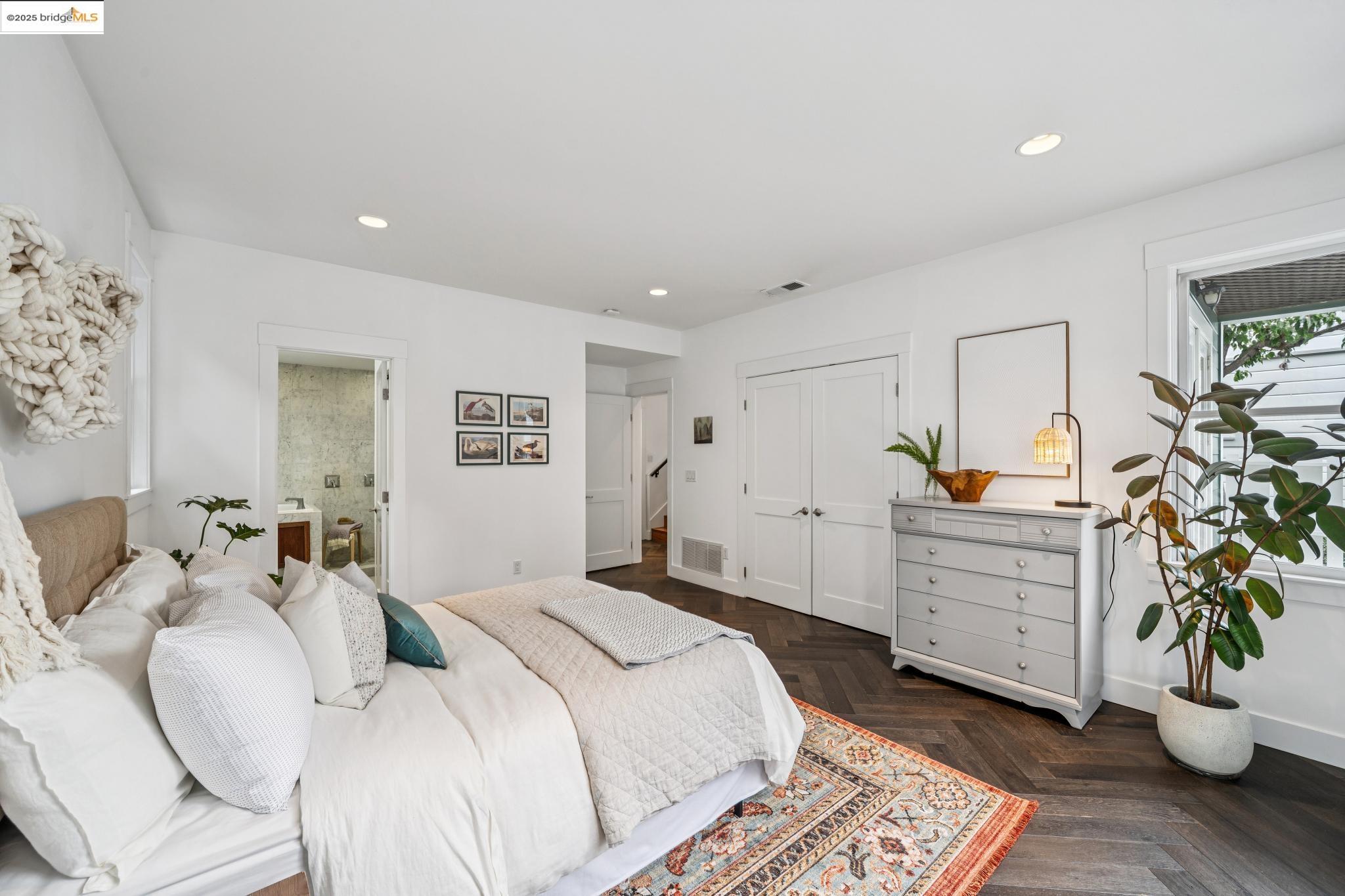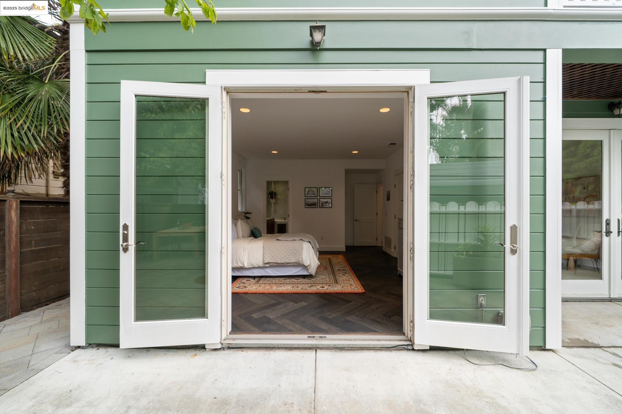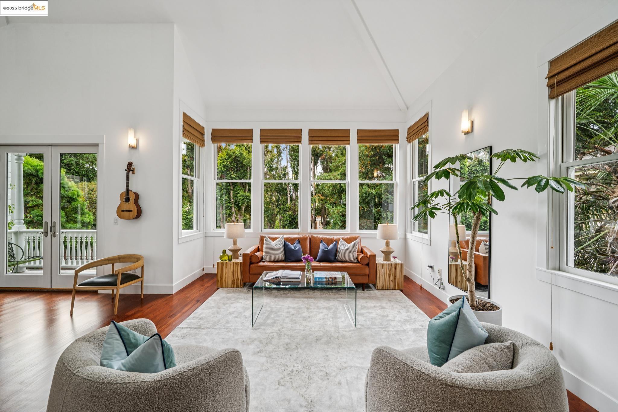 2104 Sixth Street seamlessly blends historic charm with modern style. Tucked away and off the street, with a private entrance and patio that’s equal parts retreat and city living, 2104 Sixth Street is just blocks from the restaurants, cafés and boutiques of Berkeley’s 4th Street district. With three levels inside, the entry floor features a serene and spacious primary suite with French doors to the patio, plus a second bedroom and full bath for guests, family, or a home gym. Light filters in through dramatic windows and skylights on the second level, highlighting the beautifully refinished hardwood floors and open living, dining, and kitchen space. A balcony off the dining area overlooking the private patio invites easy outdoor enjoyment. Floating above the main living area is a spacious mezzanine, adding a versatile spot for a lounge, office, or guest nook with a dedicated half bath. Distinctive architecture, private outdoor spaces, and a coveted West Berkeley location make this residence both a stunning design statement and an everyday sanctuary. Some photos may be virtually enhanced.