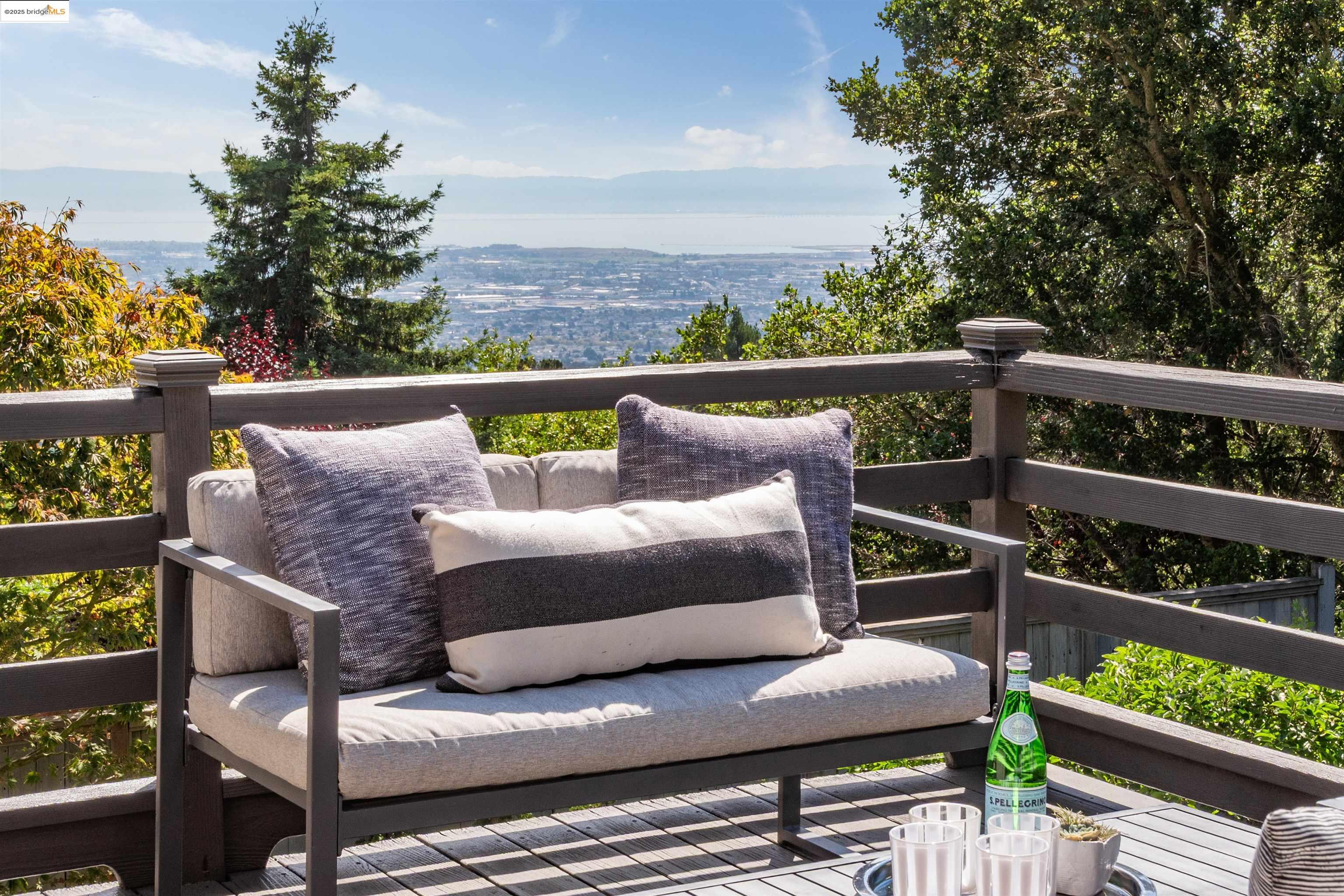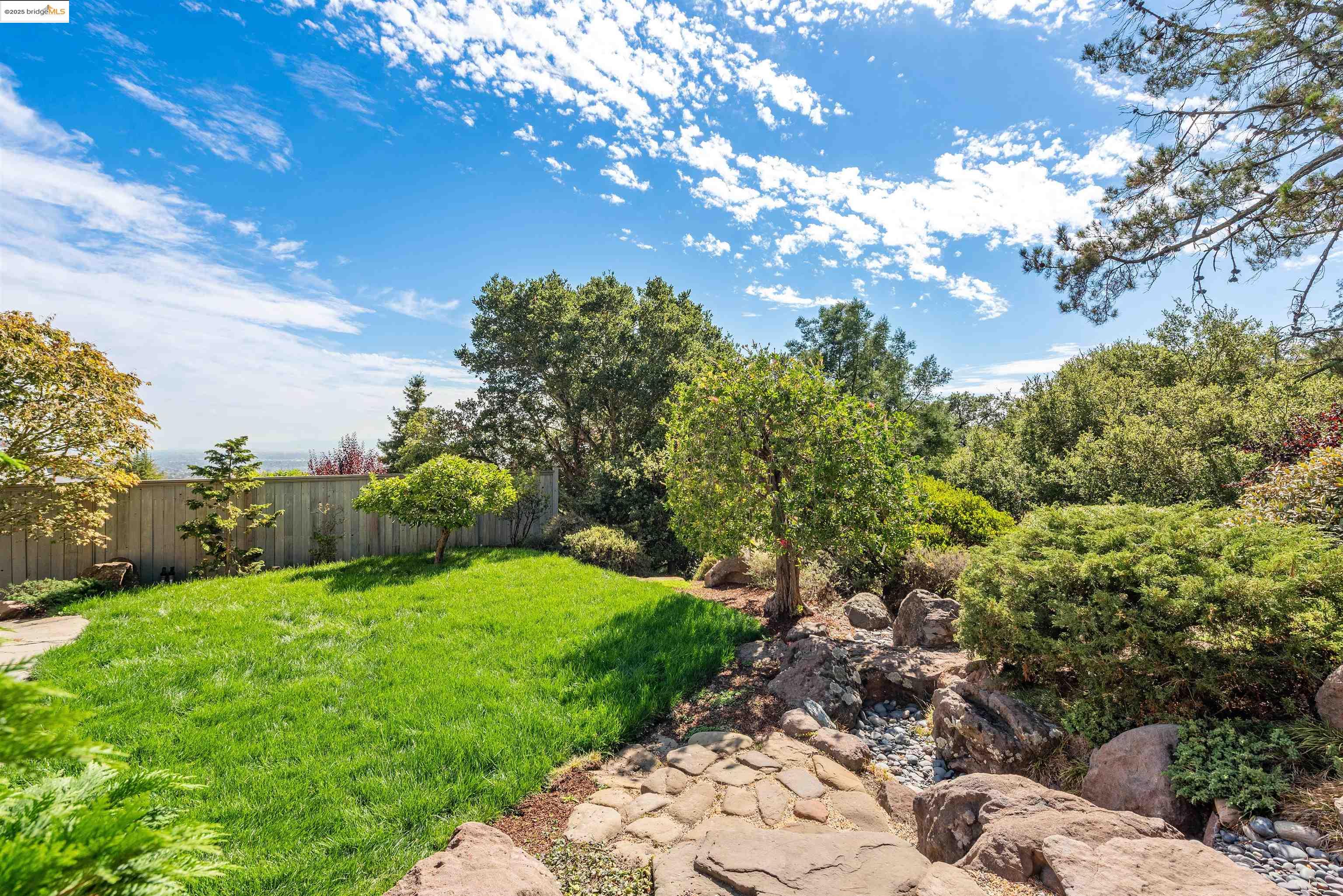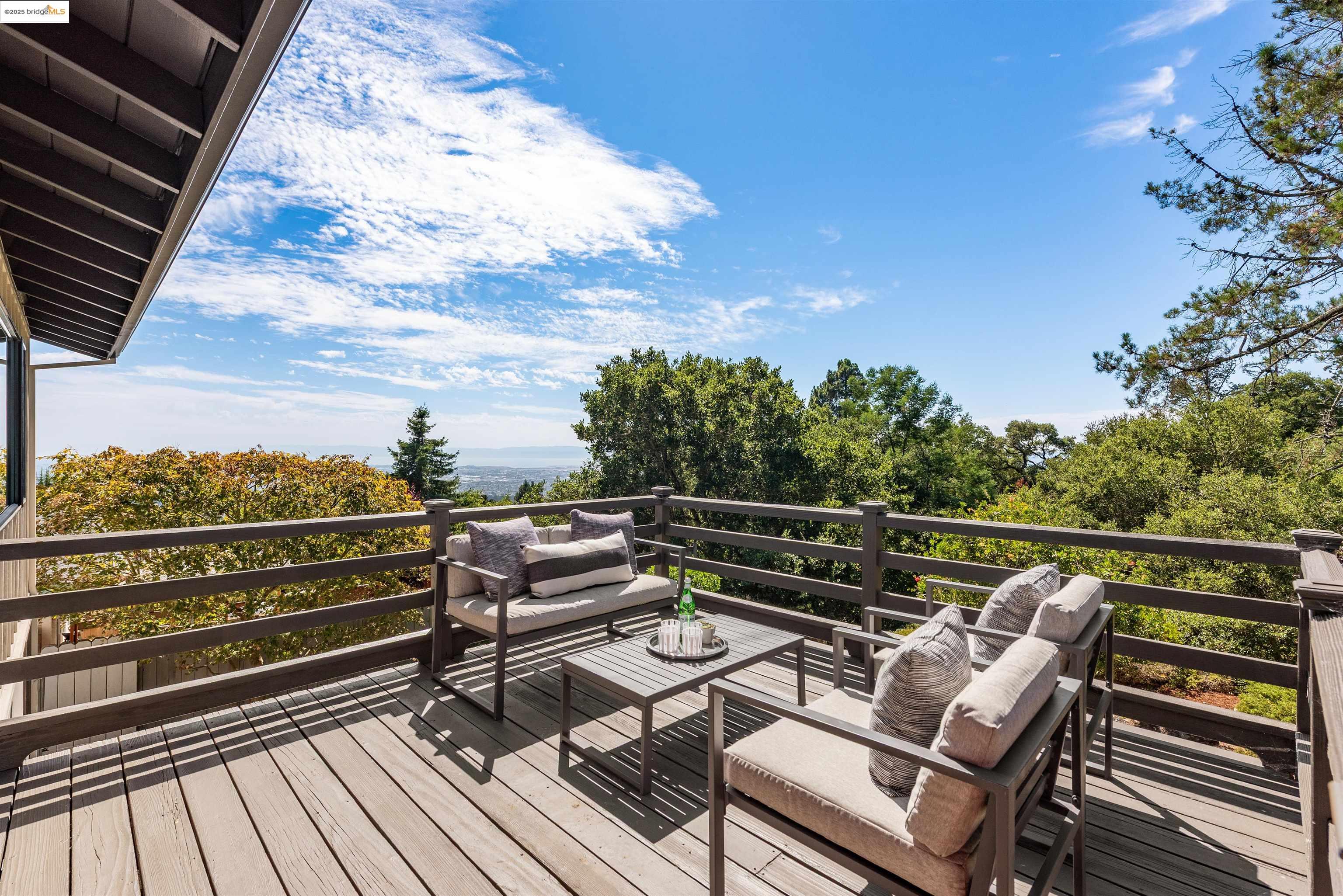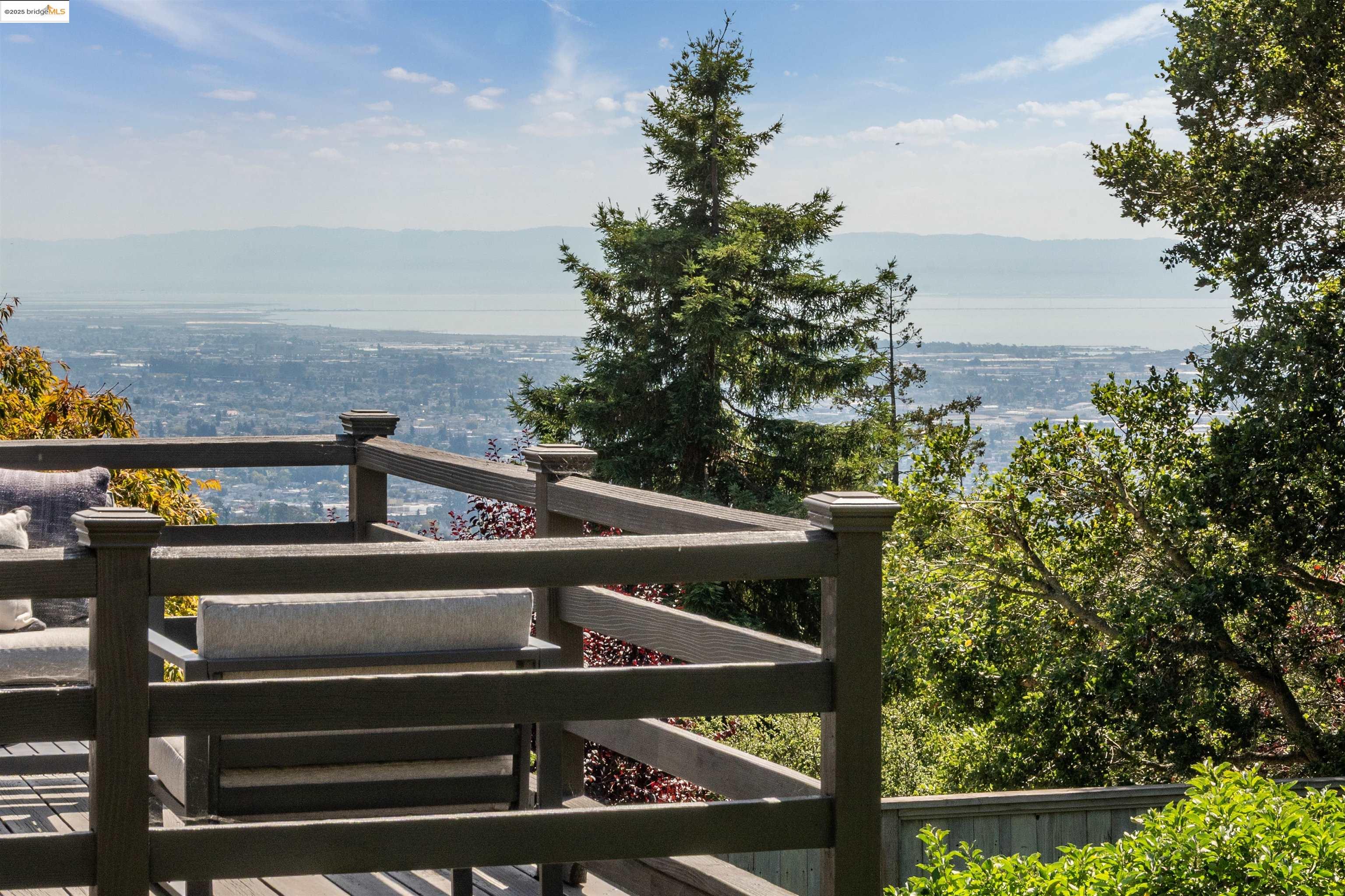 This quality, mid-century home with Bay views and an elegantly designed garden is located in the highly desirable Crestmont neighborhood. It is conveniently located to Highway 13 and Highway 580. The local community offers shopping at the top-rated Skyline Community Market and nearby Montclair. Abundant outdoor activities are available at the Oakland Hills Swim & Tennis Club, Joaquin Miller Dog Park, Redwood Regional Park, Robert’s Park, and Redwood Equestrian Arena. The main living and dining area features a stone fireplace and an expansive window wall which opens onto a deck with Bay views and overlooks a serene garden. Hardwood floors span most of the upper level. The kitchen has been recently updated with all new appliances and offers a spacious eating area plus plenty of storage. The spacious primary bedroom has two closets, bay views and an updated bathroom with a tub. There are also two other bedrooms and a second updated bathroom on this level. The lower level has a spacious family room with built-in shelving, a wet bar, an office, large storage areas, and access to the garden. There is a half bathroom, two workshop areas, and laundry facilities adjacent to the 2-car garage. The back garden has a level lawn, meandering pathways and an Asian inspired landscape area.
