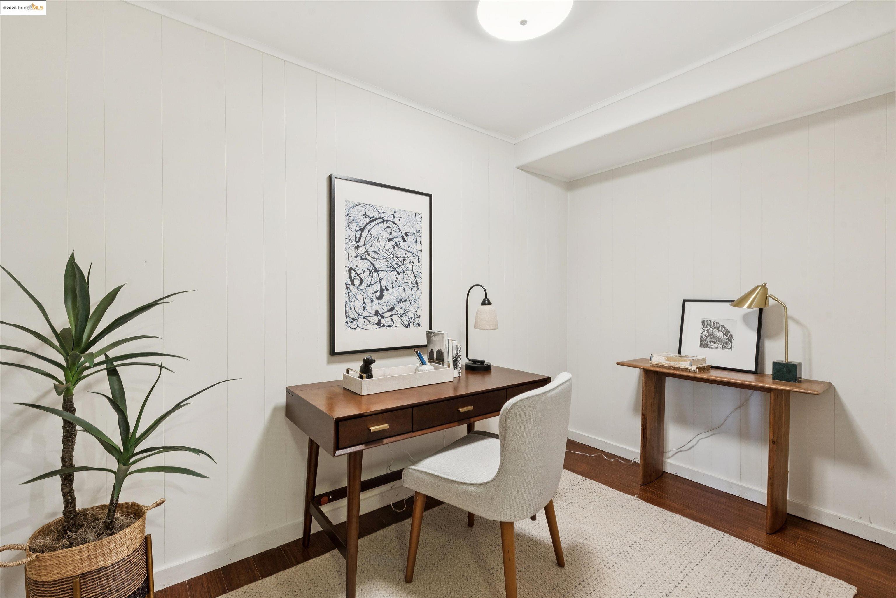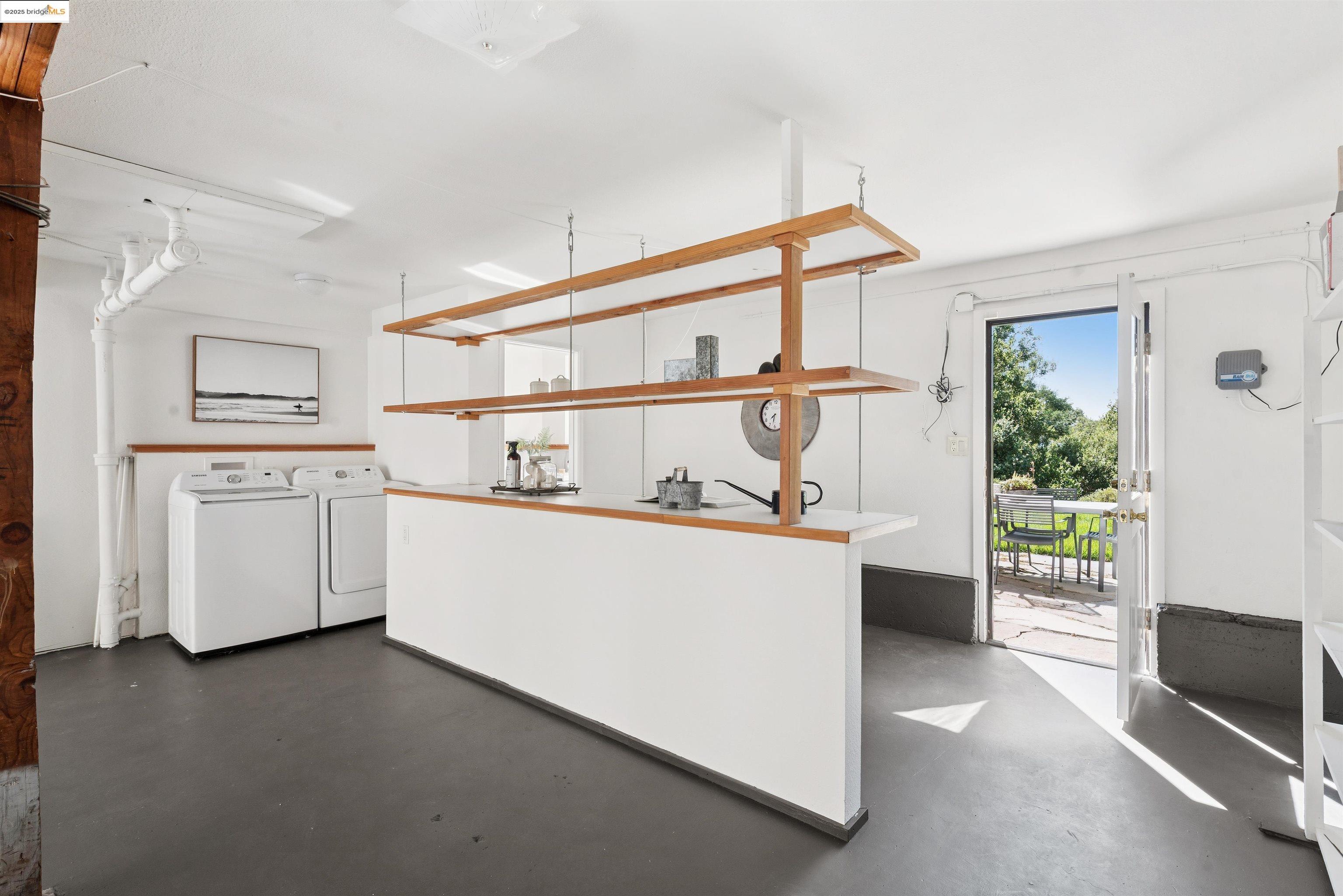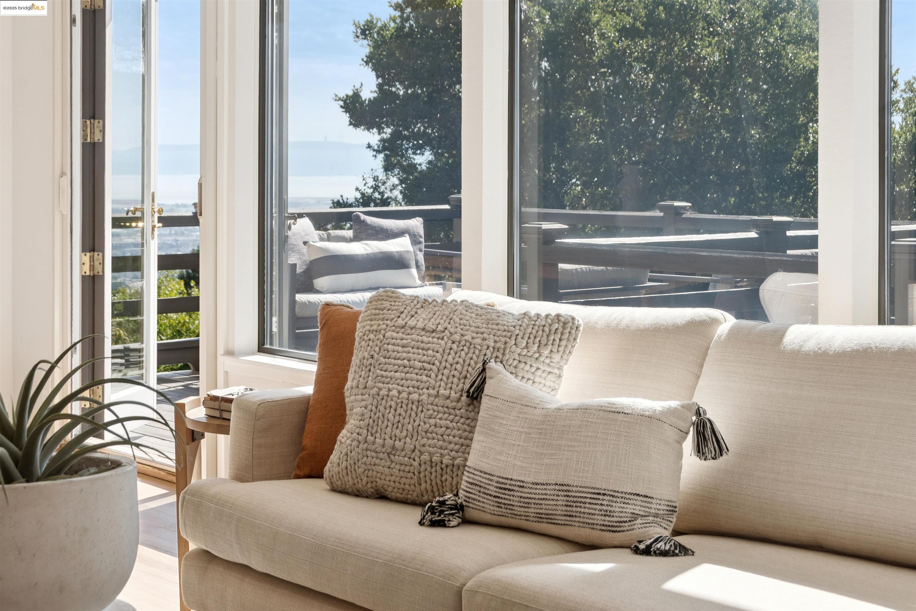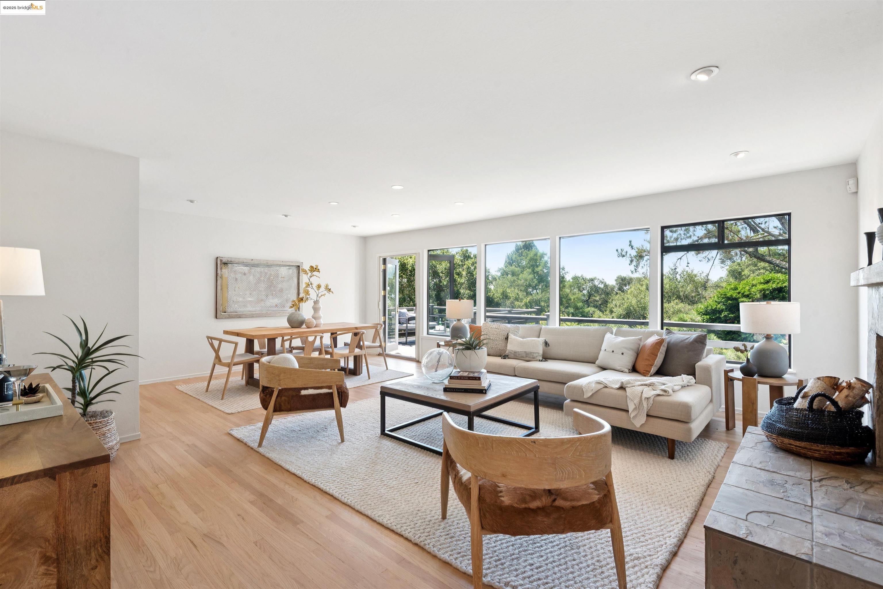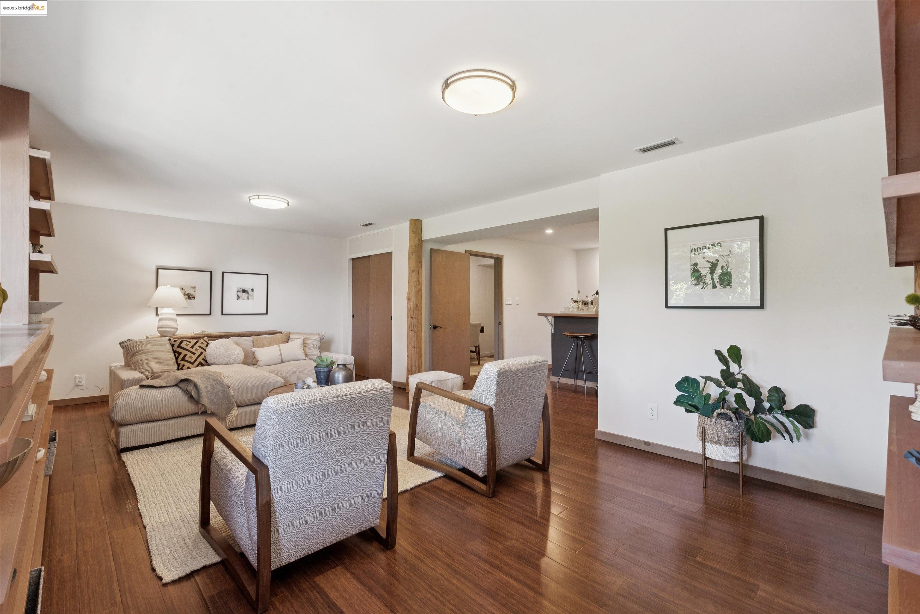 This quality, mid-century home with Bay views and an elegantly designed garden is located in the highly desirable Crestmont neighborhood. It is conveniently located to Highway 13 and Highway 580. The local community offers shopping at the top-rated Skyline Community Market and nearby Montclair. Abundant outdoor activities are available at the Oakland Hills Swim & Tennis Club, Joaquin Miller Dog Park, Redwood Regional Park, Robert’s Park, and Redwood Equestrian Arena. The main living and dining area features a stone fireplace and an expansive window wall which opens onto a deck with Bay views and overlooks a serene garden. Hardwood floors span most of the upper level. The kitchen has been recently updated with all new appliances and offers a spacious eating area plus plenty of storage. The spacious primary bedroom has two closets, bay views and an updated bathroom with a tub. There are also two other bedrooms and a second updated bathroom on this level. The lower level has a spacious family room with built-in shelving, a wet bar, an office, large storage areas, and access to the garden. There is a half bathroom, two workshop areas, and laundry facilities adjacent to the 2-car garage. The back garden has a level lawn, meandering pathways and an Asian inspired landscape area.