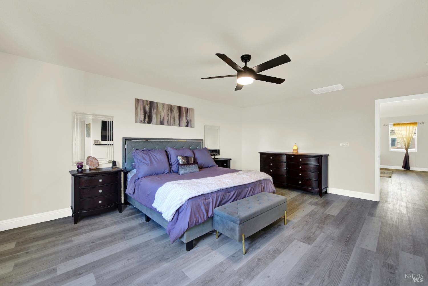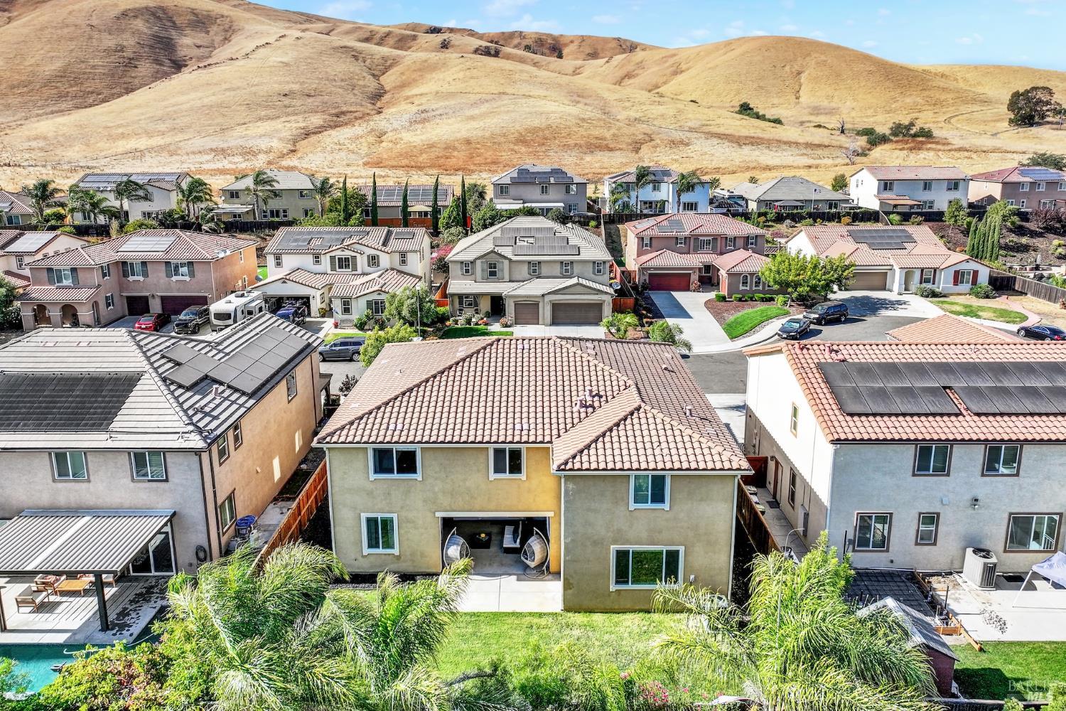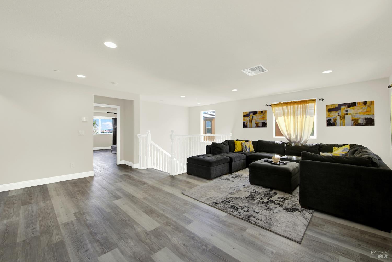 Beautifully updated home in the Gold Ridge subdivision of Fairfield. This spacious 5-bedroom, 4-bath residence offers style, comfort, and flexibility. Upgrades and features include a gourmet kitchen showcasing shaker-style cabinets, granite countertops, large center island, recessed and pendant lighting, stainless-steel appliances, laminate wood flooring throughout, fresh interior paint, dual pane windows, central heat and air, and tasteful modern updates. The bathrooms have been recently updated, providing a fresh and modern touch. The main level features a full bedroom and bath plus an additional office or possible 6th bedroom. Upstairs offers 4 additional bedrooms, a large loft provides separate living space or could easily serve as a 7th or 8th bedroom. Enjoy year-round entertaining in the inviting California room patio or take in the beautiful views of Mount Diablo from the primary suite. Additional highlights include a tile roof and a three-car garage. Located within the sought-after Travis School District, this property is just minutes from Travis Air Force Base with easy access to I-80 via Airbase Parkway.