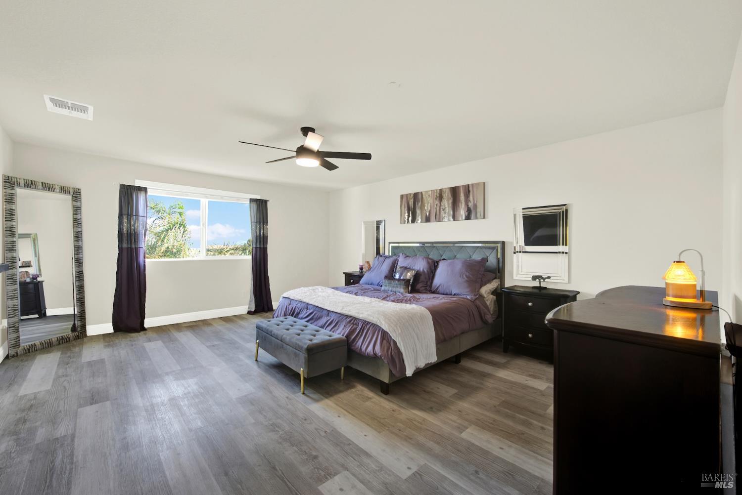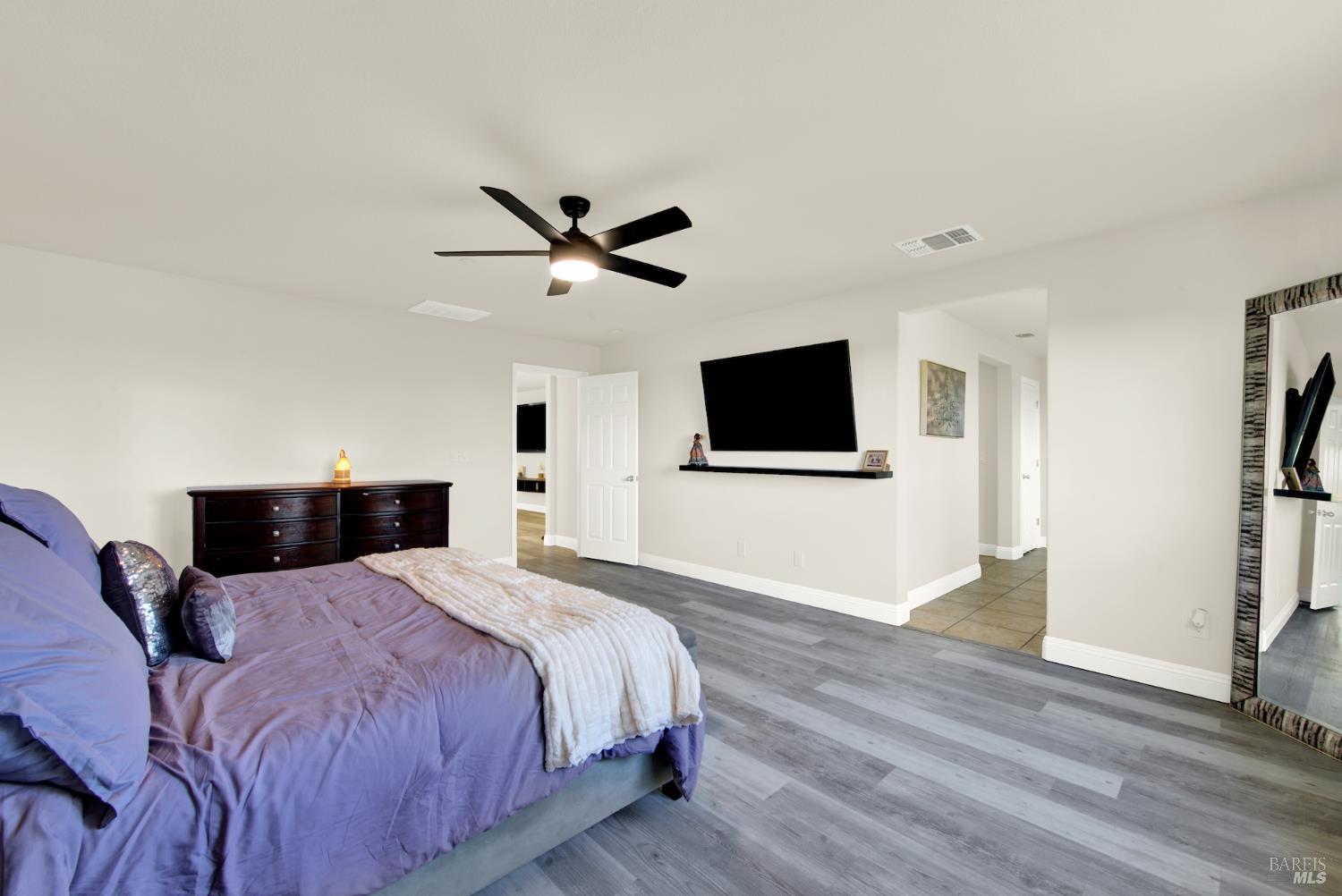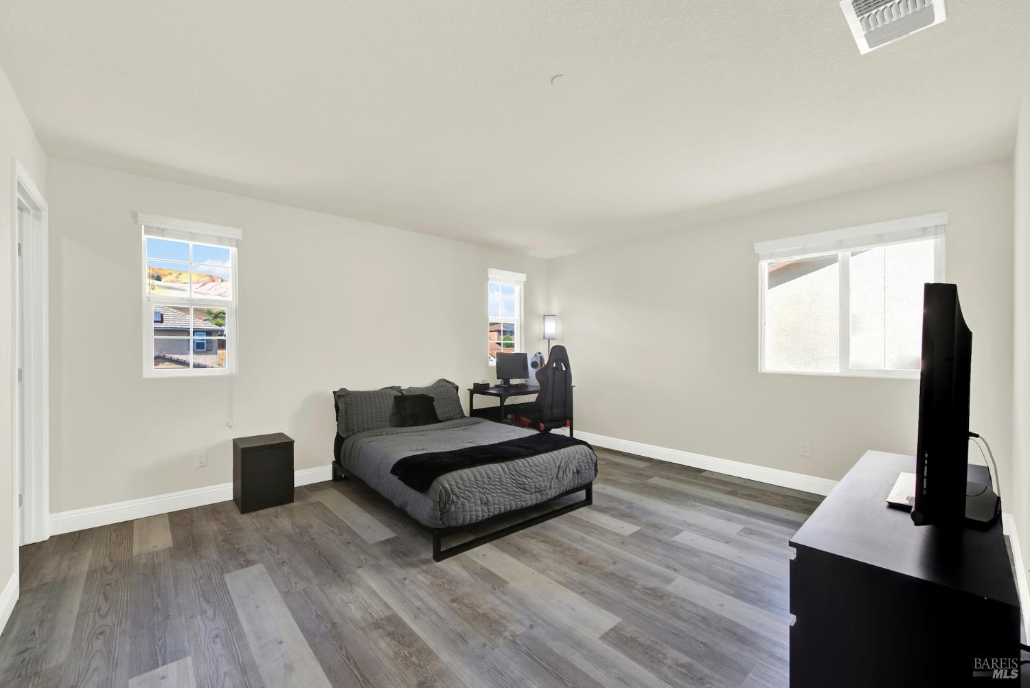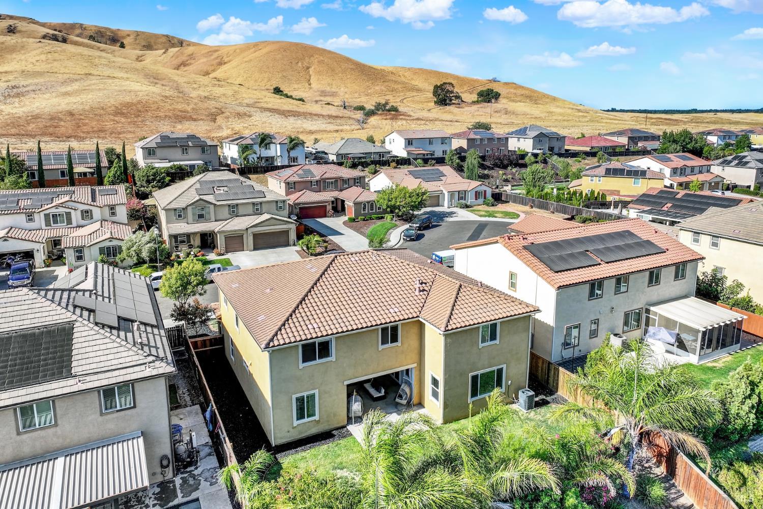 Beautifully updated home in the Gold Ridge subdivision of Fairfield. This spacious 5-bedroom, 4-bath residence offers style, comfort, and flexibility. Upgrades and features include a gourmet kitchen showcasing shaker-style cabinets, granite countertops, large center island, recessed and pendant lighting, stainless-steel appliances, laminate wood flooring throughout, fresh interior paint, dual pane windows, central heat and air, and tasteful modern updates. The bathrooms have been recently updated, providing a fresh and modern touch. The main level features a full bedroom and bath plus an additional office or possible 6th bedroom. Upstairs offers 4 additional bedrooms, a large loft provides separate living space or could easily serve as a 7th or 8th bedroom. Enjoy year-round entertaining in the inviting California room patio or take in the beautiful views of Mount Diablo from the primary suite. Additional highlights include a tile roof and a three-car garage. Located within the sought-after Travis School District, this property is just minutes from Travis Air Force Base with easy access to I-80 via Airbase Parkway.