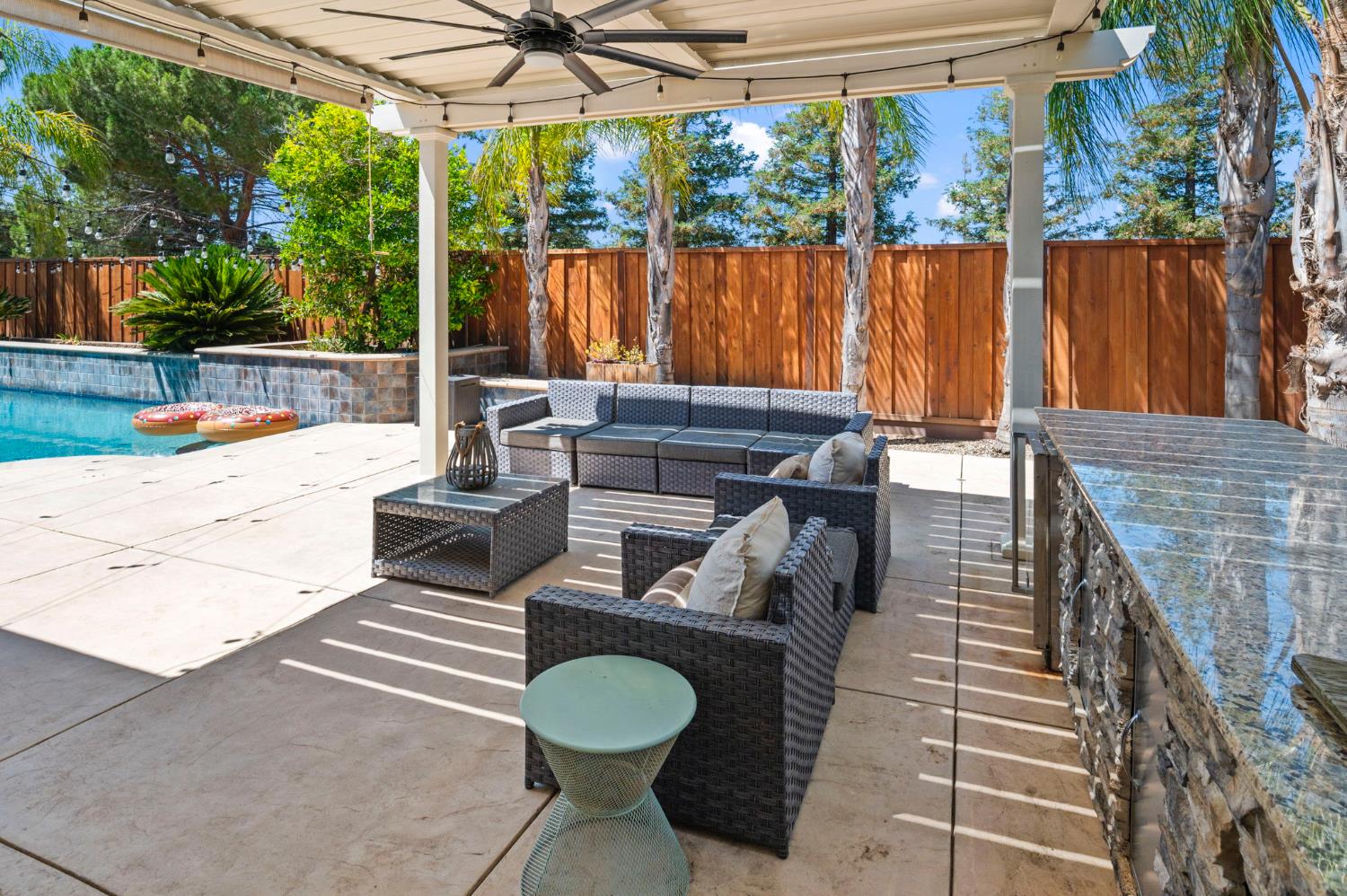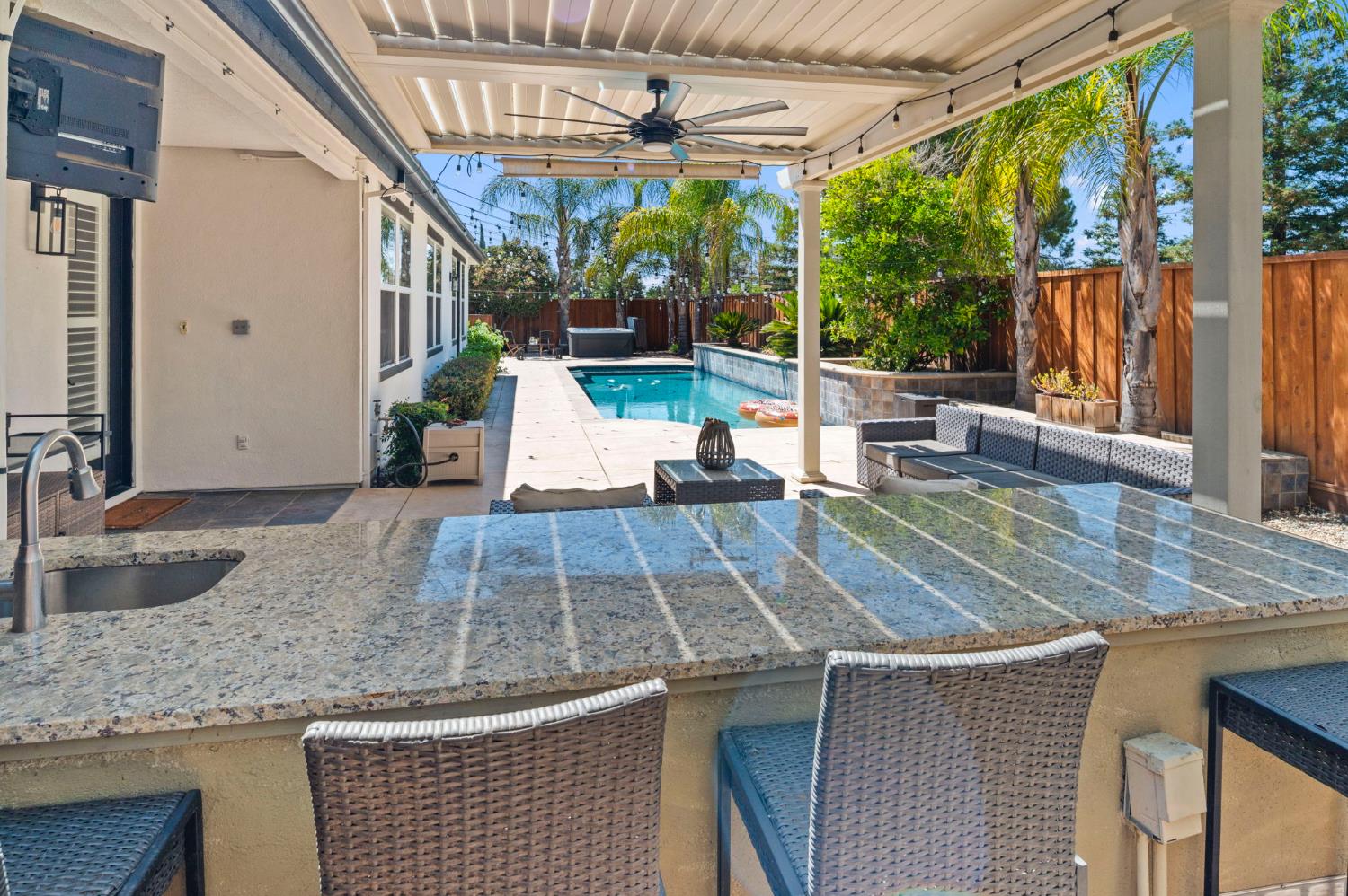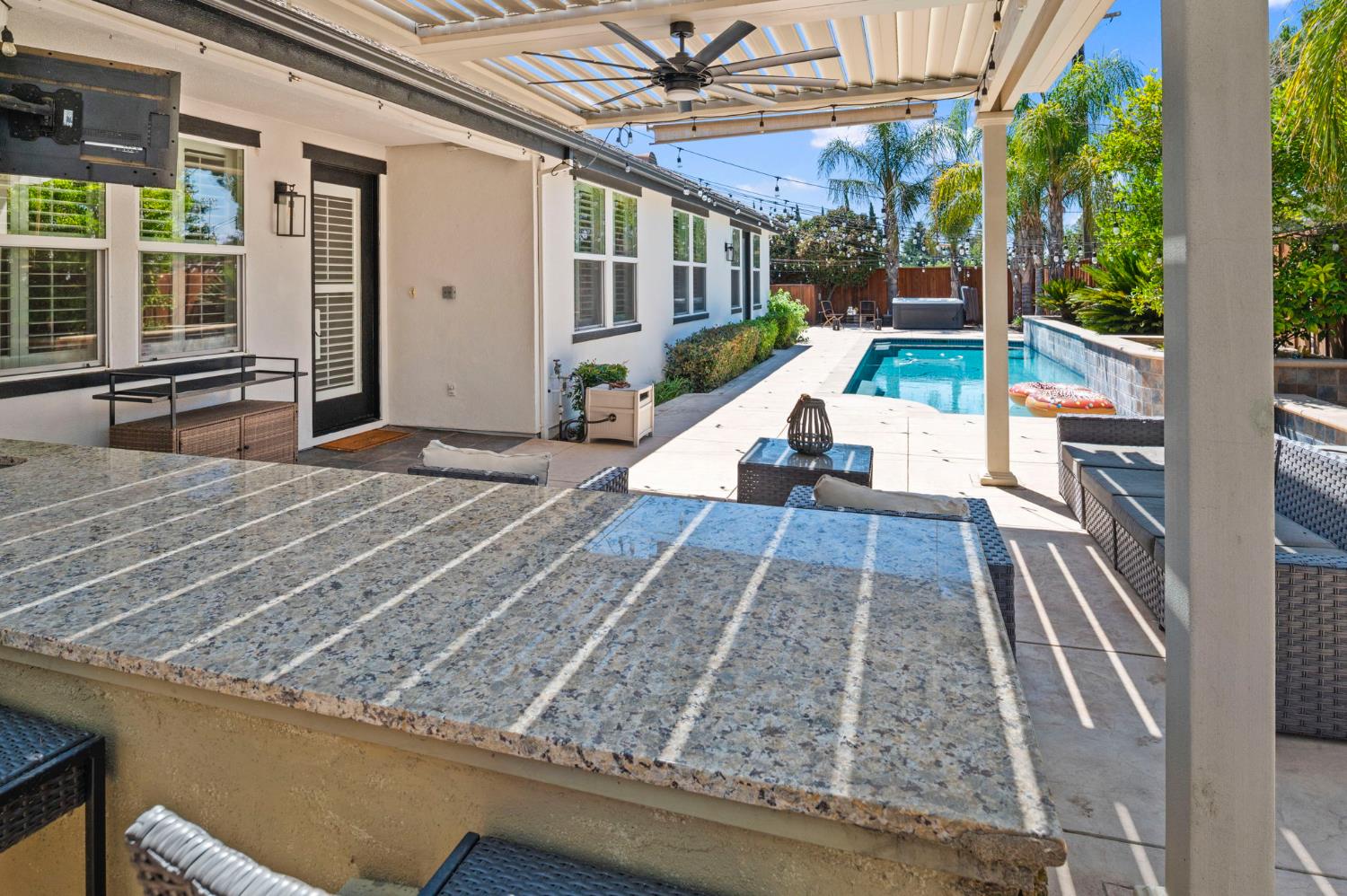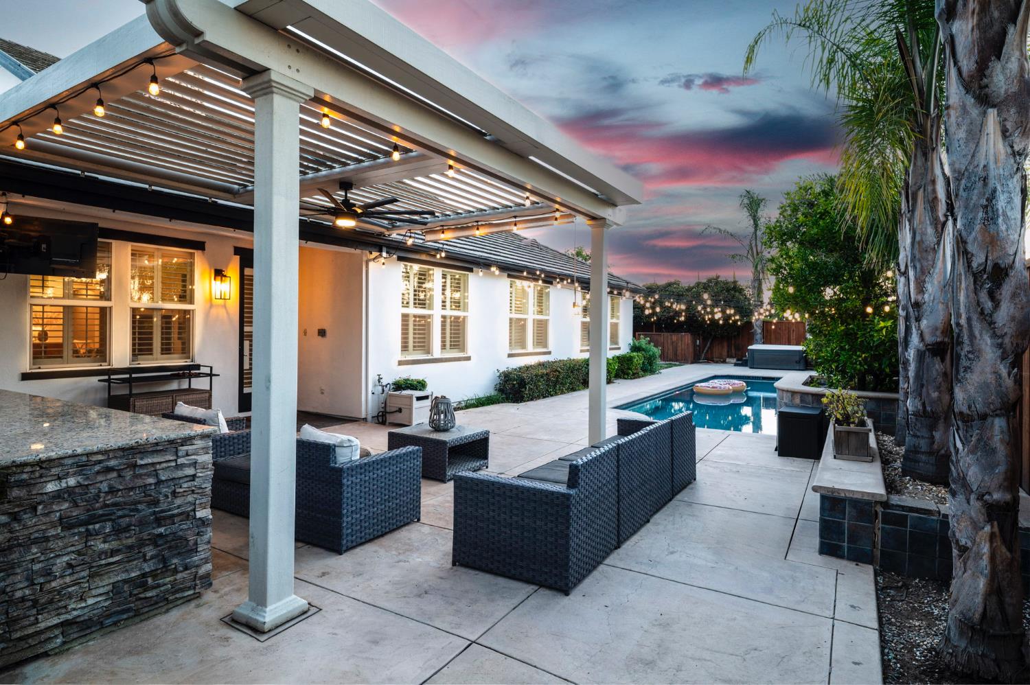 Located on a quiet cul-de-sac in one of Livermore's most desirable neighborhoods, this beautifully updated 6-bedroom, 4-bathroom home sits on a .38-acre lot with no rear neighbors. Ideal for large or multigenerational families and those who love to entertain, the home offers a versatile open-concept layout with a spacious great room, plus an additional flex room/office with kitchenette, and abundant natural light. Oak engineered hardwood flooring flows throughout, adding warmth and continuity to the stylish interior. The kitchen features quartz countertops, a luxury built-in refrigerator, ample cabinetry, and a large center island perfect for gatherings. The bathrooms and laundry room have received a thoughtful glow-up, with Italian porcelain tile and updated finishes for a clean, refreshed look. Step outside to your private backyard oasis featuring a beautifully refinished pool, equipped with an outdoor kitchen, and a large covered patio-ideal for entertaining, relaxing, or enjoying warm Livermore days. A generous driveway, RV Parking,& 3-car garage provide ample parking and storage. With tasteful updates and space to grow into, this home offers the perfect blend of comfort and function and is located in the heart of wine country. Come live the LIVERMORE DREAM!