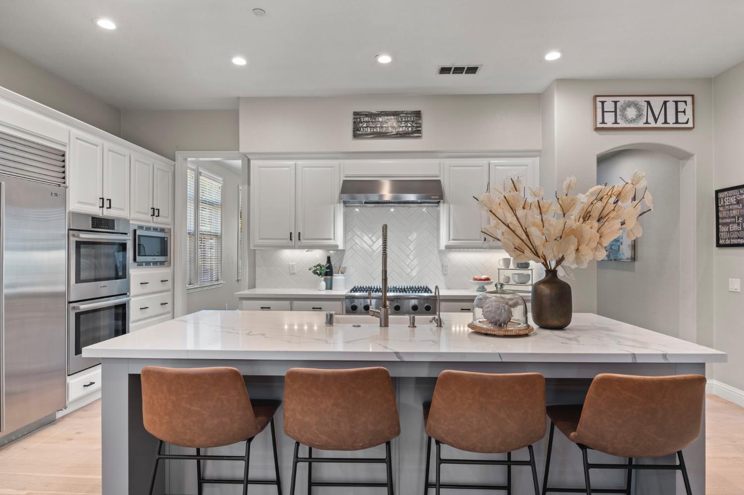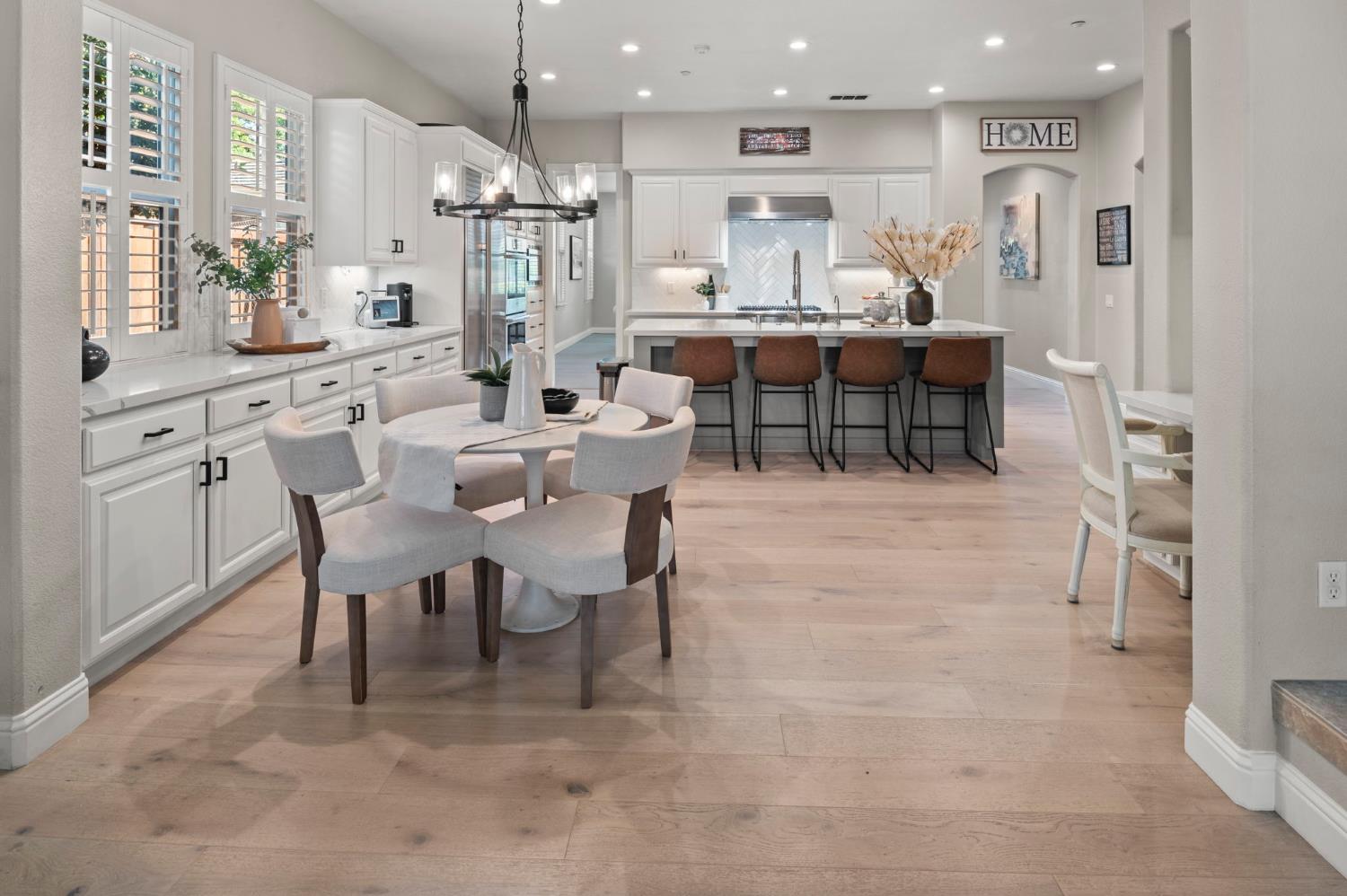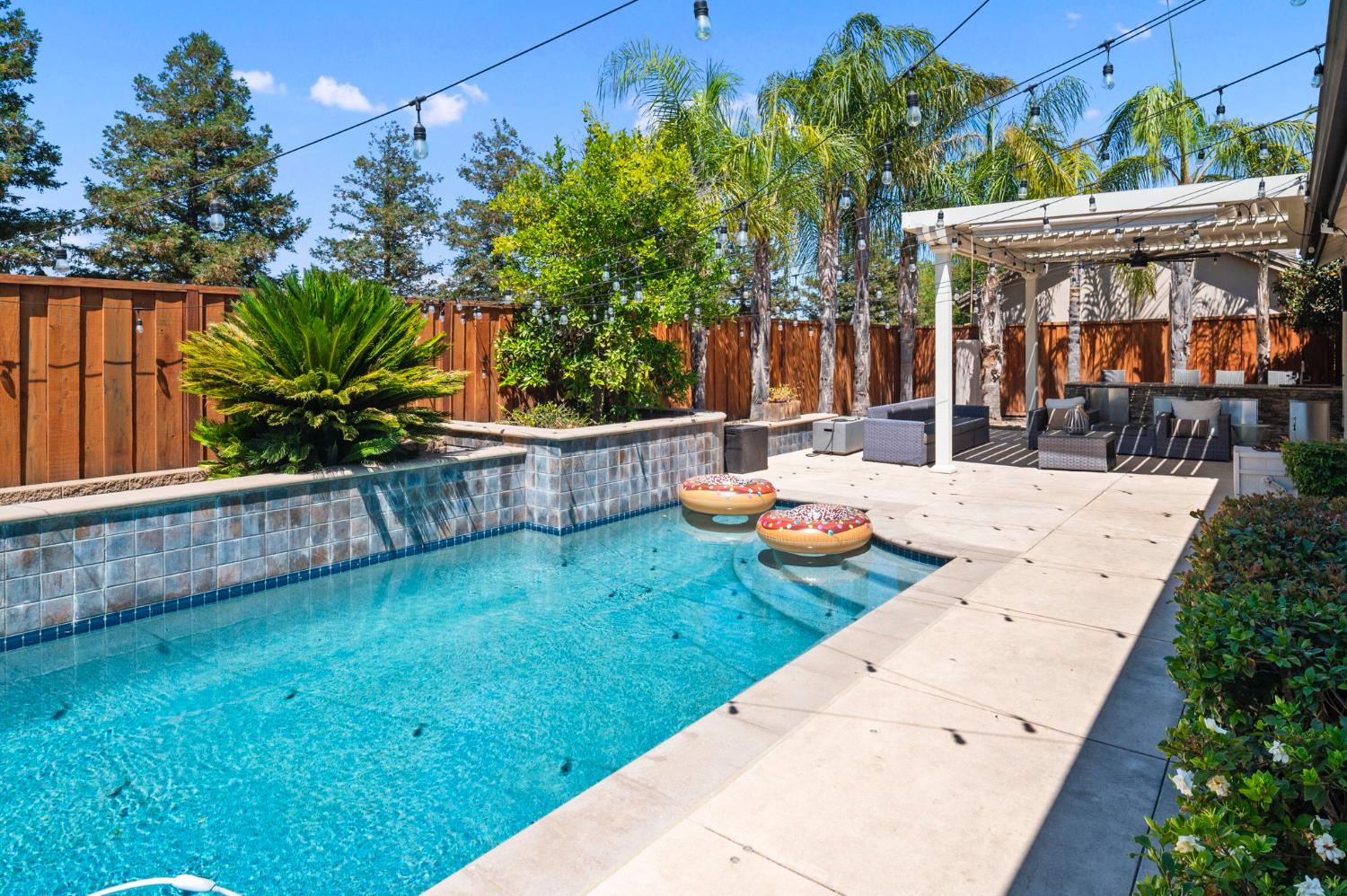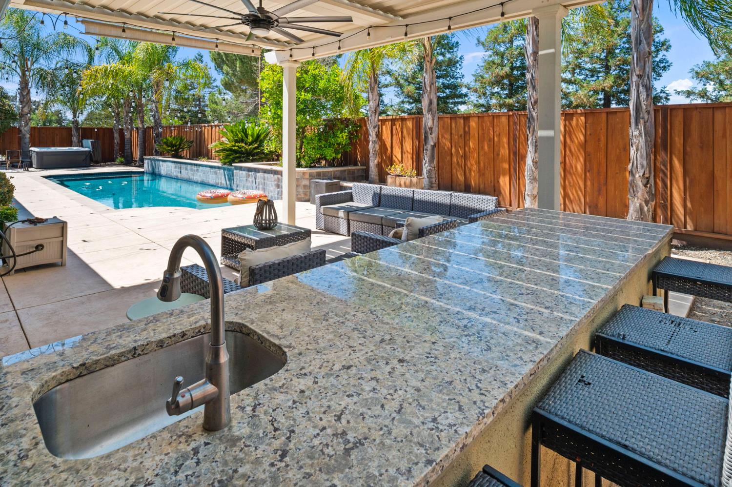 Located on a quiet cul-de-sac in one of Livermore's most desirable neighborhoods, this beautifully updated 6-bedroom, 4-bathroom home sits on a .38-acre lot with no rear neighbors. Ideal for large or multigenerational families and those who love to entertain, the home offers a versatile open-concept layout with a spacious great room, plus an additional flex room/office with kitchenette, and abundant natural light. Oak engineered hardwood flooring flows throughout, adding warmth and continuity to the stylish interior. The kitchen features quartz countertops, a luxury built-in refrigerator, ample cabinetry, and a large center island perfect for gatherings. The bathrooms and laundry room have received a thoughtful glow-up, with Italian porcelain tile and updated finishes for a clean, refreshed look. Step outside to your private backyard oasis featuring a beautifully refinished pool, equipped with an outdoor kitchen, and a large covered patio-ideal for entertaining, relaxing, or enjoying warm Livermore days. A generous driveway, RV Parking,& 3-car garage provide ample parking and storage. With tasteful updates and space to grow into, this home offers the perfect blend of comfort and function and is located in the heart of wine country. Come live the LIVERMORE DREAM!