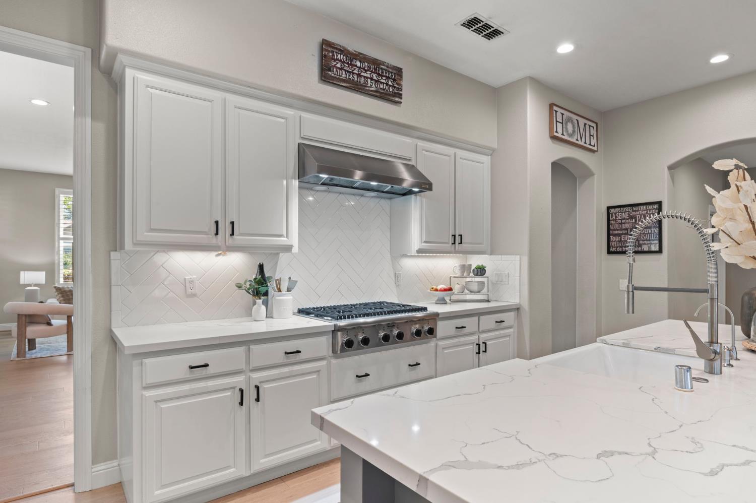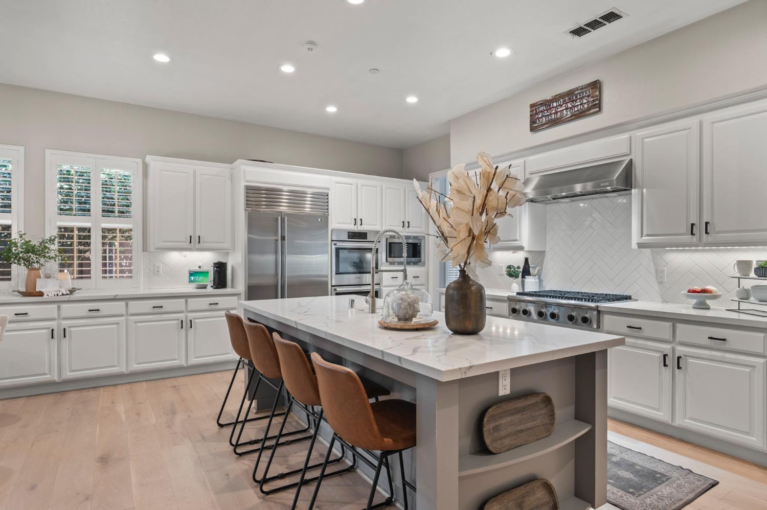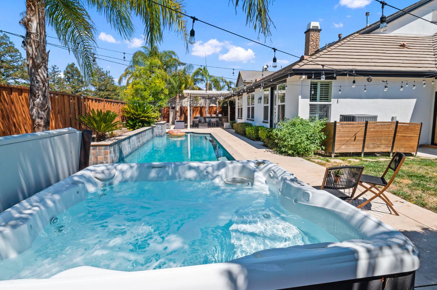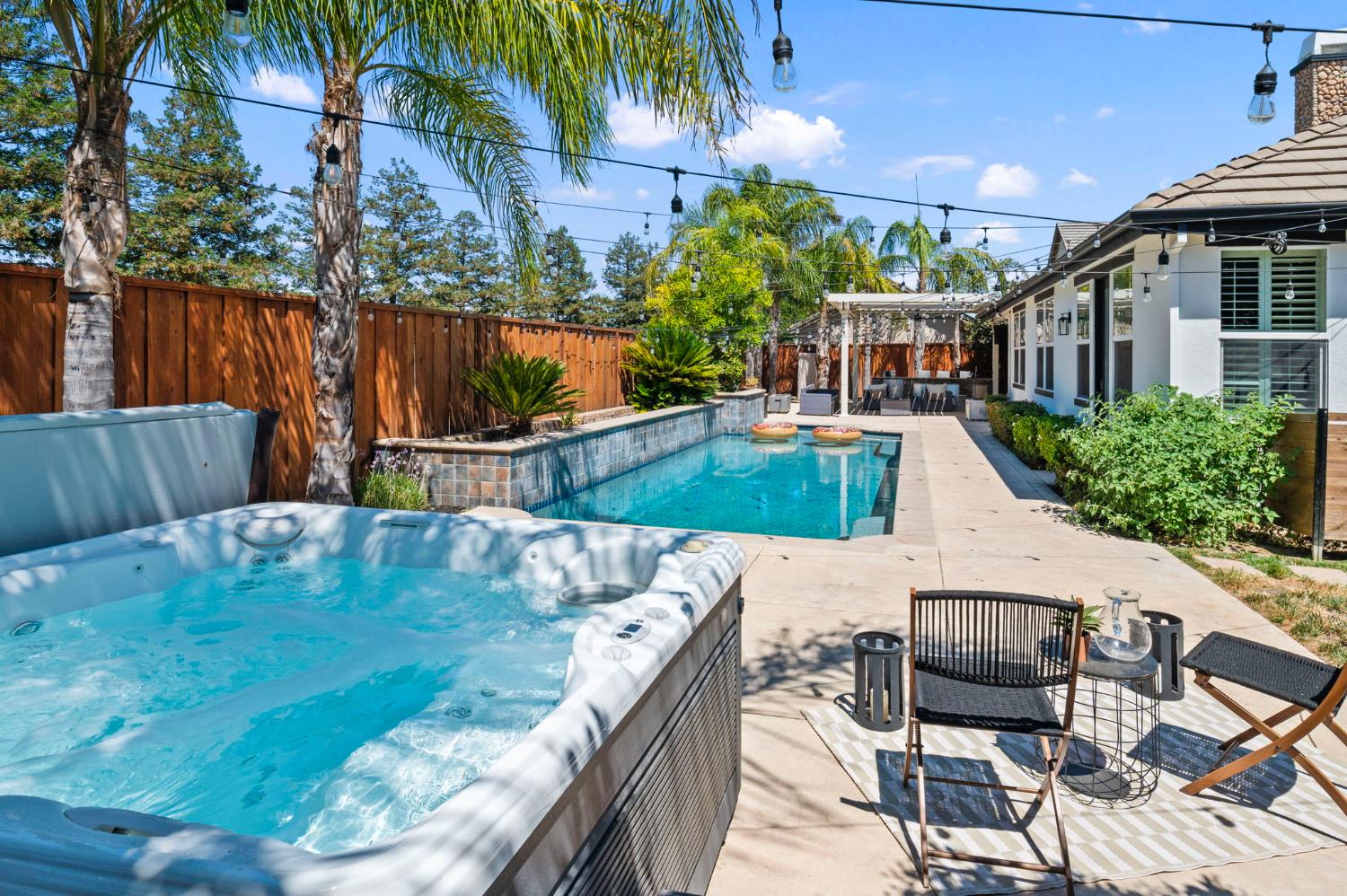 Located on a quiet cul-de-sac in one of Livermore's most desirable neighborhoods, this beautifully updated 6-bedroom, 4-bathroom home sits on a .38-acre lot with no rear neighbors. Ideal for large or multigenerational families and those who love to entertain, the home offers a versatile open-concept layout with a spacious great room, plus an additional flex room/office with kitchenette, and abundant natural light. Oak engineered hardwood flooring flows throughout, adding warmth and continuity to the stylish interior. The kitchen features quartz countertops, a luxury built-in refrigerator, ample cabinetry, and a large center island perfect for gatherings. The bathrooms and laundry room have received a thoughtful glow-up, with Italian porcelain tile and updated finishes for a clean, refreshed look. Step outside to your private backyard oasis featuring a beautifully refinished pool, equipped with an outdoor kitchen, and a large covered patio-ideal for entertaining, relaxing, or enjoying warm Livermore days. A generous driveway, RV Parking,& 3-car garage provide ample parking and storage. With tasteful updates and space to grow into, this home offers the perfect blend of comfort and function and is located in the heart of wine country. Come live the LIVERMORE DREAM!