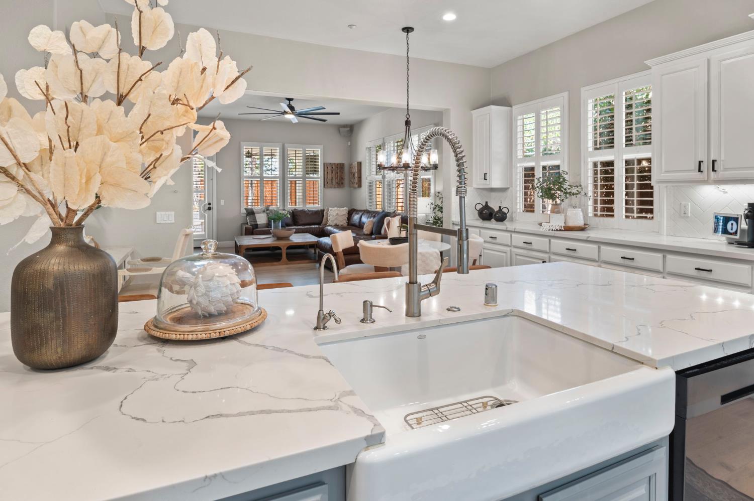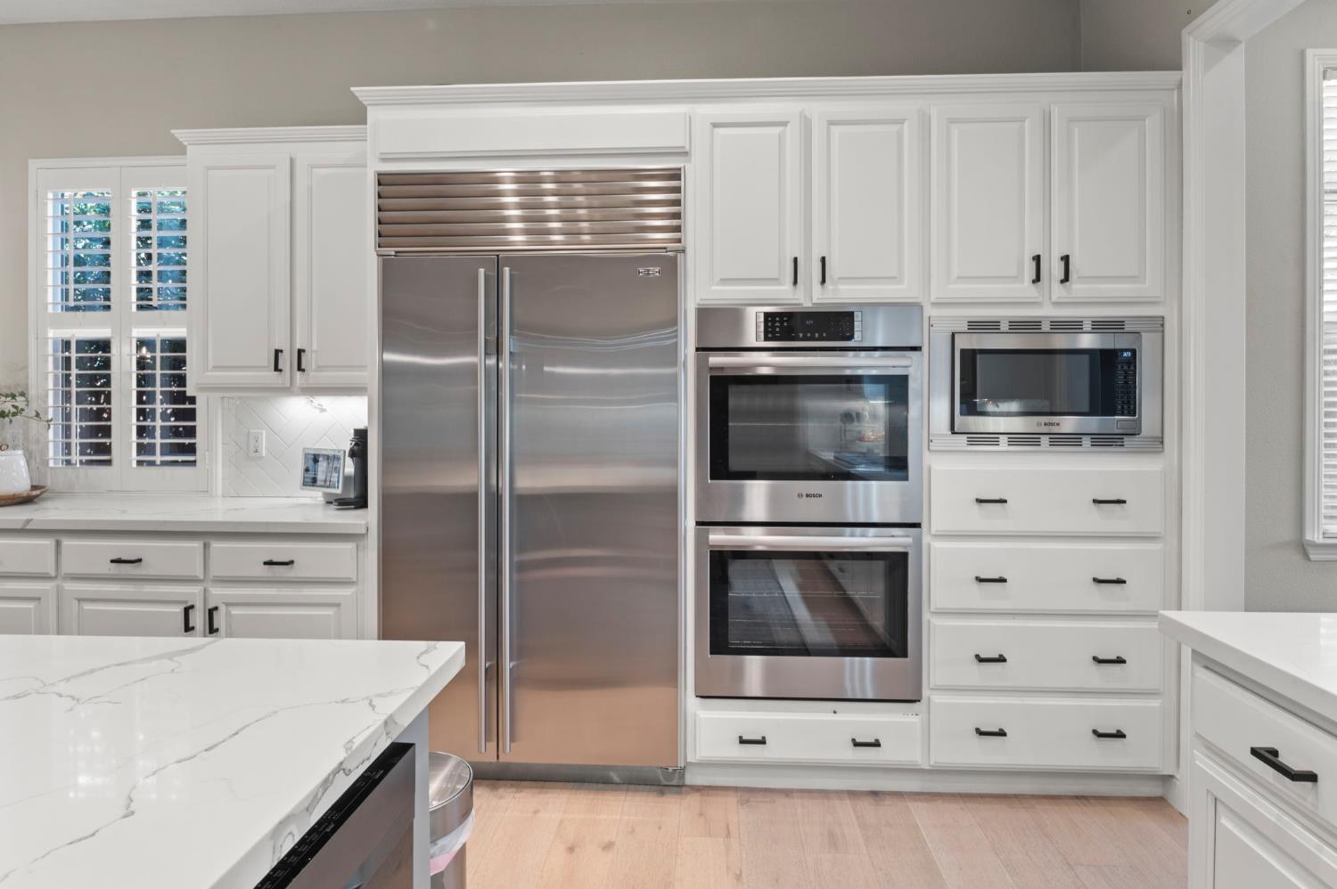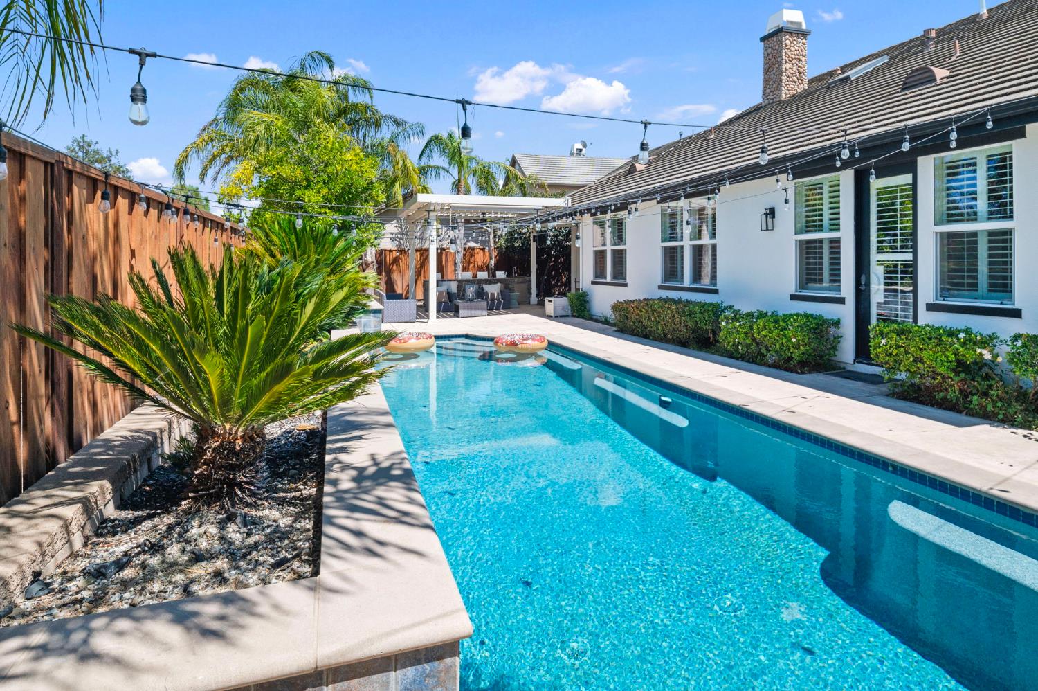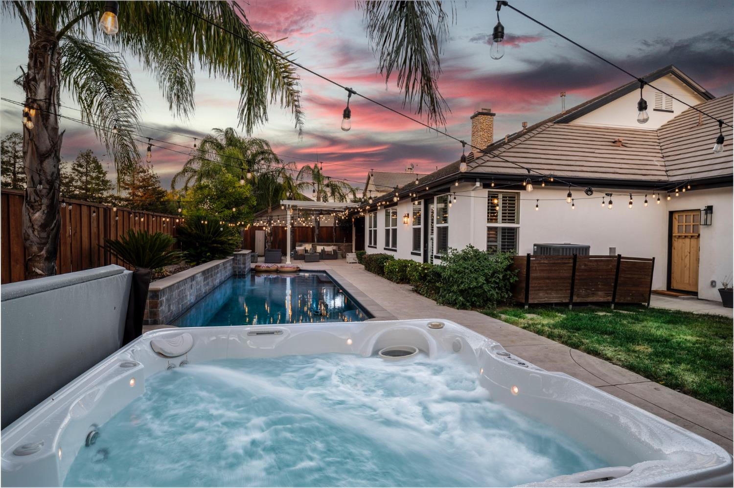 Located on a quiet cul-de-sac in one of Livermore's most desirable neighborhoods, this beautifully updated 6-bedroom, 4-bathroom home sits on a .38-acre lot with no rear neighbors. Ideal for large or multigenerational families and those who love to entertain, the home offers a versatile open-concept layout with a spacious great room, plus an additional flex room/office with kitchenette, and abundant natural light. Oak engineered hardwood flooring flows throughout, adding warmth and continuity to the stylish interior. The kitchen features quartz countertops, a luxury built-in refrigerator, ample cabinetry, and a large center island perfect for gatherings. The bathrooms and laundry room have received a thoughtful glow-up, with Italian porcelain tile and updated finishes for a clean, refreshed look. Step outside to your private backyard oasis featuring a beautifully refinished pool, equipped with an outdoor kitchen, and a large covered patio-ideal for entertaining, relaxing, or enjoying warm Livermore days. A generous driveway, RV Parking,& 3-car garage provide ample parking and storage. With tasteful updates and space to grow into, this home offers the perfect blend of comfort and function and is located in the heart of wine country. Come live the LIVERMORE DREAM!