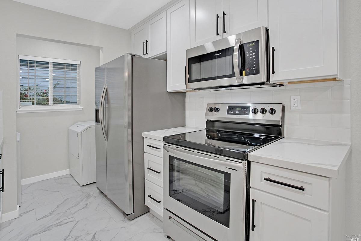 Step into this beautifully updated lower-level home featuring a spacious open floor plan designed for comfort and convenience. The freshly painted interior shines with new laminate flooring throughout, while the upgraded kitchen boasts brand-new premium cabinets, quartz countertops, tile flooring, and sleek new appliances. Both bathrooms have been completely remodeled, and the bedrooms offer walk-in closets plus an additional vanity for extra storage and ease. Enjoy in-unit laundry, a private and cozy layout, and access to community amenities including a sparkling pool, clubhouse with fireplace, and fitness center. Ideally located just minutes from Highways 780, 80, 680, State Route 37, and the Vallejo Ferry Terminal perfect for Bay Area commuters.