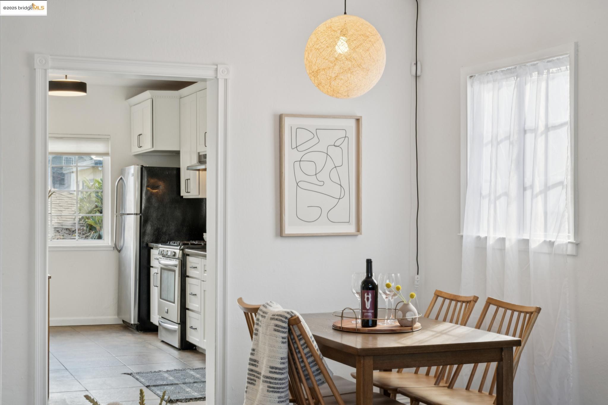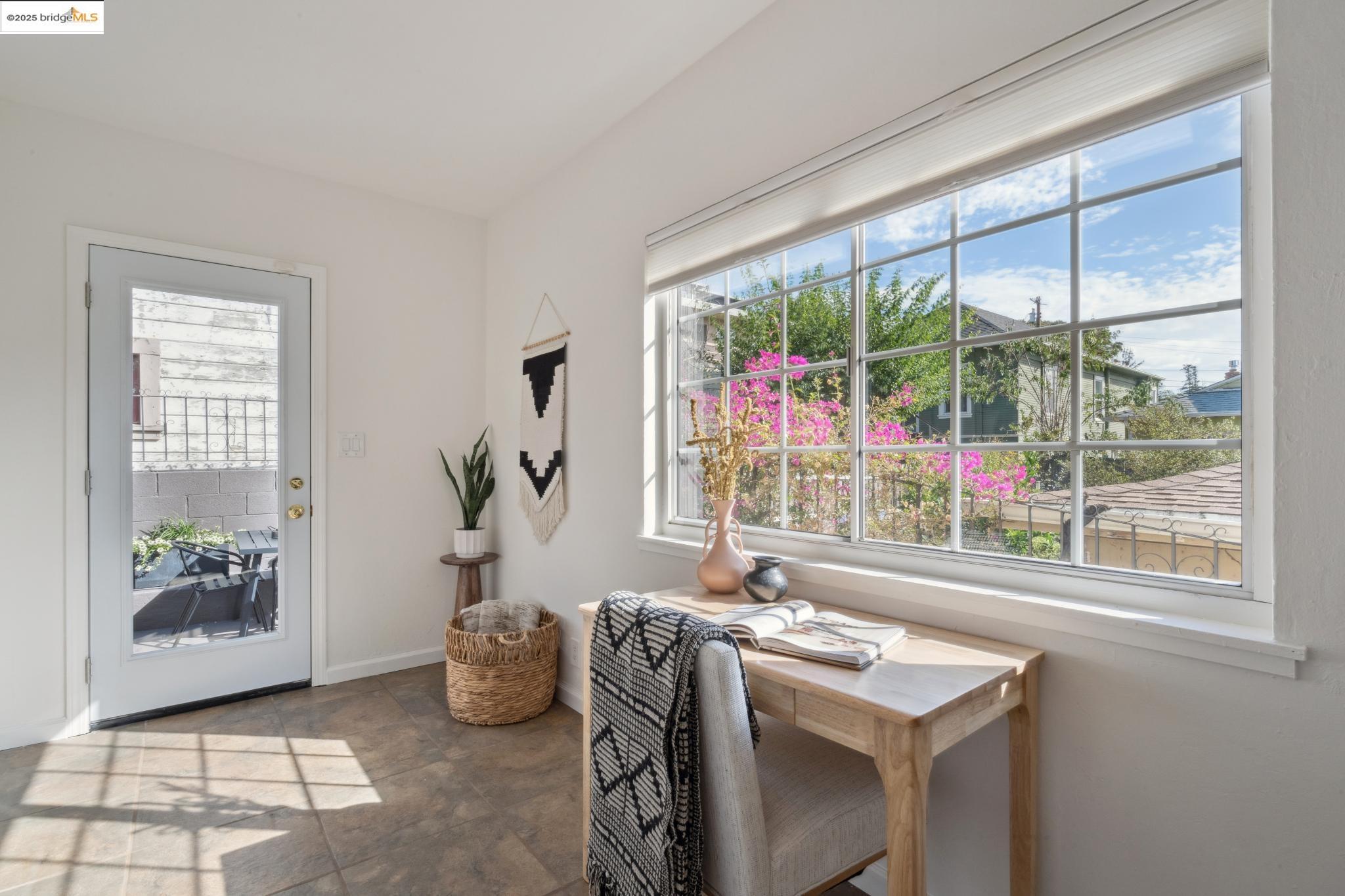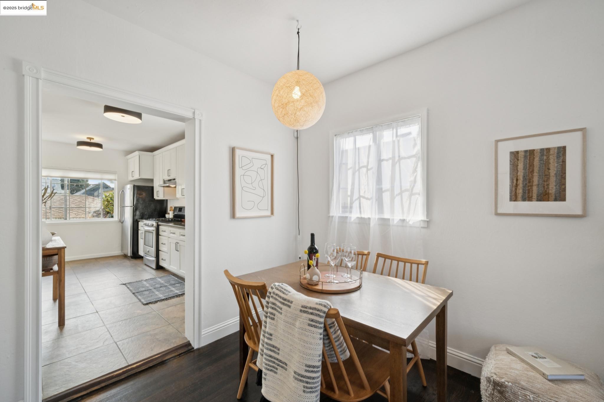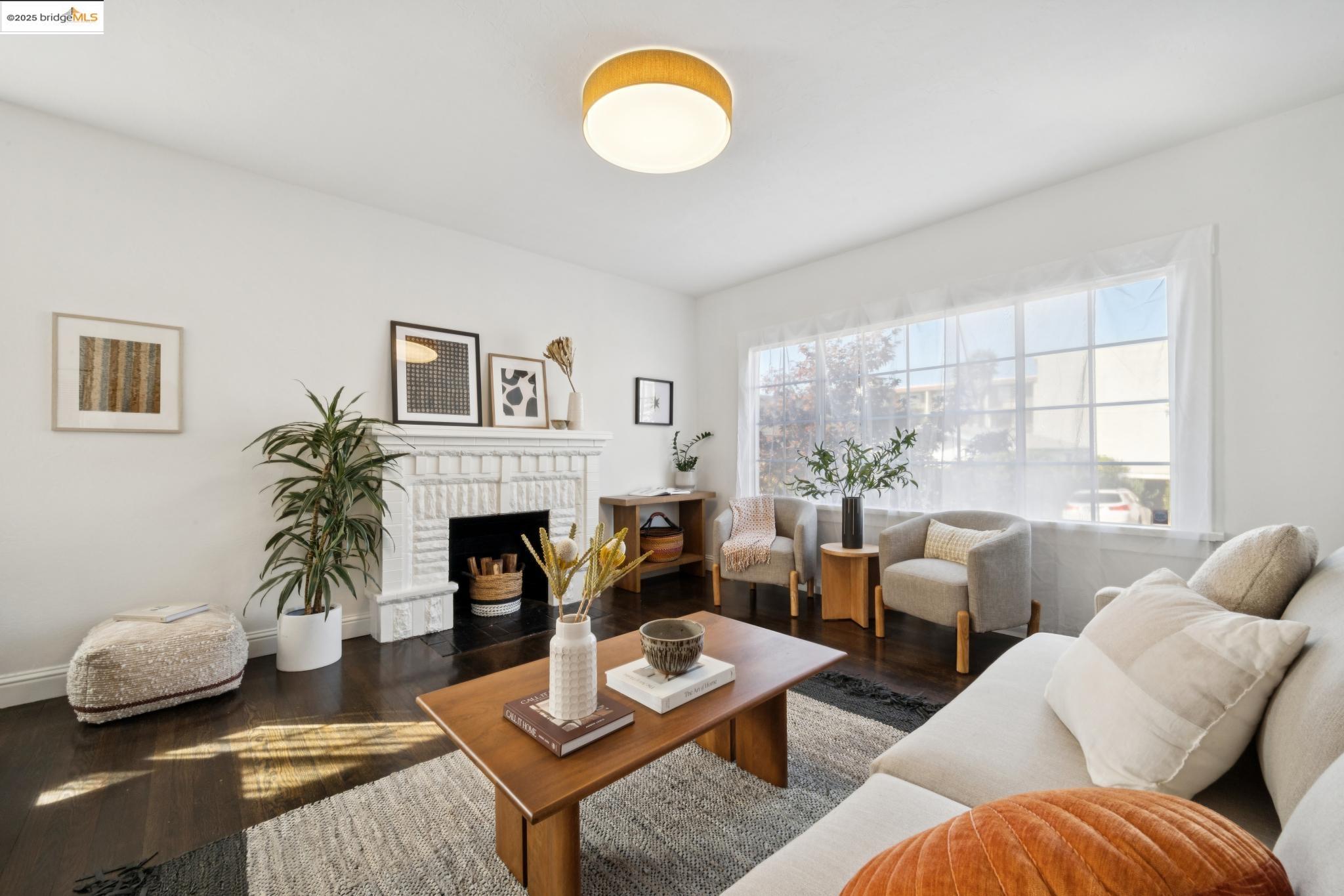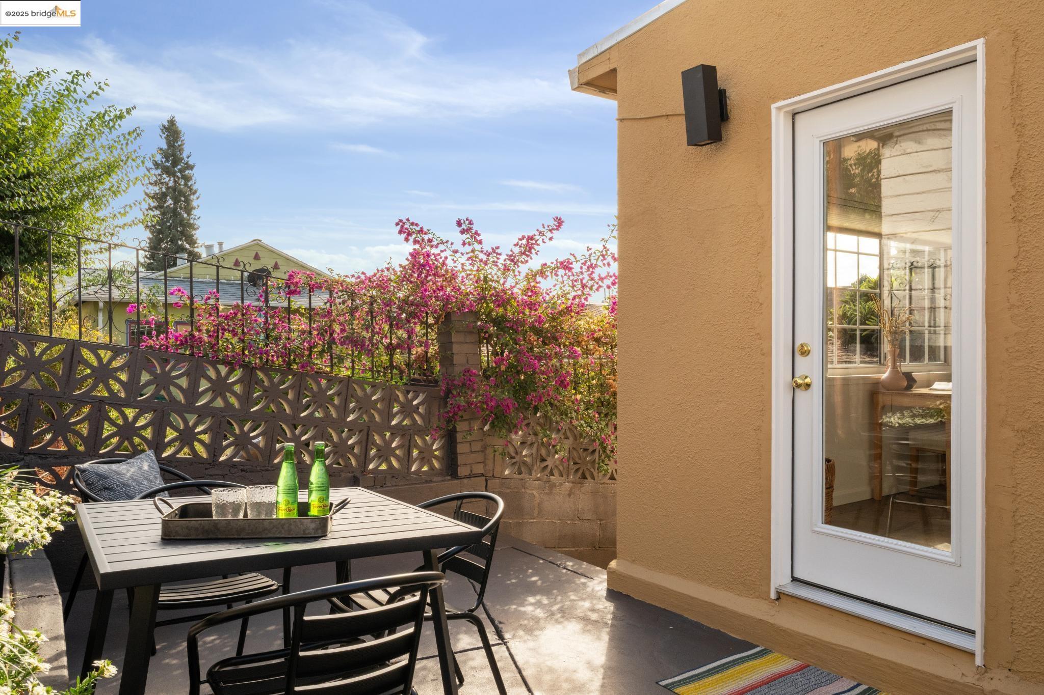 Charming 2-bedroom, 1-bathroom home designed for easy living. Centrally located, this property is blocks away from Dimond District shops and restaurants, parks, public library, freeway, and public transportation. This home is anchored by a welcoming living room dining room combo with a decorative fireplace. A well-appointed kitchen provides ample counter space and storage. Off the kitchen, discover an additional versatile space ideal for an office, music nook, or crafts corner. A glass door at the end of the room offers abundant natural light and opens to an inviting sunny patio for al fresco dining or a quiet afternoon nap. Two bedrooms with functional closets. Refreshed bathroom with skylight over the tub. This home is a blend of charm and practicality - ideal for those looking for the low maintenance of a condo with the privacy and independence of a detached home.