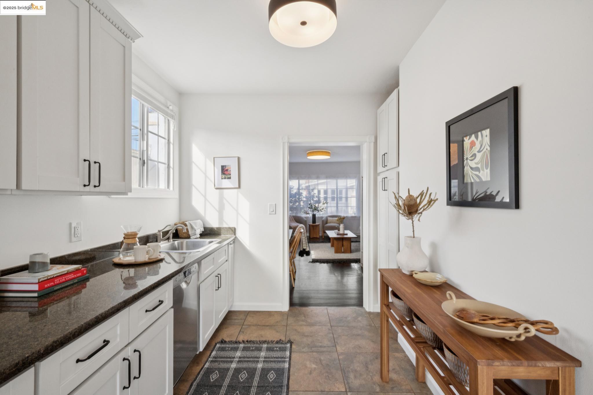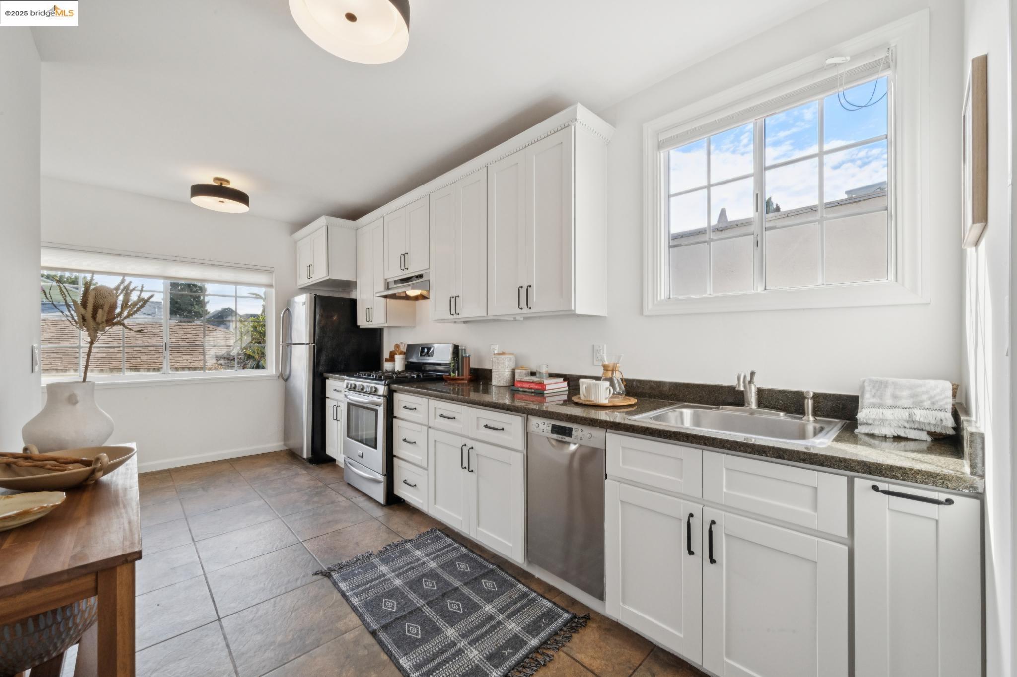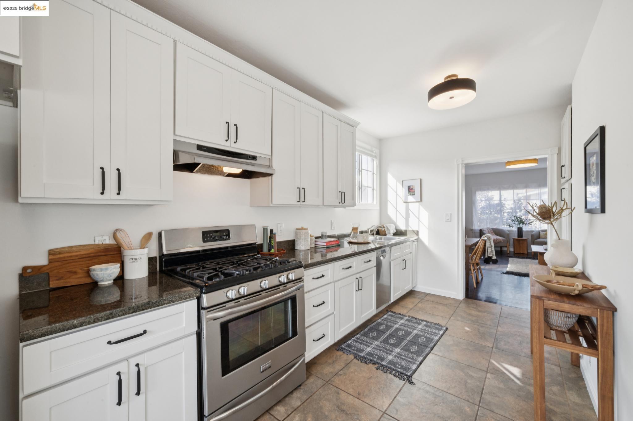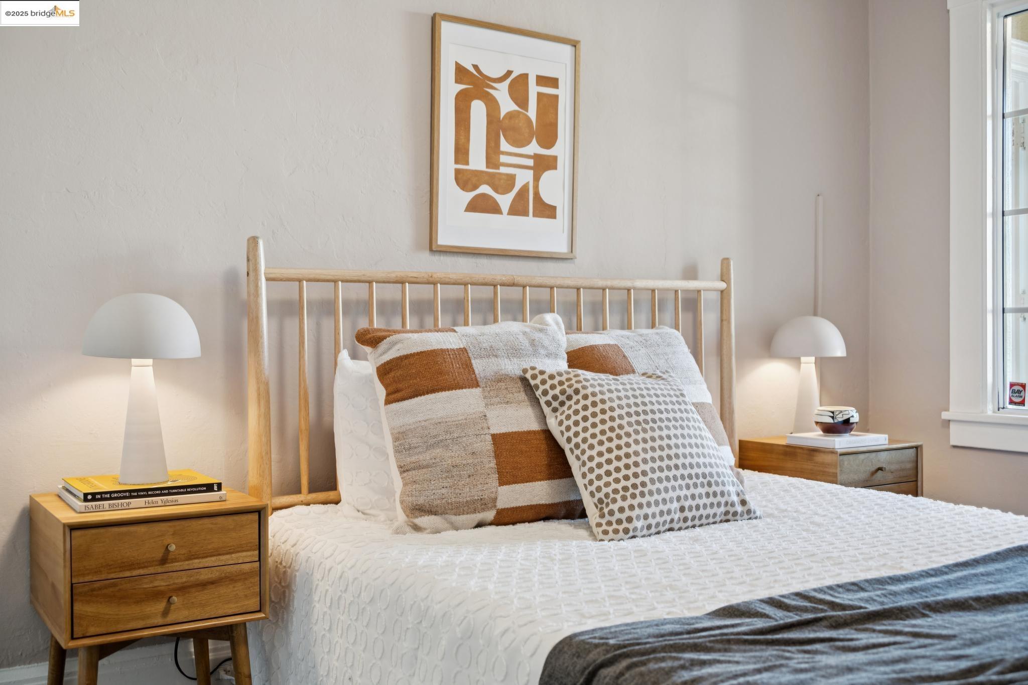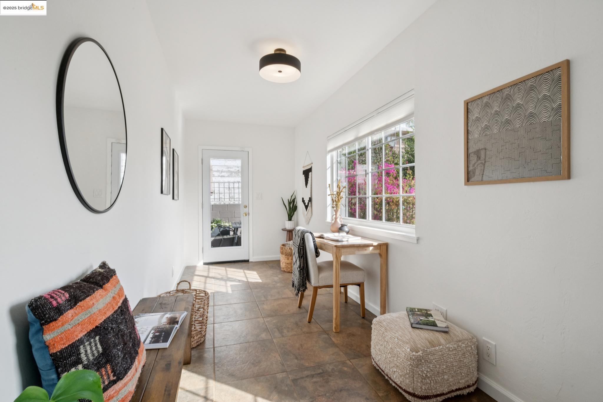 Charming 2-bedroom, 1-bathroom home designed for easy living. Centrally located, this property is blocks away from Dimond District shops and restaurants, parks, public library, freeway, and public transportation. This home is anchored by a welcoming living room dining room combo with a decorative fireplace. A well-appointed kitchen provides ample counter space and storage. Off the kitchen, discover an additional versatile space ideal for an office, music nook, or crafts corner. A glass door at the end of the room offers abundant natural light and opens to an inviting sunny patio for al fresco dining or a quiet afternoon nap. Two bedrooms with functional closets. Refreshed bathroom with skylight over the tub. This home is a blend of charm and practicality - ideal for those looking for the low maintenance of a condo with the privacy and independence of a detached home.