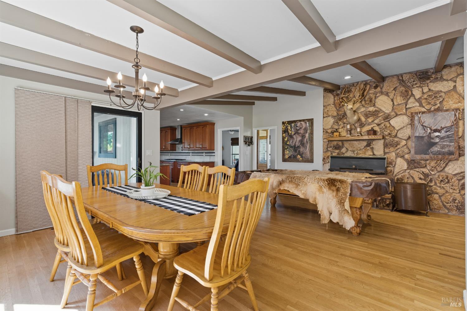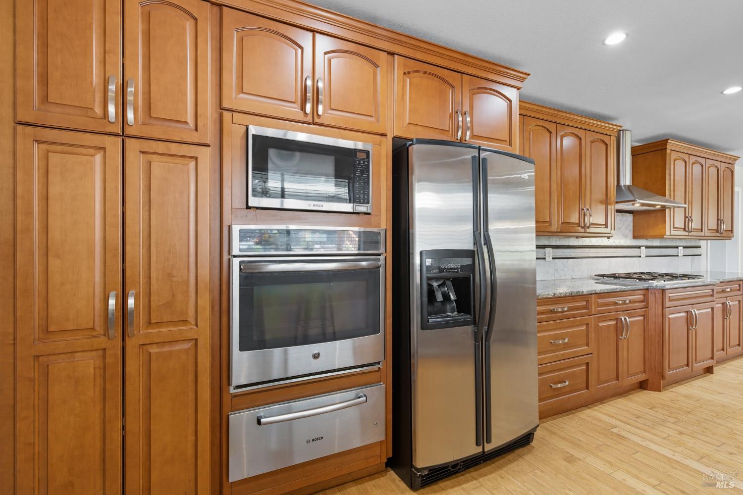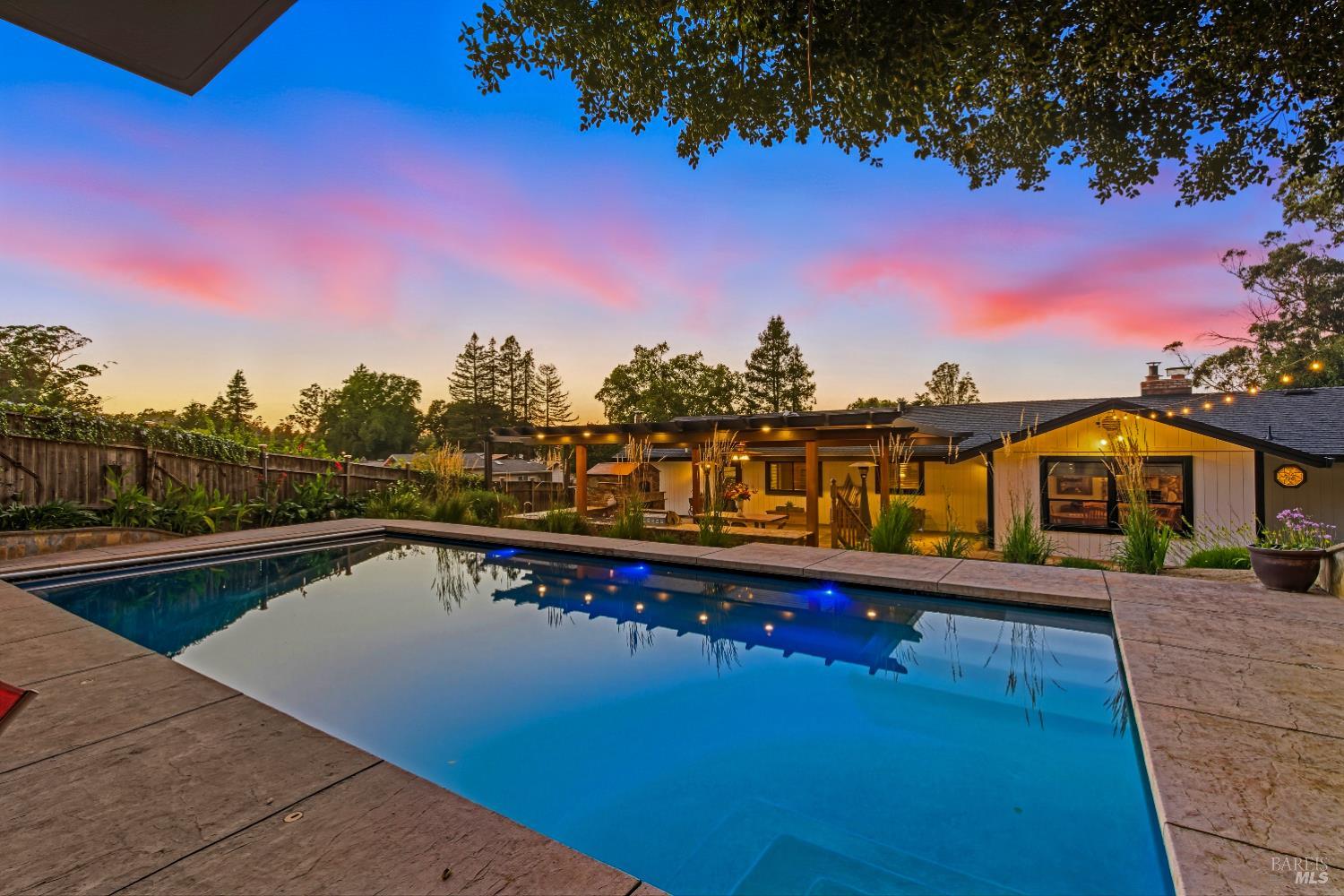 Private and peaceful setting in Cotati! This beautifully updated 3-bedroom, 2-bath home offers a perfect blend of comfort and style. Hardwood floors flow throughout, while the bathrooms feature elegant travertine and tile finishes. The oversized kitchen is a chef's dream with granite counters, marble backsplash, maple cabinets, stainless steel appliances, wine refrigerator, gas stove with warmer, and plenty of prep space. A separate laundry room includes storage and a sink. Recent updates include a newer HVAC system, water heater, and freshly painted exterior. Enjoy your backyard oasis with built-in BBQ, pizza oven, cooktop, icemaker/cooler, and granite counters. The stamped concrete patio includes an electric awning with recessed lighting and ceiling fan. Relax by the built-in pool with safety cover, soak in the hot tub, or gather around the firepit. The property also features an extra-large two-stall barn with tack room and walk-in meat refrigerator, dog run, two chicken coops, she shed, greenhouse, large pasture, and garden beds. The property features a variety of fruit trees, including: citrus, olives, peaches, pears, apricots, plums, cherries, pomegranates and apples. Security system with cameras included. Private yet close to town, this home is a true country retreat!
