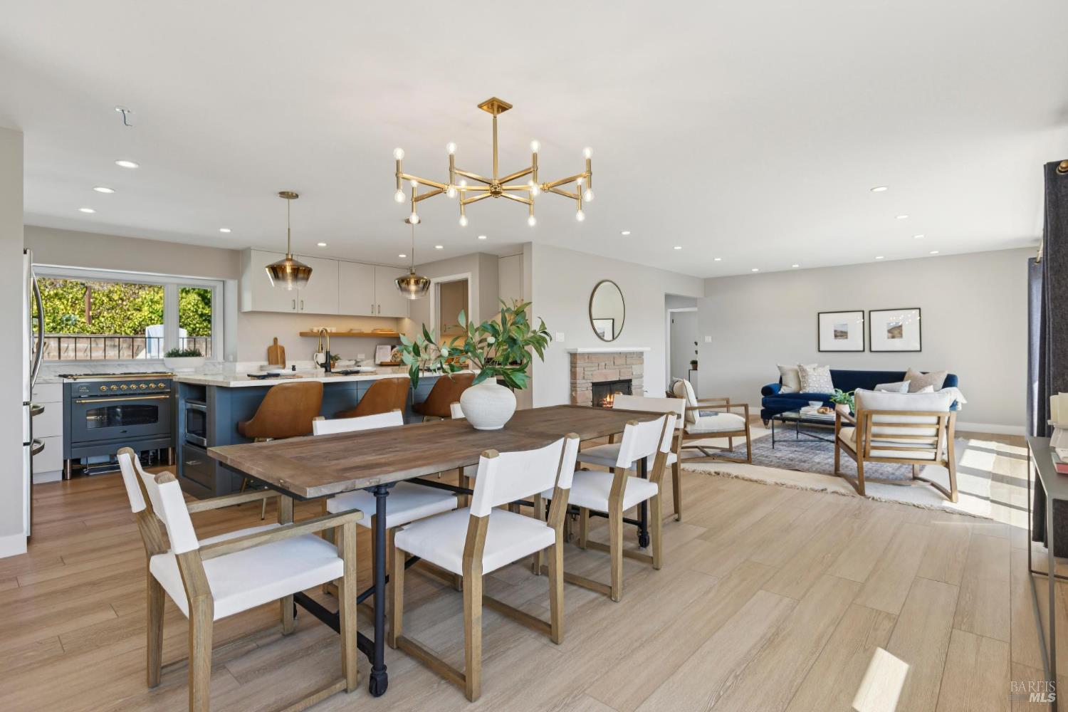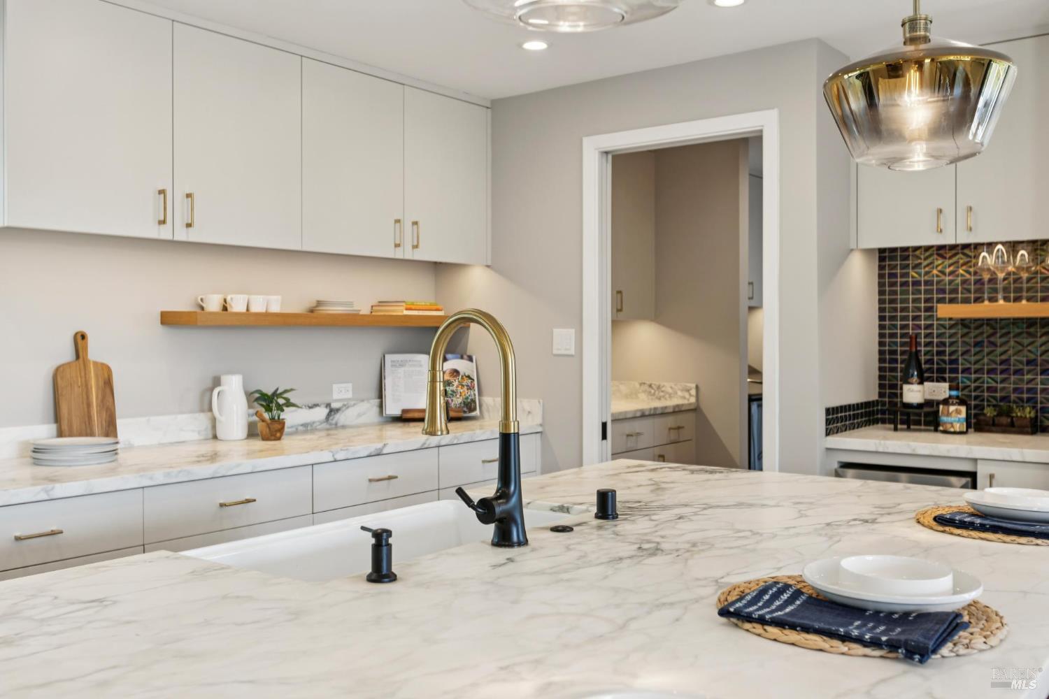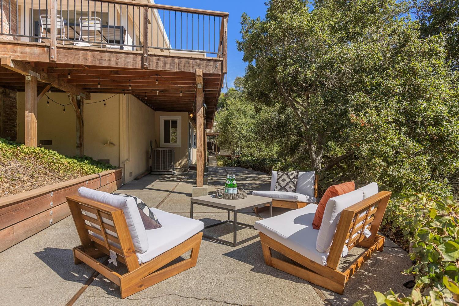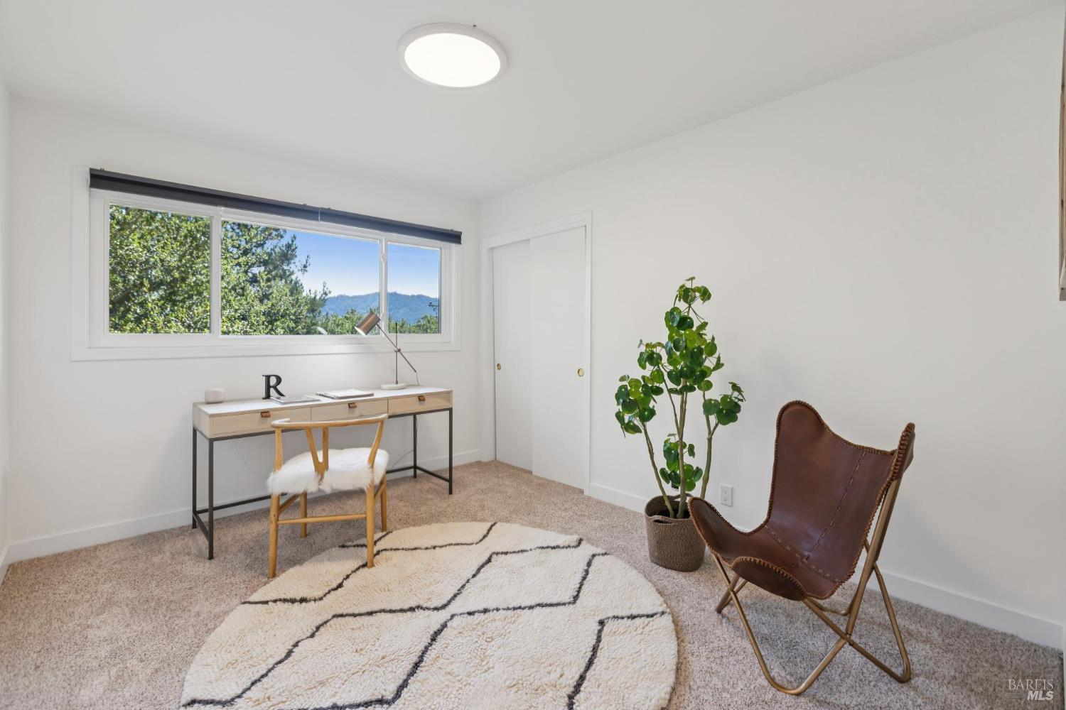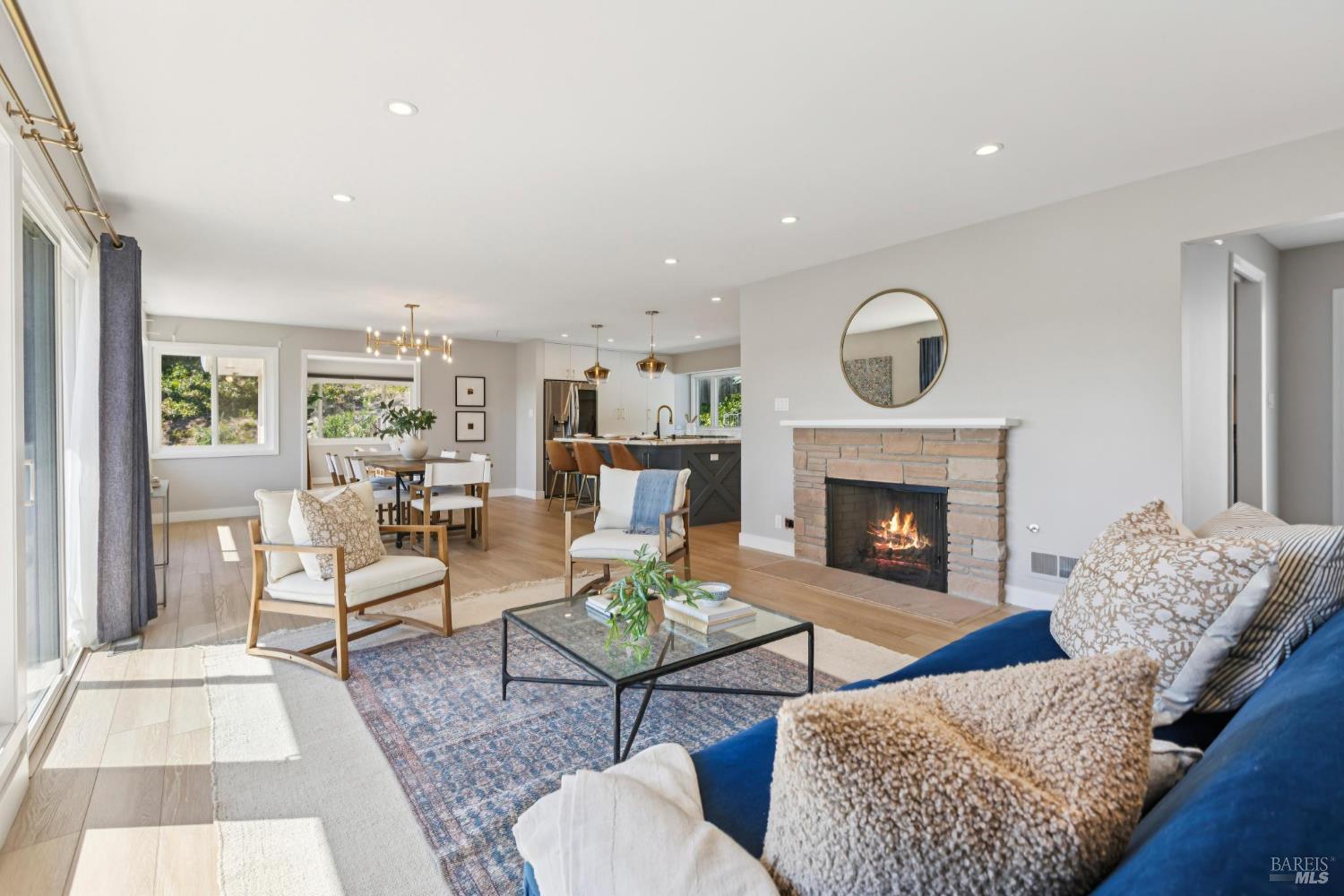Nestled on over an acre of private, sun-drenched land on a quiet cul-de-sac, this expansive and recently remodeled hillside family home offers the ideal blend of space, comfort, and convenience. With sprawling interiors designed for both relaxed living and stylish entertaining, this home is a rare find in one of Marin's most desirable settings. The main level features a formal living room, dining room, den, a spacious eat-in kitchen with expansive marble island, five bedrooms, and three bathrooms. The serene Primary Bedroom includes a remodeled en-suite bathroom with soaking tub, and a private deck to take in glowing Mt. Tam sunsets. The backyard features a sparkling pool framed by generous decks and hillside views. Perfect for poolside al fresco dining, this outdoor oasis seamlessly extends the living space. Downstairs, you'll find a large family room with a built-in bar, dedicated exercise room complete with rubber flooring and sliding glass doors, a sixth bedroom, another remodeled bathroom, and an attached two-car garage. Located just minutes from the Larkspur ferry and Highway 101, this retreat in award-winning Kentfield school district offers easy access to the best of the Bay Area while maintaining the tranquility of a private, natural setting.