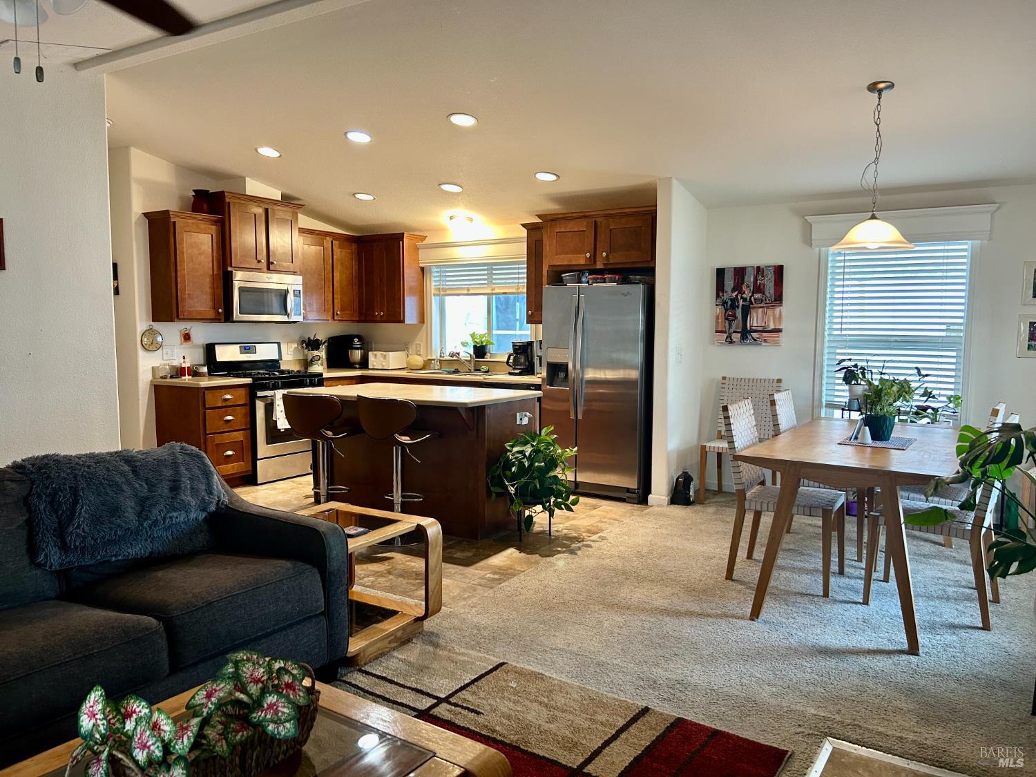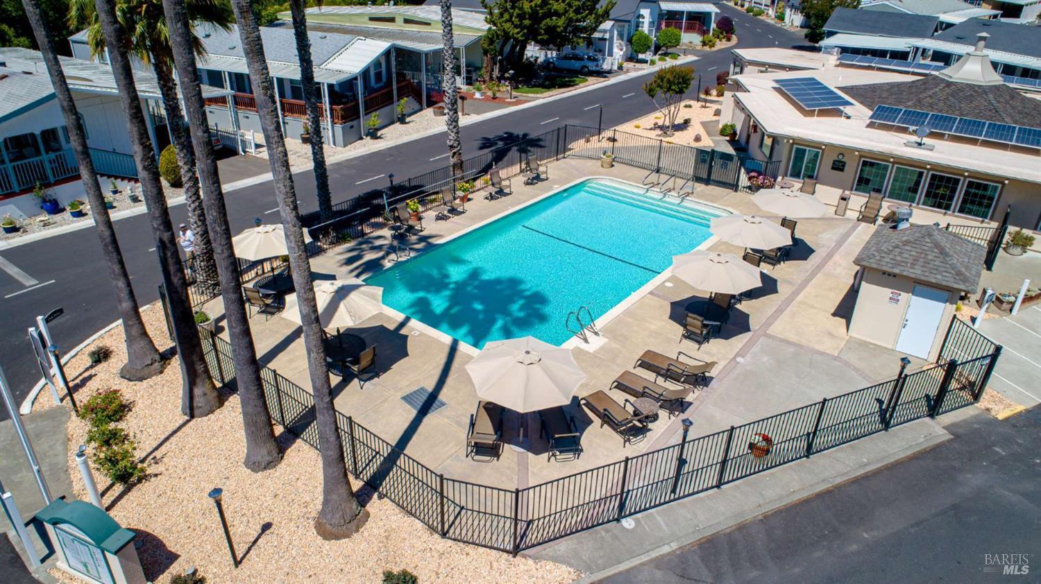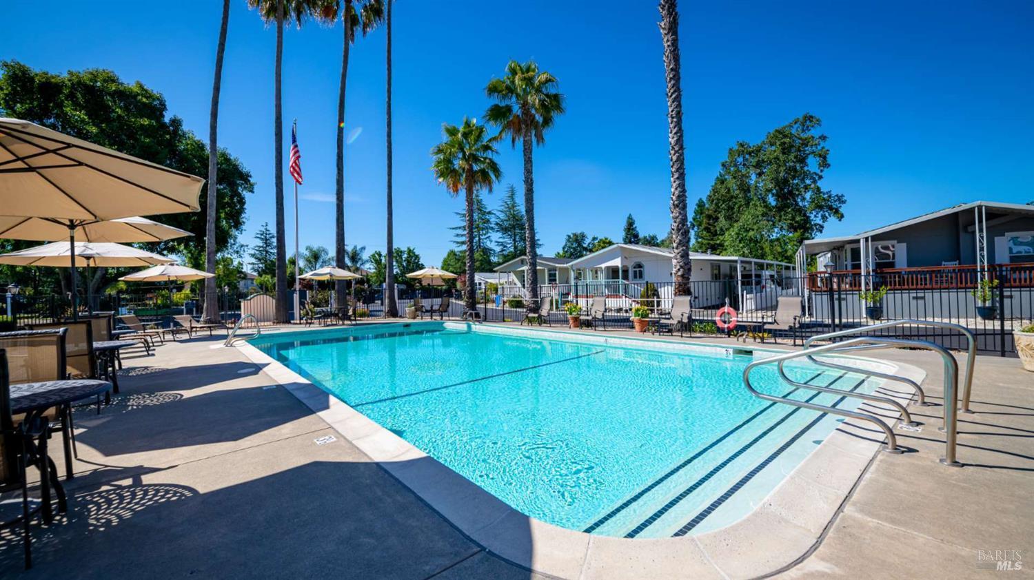 Lovely Location! This approx 1230 SF, 3 BR 2 BA Karsten MH, built in 2014, has a quiet prime location in the park, with vineyards just two doors down, as well as a shaded mini park! Enjoy the vineyard and hill views from your porch as well as those gorgeous Napa Valley Sunsets! The yard has a raised garden bed tied into a drip irrigation system, and is fully landscaped. Stainless steel appliances and washer/dryer convey. Discover the charm of this gated neighborhood in the heart of Napa Valley, just minutes from a myriad of fine dining choices. This highly sought after gated park has a beautiful clubhouse, two pools, mini golf, bocci, hot tub, sauna, dog park and tons of activities! Truly a great place to live!