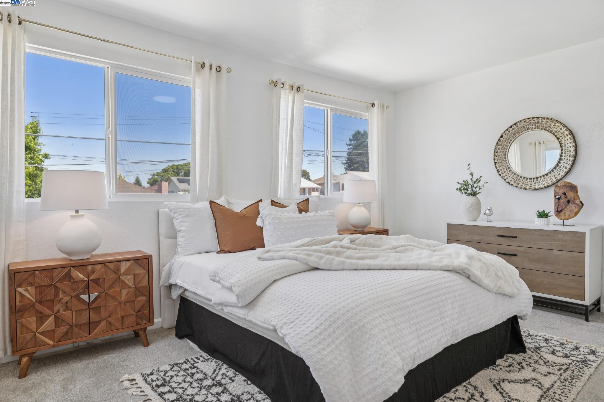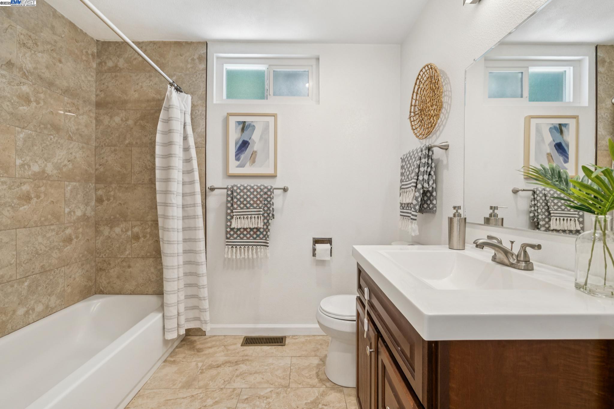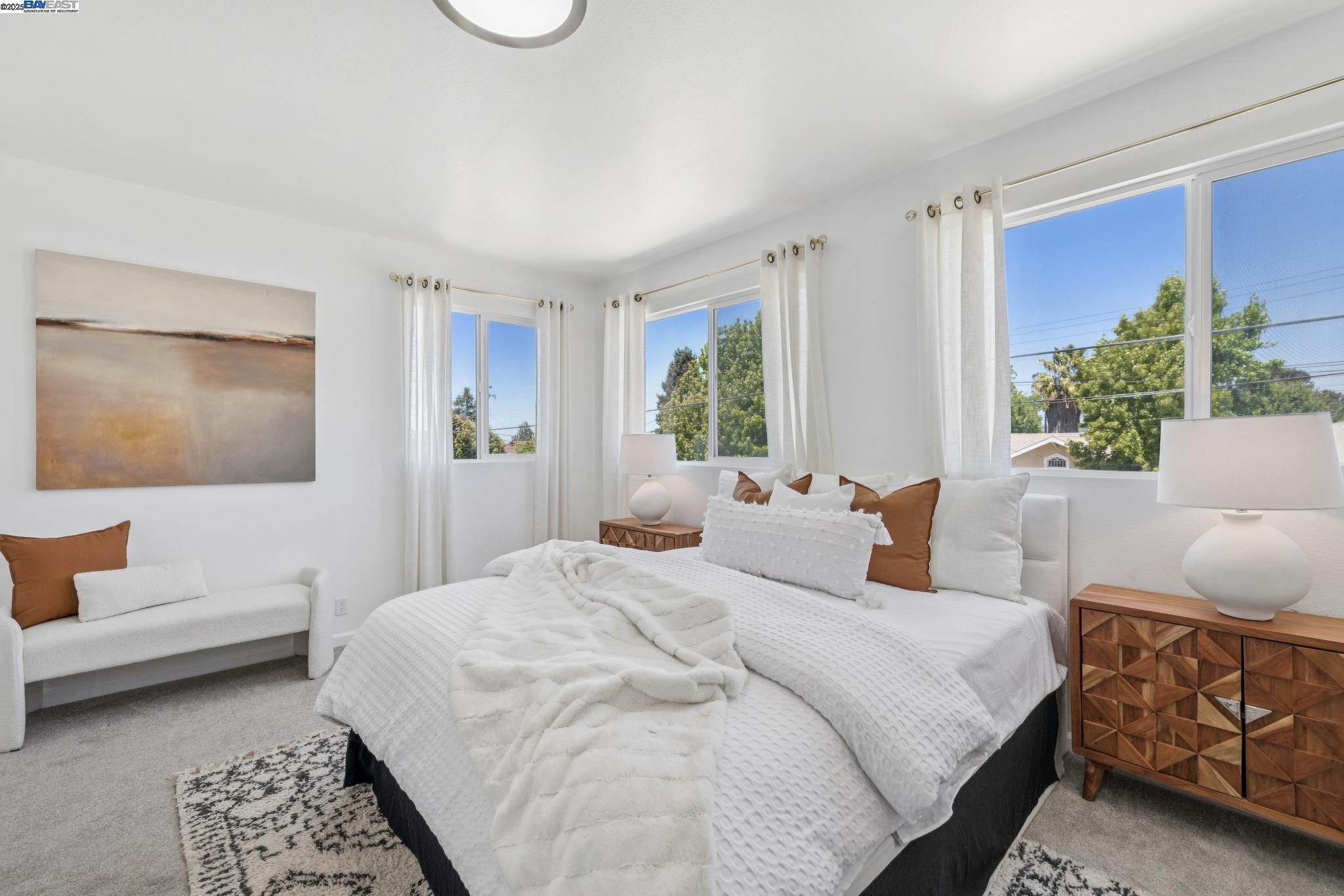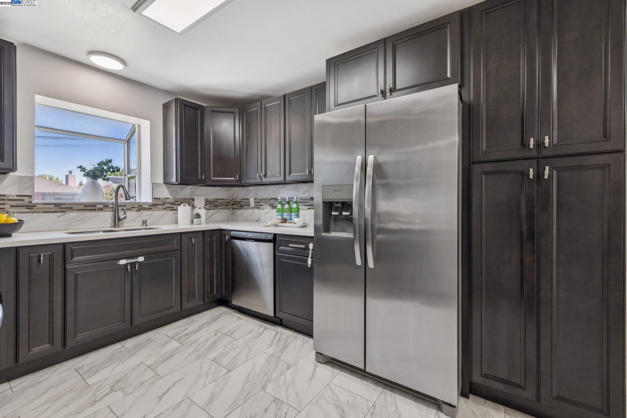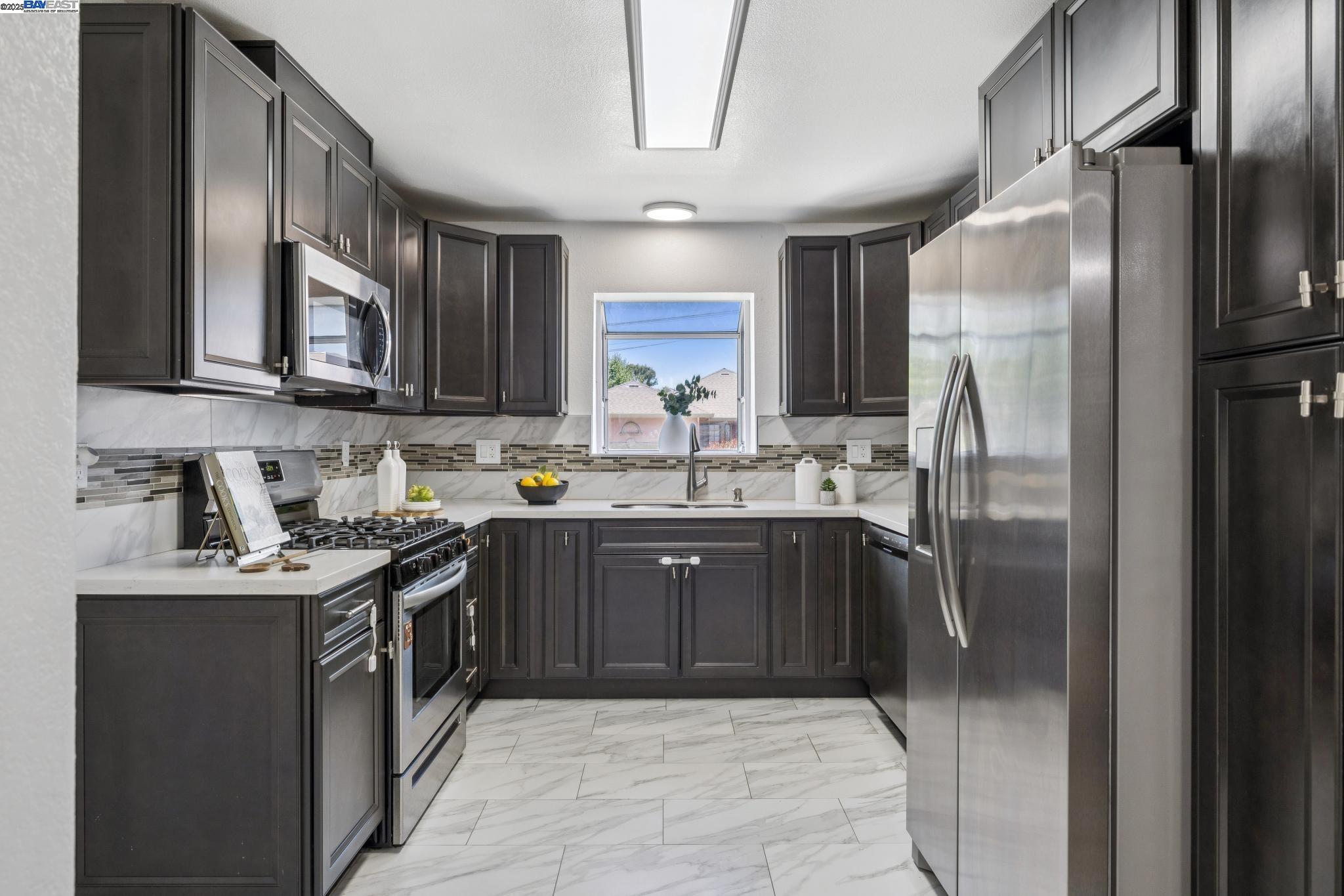 Welcome to 3287 Kelly Street, a beautifully updated 4-bedroom, 2-bathroom home nestled on a generous corner lot in the desirable Fairview District of Hayward. Boasting 1,546 square feet of stylish living space, this home seamlessly blends modern upgrades with cozy charm. The main level features three comfortable bedrooms, a full bathroom, and a bright formal living room with a gas fireplace—perfect for relaxing evenings. Entertain in the dedicated dining area, and cook to your heart’s content in the fully renovated kitchen complete with dark cabinetry, quartz countertops, and sleek stainless-steel appliances. Renovated just three years ago, the home offers durable vinyl flooring throughout, an updated roof, and contemporary finishes in both bathrooms. Upstairs, you’ll find a private primary suite retreat with a custom walk-in closet and a thoughtfully updated ensuite bath. Step outside to enjoy the expansive yard—ideal for entertaining, gardening, or play—and take advantage of the additional patio and storage shed. The corner lot provides added privacy and flexibility for outdoor living. Don’t miss this opportunity to own a move-in ready gem in a peaceful yet convenient Hayward location!
