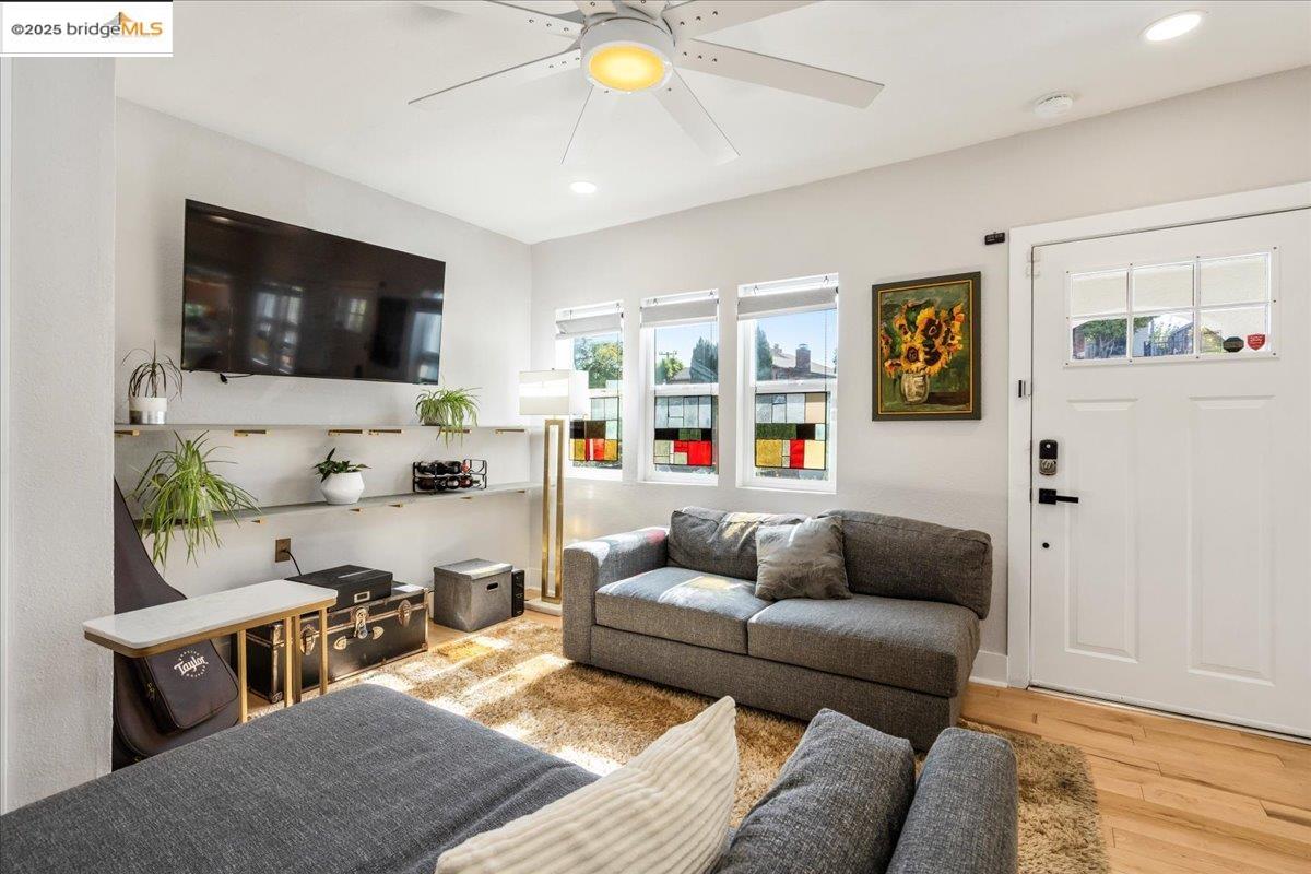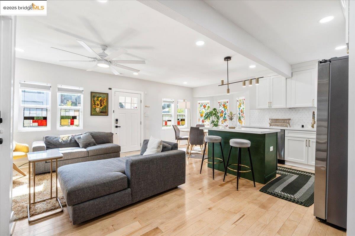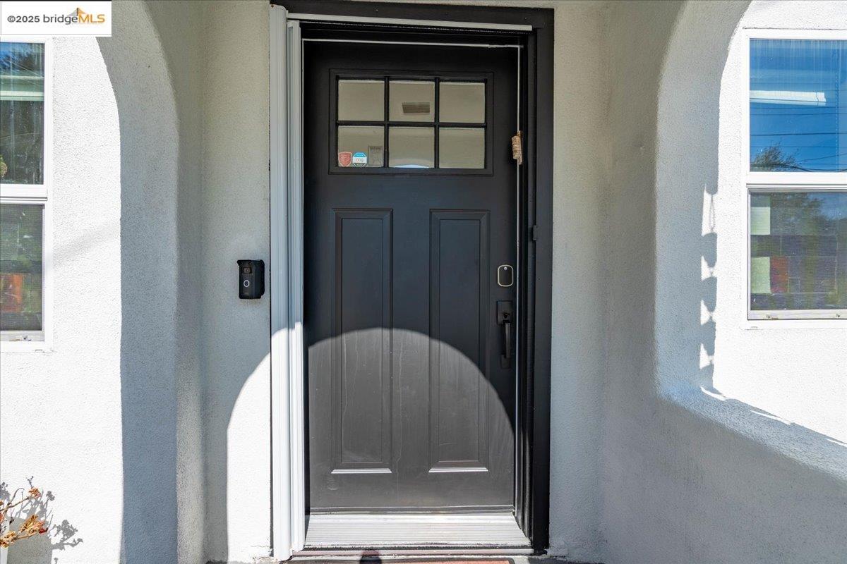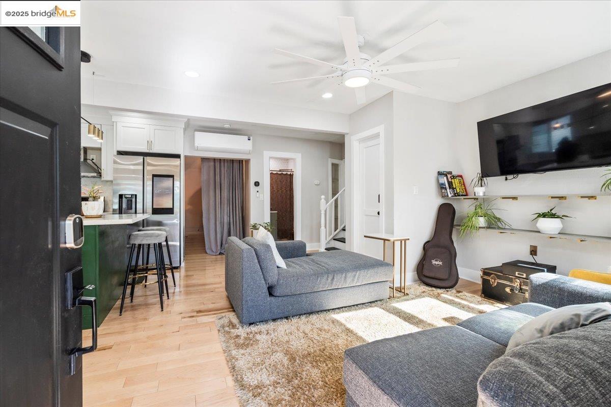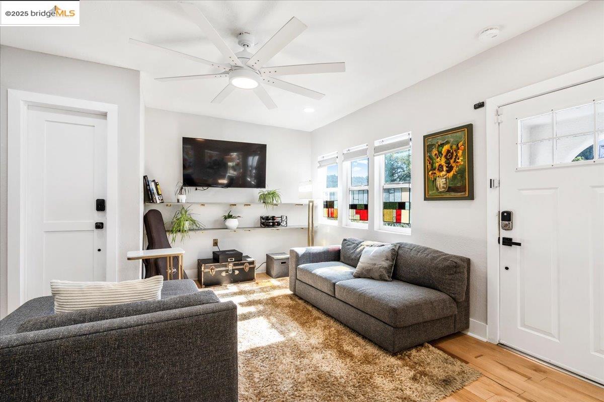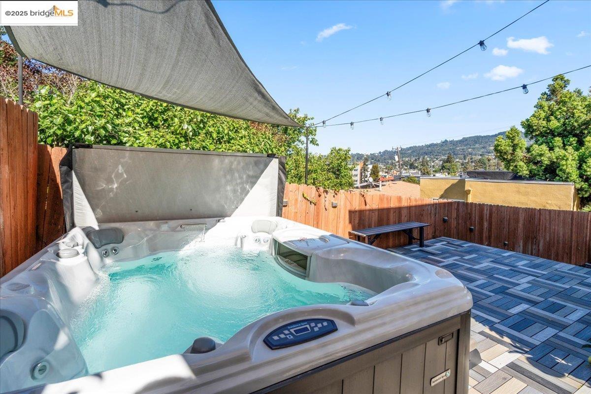 Come and check out this upgraded 1925 home located in Oakland’s desirable Maxwell Park neighborhood. The open concept floor plan features white shaker cabinets, gorgeous quartz countertops, stainless steel appliances, engineered maple floors, and refinished original hardwood upstairs. Bathrooms include a defogging vanity mirror, and towel warmer for a spa-like feel. Enjoy smart home comfort with high efficiency mini splits, Ecobee+ climate control, ceiling fans, a smart fridge, washer, dryer, and Ring alarm system. Energy Efficiency & Electrical: Added 15 owned solar panels which usually offset all house energy costs (not considering EV usage), upgraded electrical panel with 220V outlet, white silicone roofing, and improved attic ventilation. Structural improvements include a redone foundation, basement waterproofing, and a polycuramine glazed garage floor. The landscaped yard offers fruit trees, passionfruit vines, a graywater irrigation system, hot tub, patio, outdoor shower, and two additional outlets. With a finished basement space, new exterior stucco siding, a new fence, and an excellent 81 Walk Score, this home combines modern living, efficiency, and an unbeatable location, a true must see.