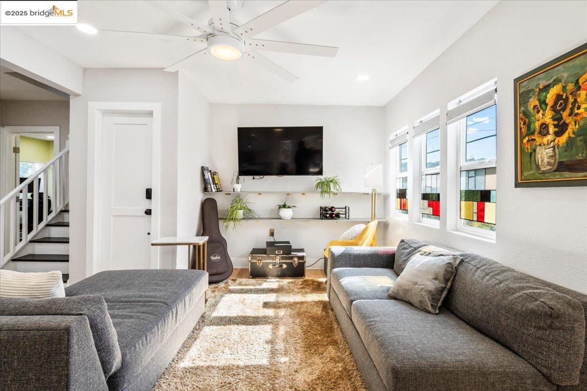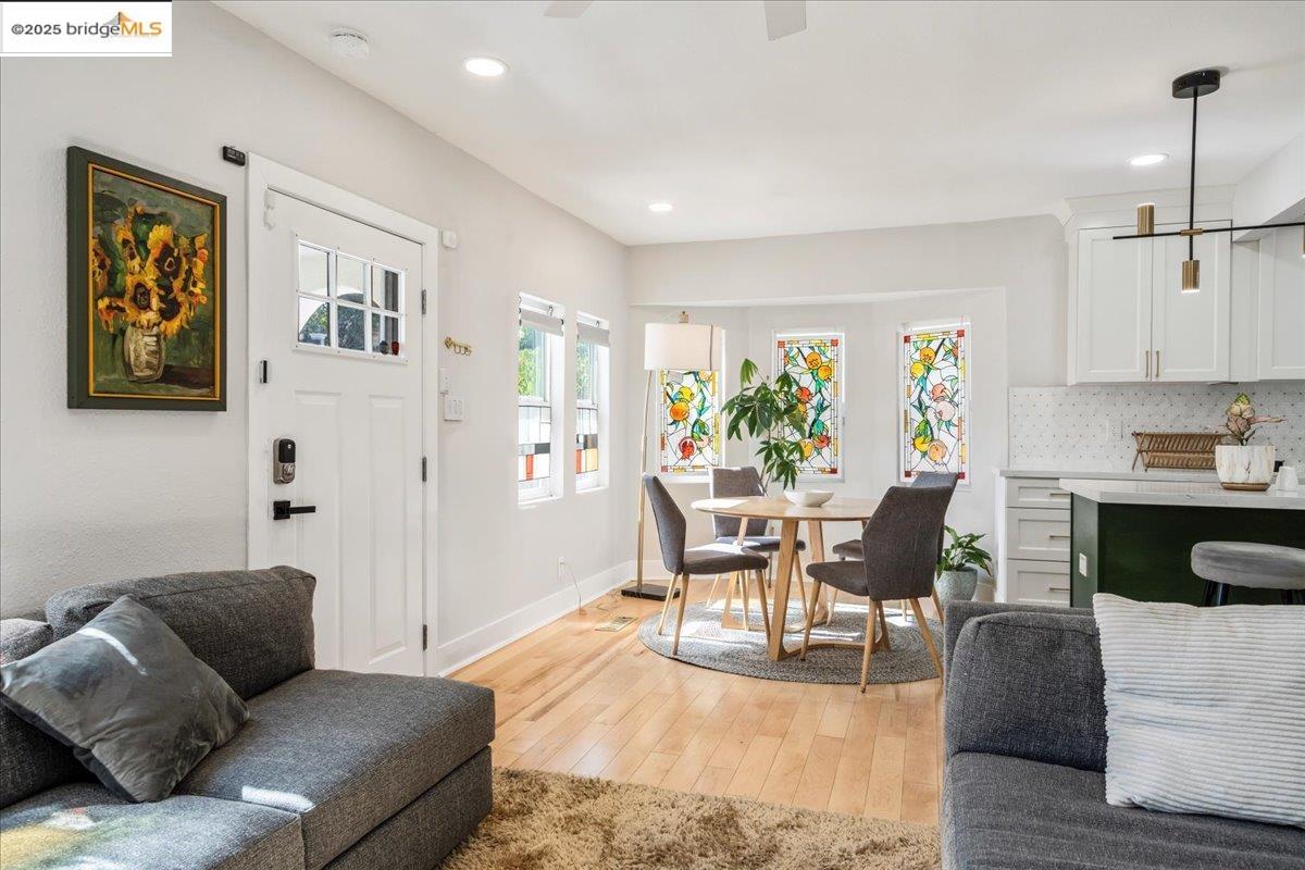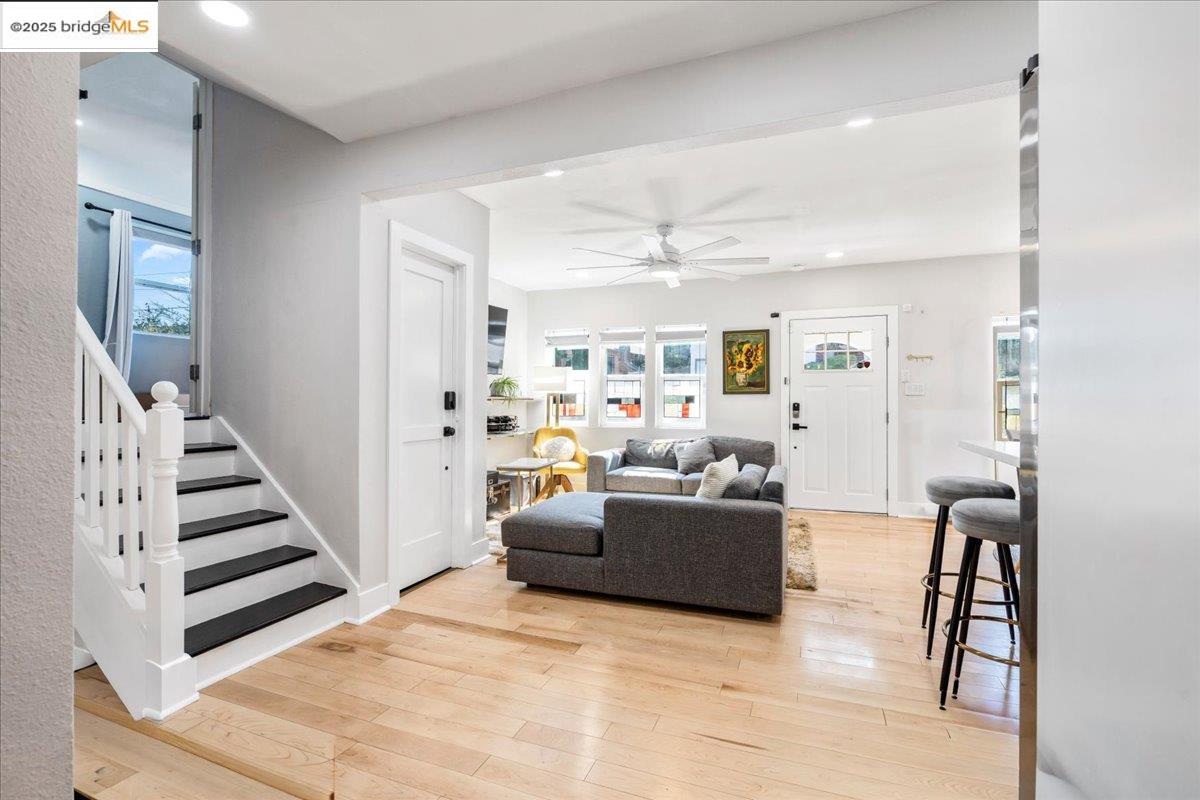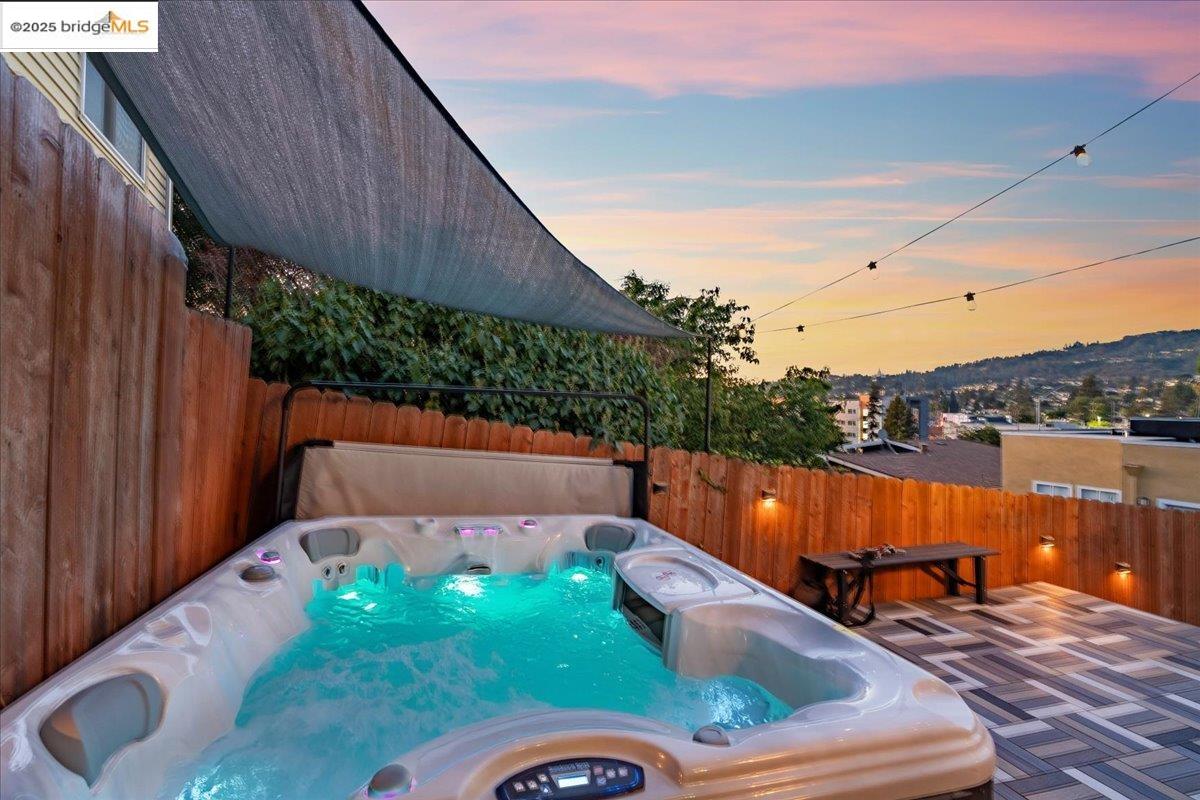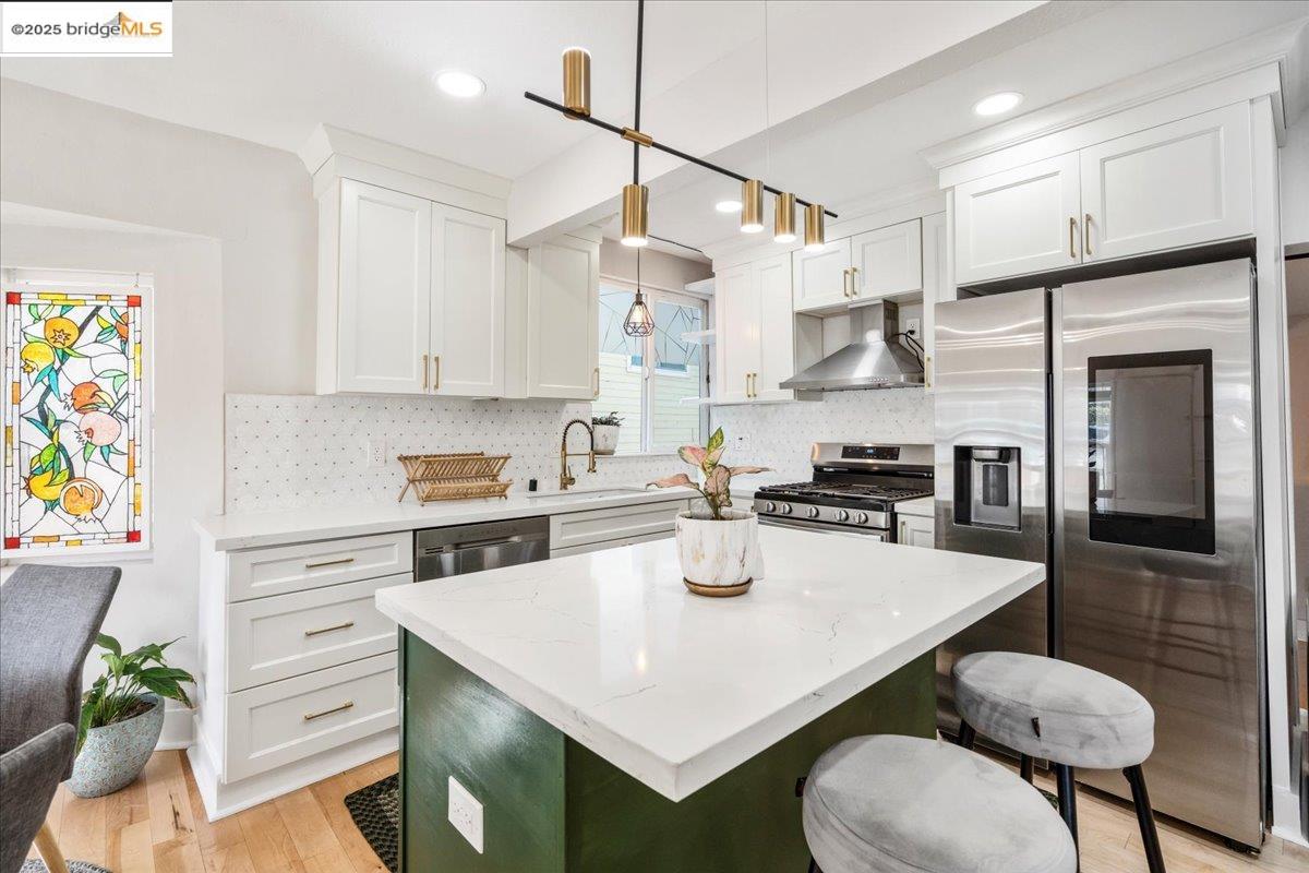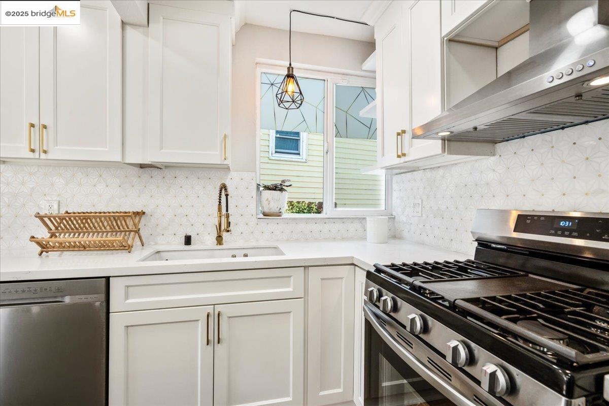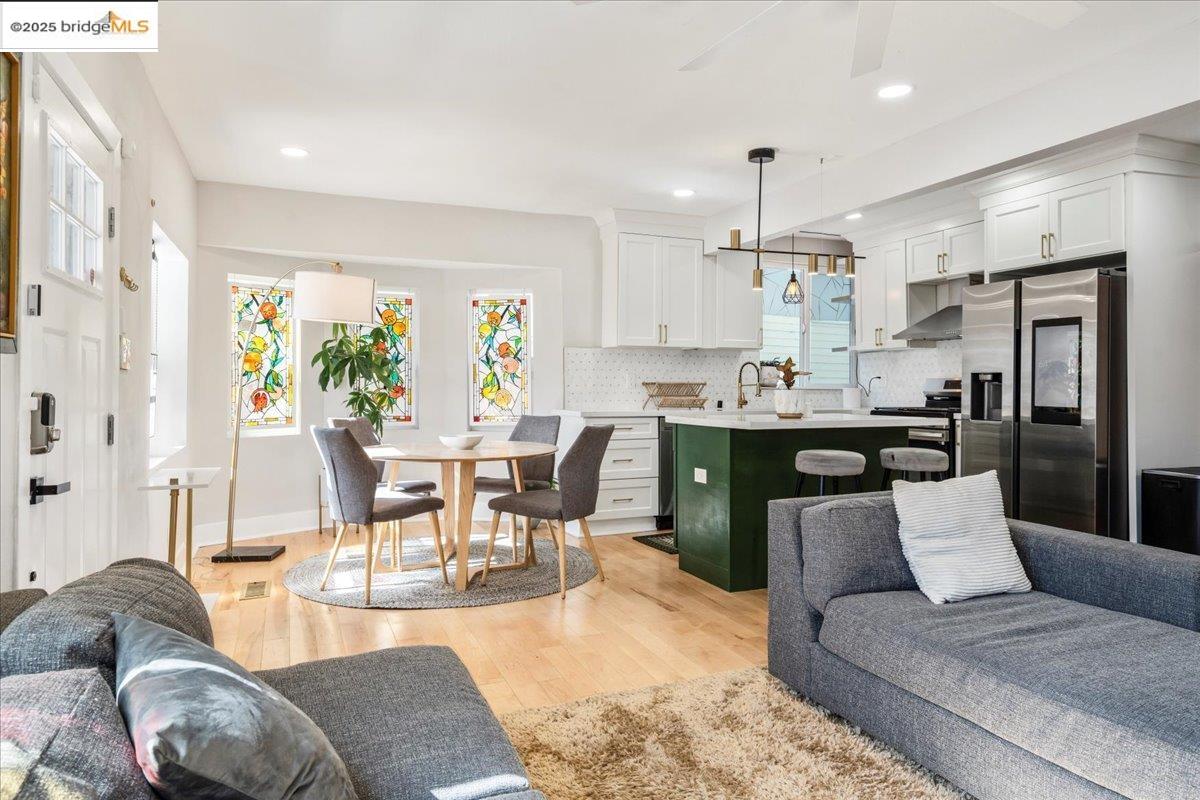 Come and check out this upgraded 1925 home located in Oakland’s desirable Maxwell Park neighborhood. The open concept floor plan features white shaker cabinets, gorgeous quartz countertops, stainless steel appliances, engineered maple floors, and refinished original hardwood upstairs. Bathrooms include a defogging vanity mirror, and towel warmer for a spa-like feel. Enjoy smart home comfort with high efficiency mini splits, Ecobee+ climate control, ceiling fans, a smart fridge, washer, dryer, and Ring alarm system. Energy Efficiency & Electrical: Added 15 owned solar panels which usually offset all house energy costs (not considering EV usage), upgraded electrical panel with 220V outlet, white silicone roofing, and improved attic ventilation. Structural improvements include a redone foundation, basement waterproofing, and a polycuramine glazed garage floor. The landscaped yard offers fruit trees, passionfruit vines, a graywater irrigation system, hot tub, patio, outdoor shower, and two additional outlets. With a finished basement space, new exterior stucco siding, a new fence, and an excellent 81 Walk Score, this home combines modern living, efficiency, and an unbeatable location, a true must see.