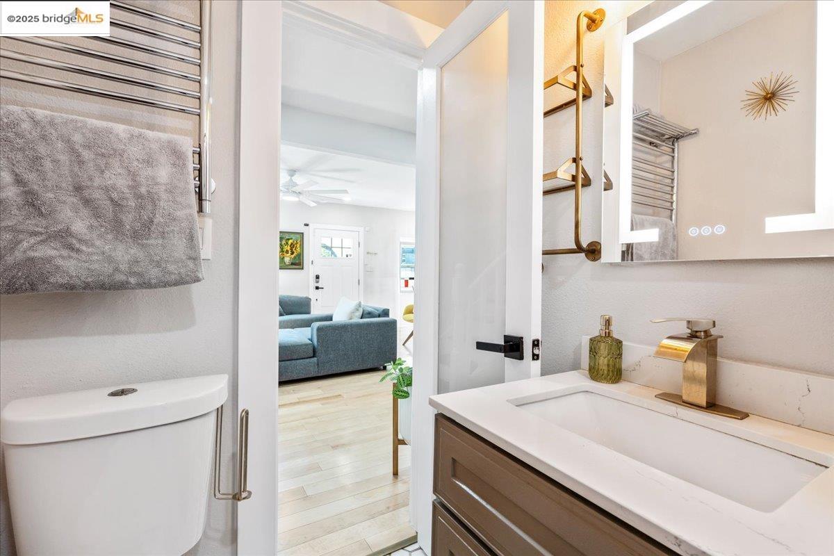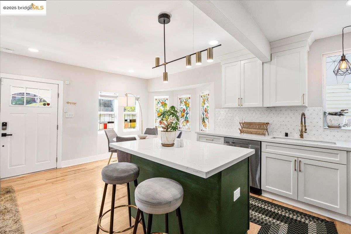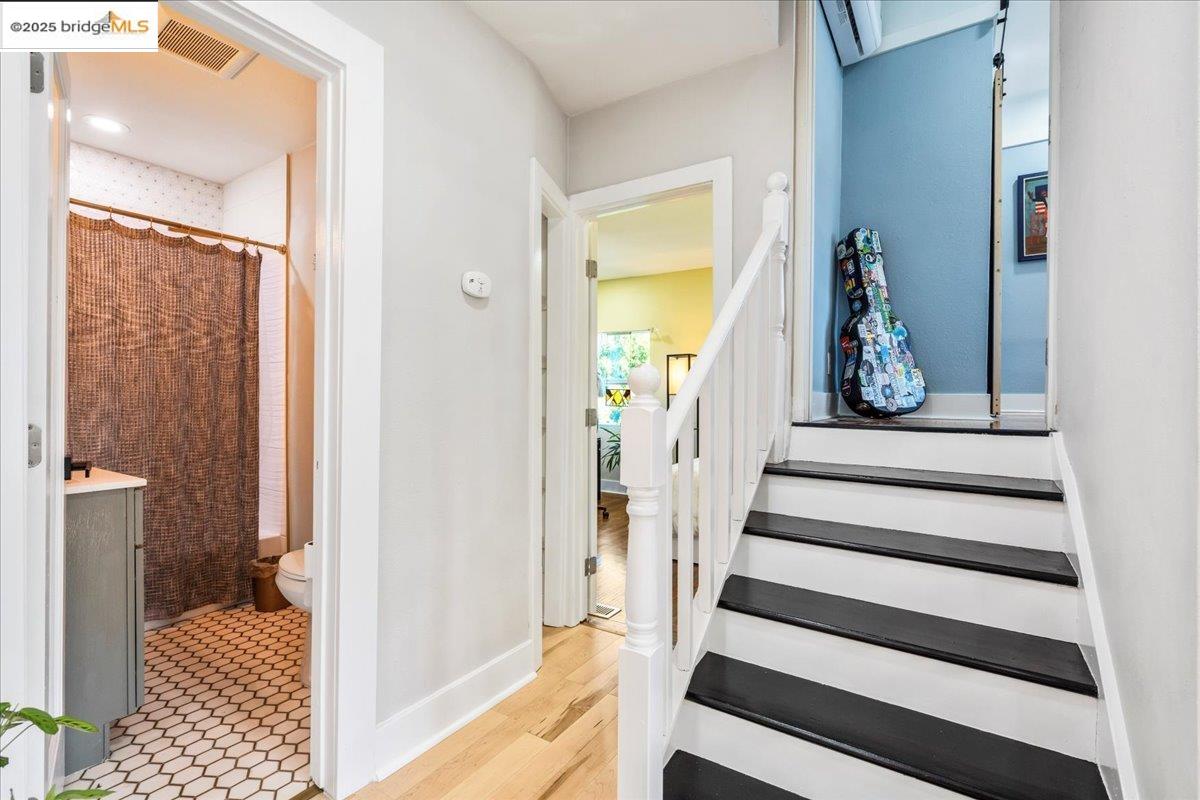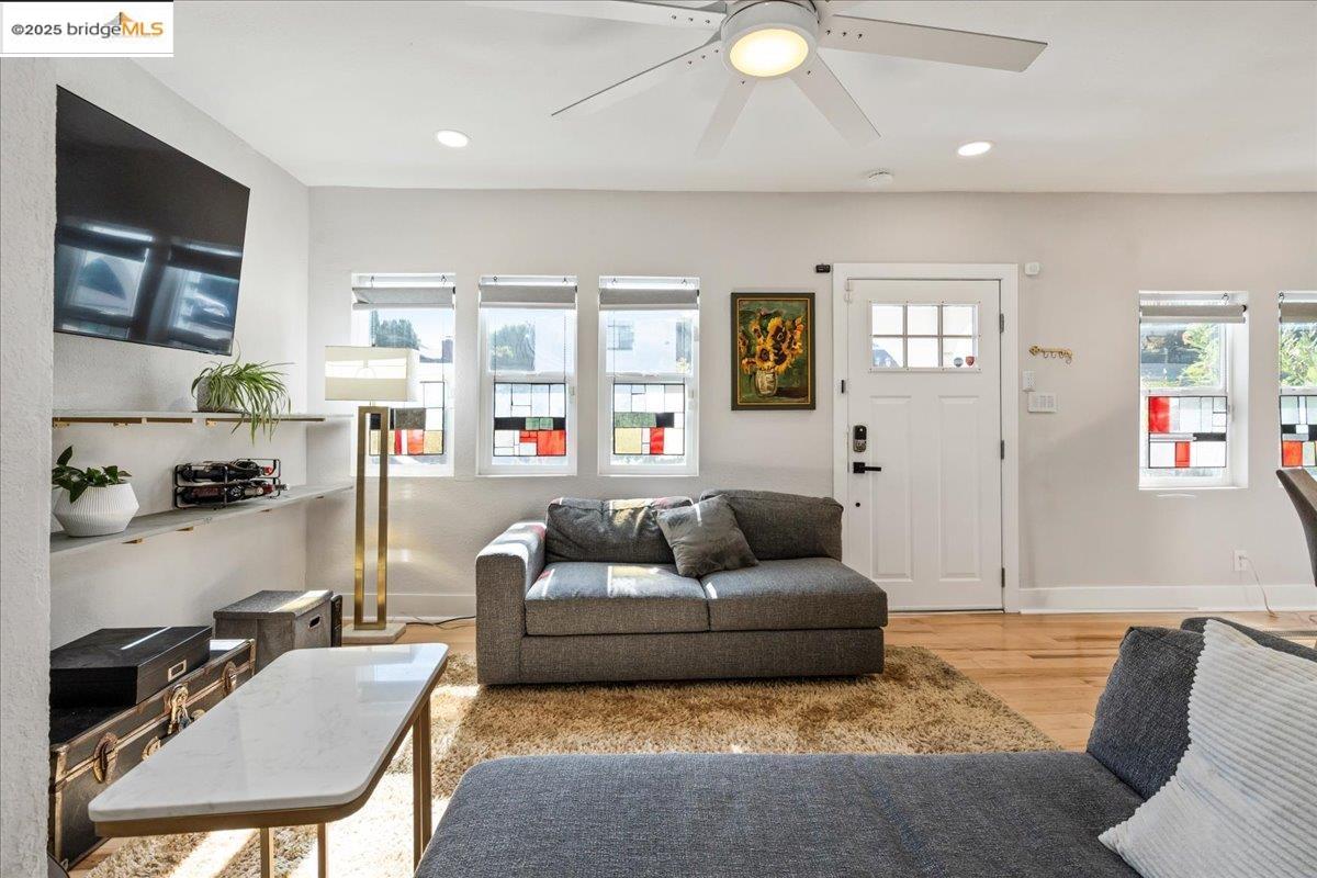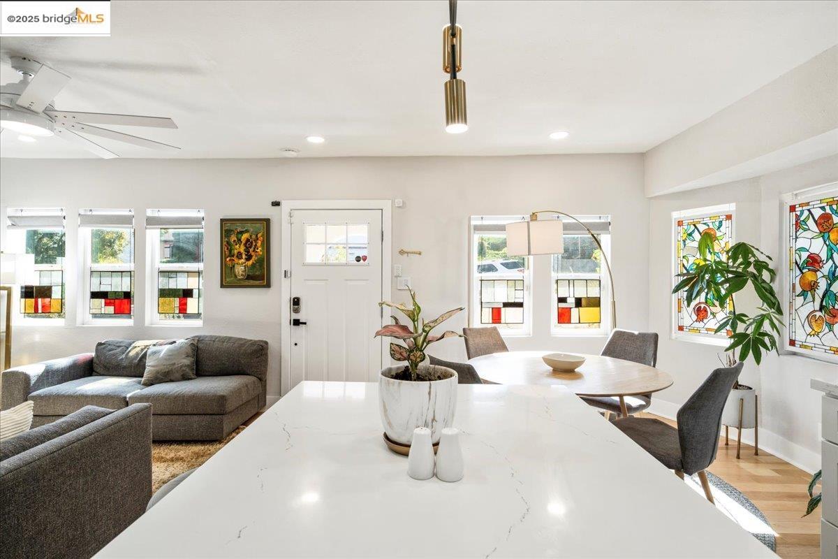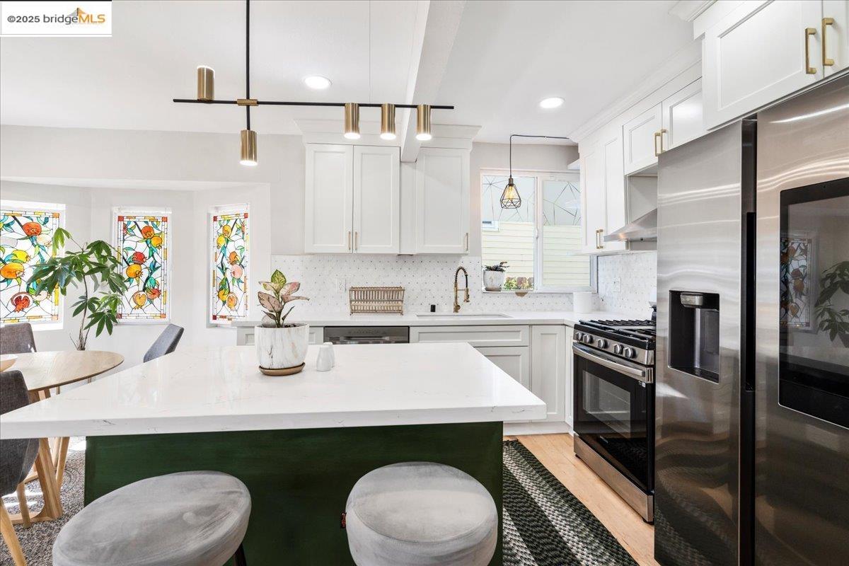Come and check out this upgraded 1925 home located in Oakland’s desirable Maxwell Park neighborhood. The open concept floor plan features white shaker cabinets, gorgeous quartz countertops, stainless steel appliances, engineered maple floors, and refinished original hardwood upstairs. Bathrooms include a defogging vanity mirror, and towel warmer for a spa-like feel. Enjoy smart home comfort with high efficiency mini splits, Ecobee+ climate control, ceiling fans, a smart fridge, washer, dryer, and Ring alarm system. Energy Efficiency & Electrical: Added 15 owned solar panels which usually offset all house energy costs (not considering EV usage), upgraded electrical panel with 220V outlet, white silicone roofing, and improved attic ventilation. Structural improvements include a redone foundation, basement waterproofing, and a polycuramine glazed garage floor. The landscaped yard offers fruit trees, passionfruit vines, a graywater irrigation system, hot tub, patio, outdoor shower, and two additional outlets. With a finished basement space, new exterior stucco siding, a new fence, and an excellent 81 Walk Score, this home combines modern living, efficiency, and an unbeatable location, a true must see.