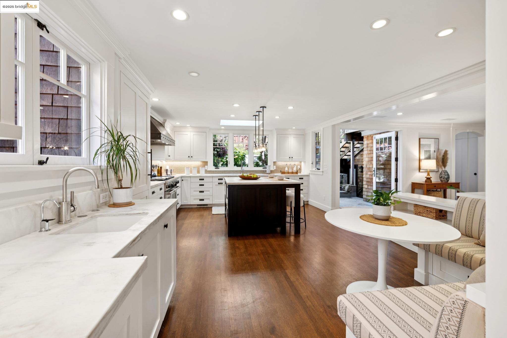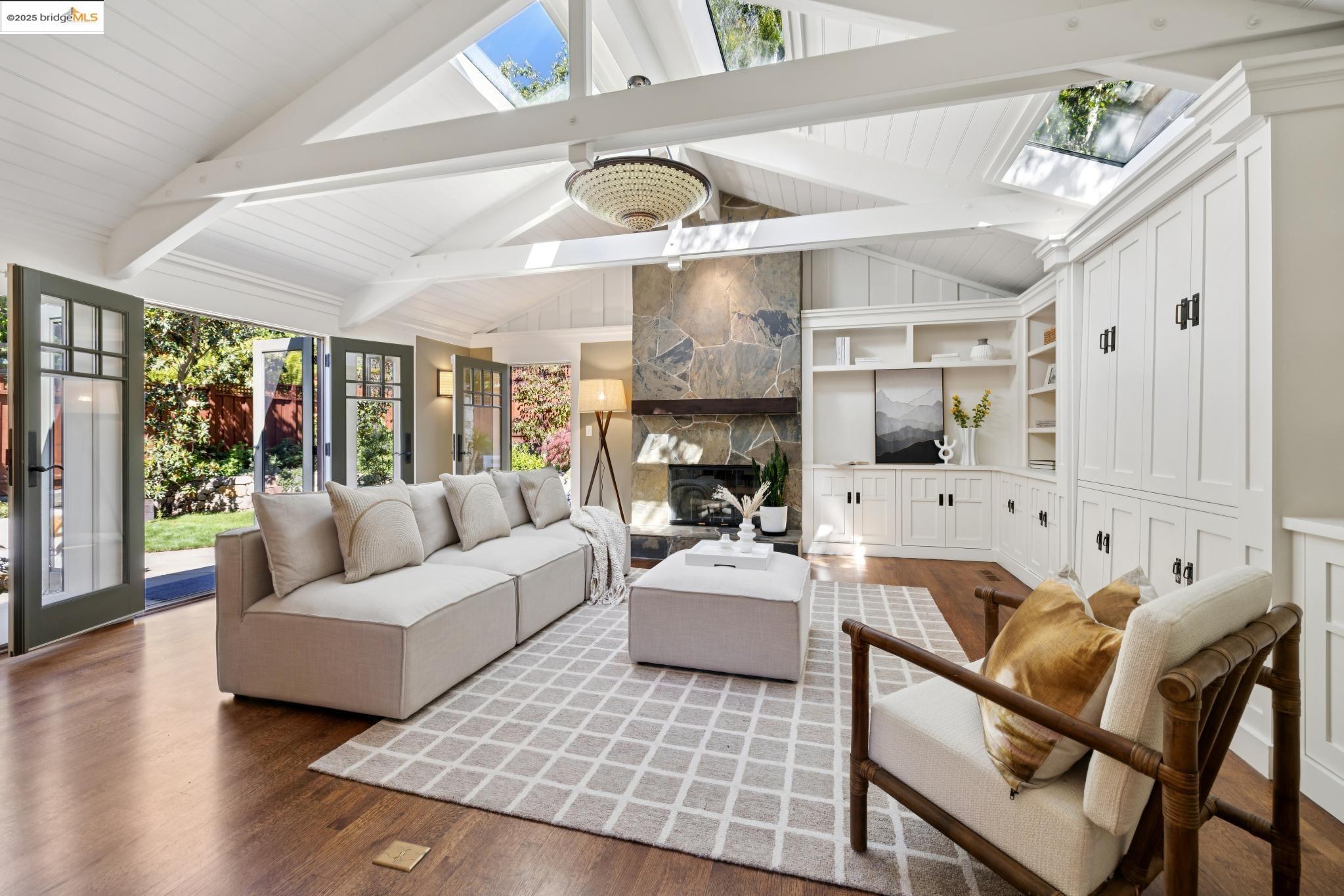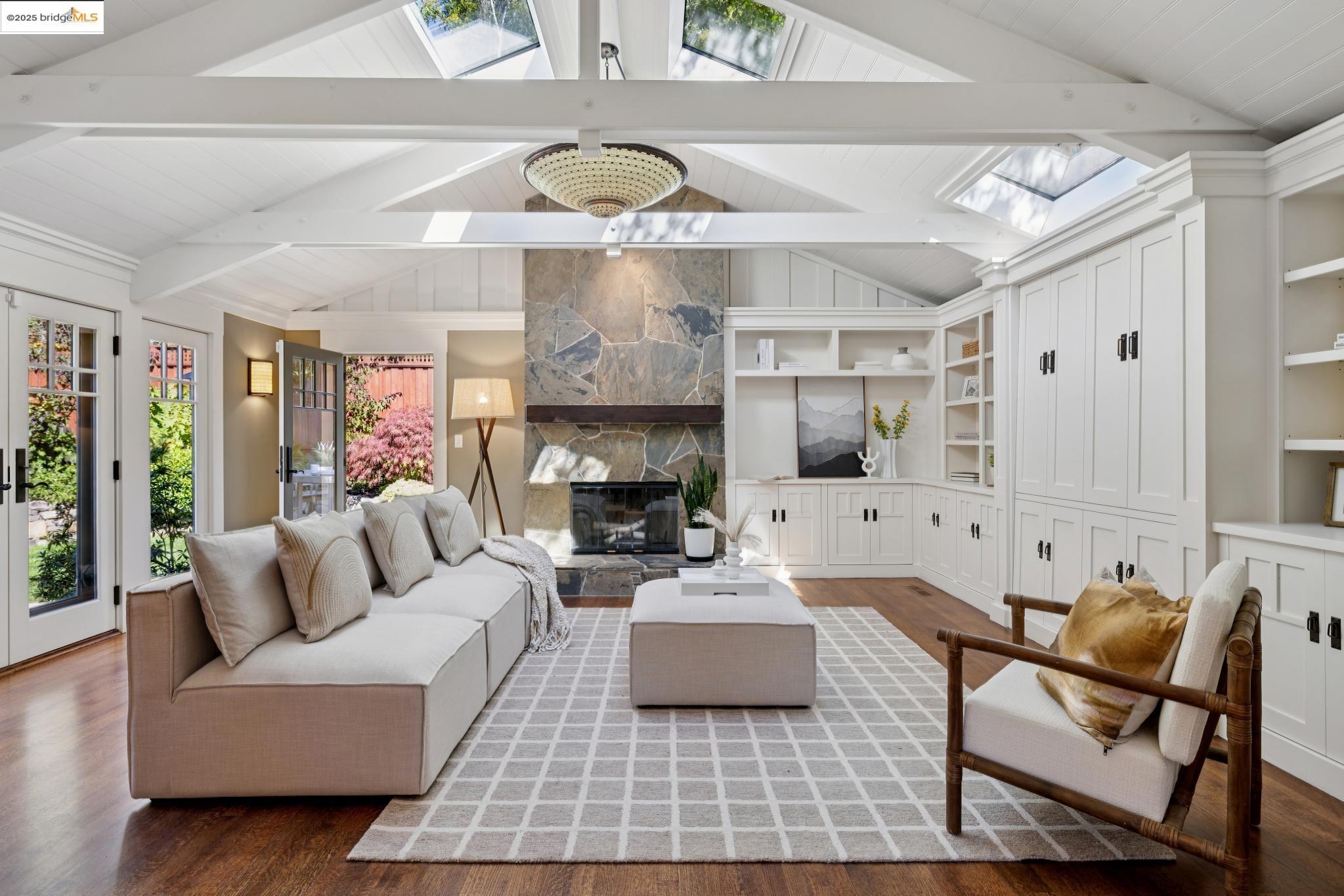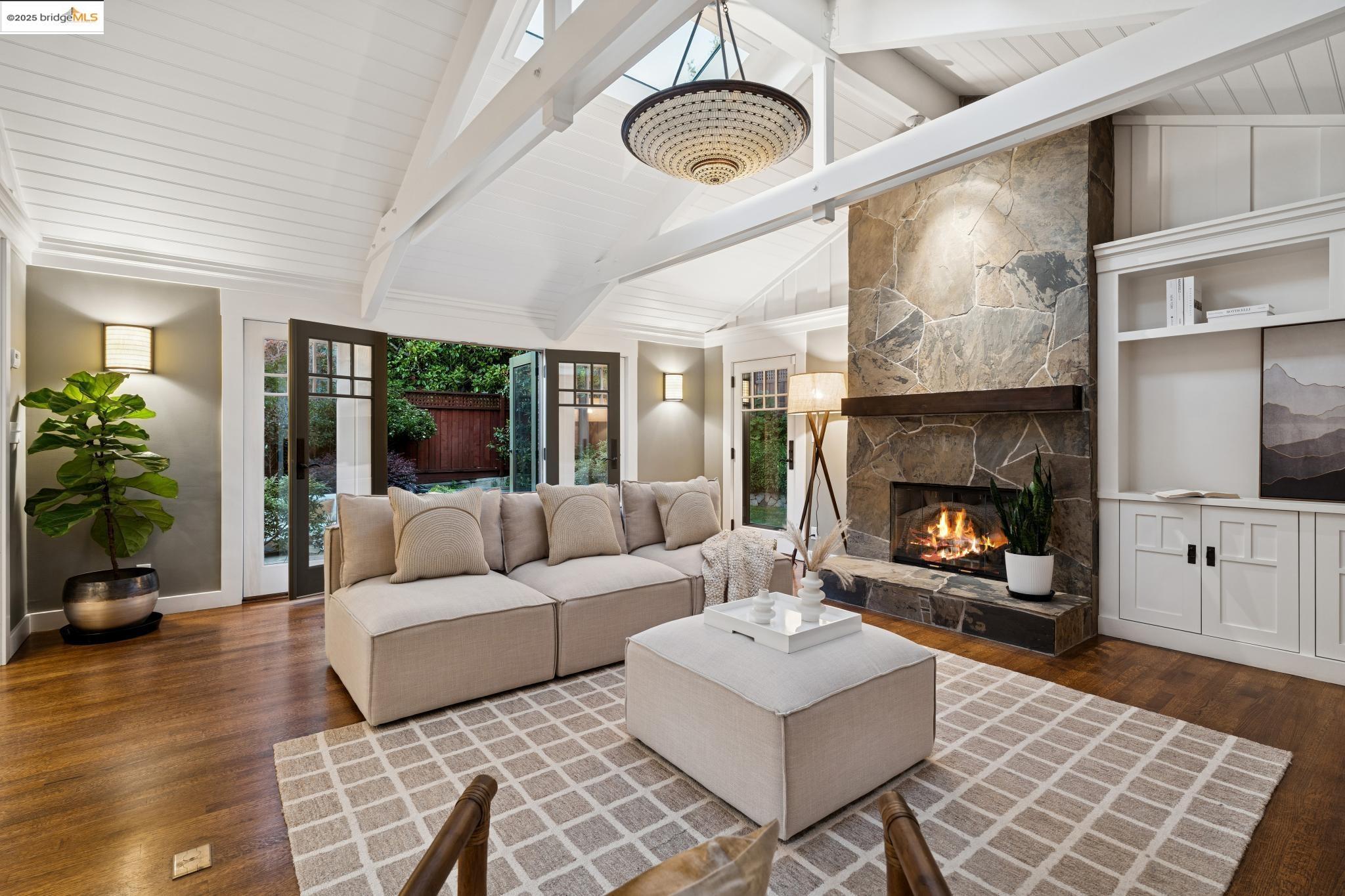 Beautifully set on a tree-lined street, just blocks from Dracena Park & the center of town, 38 Bonita Ave. presents a sophisticated take on a stately Craftsman. Meticulously updated for modern comfort & everyday living, this home seamlessly blends timeless architecture w contemporary refinement. Inside, the wood-paneled living room, w fireplace & adjoining dining room, sets a tone of warmth & tradition. The gourmet kitchen elevates the everyday, w marble counters, a spacious island & 6-burner Wolf range, opening to a spacious family room w French doors to the fantastic gardens & outdoor living area. A larger family room doubles as an office or guest suite, complete w fireplace, murphy bed, full bath & easy access to the back garden, where a built-in grill, dining area & outdoor fireplace invite year-round entertaining. Upstairs, the primary suite feels like a secluded retreat, lined w windows & a private stairway to the peaceful back garden. The chic primary bath includes a soaking tub & dual sink vanity, creating a spa-like feel. 3 additional bedrooms and a 2nd full bath complete the upper level. With its modern updates, attached 2-car garage, and private back garden, this home balances timeless craftsmanship with ease in an idyllic setting. Must see!