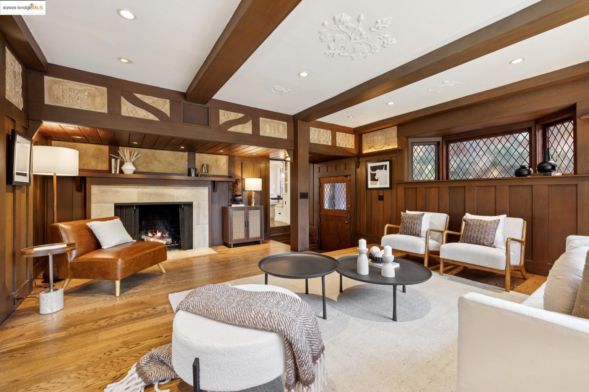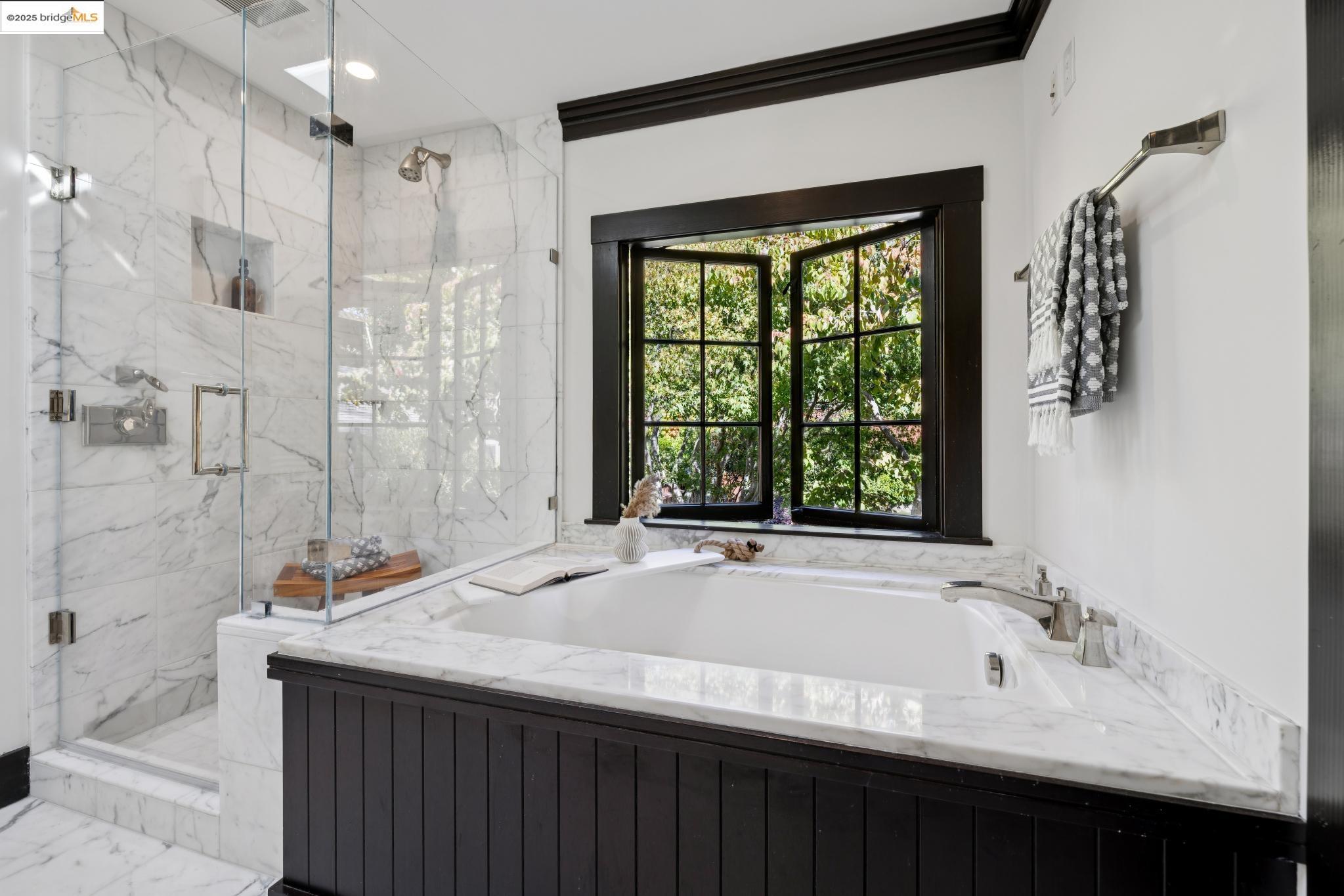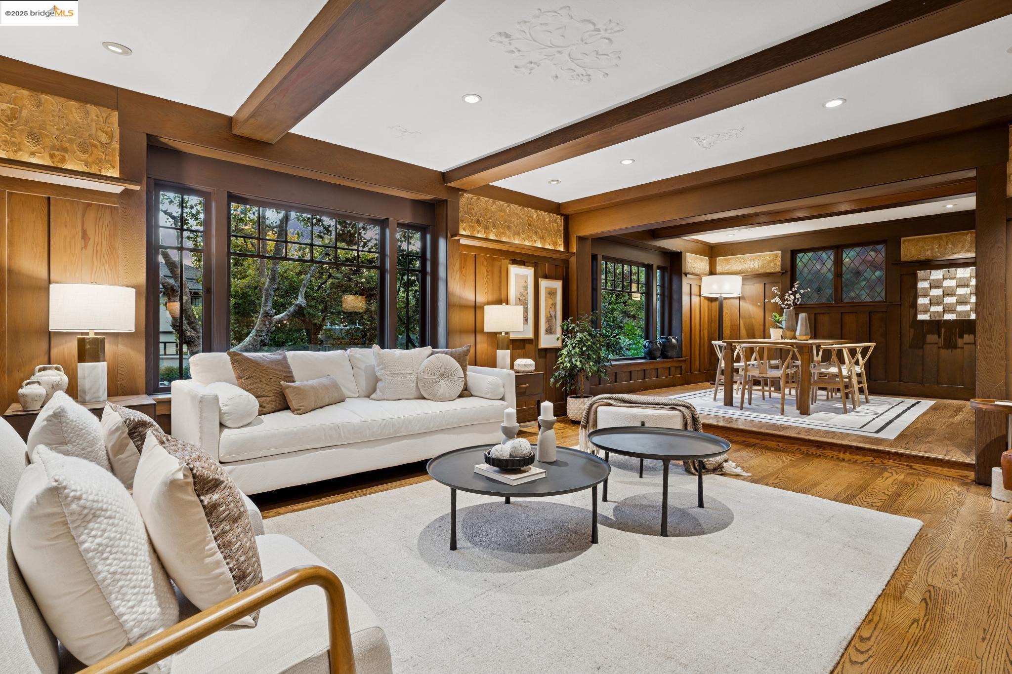 Beautifully set on a tree-lined street, just blocks from Dracena Park & the center of town, 38 Bonita Ave. presents a sophisticated take on a stately Craftsman. Meticulously updated for modern comfort & everyday living, this home seamlessly blends timeless architecture w contemporary refinement. Inside, the wood-paneled living room, w fireplace & adjoining dining room, sets a tone of warmth & tradition. The gourmet kitchen elevates the everyday, w marble counters, a spacious island & 6-burner Wolf range, opening to a spacious family room w French doors to the fantastic gardens & outdoor living area. A larger family room doubles as an office or guest suite, complete w fireplace, murphy bed, full bath & easy access to the back garden, where a built-in grill, dining area & outdoor fireplace invite year-round entertaining. Upstairs, the primary suite feels like a secluded retreat, lined w windows & a private stairway to the peaceful back garden. The chic primary bath includes a soaking tub & dual sink vanity, creating a spa-like feel. 3 additional bedrooms and a 2nd full bath complete the upper level. With its modern updates, attached 2-car garage, and private back garden, this home balances timeless craftsmanship with ease in an idyllic setting. Must see!
