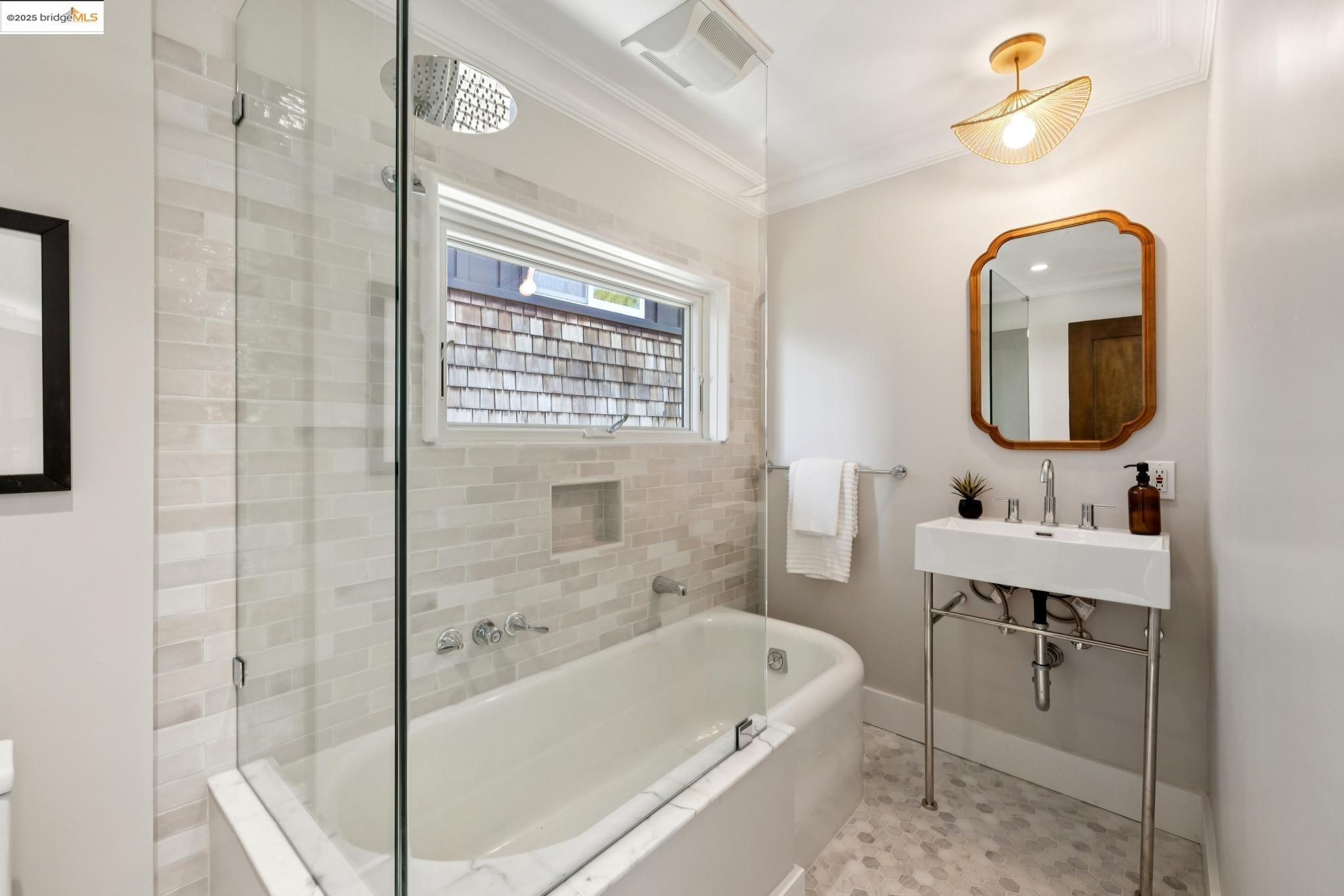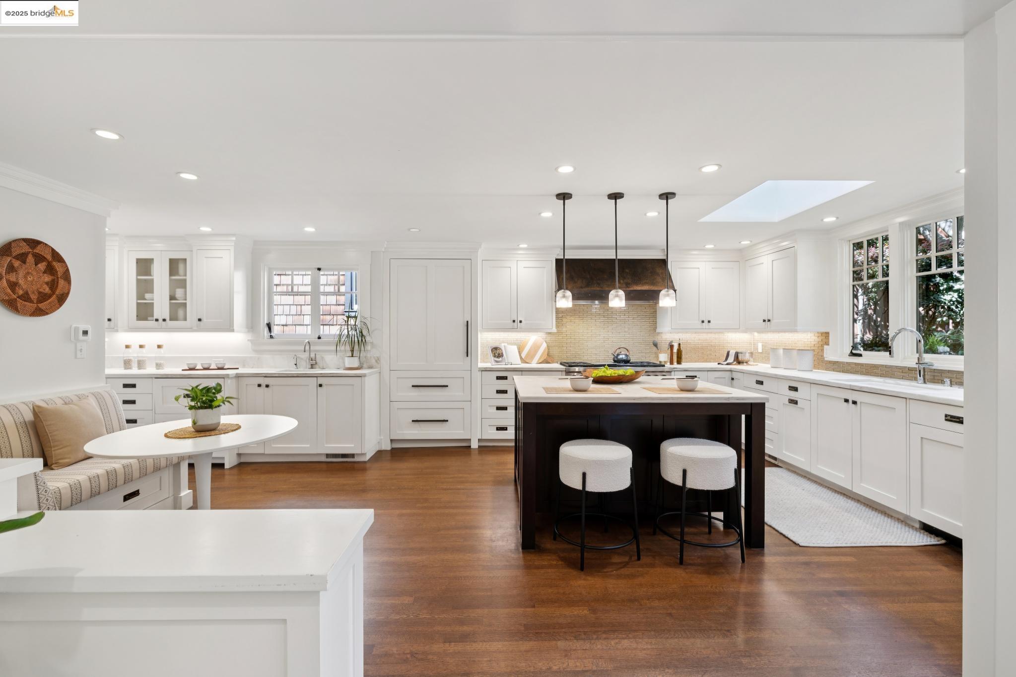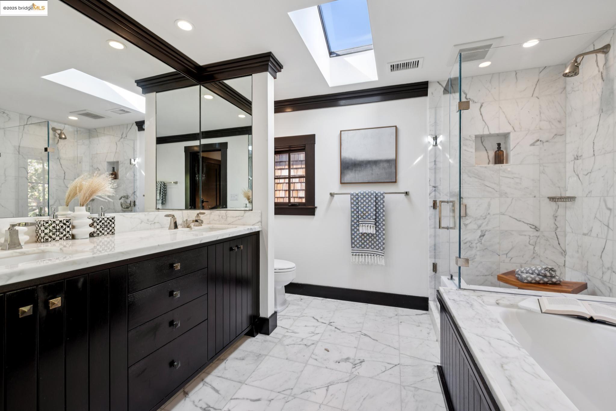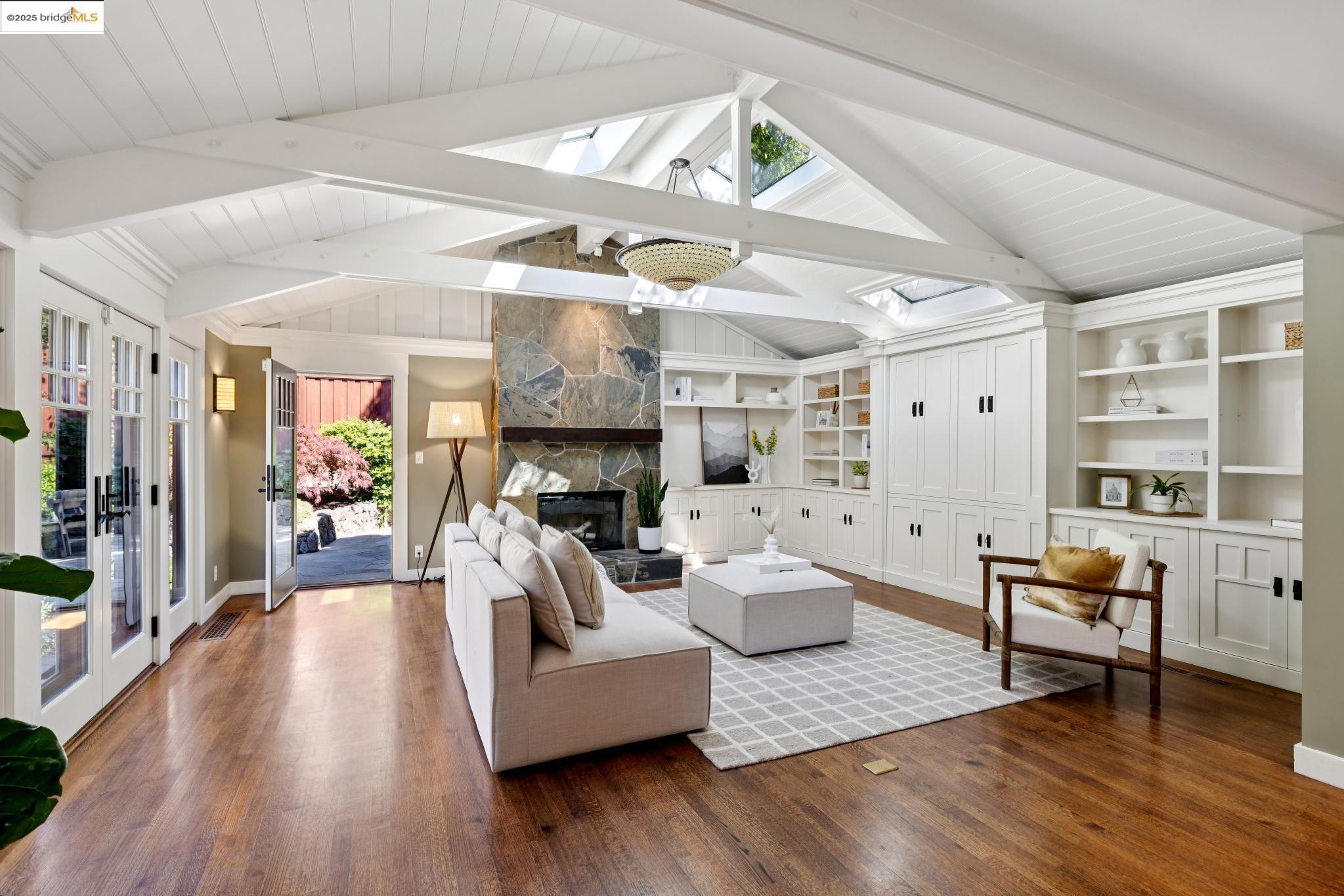 Beautifully set on a tree-lined street, just blocks from Dracena Park & the center of town, 38 Bonita Ave. presents a sophisticated take on a stately Craftsman. Meticulously updated for modern comfort & everyday living, this home seamlessly blends timeless architecture w contemporary refinement. Inside, the wood-paneled living room, w fireplace & adjoining dining room, sets a tone of warmth & tradition. The gourmet kitchen elevates the everyday, w marble counters, a spacious island & 6-burner Wolf range, opening to a spacious family room w French doors to the fantastic gardens & outdoor living area. A larger family room doubles as an office or guest suite, complete w fireplace, murphy bed, full bath & easy access to the back garden, where a built-in grill, dining area & outdoor fireplace invite year-round entertaining. Upstairs, the primary suite feels like a secluded retreat, lined w windows & a private stairway to the peaceful back garden. The chic primary bath includes a soaking tub & dual sink vanity, creating a spa-like feel. 3 additional bedrooms and a 2nd full bath complete the upper level. With its modern updates, attached 2-car garage, and private back garden, this home balances timeless craftsmanship with ease in an idyllic setting. Must see!