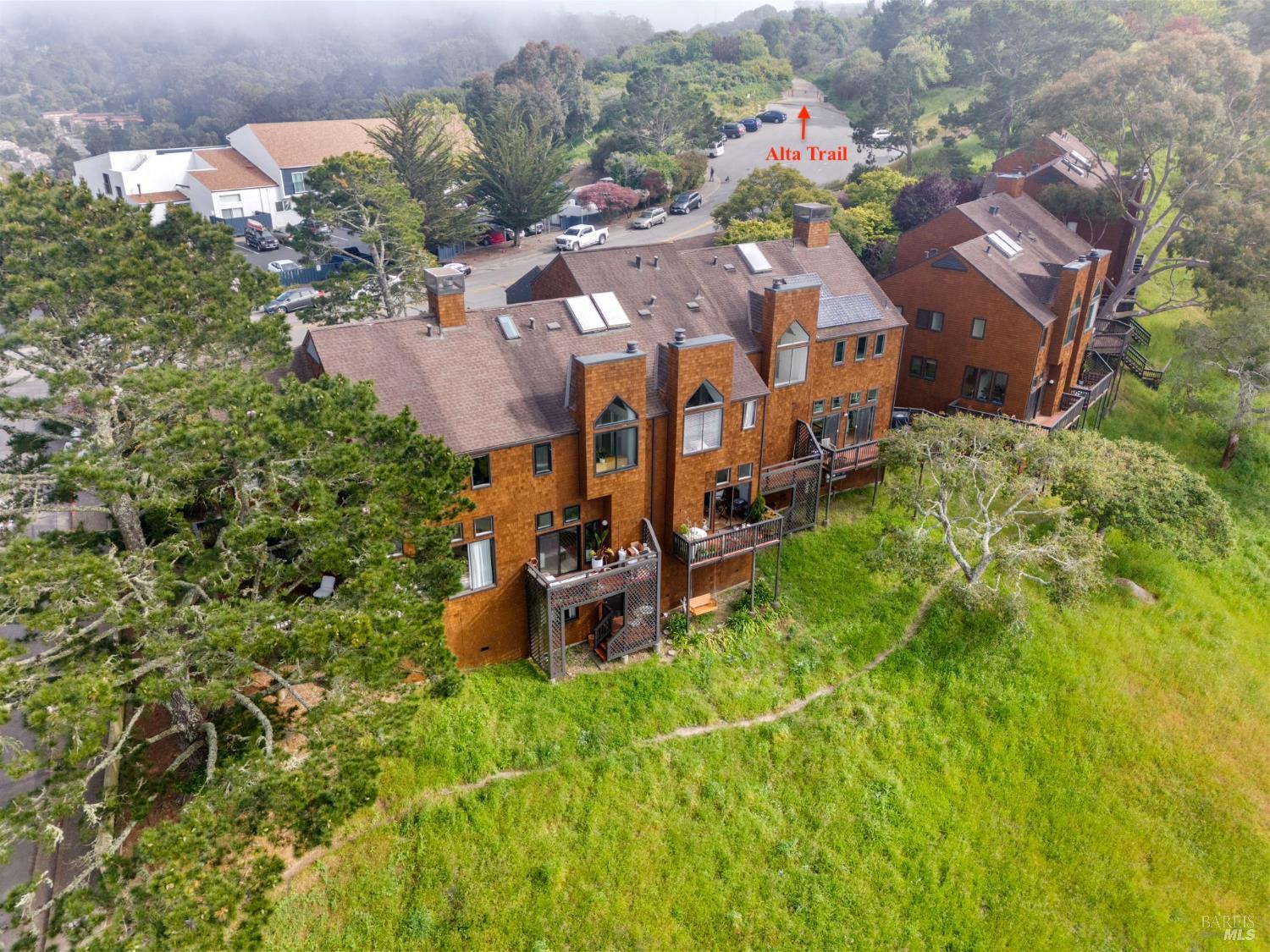 Peaceful nature retreat tucked in the Marin Headlands. This quiet, west facing townhome offers sweeping views of Mt. Tam and beyond from both the main level and primary suite. Just steps from the Alta trail and world-class hiking of Sausalito. A rare lifestyle immersed in nature yet only minutes from the city. Inside, this spacious home has high ceilings and great natural light throughout. Newly remodeled, sleek modern kitchen with outlooks to the lush garden entry. Open flowing layout is perfect for entertaining. The living room enjoys a cozy wood-burning fireplace, incredible views from the oversized windows, and a sunny private deck. New wide plank flooring installed throughout the main level. Flexible floor plan includes 3 beds plus a bonus office loft and 2.5 baths. Primary suite enjoys vaulted ceilings and bathroom with dual vanities. The lower-level bedroom features its own entrance, ideal for guests or potential rental income. Complete with upgraded windows, ample storage, side by side laundry, and 1 car covered parking. Idyllic Sausalito living with unmatched convenience to the best of Marin & San Francisco.