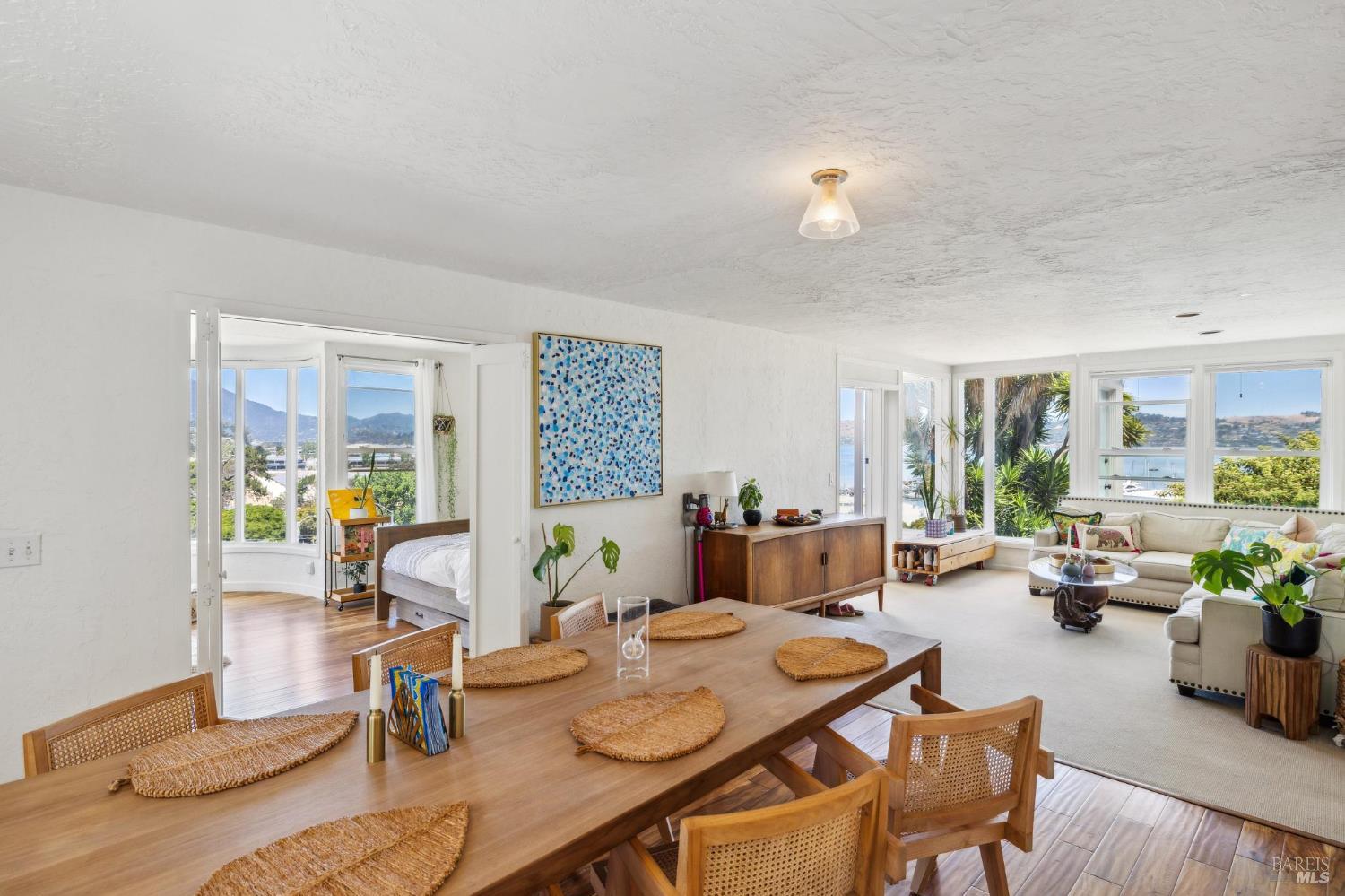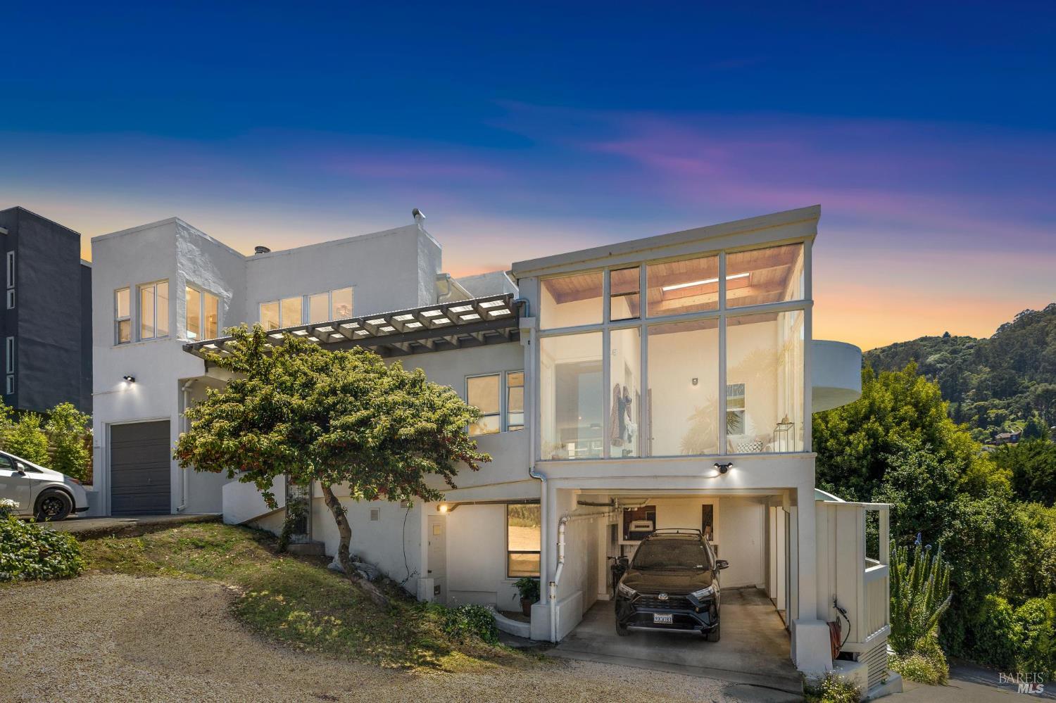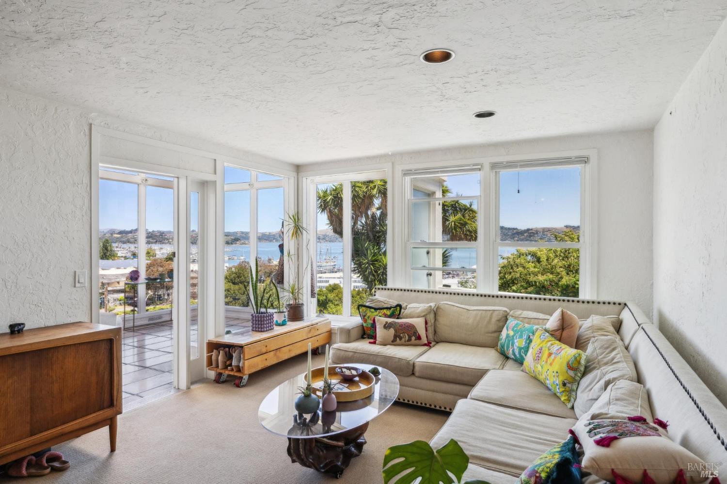 Incredible opportunity! Showings available each week with 24-hour notice. Please do not drive or walk up private driveway. Unique opportunity to own this iconic, Bohemian style Sausalito home with beautiful views to the Sausalito Harbor, Mt Tam, and the Tiburon ridgeline. The main home is 3 bedrooms with bright and stunning views from the glass enclosed atrium, living room, and round en-suite bedroom. A large dining room and kitchen flow out to a private rear deck. The home is surrounded by natural beauty and has the feeling of a hillside in Greece with pathways and flowering greenery. Two additional one bedroom apartments (permitted and on tax records), each with separate private outdoor spaces, create the perfect extended family living, retreat for guests, or excellent rental income with flexibility on best use. The upper apartment has BIG views of the water and Mt Tam, and an enclosed patio area. The lower charming garden apartment has two small private decks. All spaces have had updates. Total of 4-5 car parking and two laundry facilities. The property has been within the same family for over 25 years and stands out with its eclectic flair. This is a special property ready for its next owner. See also Single Fam Res MLS #325080248. Square footage from Floor Plan Visuals.