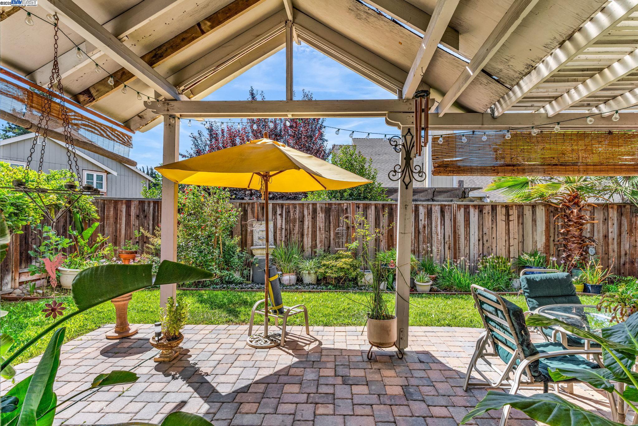 Tucked into a serene, tree-lined street, this charming 3-bedroom, 2.5-bath contemporary gem invites you to experience comfort, connection, and California lifestyle at its best. Inside, you’ll be greeted by soaring vaulted ceilings and expansive windows that flood the open-concept living area with natural light. Whether cozying up near the wood-burning fireplace or hosting friends in the open living/dining space, you’ll love how this layout lives. The spacious primary suite offers true retreat vibes—with high ceilings, a generous walk-in closet, and an ensuite bath with dual vanities. Additional bedrooms are perfect for family, guests, or remote work. Step outside to your private backyard oasis: a covered patio, garden beds bursting with blooms, a fenced dog run, and lush landscaping that attracts hummingbirds, butterflies, and peace of mind. Can you feel the Zen? Modern touches like luxury vinyl plank flooring, smart home features, and ceiling fans make this home move-in ready, while the central location close to shopping, highways, and top-rated schools makes life easy. And with NO HOA, you can truly make this home your own.