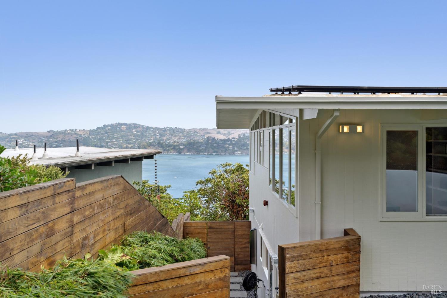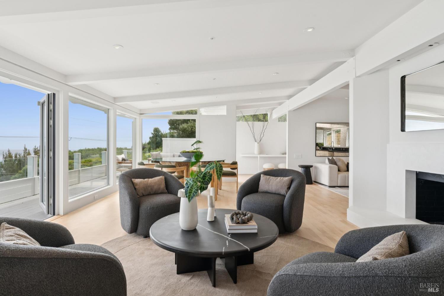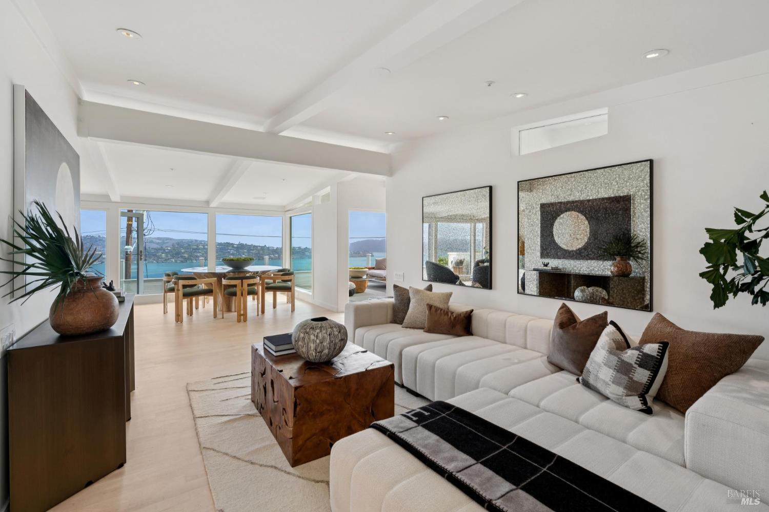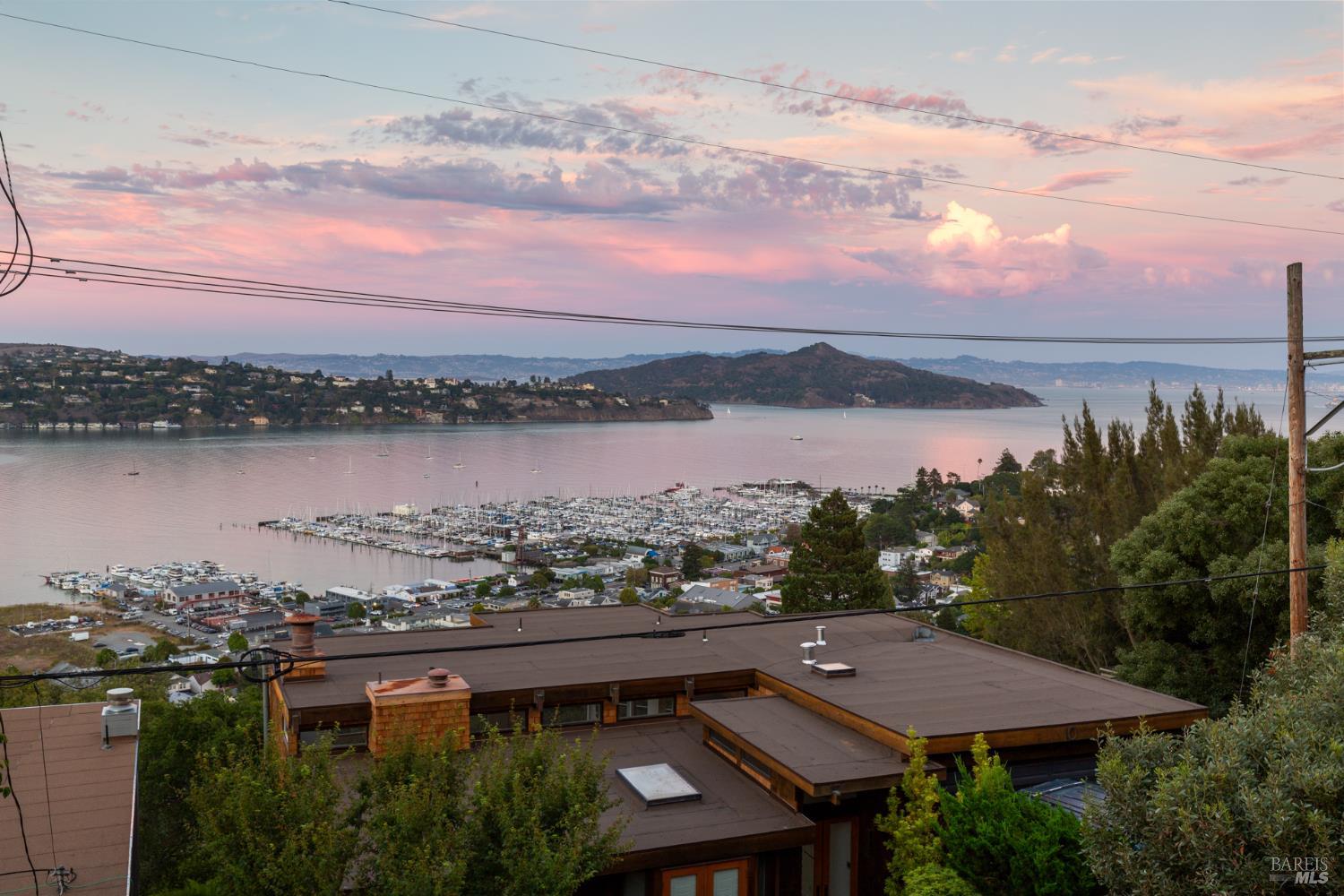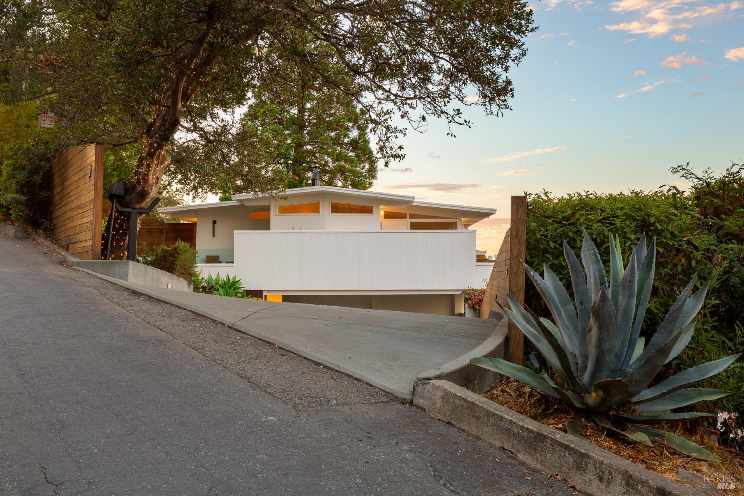 Nestled in one of Sausalito's most sought-after neighborhoods, this iconic 4-bedroom, 2.5-bath mid-century modern retreat showcases sweeping bay views, single-level living on the main level, and seamless indoor-outdoor connections. From the effortless stairless approach at the driveway, you enter into a striking entry foyer that unfolds into an airy open floor plan featuring a timeless kitchen and family room that opens to a patio and lush yard ideal for play and gatherings. The elegant dining and living rooms appear to float over the bay, complemented by a central powder room, guest bedroom (currently used as an office), and luxurious primary suite. The lower level offers two expansive bedrooms with a shared bath, a generous family room, and an oversized 2-car garage. Nearly every space blends indoor comfort with outdoor living, while enjoying privacy and all-day sun. The expansive driveway enhances autonomy with ample parking, framed by mature landscaping. With its southeast orientation, inspiring views, and close proximity to Caledonia Street, Sausalito's thriving downtown, and easy access to 101, this versatile, stylish mid-century modern gem truly checks every box.