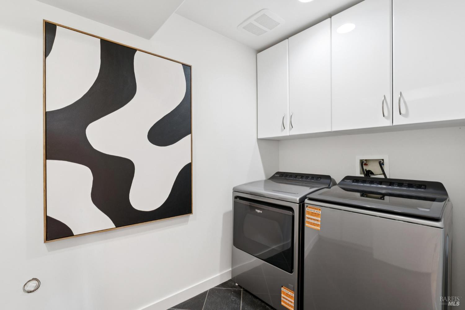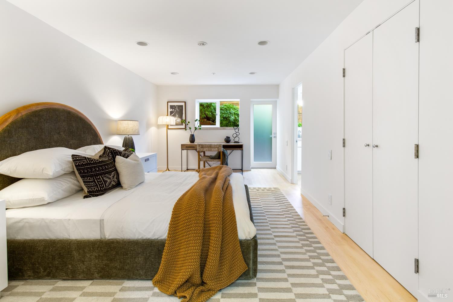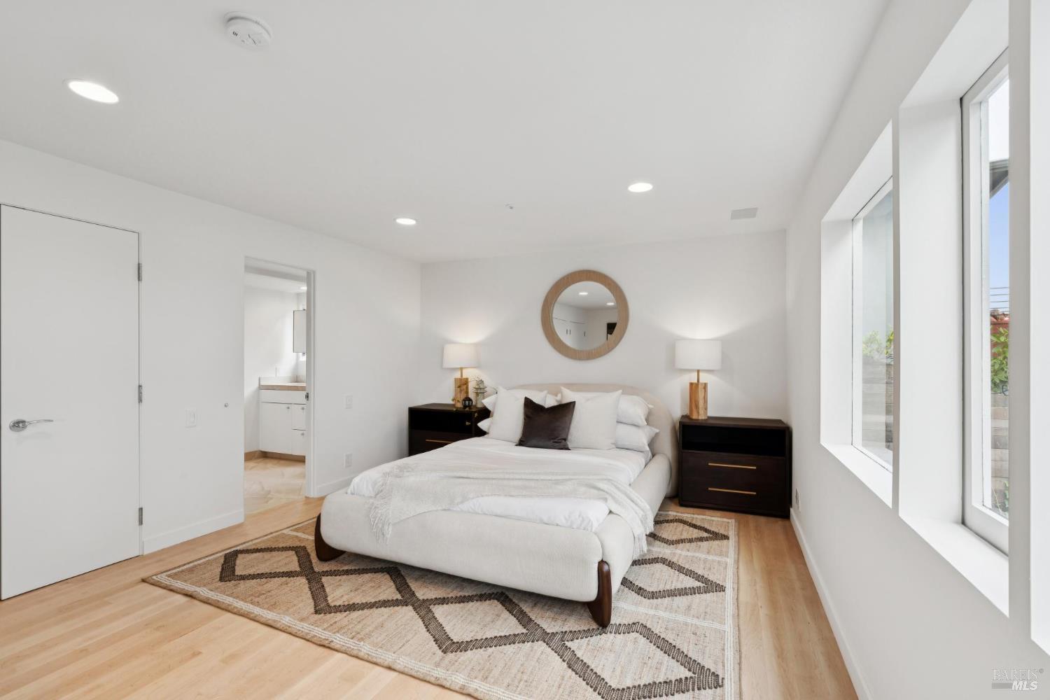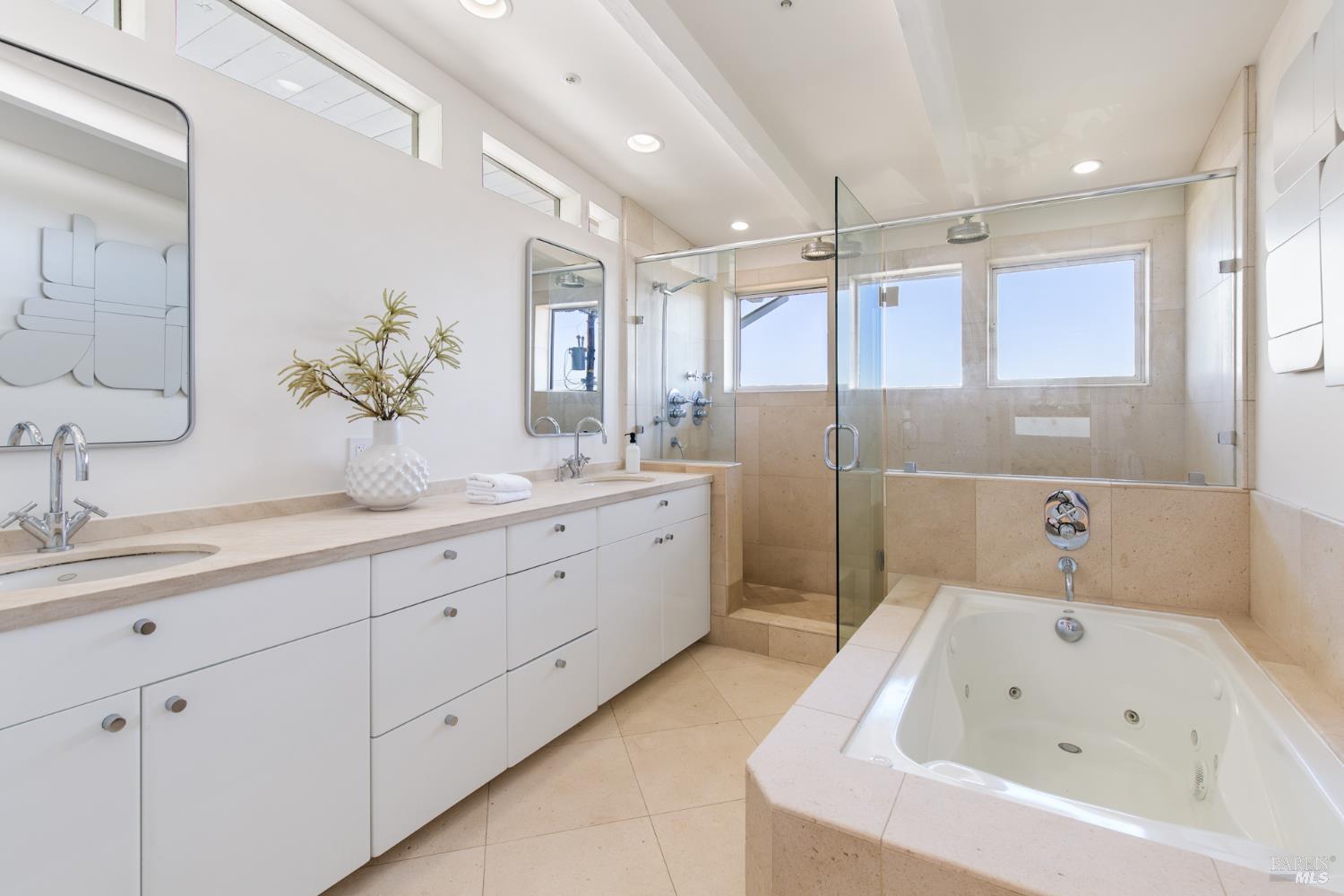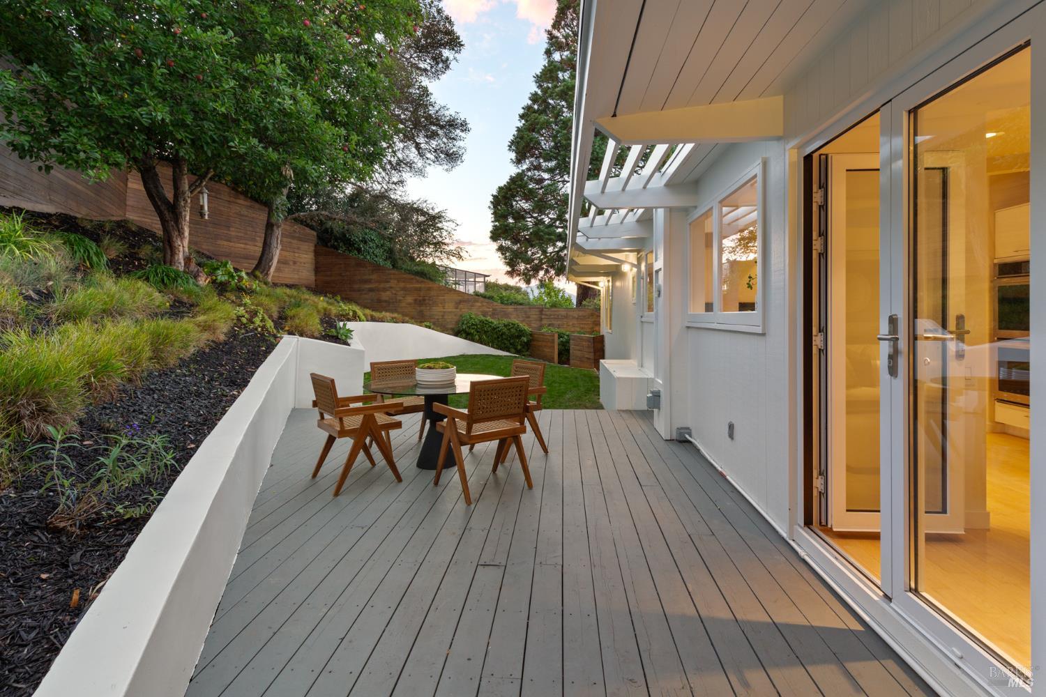 Nestled in one of Sausalito's most sought-after neighborhoods, this iconic 4-bedroom, 2.5-bath mid-century modern retreat showcases sweeping bay views, single-level living on the main level, and seamless indoor-outdoor connections. From the effortless stairless approach at the driveway, you enter into a striking entry foyer that unfolds into an airy open floor plan featuring a timeless kitchen and family room that opens to a patio and lush yard ideal for play and gatherings. The elegant dining and living rooms appear to float over the bay, complemented by a central powder room, guest bedroom (currently used as an office), and luxurious primary suite. The lower level offers two expansive bedrooms with a shared bath, a generous family room, and an oversized 2-car garage. Nearly every space blends indoor comfort with outdoor living, while enjoying privacy and all-day sun. The expansive driveway enhances autonomy with ample parking, framed by mature landscaping. With its southeast orientation, inspiring views, and close proximity to Caledonia Street, Sausalito's thriving downtown, and easy access to 101, this versatile, stylish mid-century modern gem truly checks every box.