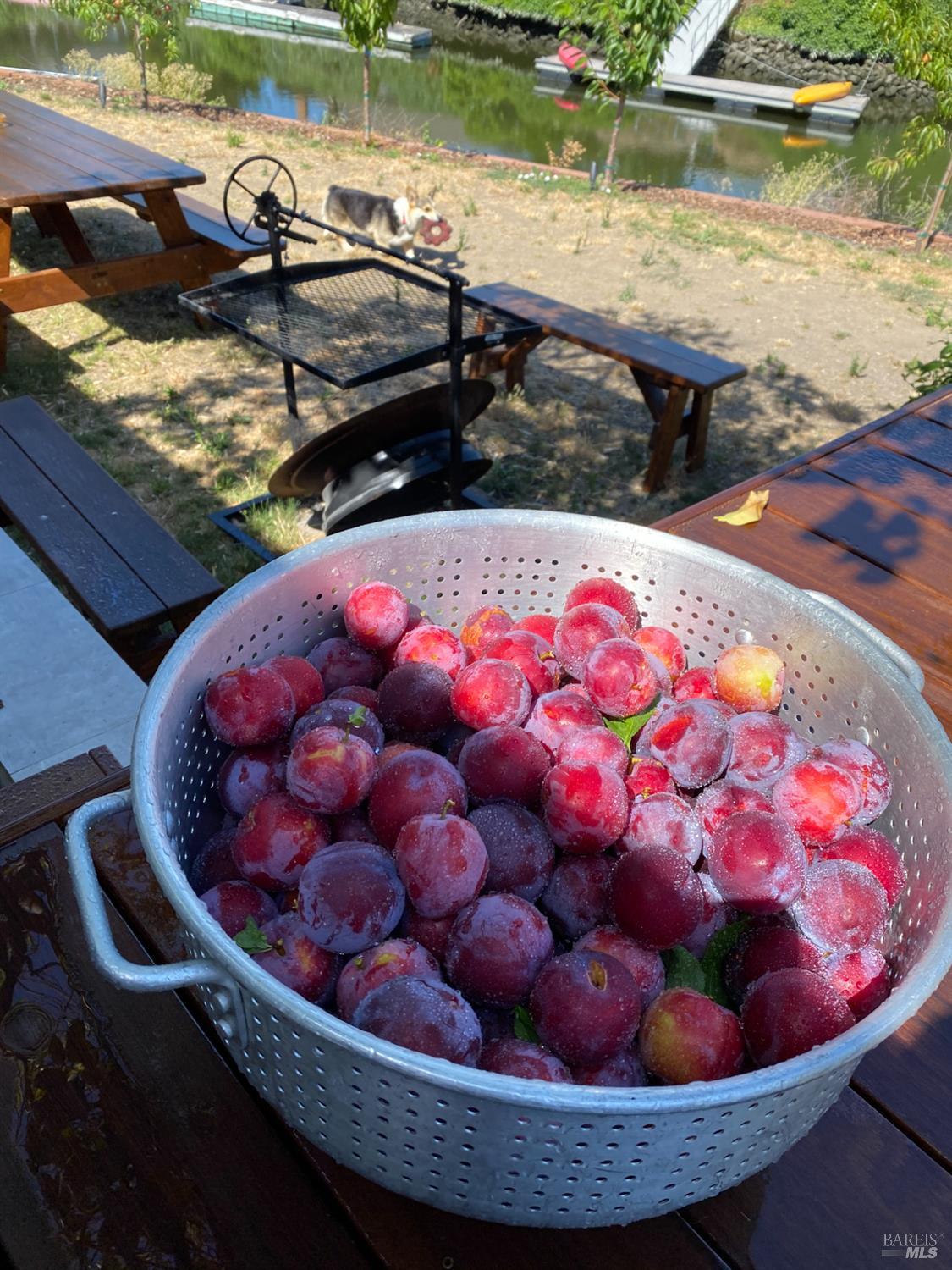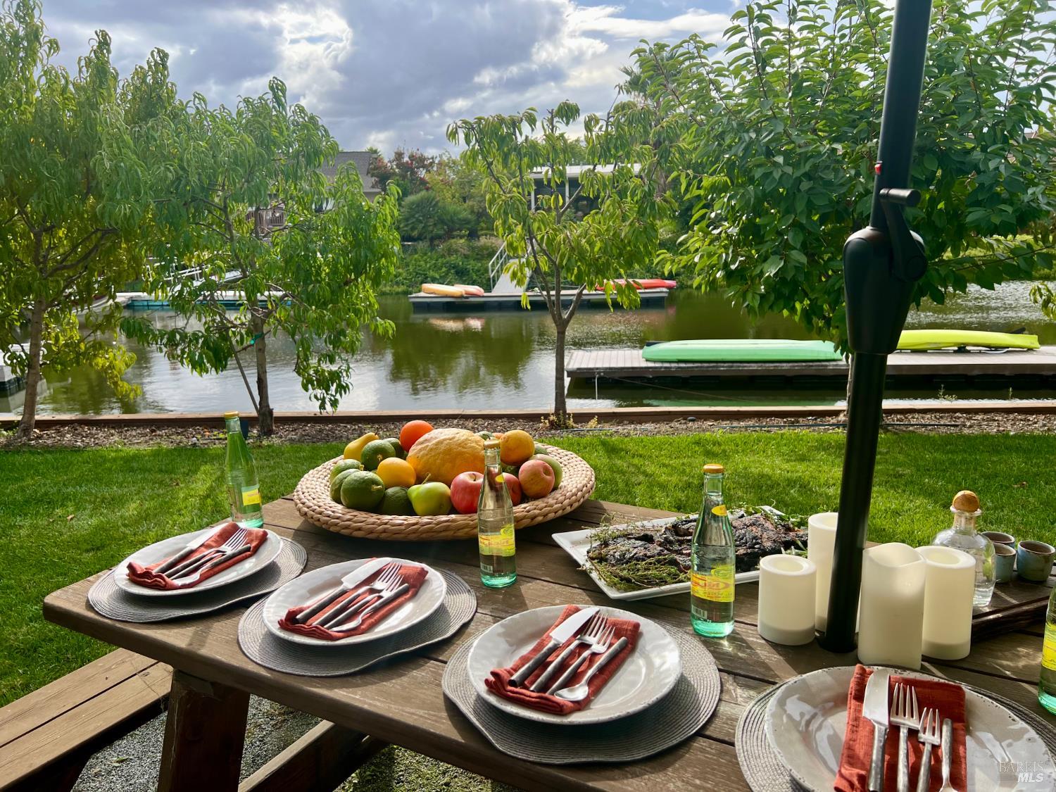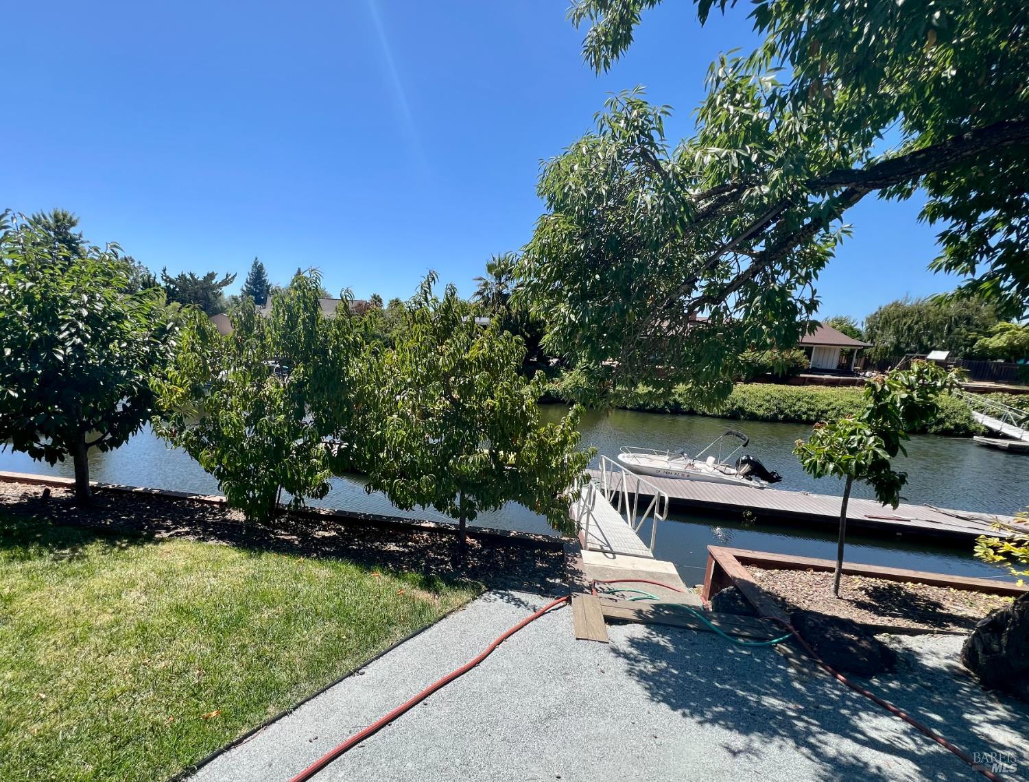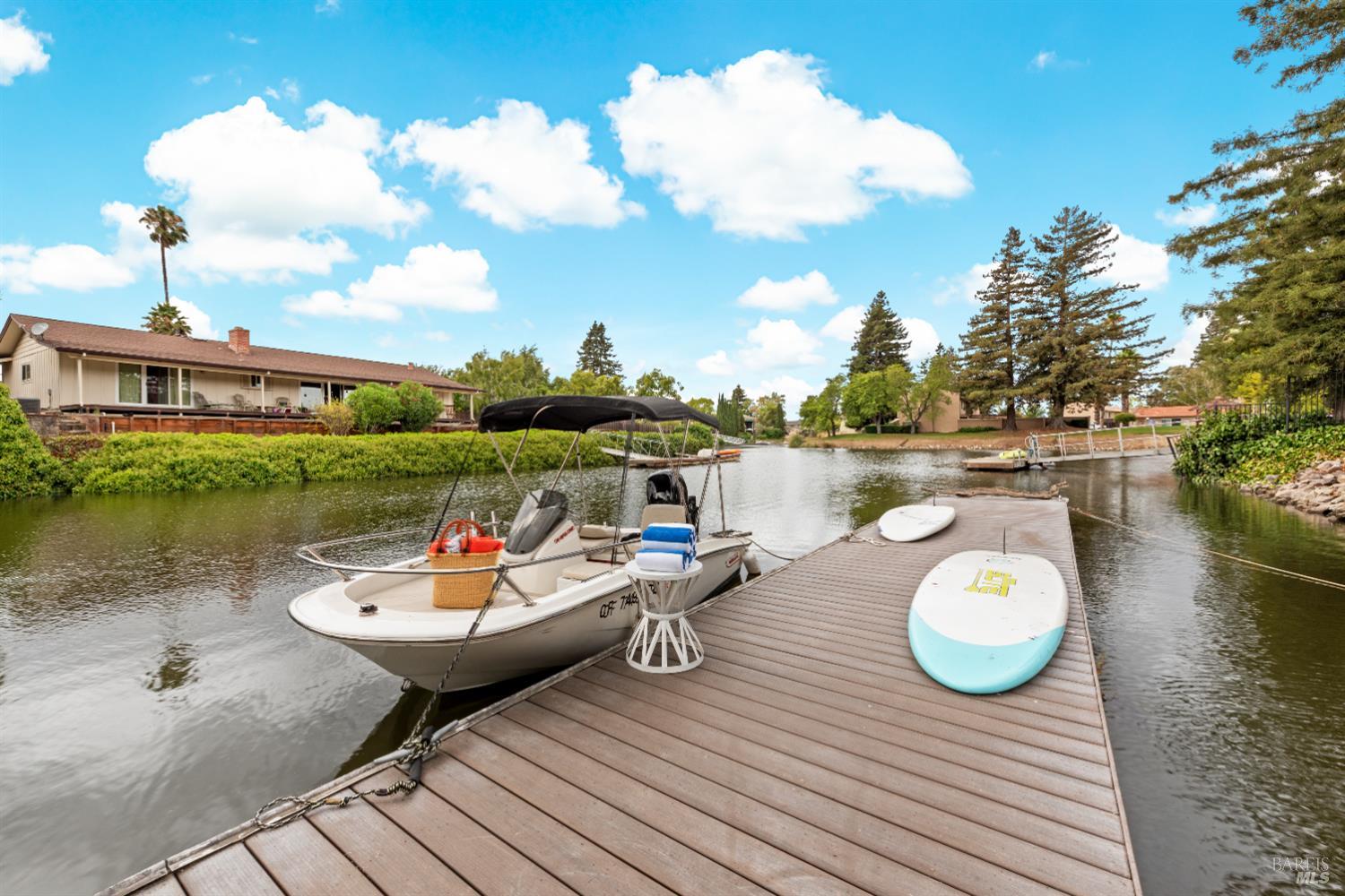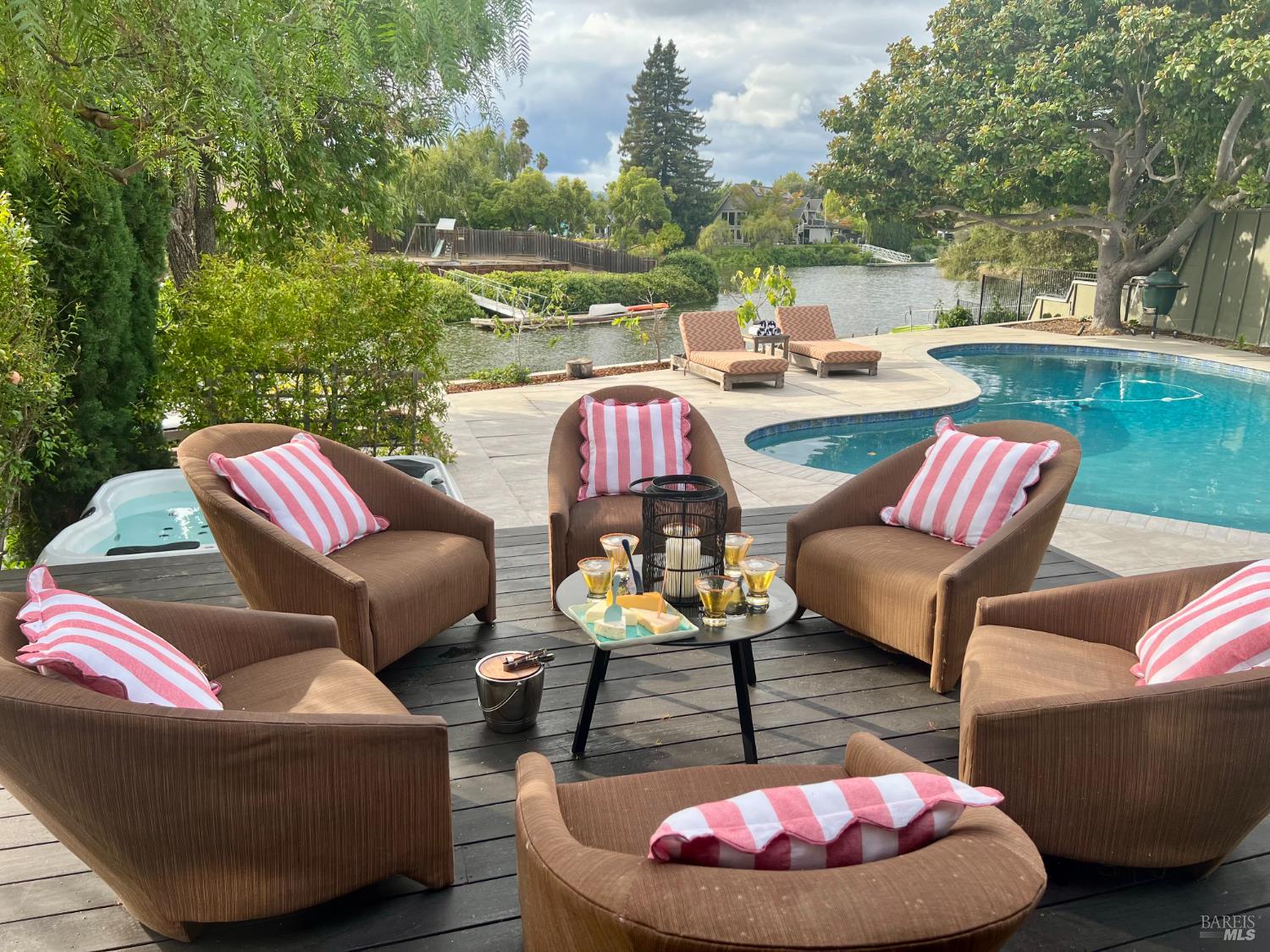 Abundance and Style define this custom single-level residence on .37 acre of Waterfront. Consummate Napa Valley living is easy as vast entertaining spaces flow seamlessly indoors and out. Life centers on a Great Room with wood-burning fireplace and views across a placid Pool onto Western light reflected on the River. All of this is set amidst a professional landscape designed for outdoor cooking, dining and farm-to-table culinary pleasure. The 70' dock on 264' of riverfront tempts you to relax on the friendly water in anticipation of a memorable evening, or play Bocce as the sun sets. Just as a Stainless and Gas open Kitchen with Carrara Marble surfaces will inspire any Chef, the Office/Media and Sleeping Rooms are a retreat apart from social and lounging spaces. Luxe Baths, Closets, and Storage assure serenity and respite from an active lifestyle. Rebuilt in 2016, conceived for sanctuary and wellness, every corner of this beautifully realized home offers comfort. From the Entry Courtyard to the huge Pergola laden with Winegrapes, across expansive IPE Decking to the Spa, and plantings on all four sides yielding Fruits, Vegetables and Herbs, this lush abode truly will feed your passion for living well. Solar, EV Charger, Light, Sound and Security systems simply enhance the luxury.