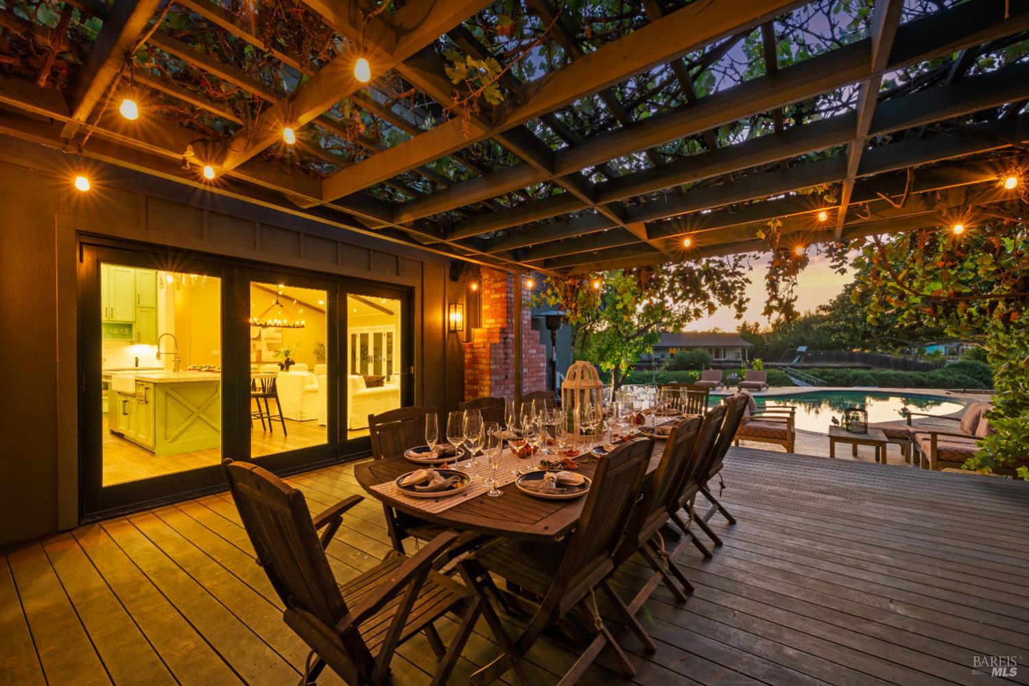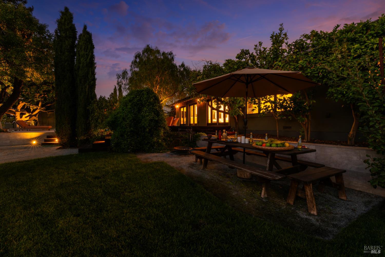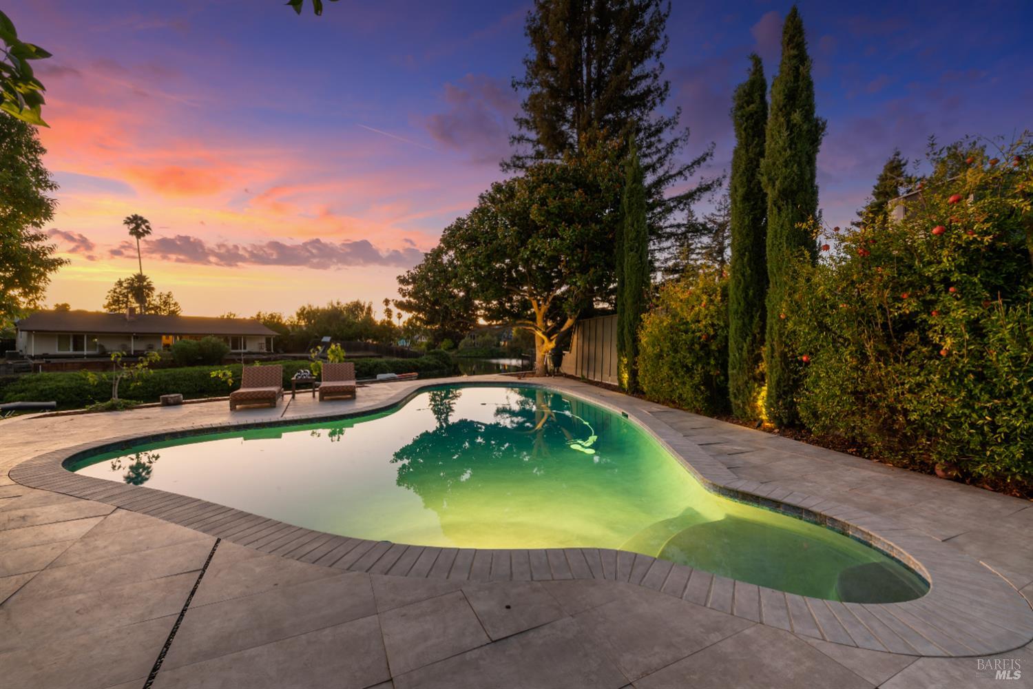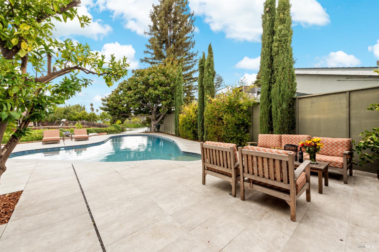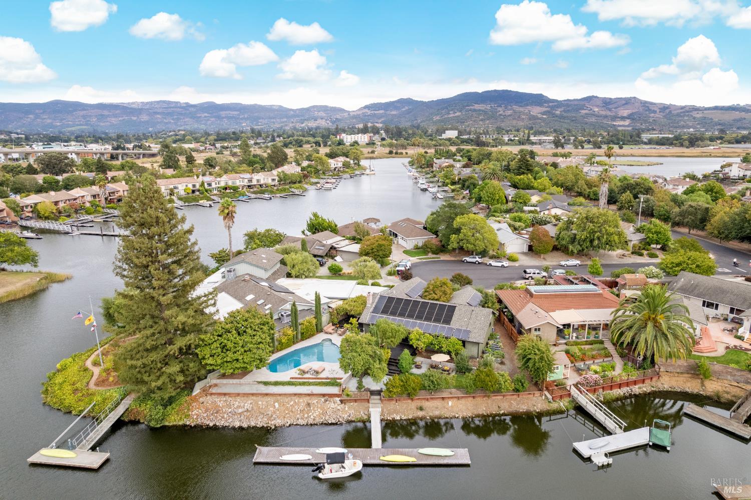 Abundance and Style define this custom single-level residence on .37 acre of Waterfront. Consummate Napa Valley living is easy as vast entertaining spaces flow seamlessly indoors and out. Life centers on a Great Room with wood-burning fireplace and views across a placid Pool onto Western light reflected on the River. All of this is set amidst a professional landscape designed for outdoor cooking, dining and farm-to-table culinary pleasure. The 70' dock on 264' of riverfront tempts you to relax on the friendly water in anticipation of a memorable evening, or play Bocce as the sun sets. Just as a Stainless and Gas open Kitchen with Carrara Marble surfaces will inspire any Chef, the Office/Media and Sleeping Rooms are a retreat apart from social and lounging spaces. Luxe Baths, Closets, and Storage assure serenity and respite from an active lifestyle. Rebuilt in 2016, conceived for sanctuary and wellness, every corner of this beautifully realized home offers comfort. From the Entry Courtyard to the huge Pergola laden with Winegrapes, across expansive IPE Decking to the Spa, and plantings on all four sides yielding Fruits, Vegetables and Herbs, this lush abode truly will feed your passion for living well. Solar, EV Charger, Light, Sound and Security systems simply enhance the luxury.