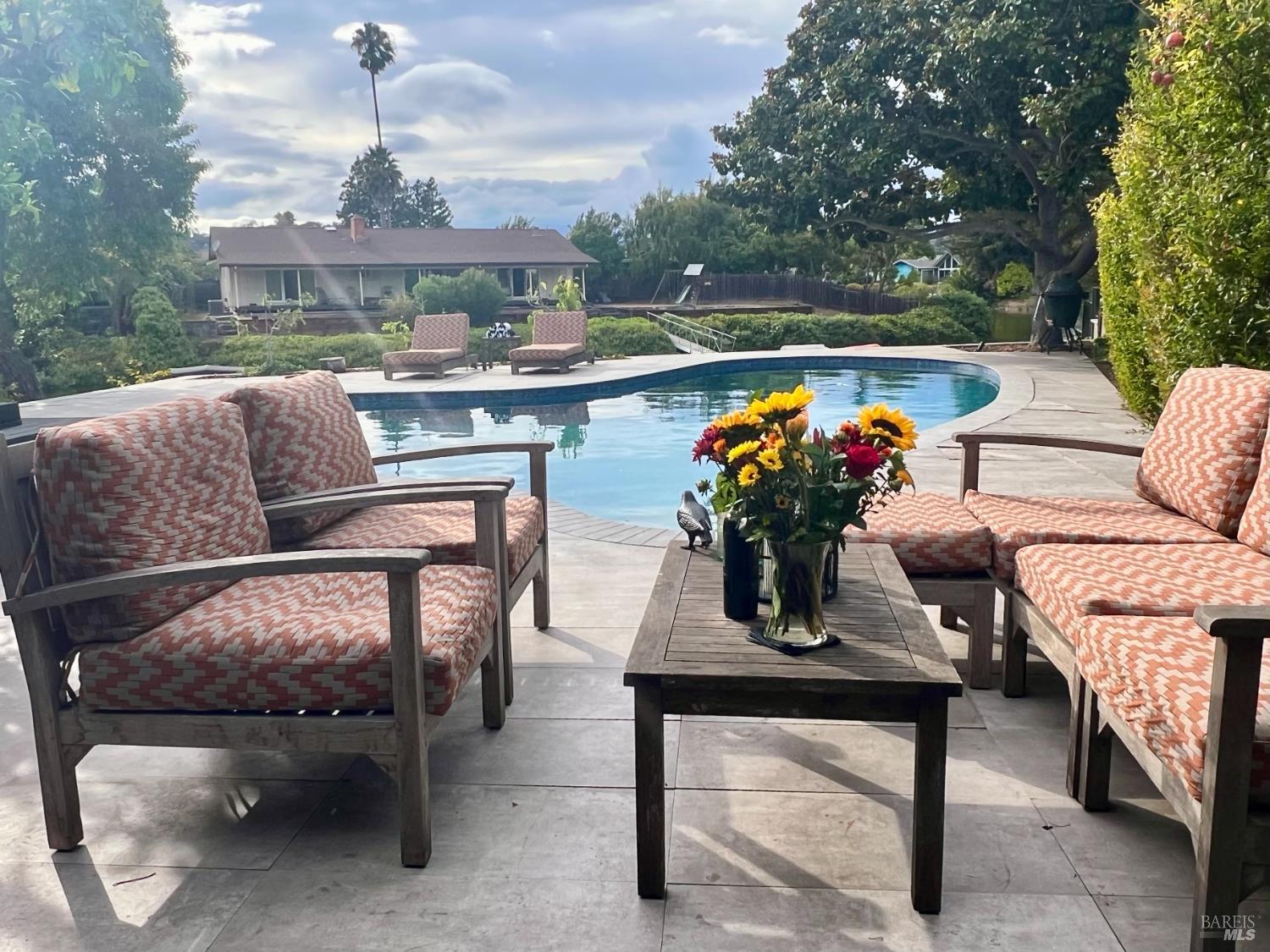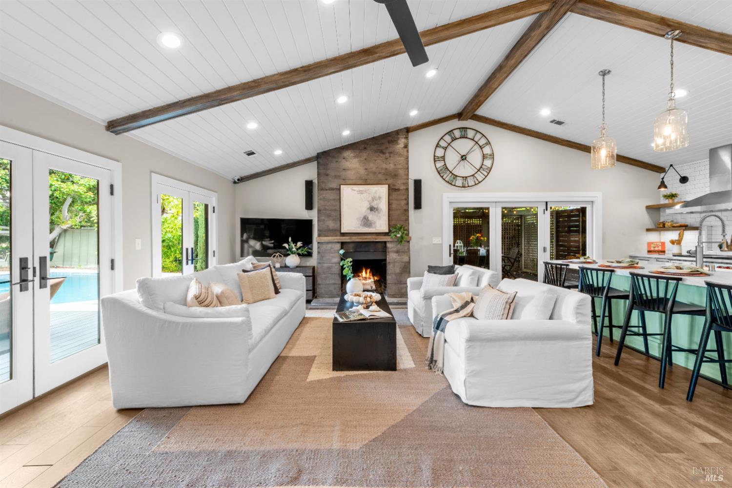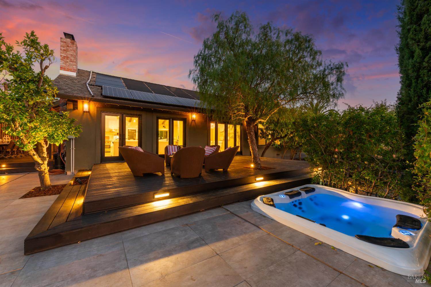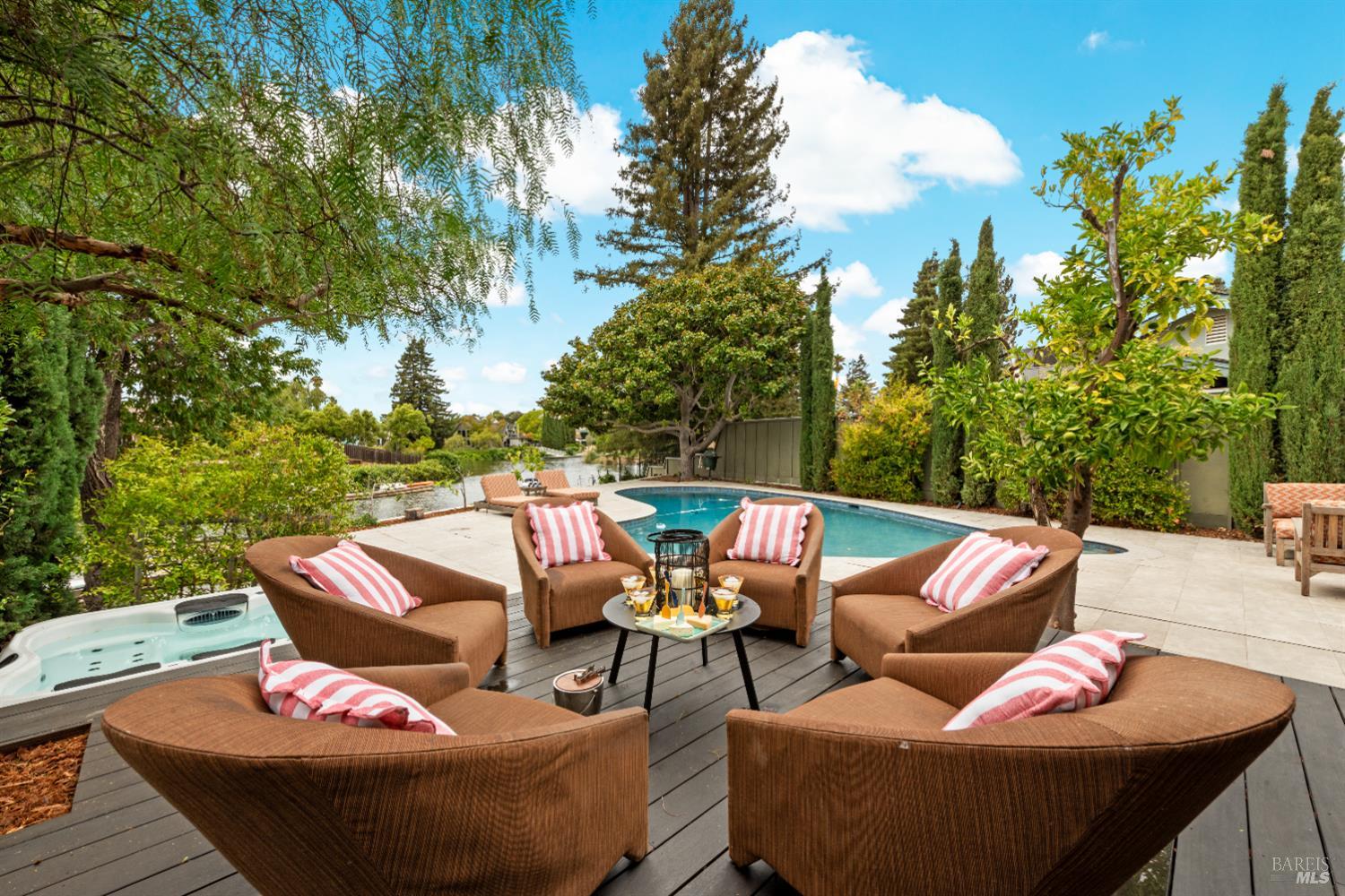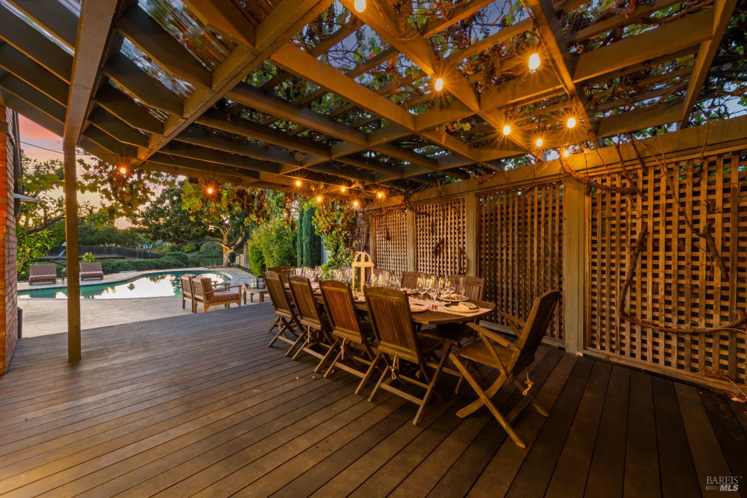 Abundance and Style define this custom single-level residence on .37 acre of Waterfront. Consummate Napa Valley living is easy as vast entertaining spaces flow seamlessly indoors and out. Life centers on a Great Room with wood-burning fireplace and views across a placid Pool onto Western light reflected on the River. All of this is set amidst a professional landscape designed for outdoor cooking, dining and farm-to-table culinary pleasure. The 70' dock on 264' of riverfront tempts you to relax on the friendly water in anticipation of a memorable evening, or play Bocce as the sun sets. Just as a Stainless and Gas open Kitchen with Carrara Marble surfaces will inspire any Chef, the Office/Media and Sleeping Rooms are a retreat apart from social and lounging spaces. Luxe Baths, Closets, and Storage assure serenity and respite from an active lifestyle. Rebuilt in 2016, conceived for sanctuary and wellness, every corner of this beautifully realized home offers comfort. From the Entry Courtyard to the huge Pergola laden with Winegrapes, across expansive IPE Decking to the Spa, and plantings on all four sides yielding Fruits, Vegetables and Herbs, this lush abode truly will feed your passion for living well. Solar, EV Charger, Light, Sound and Security systems simply enhance the luxury.