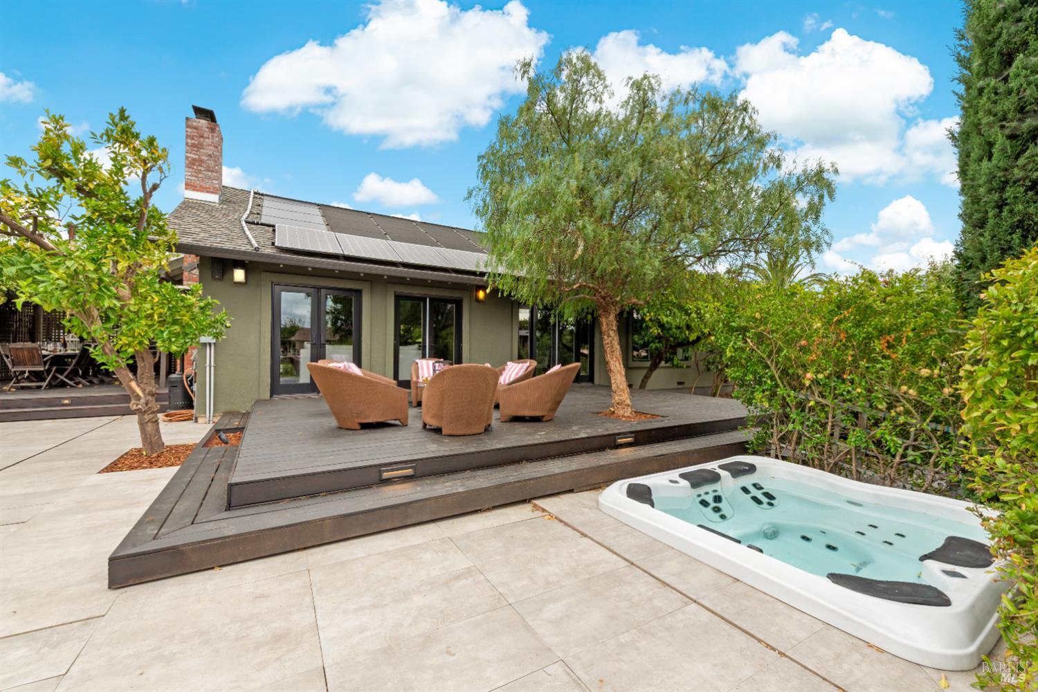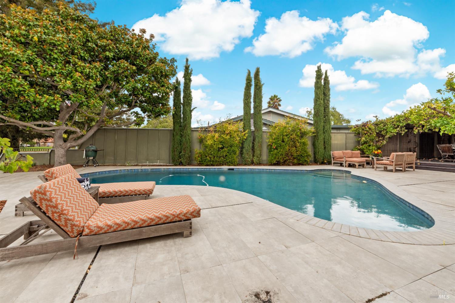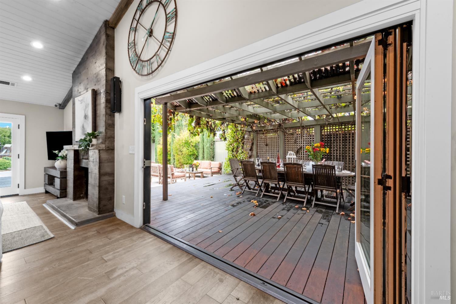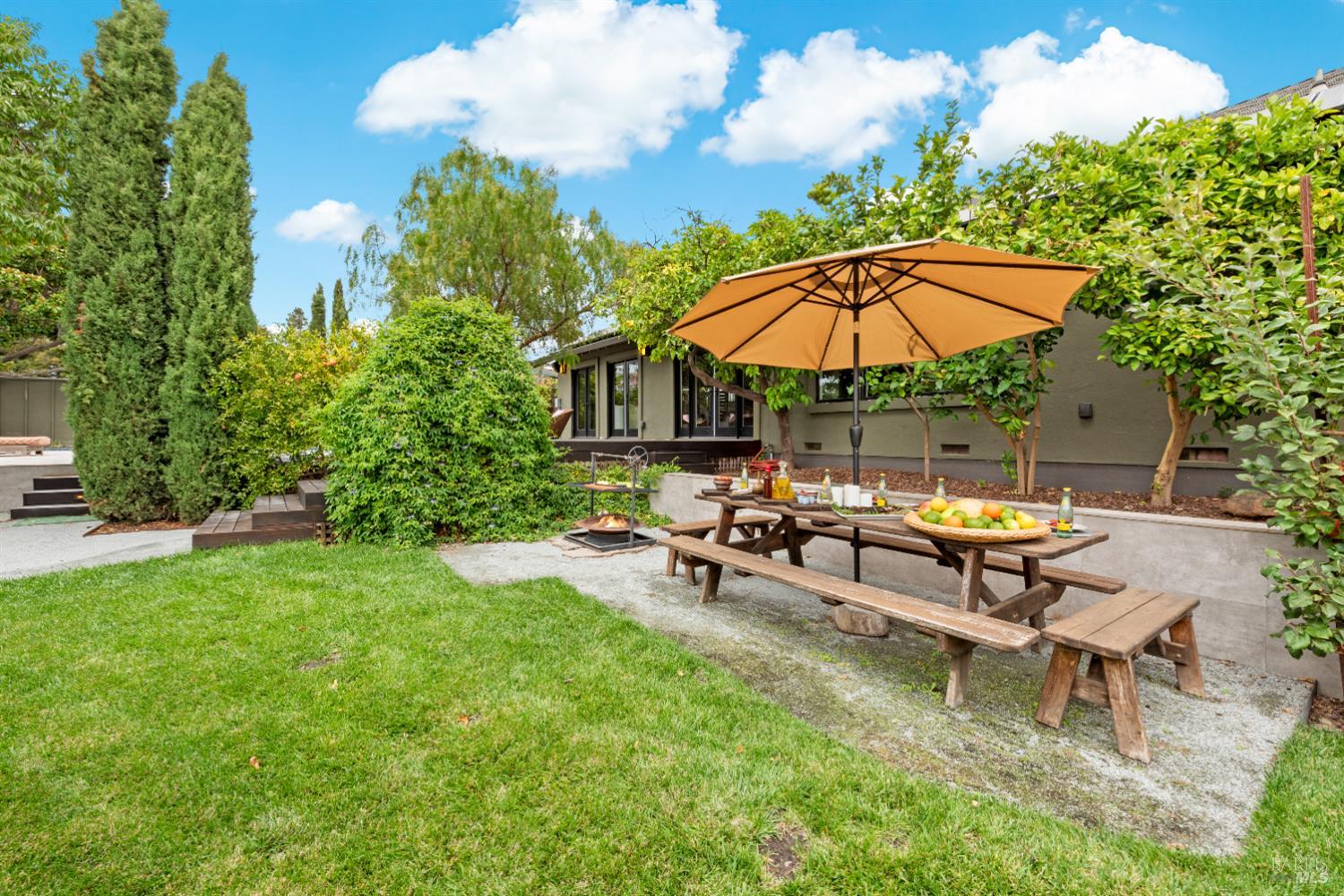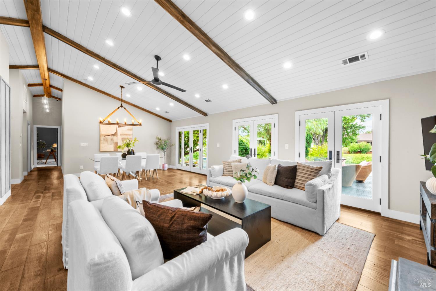Abundance and Style define this custom single-level residence on .37 acre of Waterfront. Consummate Napa Valley living is easy as vast entertaining spaces flow seamlessly indoors and out. Life centers on a Great Room with wood-burning fireplace and views across a placid Pool onto Western light reflected on the River. All of this is set amidst a professional landscape designed for outdoor cooking, dining and farm-to-table culinary pleasure. The 70' dock on 264' of riverfront tempts you to relax on the friendly water in anticipation of a memorable evening, or play Bocce as the sun sets. Just as a Stainless and Gas open Kitchen with Carrara Marble surfaces will inspire any Chef, the Office/Media and Sleeping Rooms are a retreat apart from social and lounging spaces. Luxe Baths, Closets, and Storage assure serenity and respite from an active lifestyle. Rebuilt in 2016, conceived for sanctuary and wellness, every corner of this beautifully realized home offers comfort. From the Entry Courtyard to the huge Pergola laden with Winegrapes, across expansive IPE Decking to the Spa, and plantings on all four sides yielding Fruits, Vegetables and Herbs, this lush abode truly will feed your passion for living well. Solar, EV Charger, Light, Sound and Security systems simply enhance the luxury.