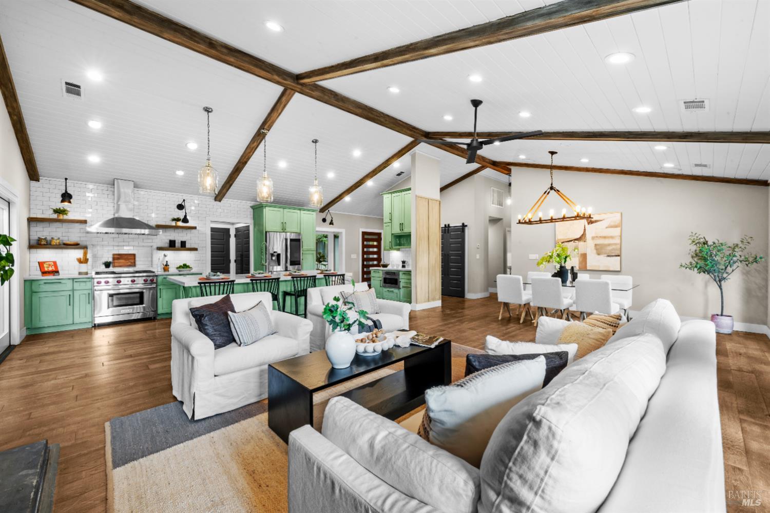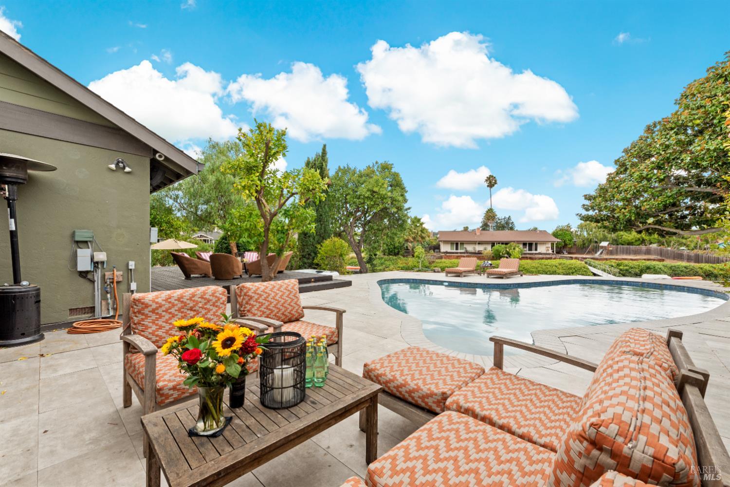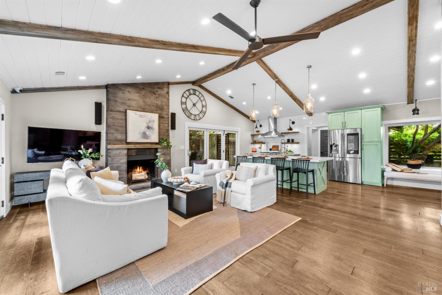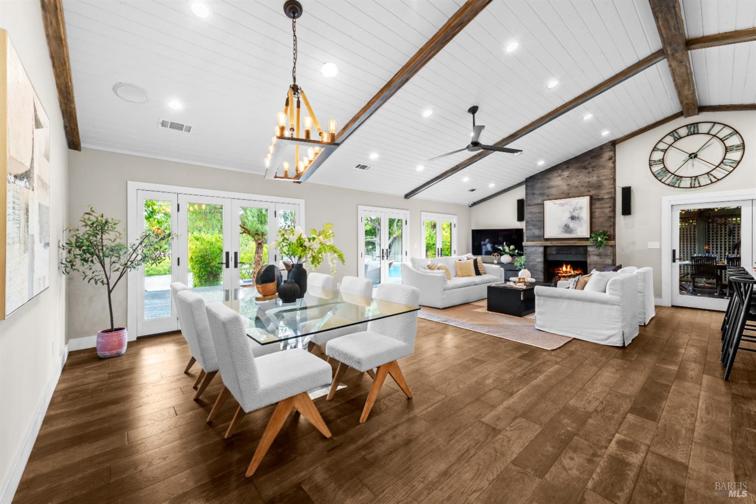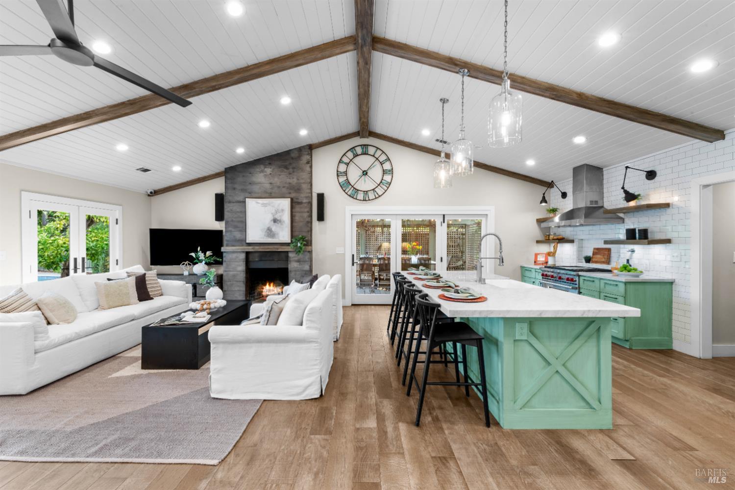 Abundance and Style define this custom single-level residence on .37 acre of Waterfront. Consummate Napa Valley living is easy as vast entertaining spaces flow seamlessly indoors and out. Life centers on a Great Room with wood-burning fireplace and views across a placid Pool onto Western light reflected on the River. All of this is set amidst a professional landscape designed for outdoor cooking, dining and farm-to-table culinary pleasure. The 70' dock on 264' of riverfront tempts you to relax on the friendly water in anticipation of a memorable evening, or play Bocce as the sun sets. Just as a Stainless and Gas open Kitchen with Carrara Marble surfaces will inspire any Chef, the Office/Media and Sleeping Rooms are a retreat apart from social and lounging spaces. Luxe Baths, Closets, and Storage assure serenity and respite from an active lifestyle. Rebuilt in 2016, conceived for sanctuary and wellness, every corner of this beautifully realized home offers comfort. From the Entry Courtyard to the huge Pergola laden with Winegrapes, across expansive IPE Decking to the Spa, and plantings on all four sides yielding Fruits, Vegetables and Herbs, this lush abode truly will feed your passion for living well. Solar, EV Charger, Light, Sound and Security systems simply enhance the luxury.